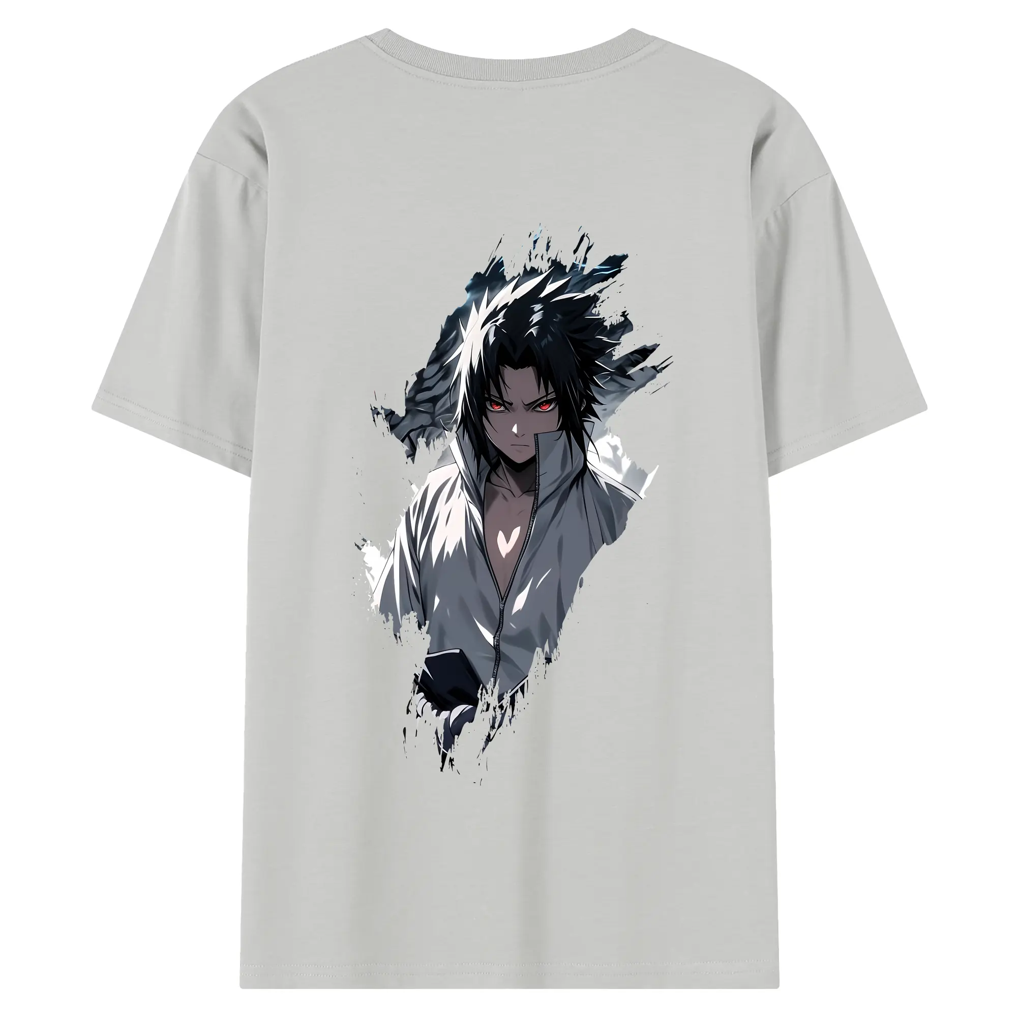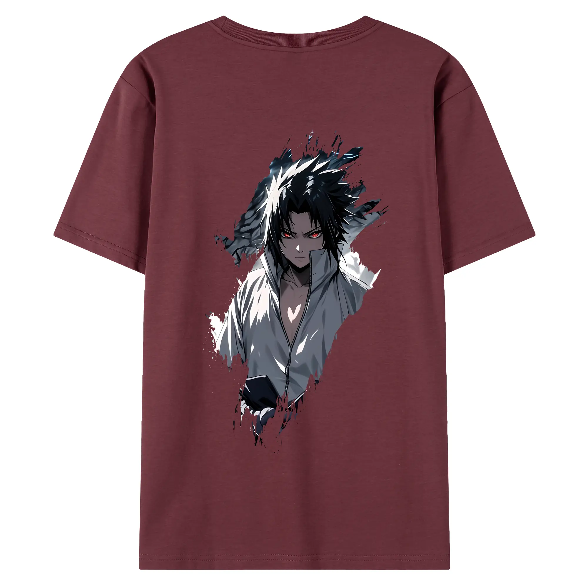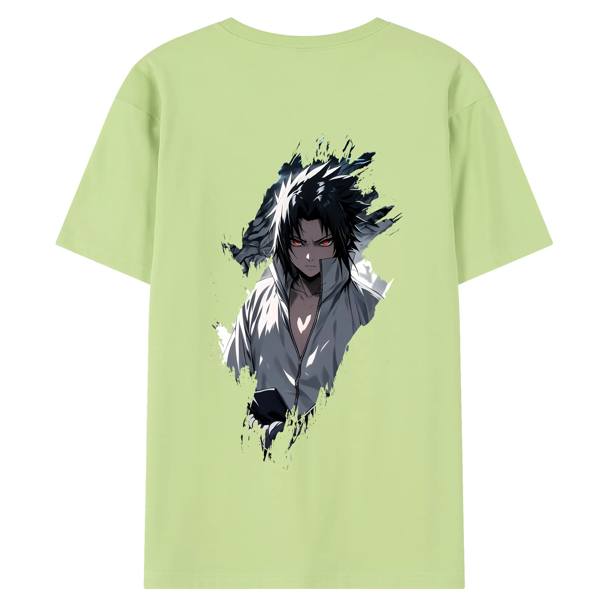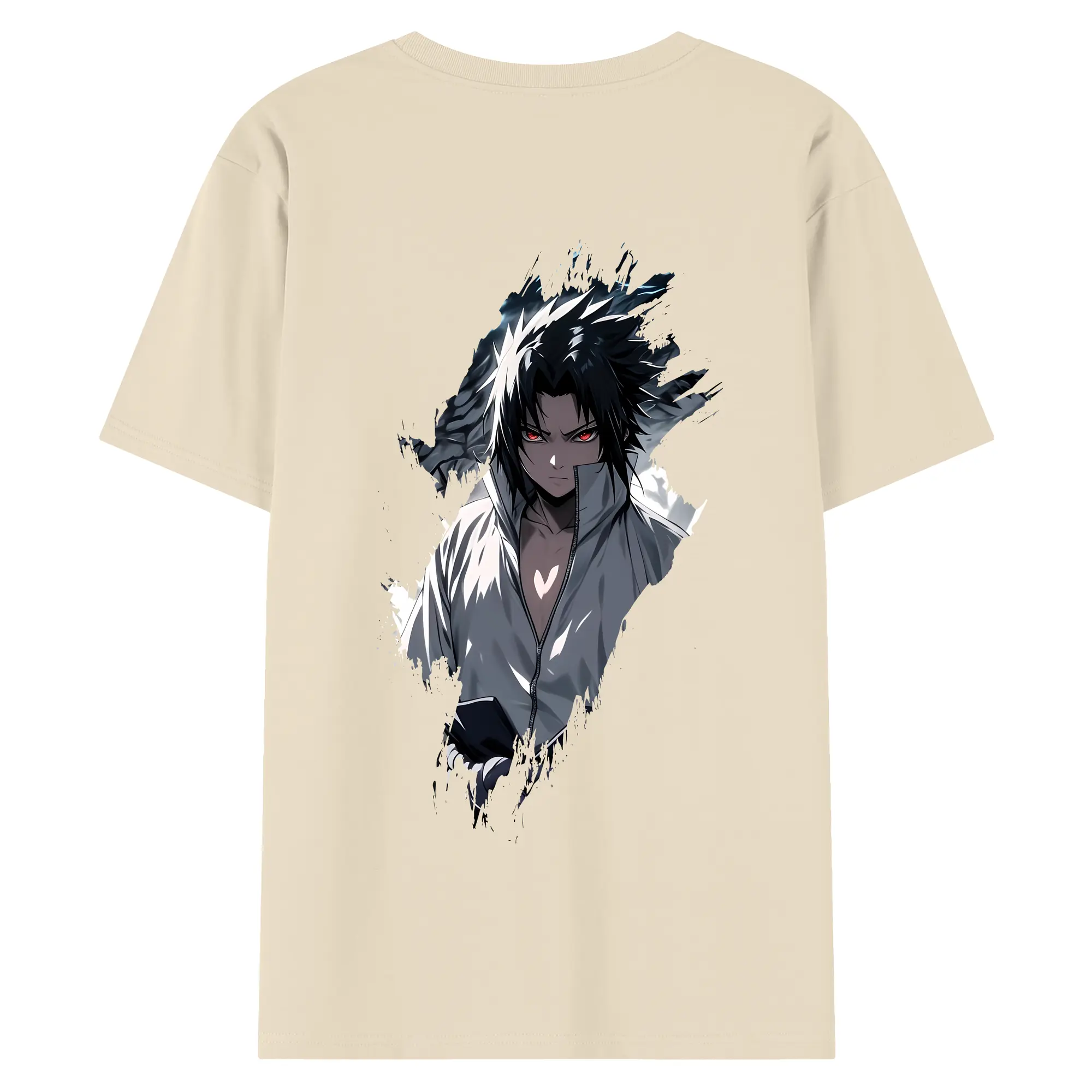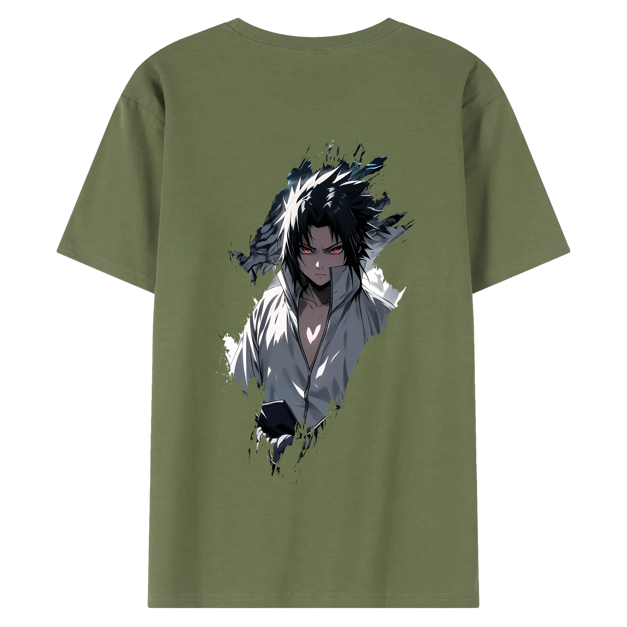 ナルト グッズ うちは サスケ - 綿100% ヴィンテージ風 半袖Tシャツ ・ 背面プリント ・ 柔らか肌触り ・ 通気性 快適 ・ スポーツ カジュアル 外出用