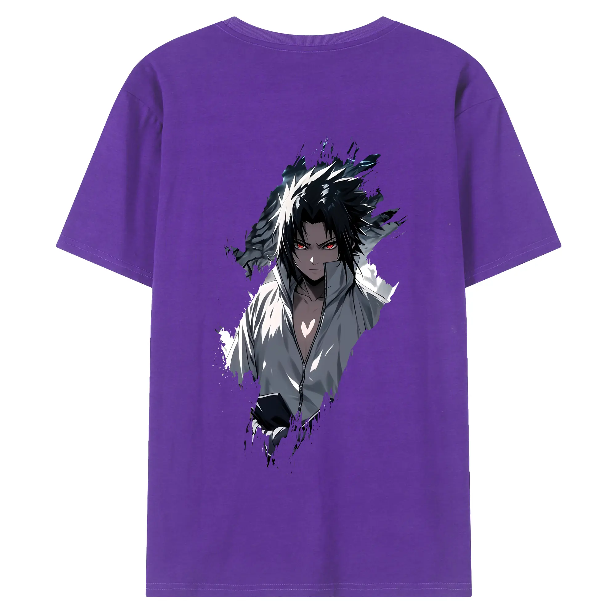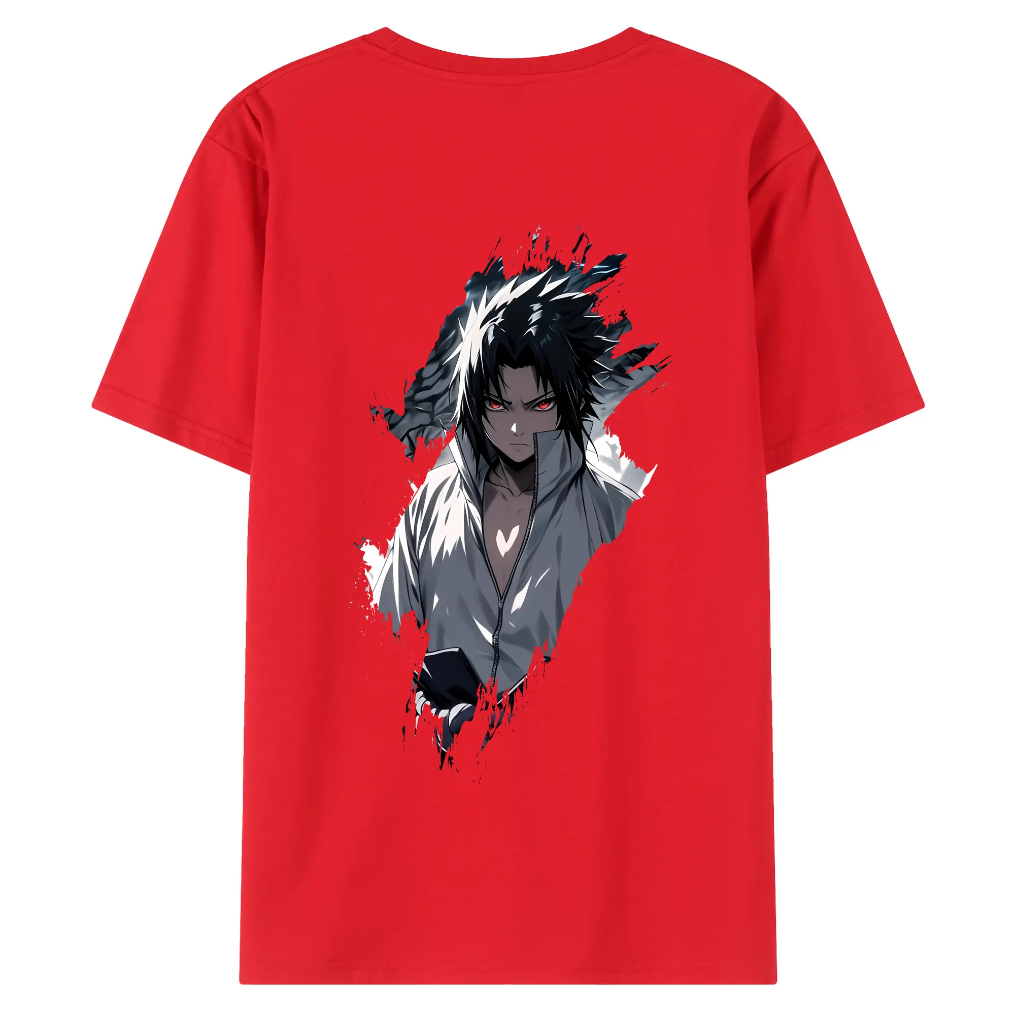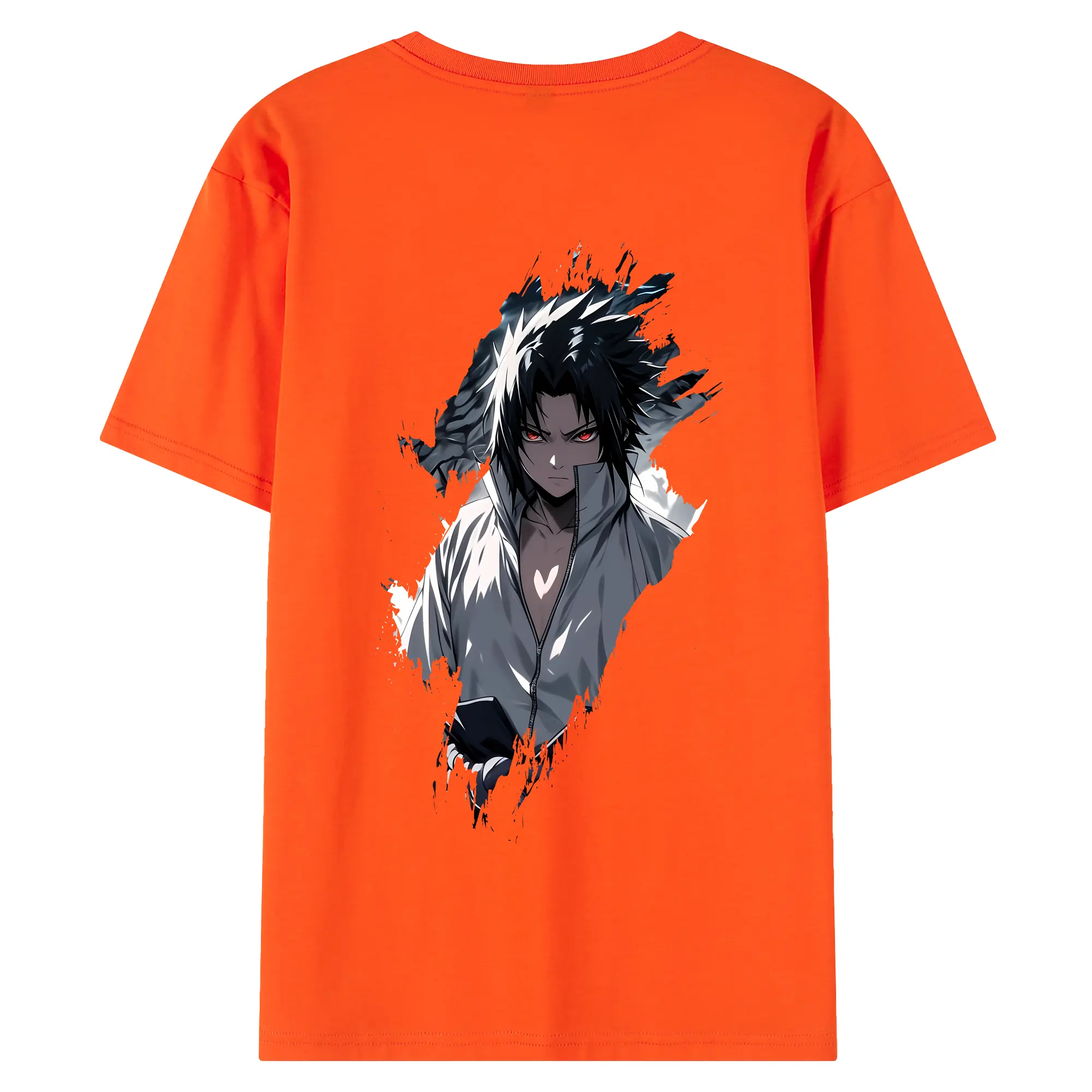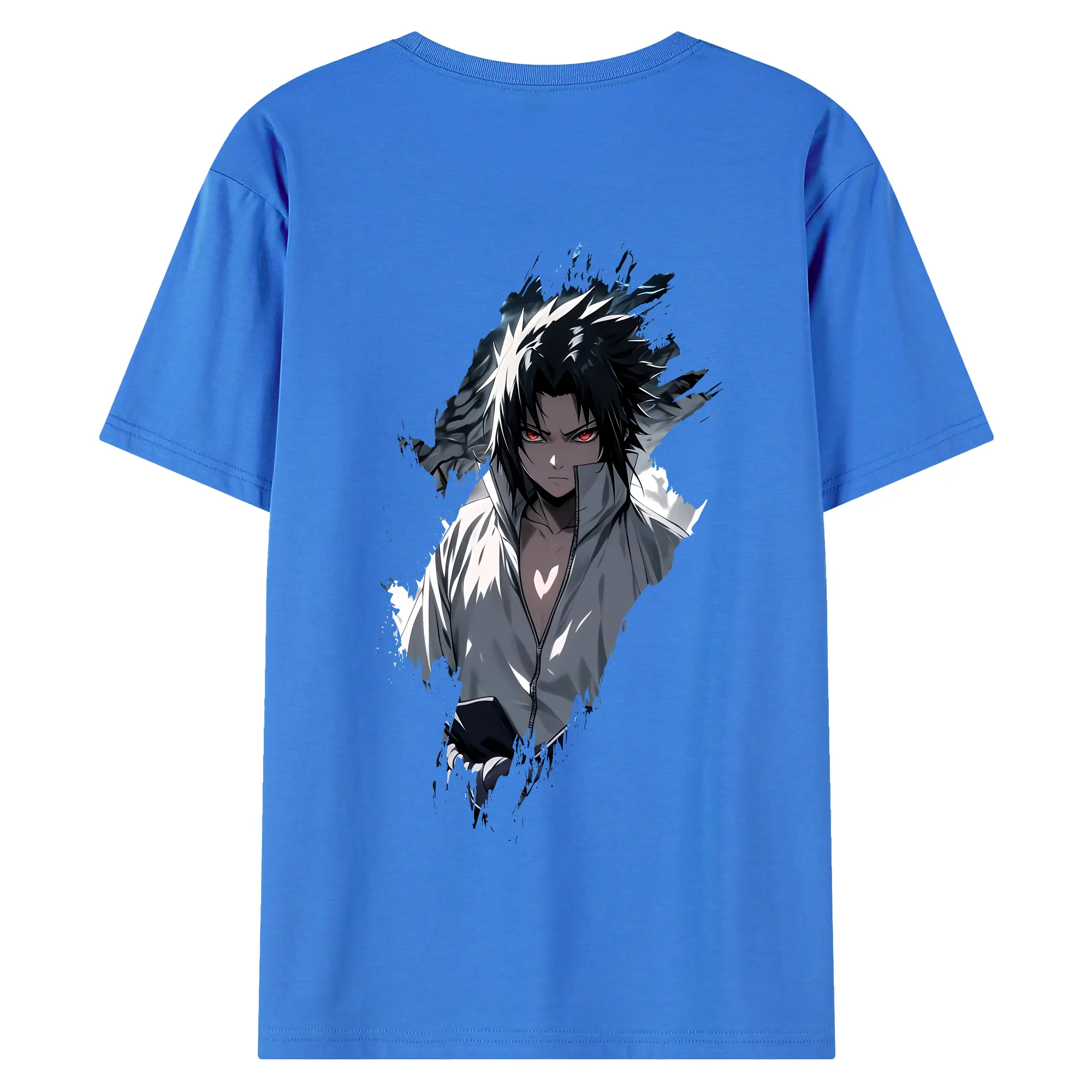 ナルト グッズ うちは サスケ - 綿100% 半袖Tシャツ ・ フロントプリント ・ 快適 通気性 ・ 日常使い 散歩 スポーツ用