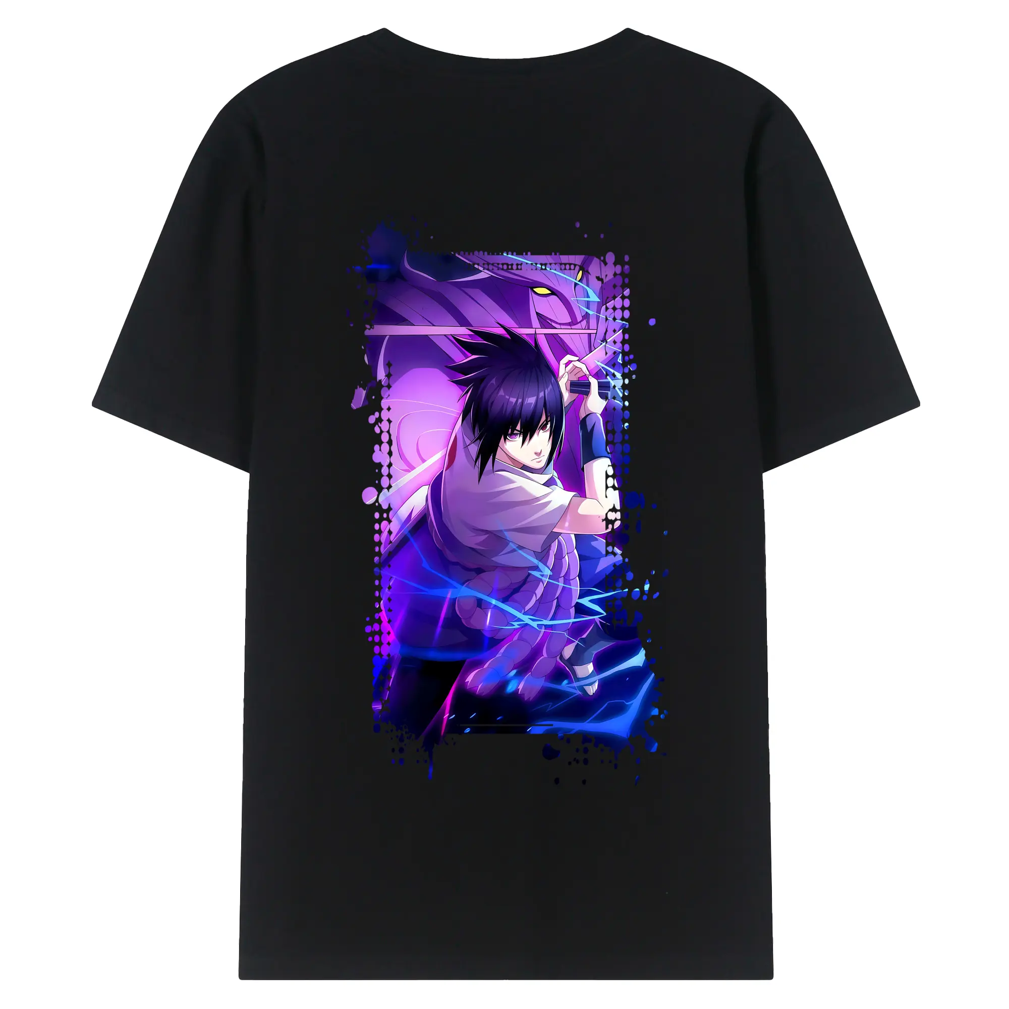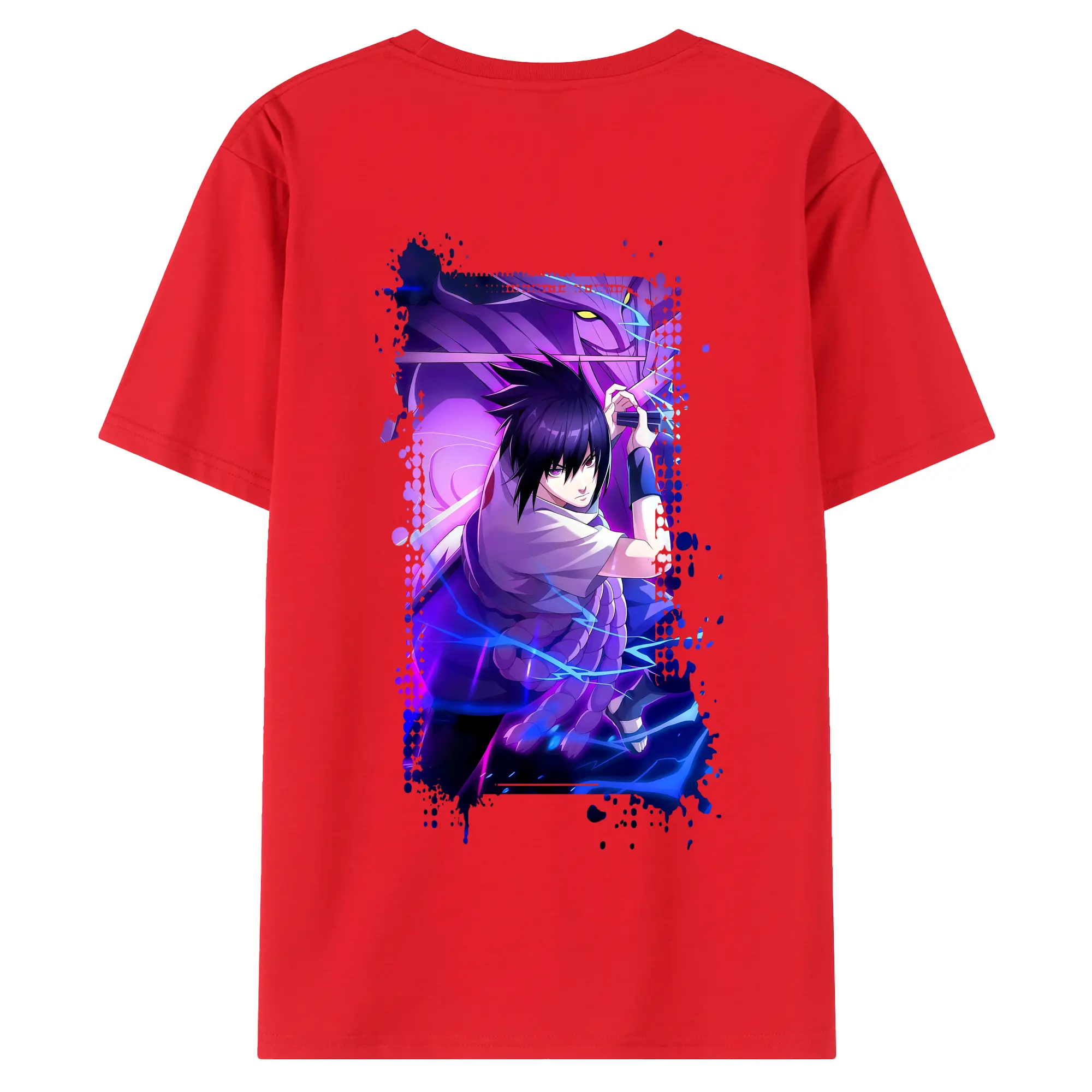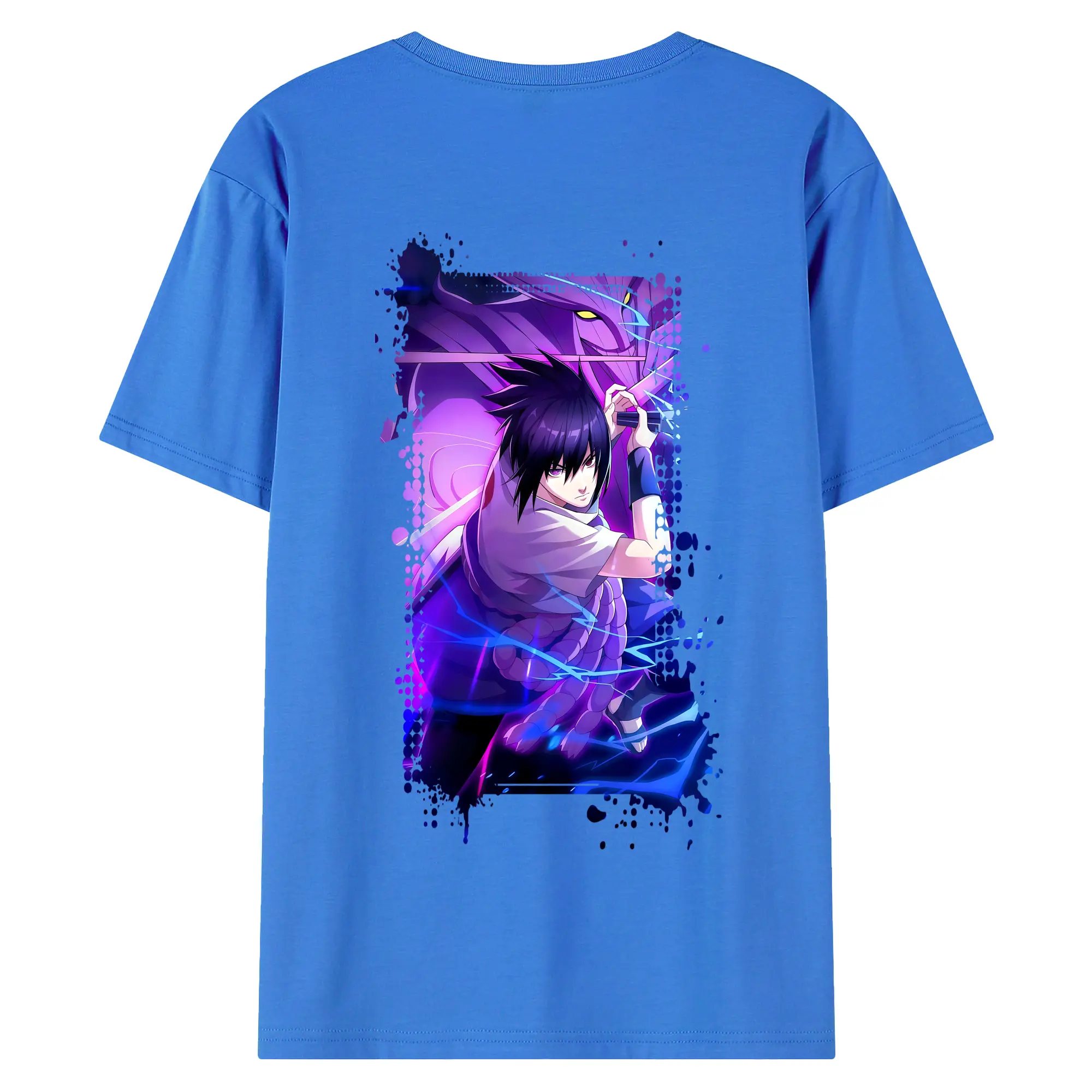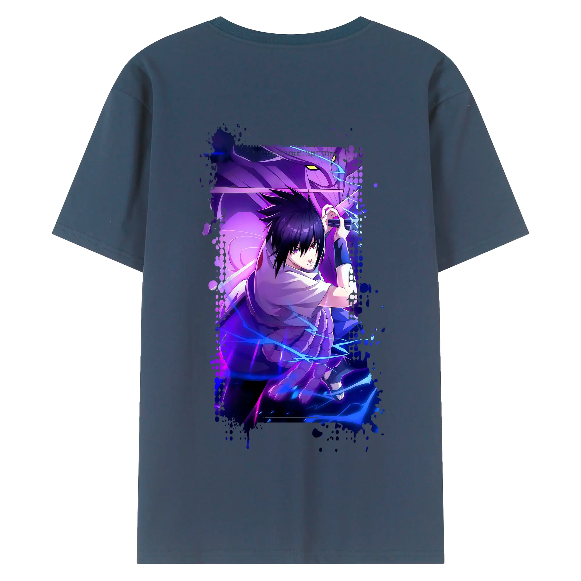 ナルト グッズ うちは サスケ - 綿100% 半袖Tシャツ ・ フロントプリント ・ 快適 通気性 ・ 日常使い 散歩 スポーツ用