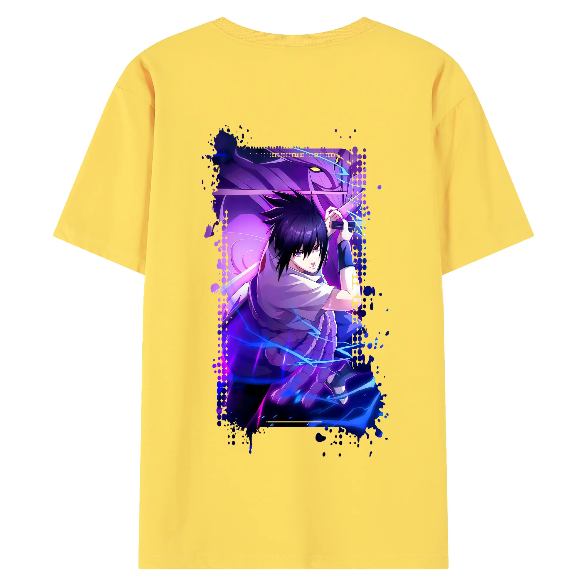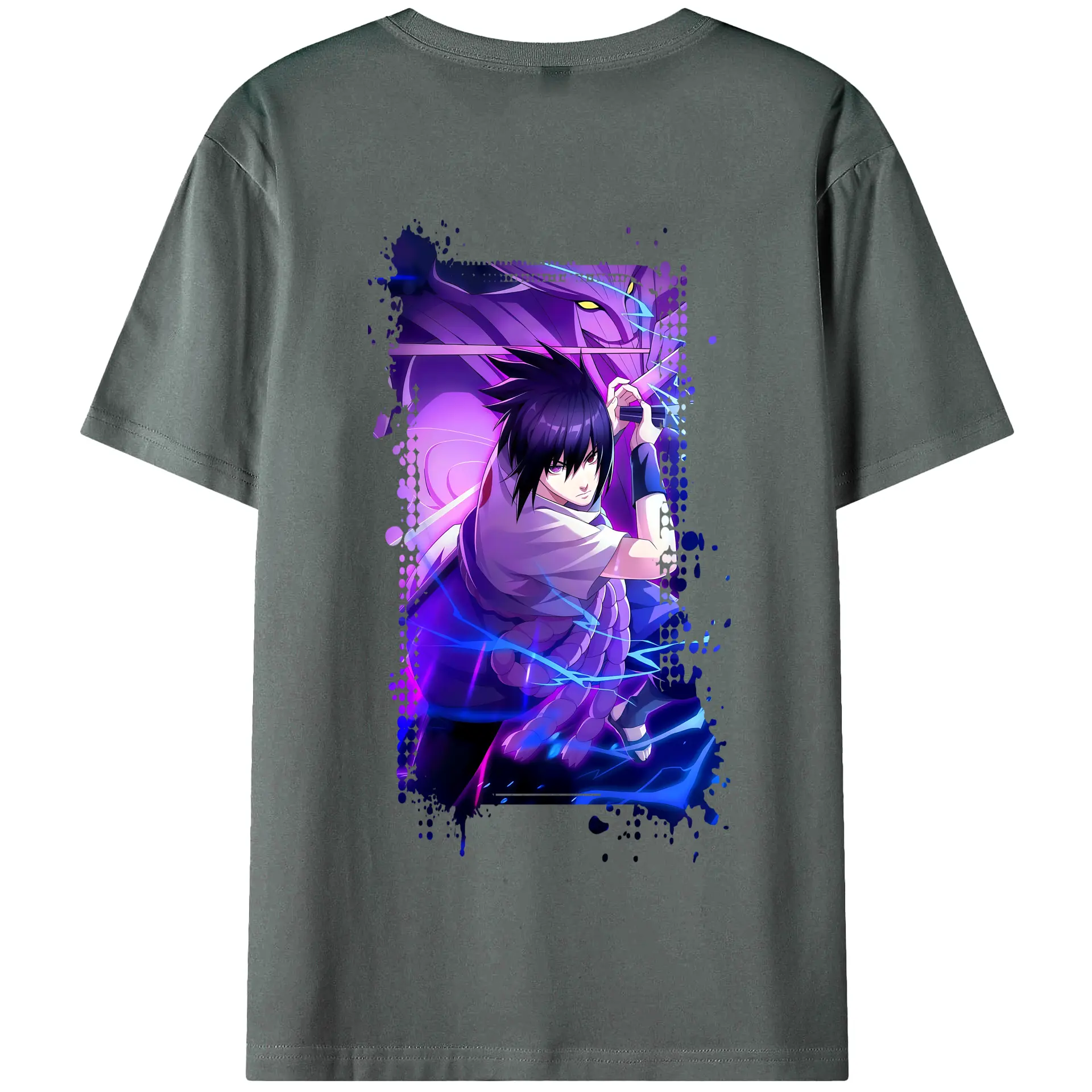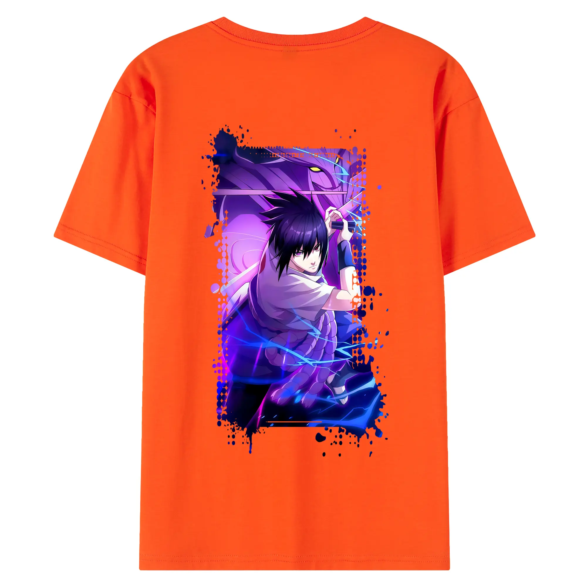 ナルト グッズ うちは サスケ - 綿100% 半袖Tシャツ ・ フロントプリント ・ 快適 通気性 ・ 日常使い 散歩 スポーツ用