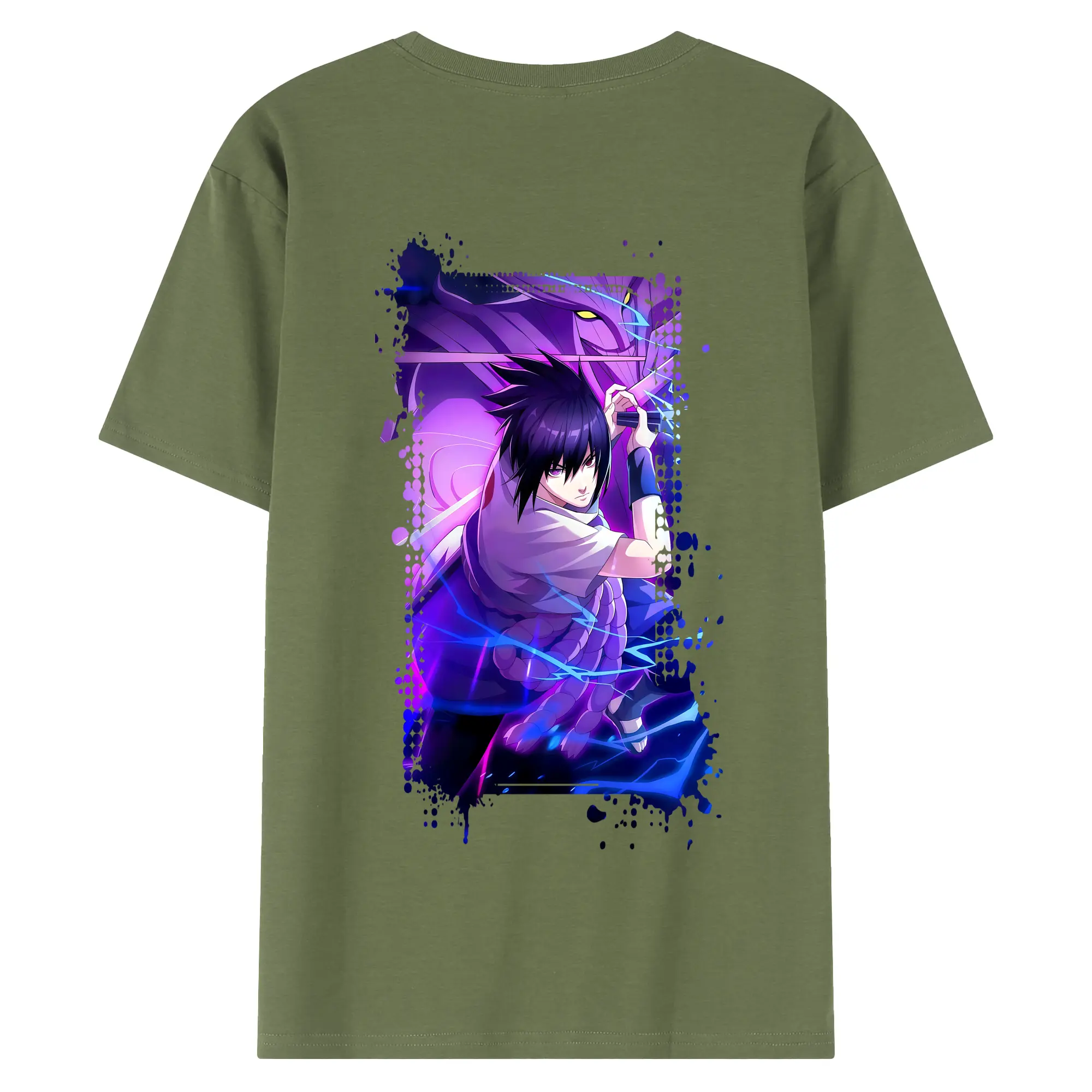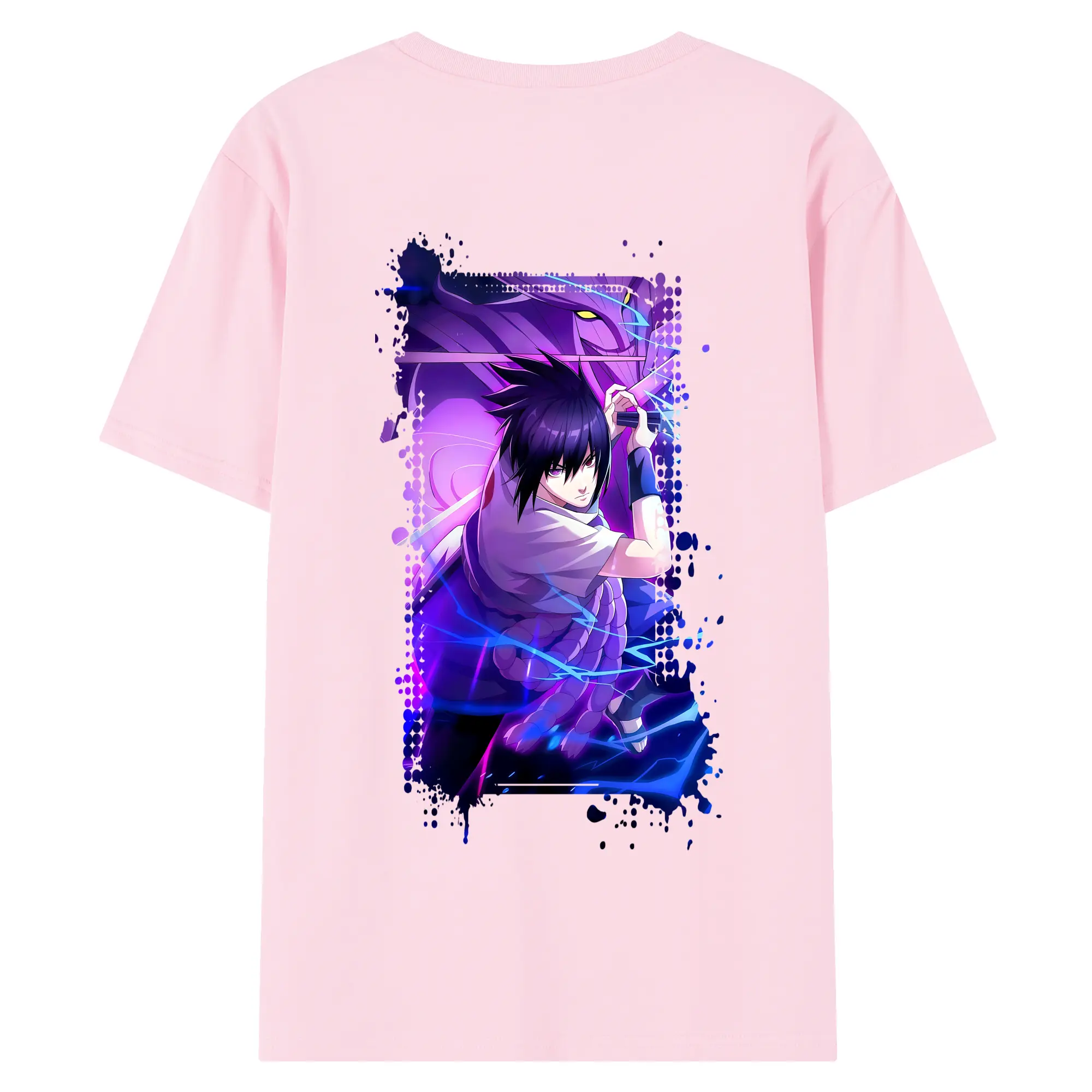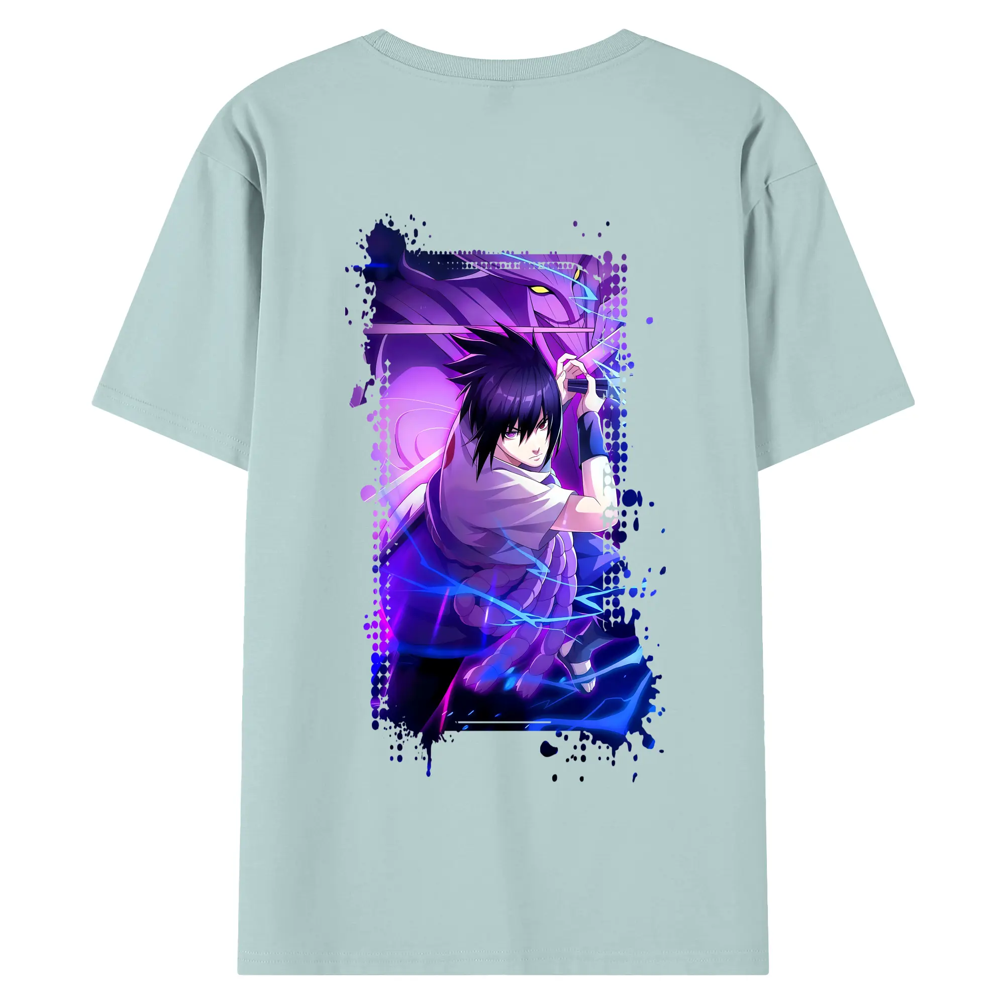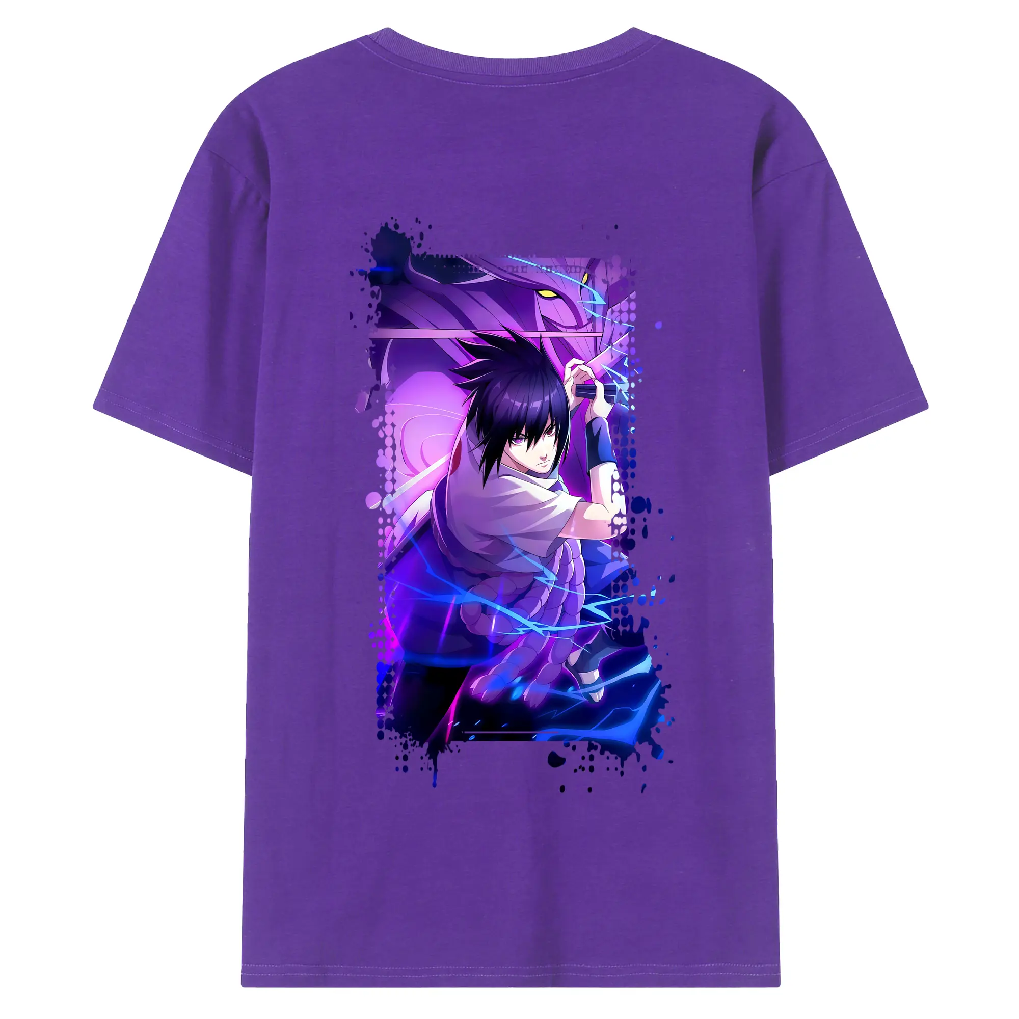 ナルト グッズ うちは サスケ - 綿100% 半袖Tシャツ ・ フロントプリント ・ 快適 通気性 ・ 日常使い 散歩 スポーツ用