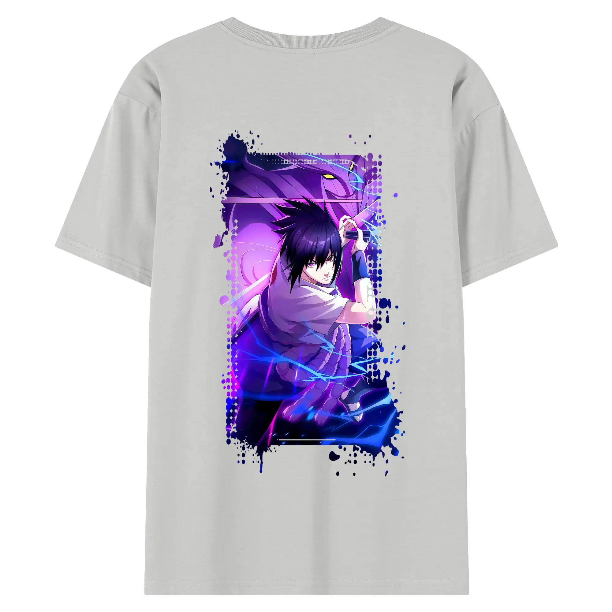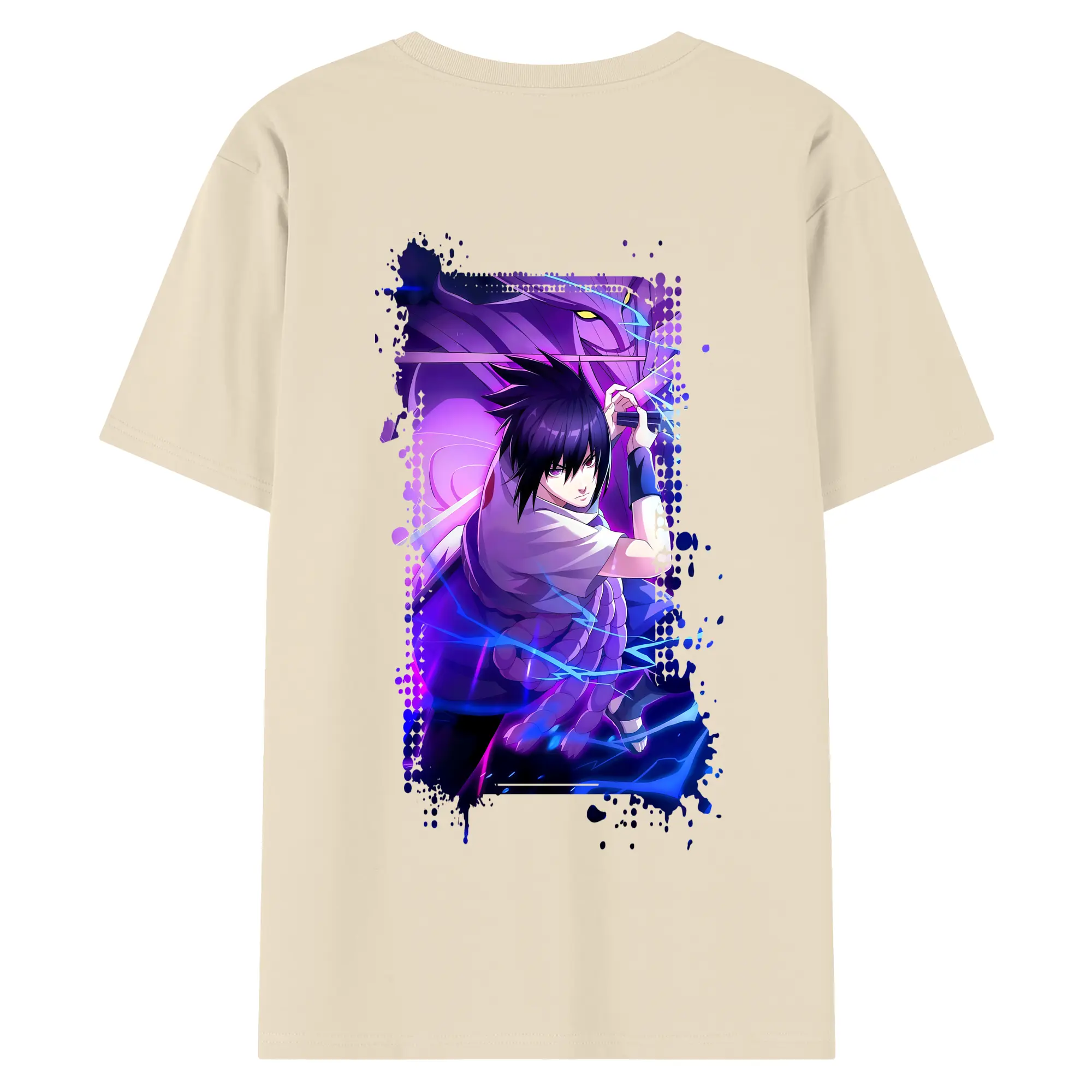 ナルト グッズ うちは サスケ - 綿100% ヴィンテージ風 半袖Tシャツ ・ 背面プリント ・ 柔らか肌触り ・ 通気性 快適 ・ スポーツ カジュアル 外出用