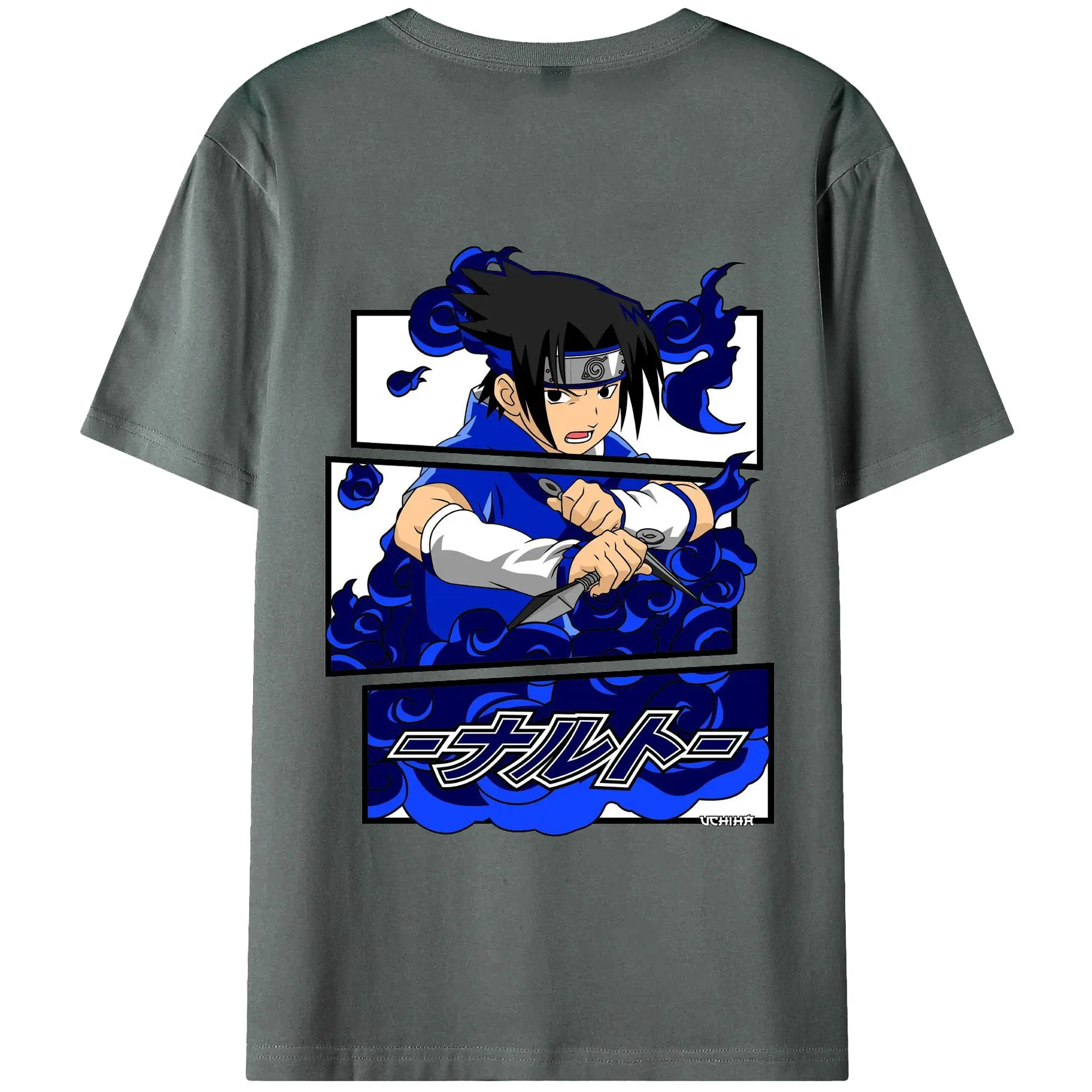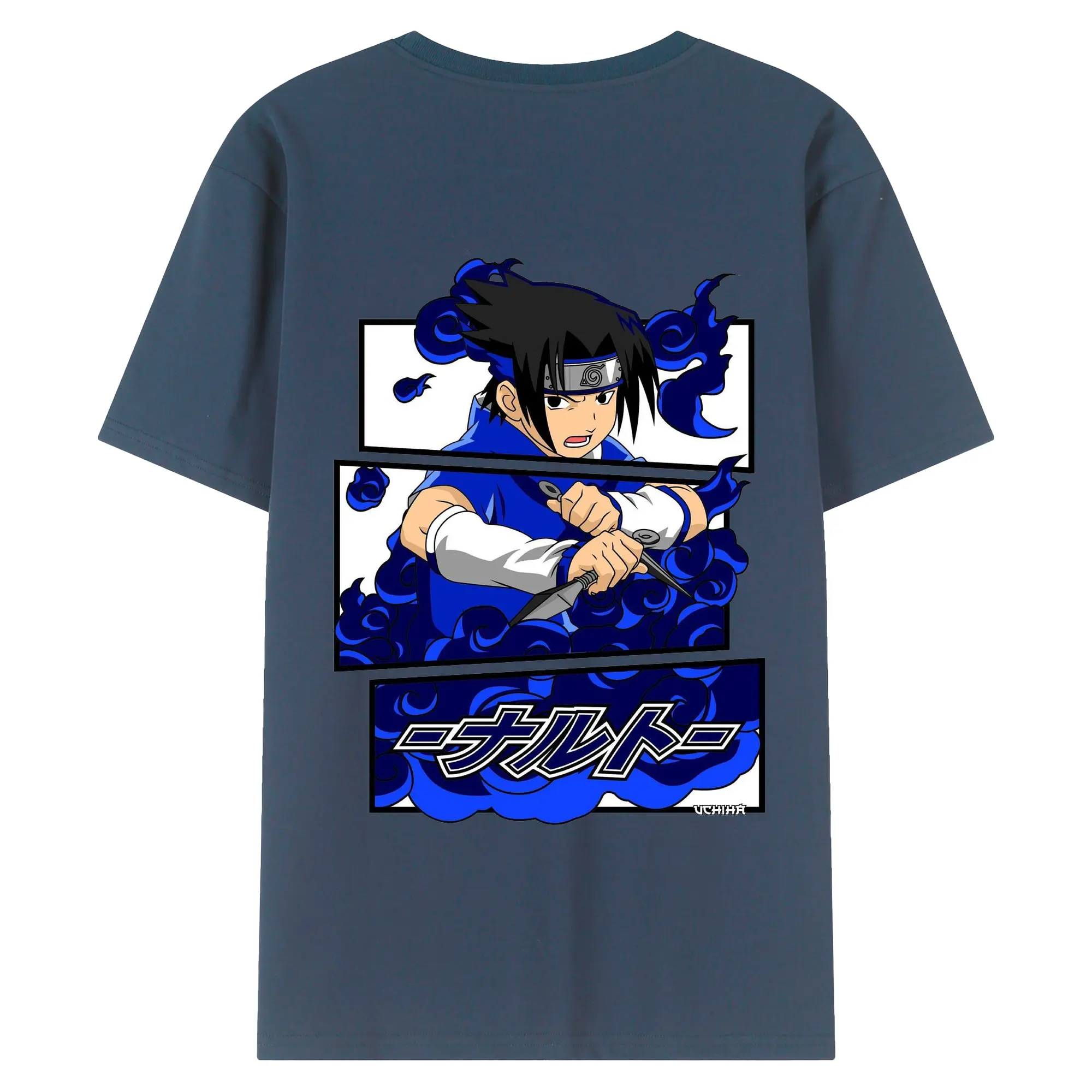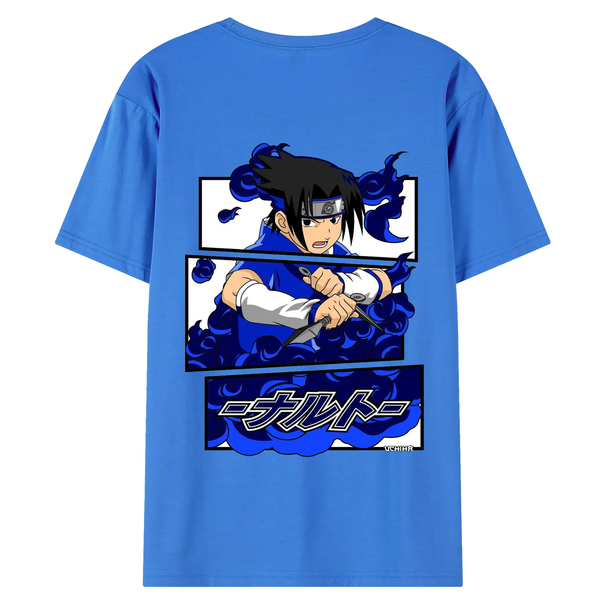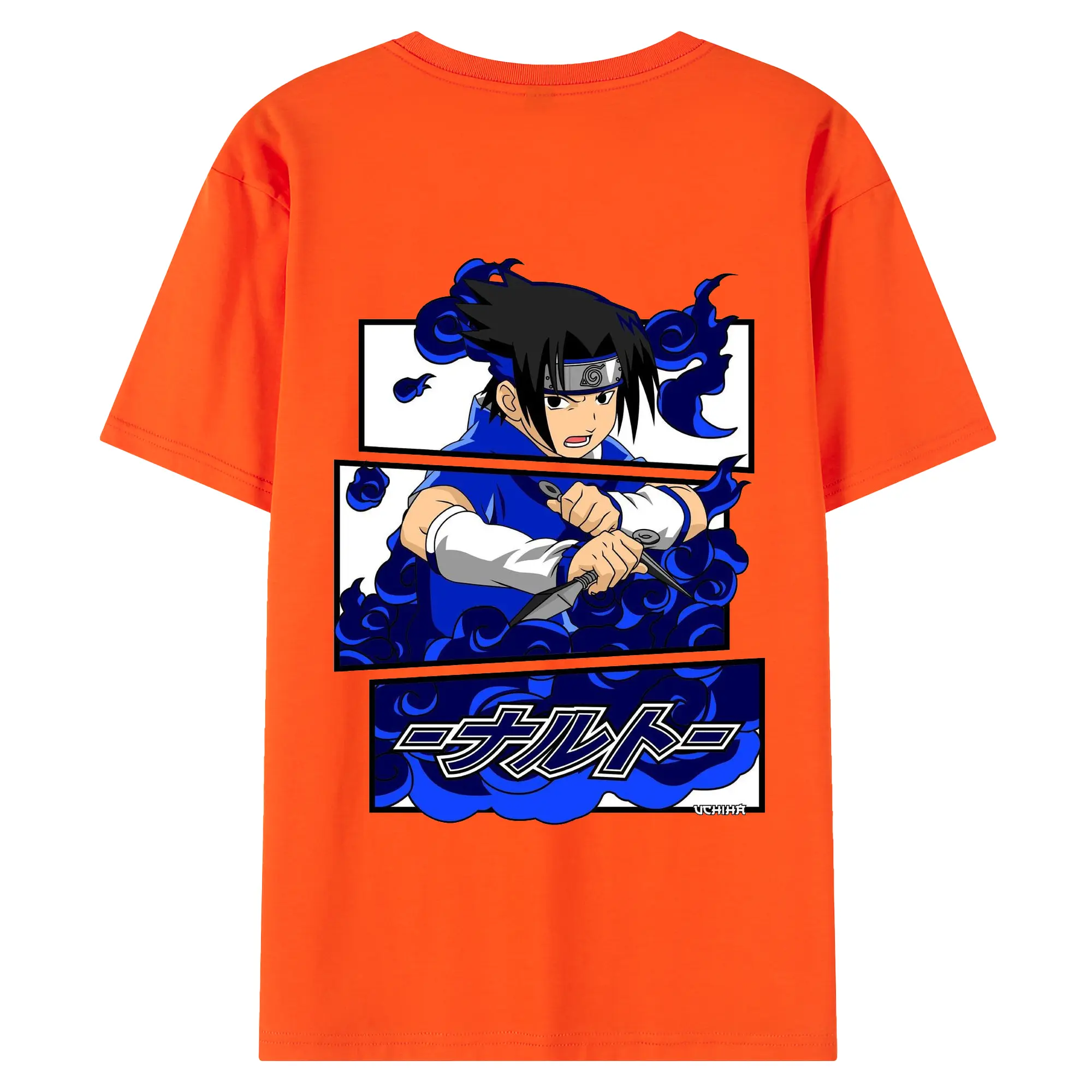 ナルト グッズ うちは サスケ - 綿100% 半袖Tシャツ ・ フロントプリント ・ 快適 通気性 ・ 日常使い 散歩 スポーツ用