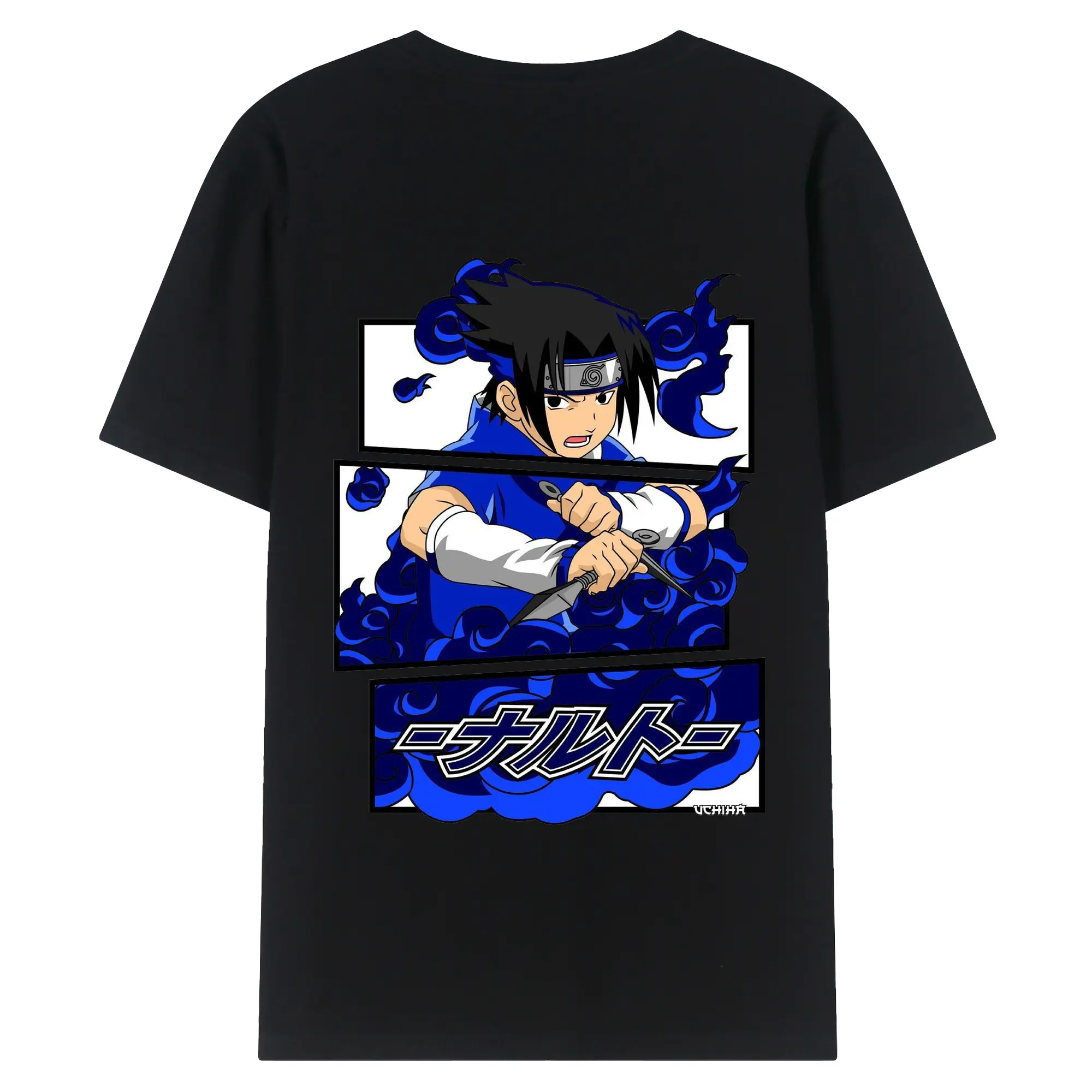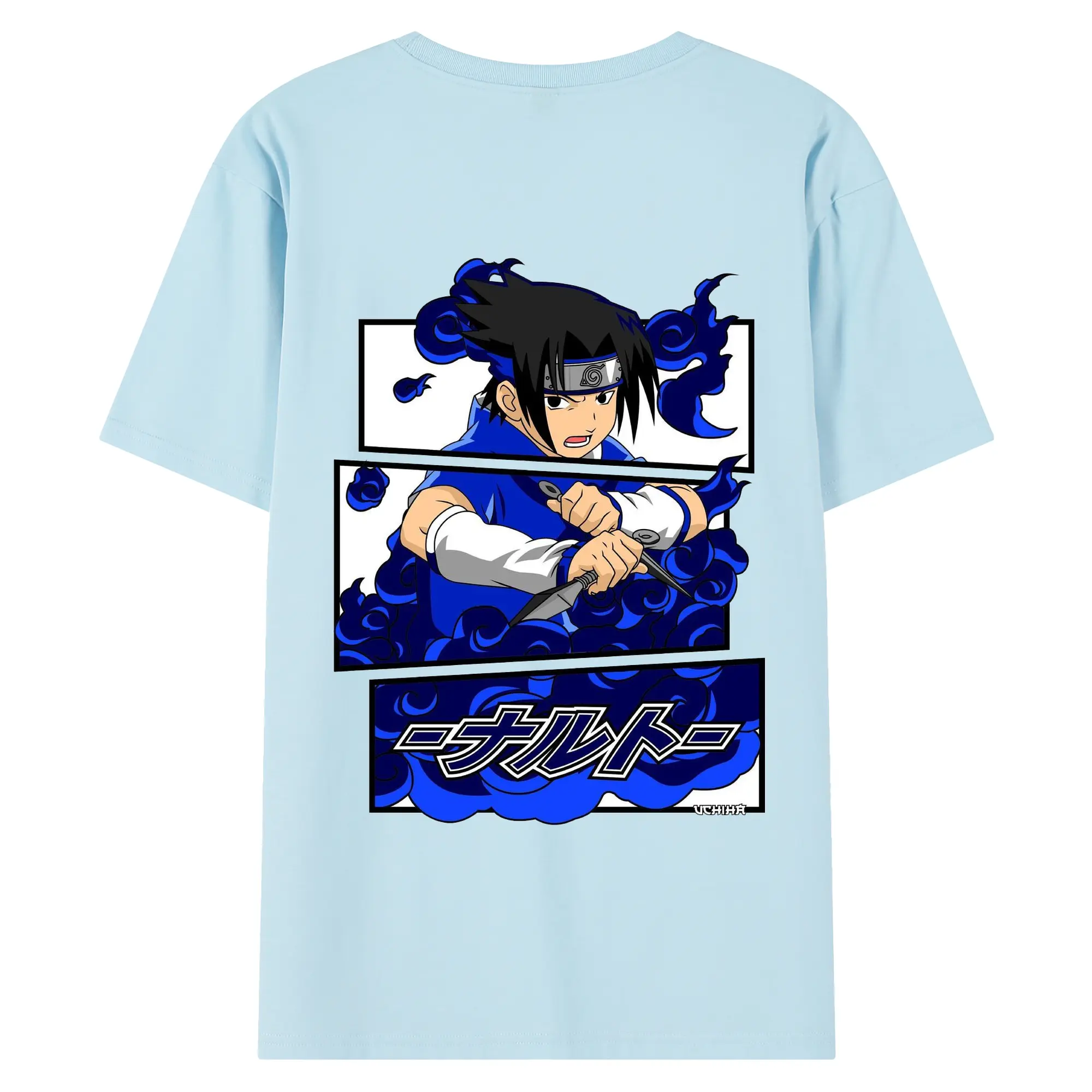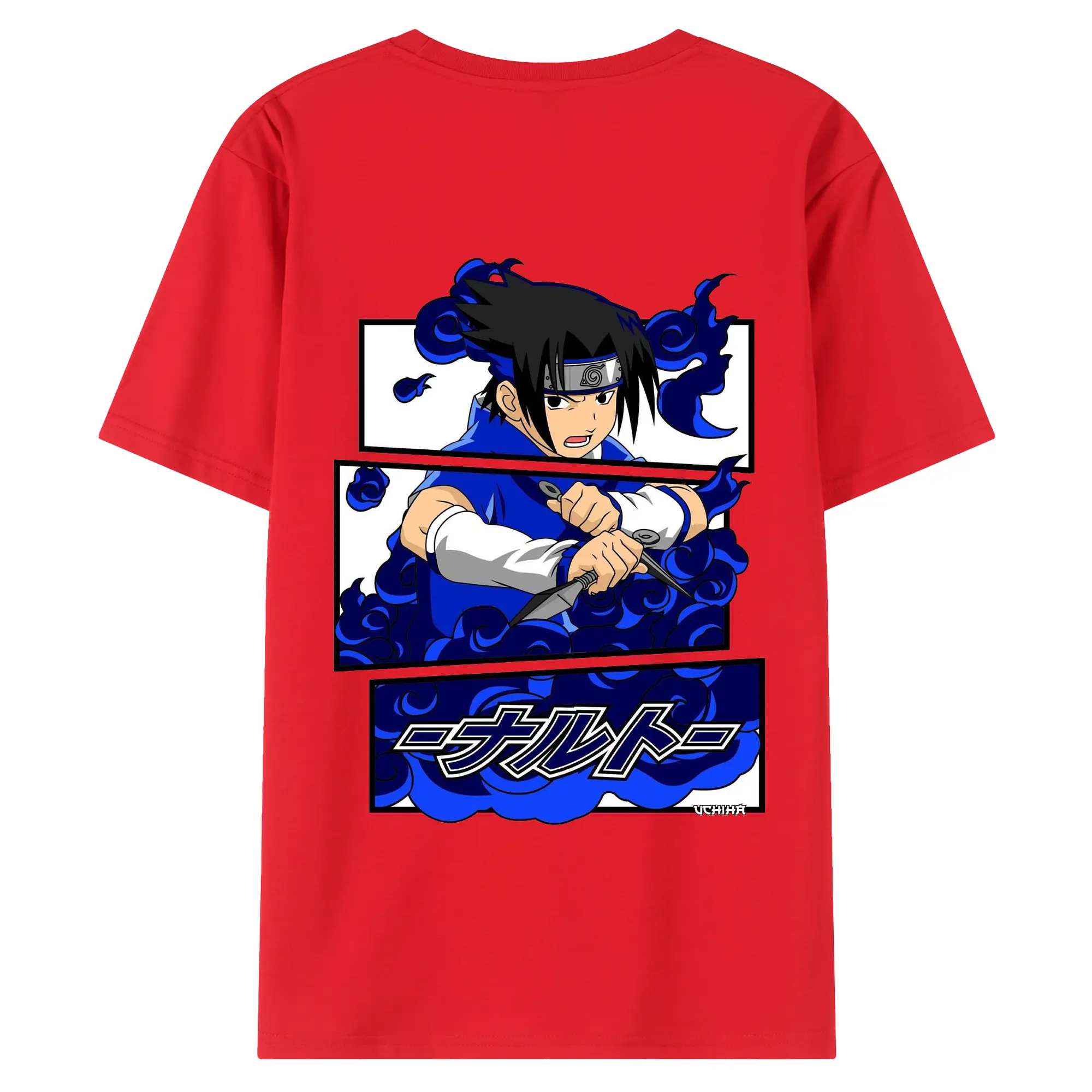 ナルト グッズ うちは サスケ - 綿100% 半袖Tシャツ ・ フロントプリント ・ 快適 通気性 ・ 日常使い 散歩 スポーツ用