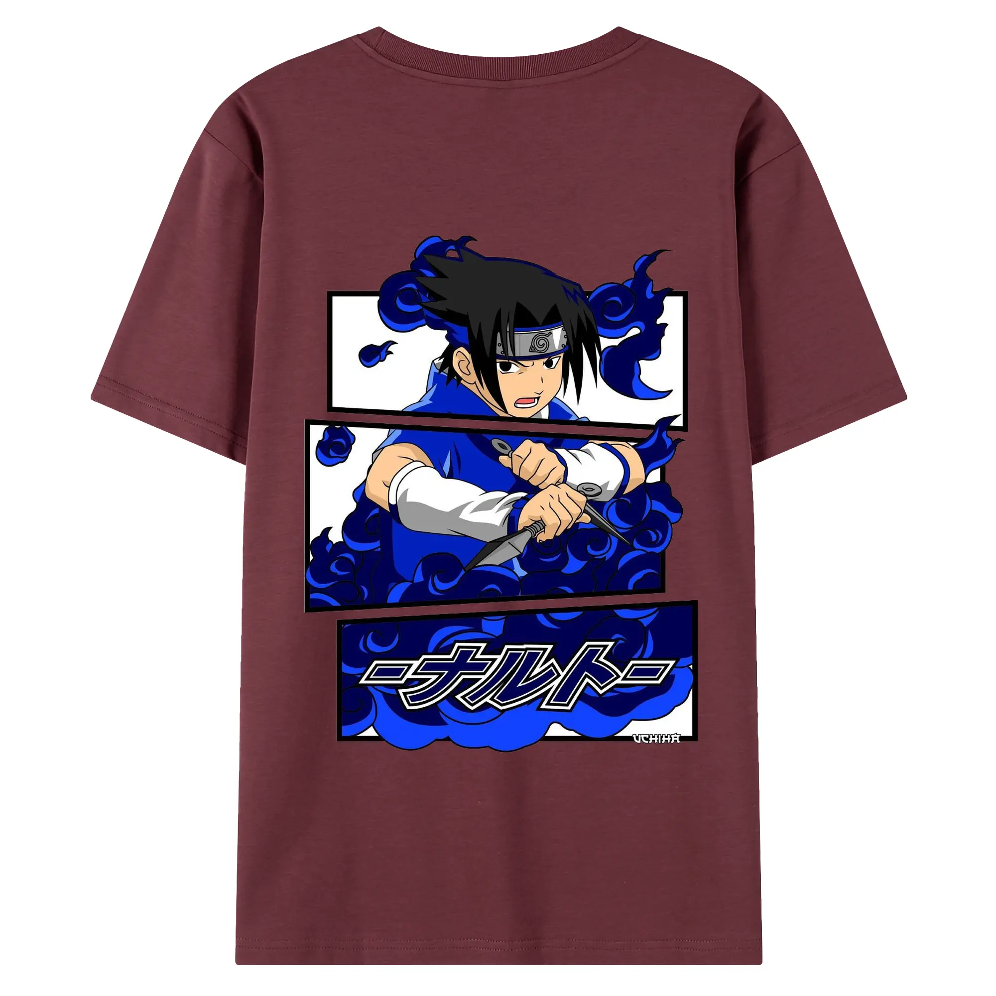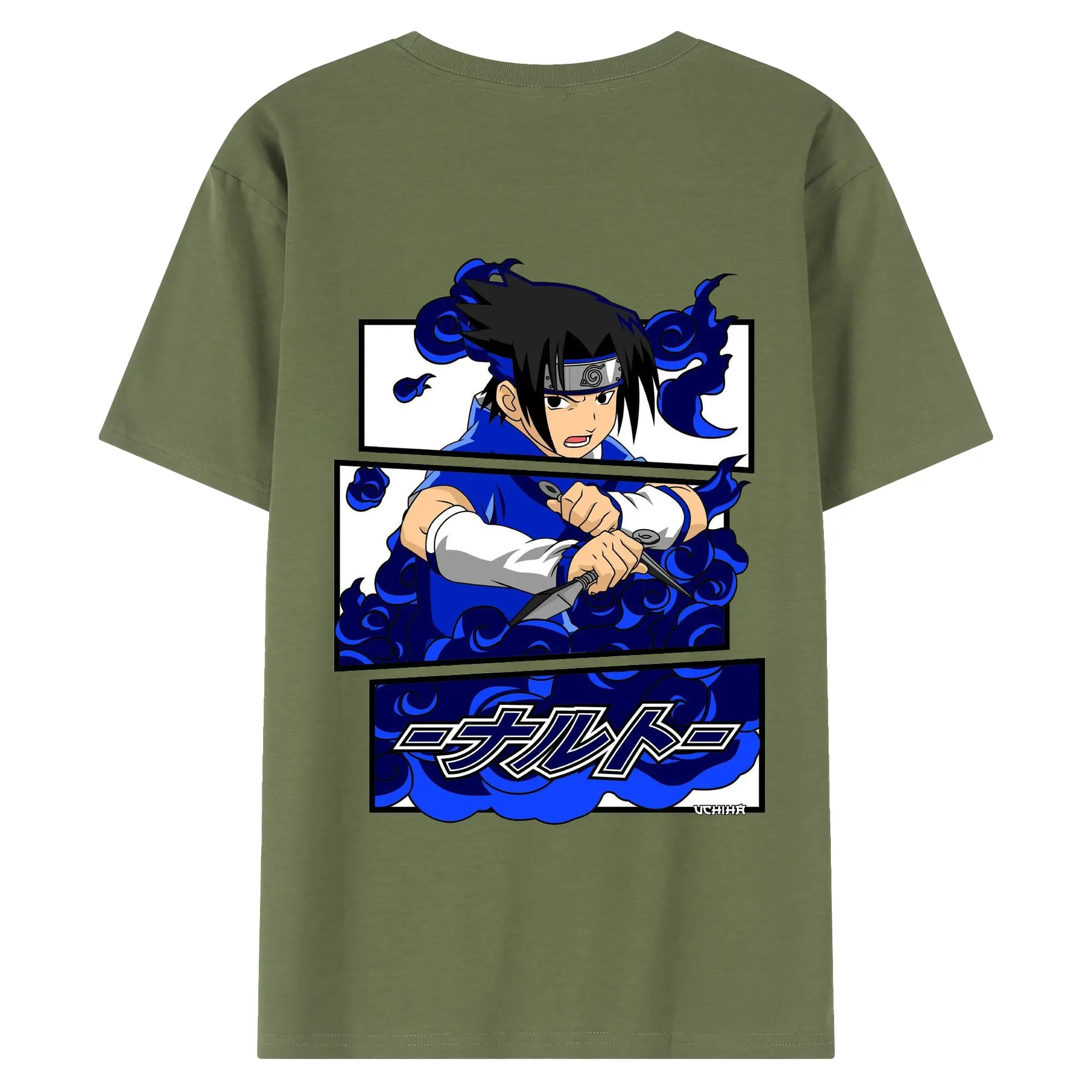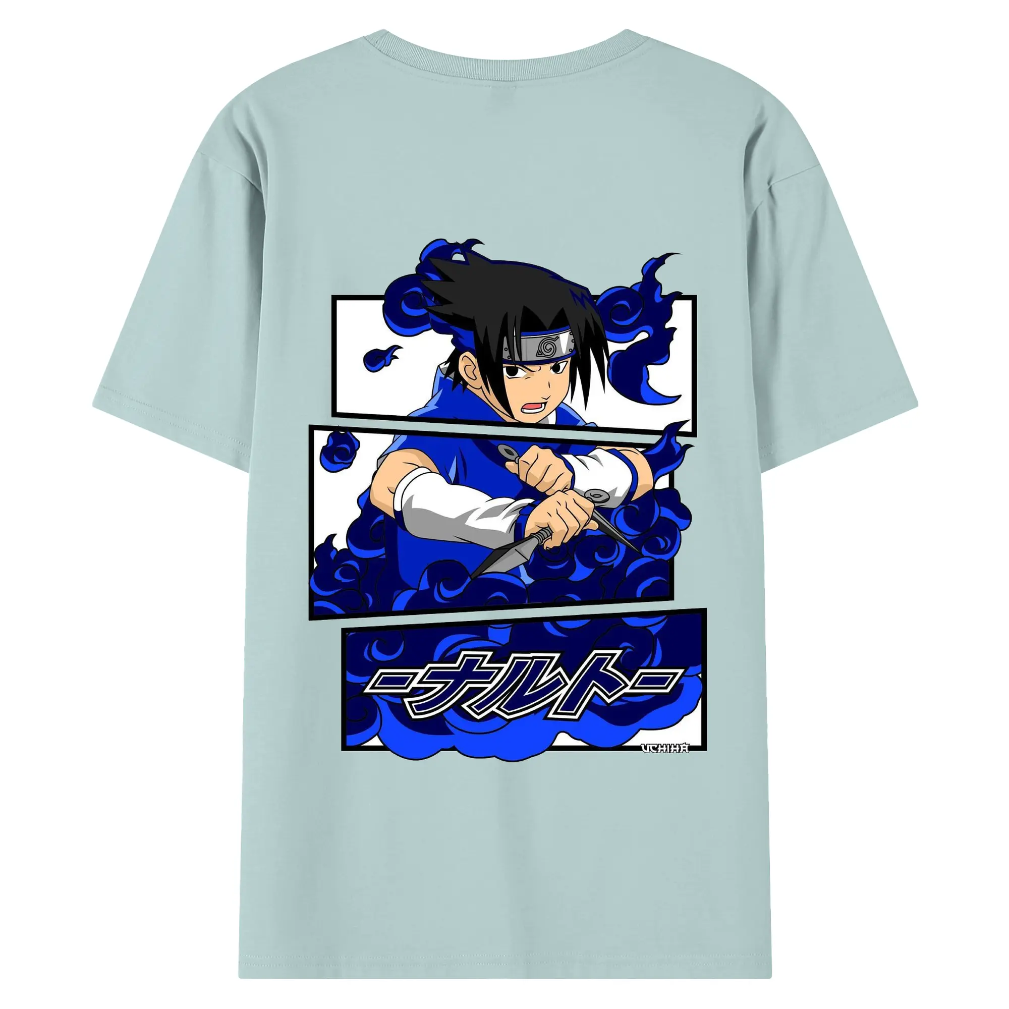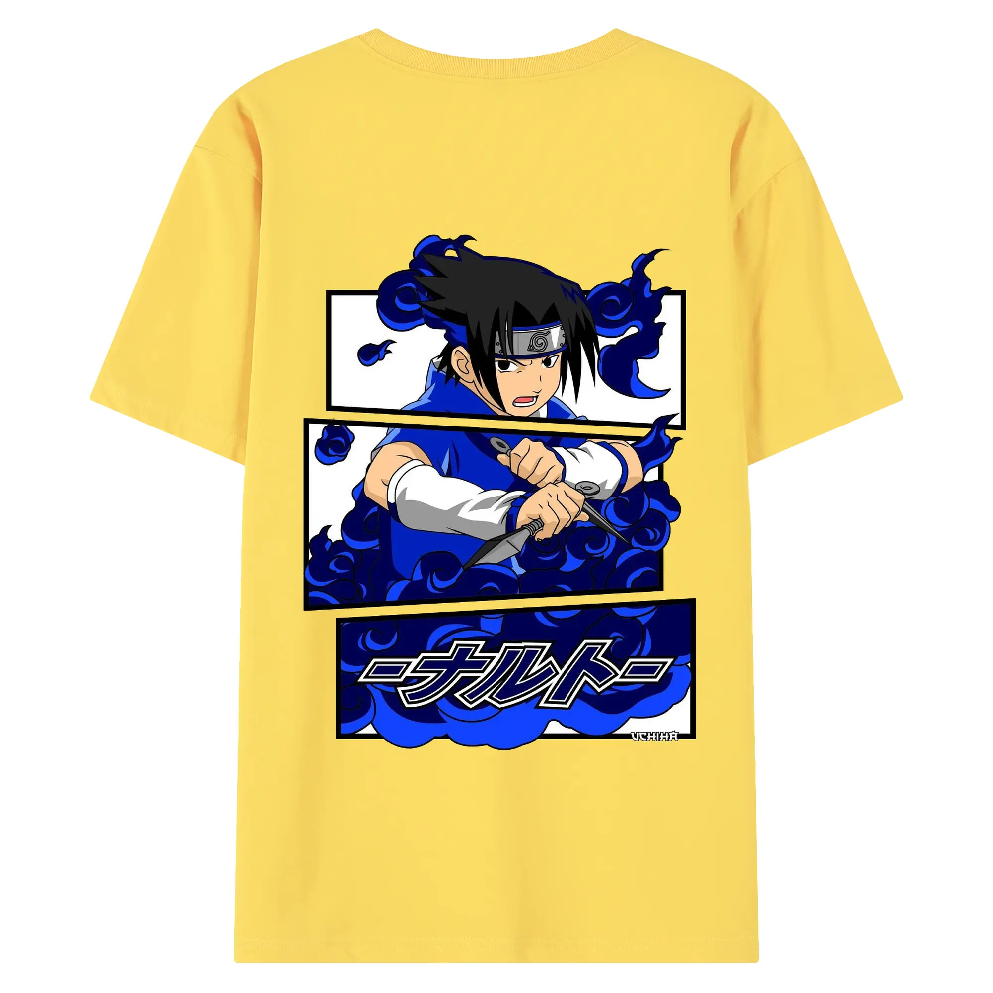 ナルト グッズ うちは サスケ - 綿100% 半袖Tシャツ ・ フロントプリント ・ 快適 通気性 ・ 日常使い 散歩 スポーツ用