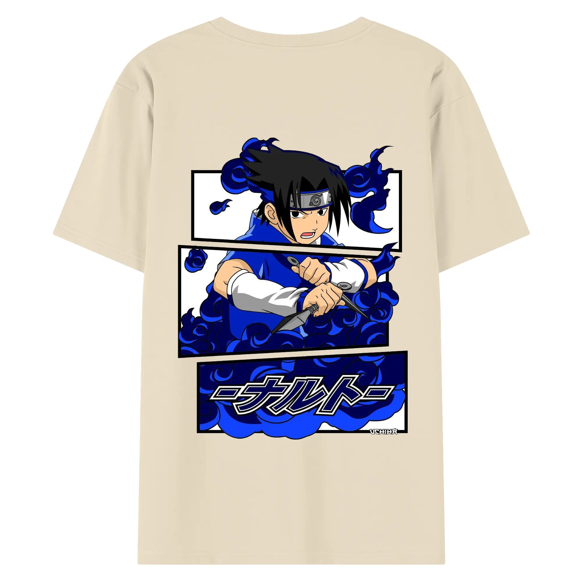 ナルト グッズ うちは サスケ - 綿100% ヴィンテージ風 半袖Tシャツ ・ フロントプリント ・ 柔らか肌触り ・ 通気性 快適 ・ スポーツ カジュアル 外出用