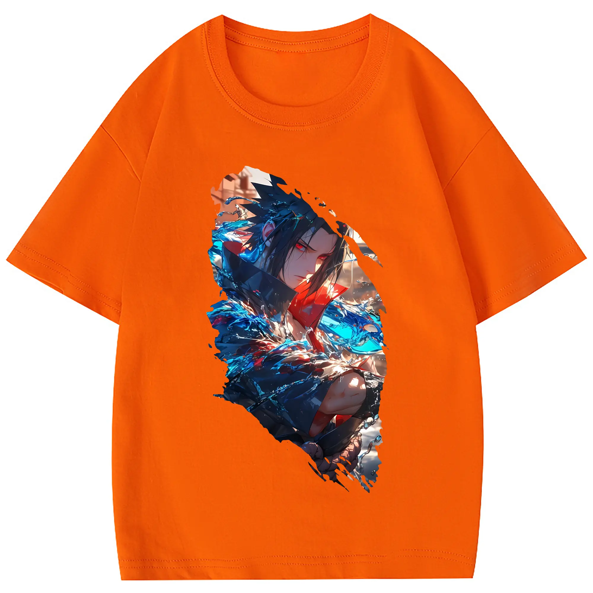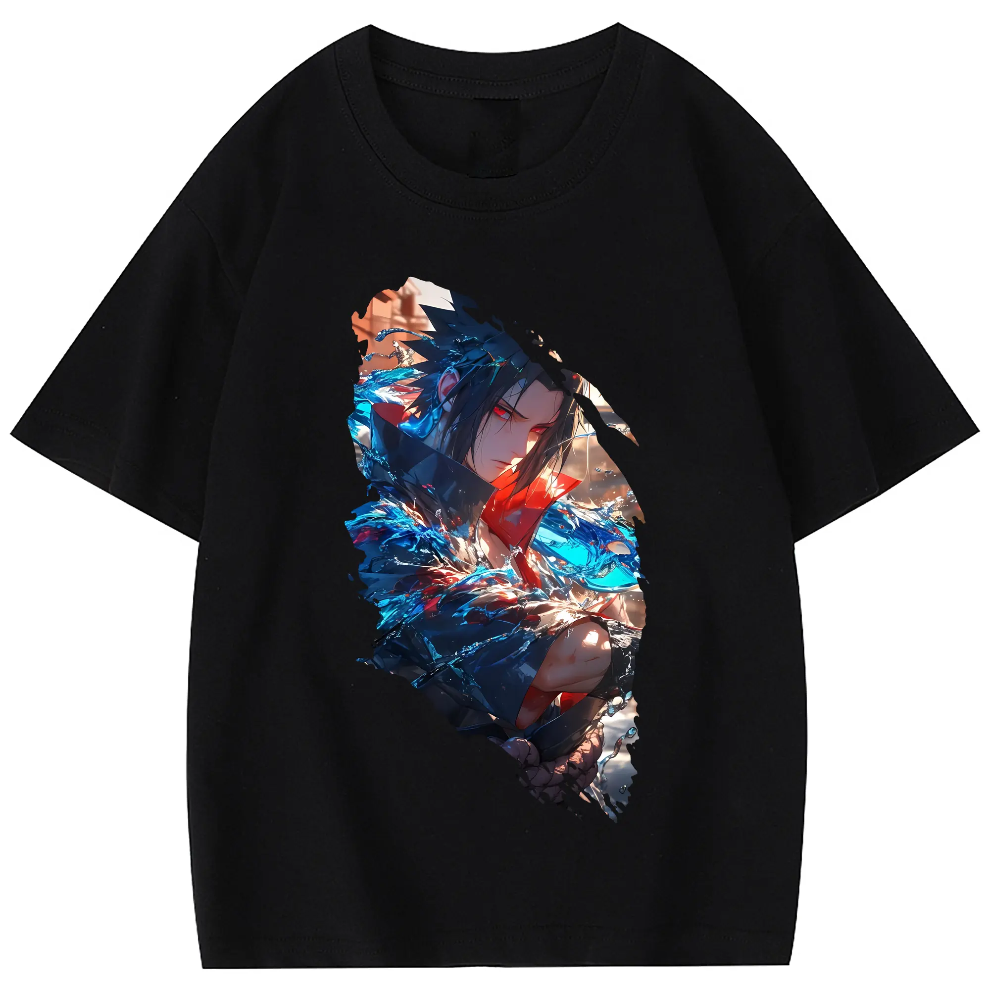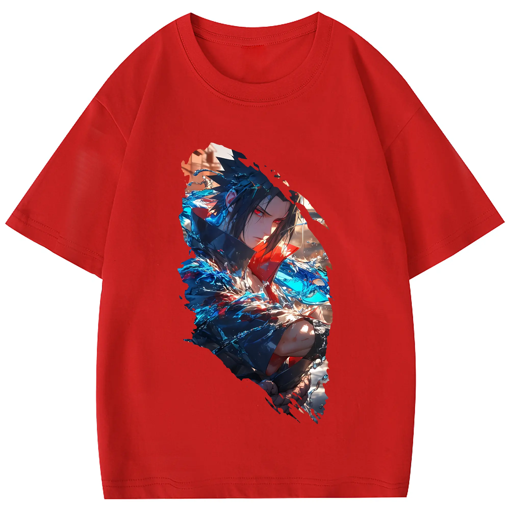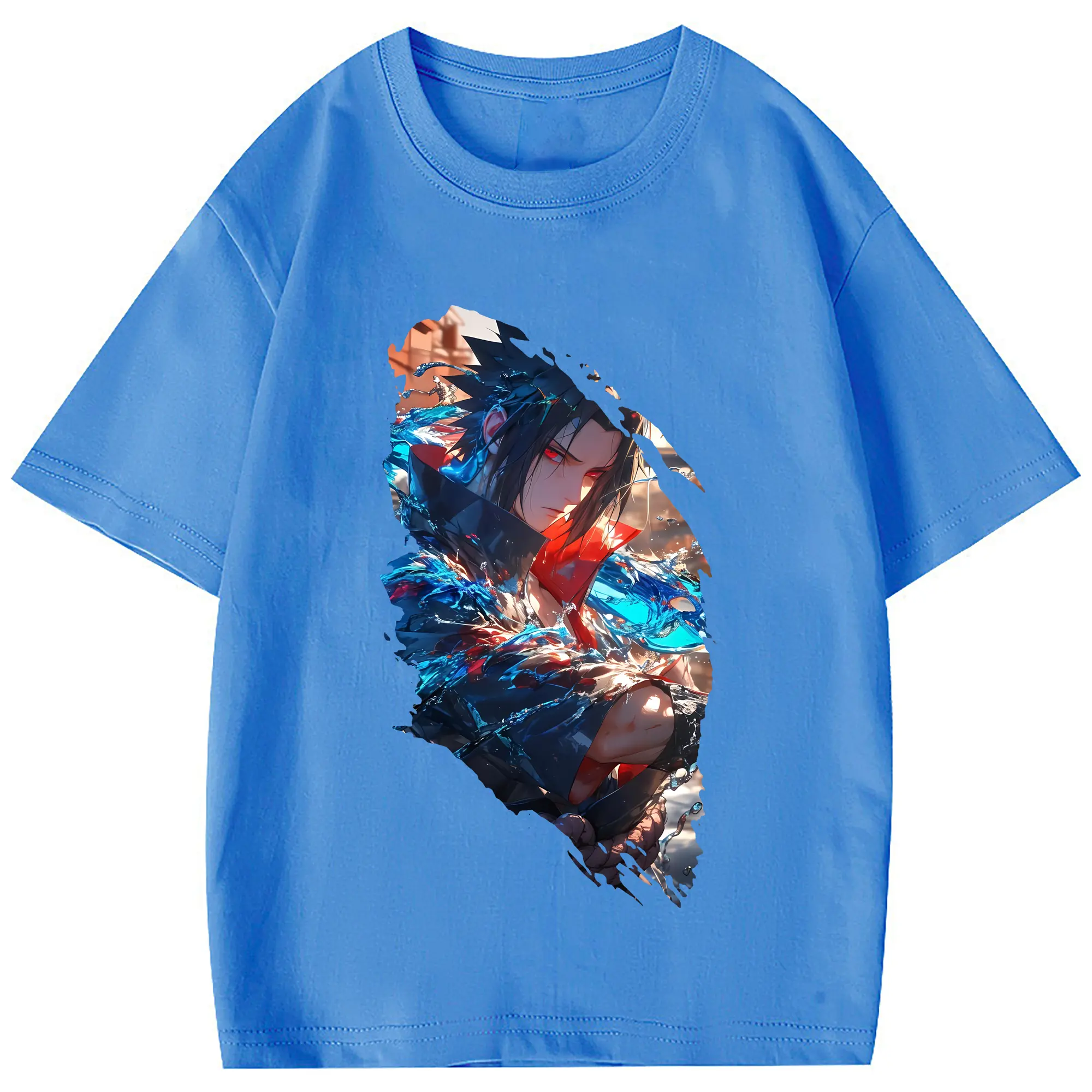 ナルト グッズ うちは サスケ - 綿100% 半袖Tシャツ ・ フロントプリント ・ 快適 通気性 ・ 日常使い 散歩 スポーツ用