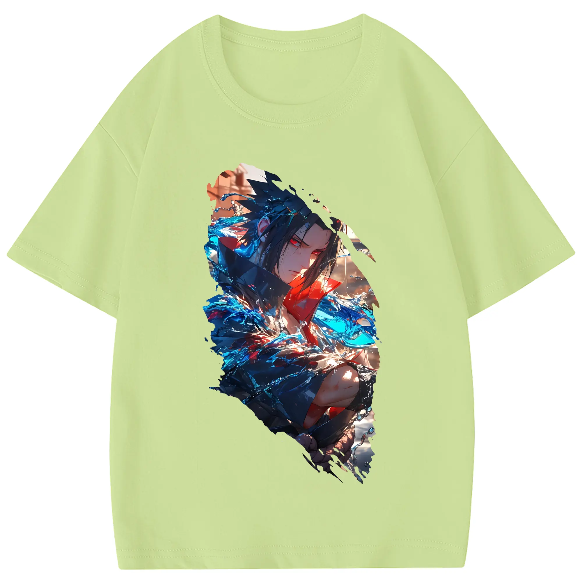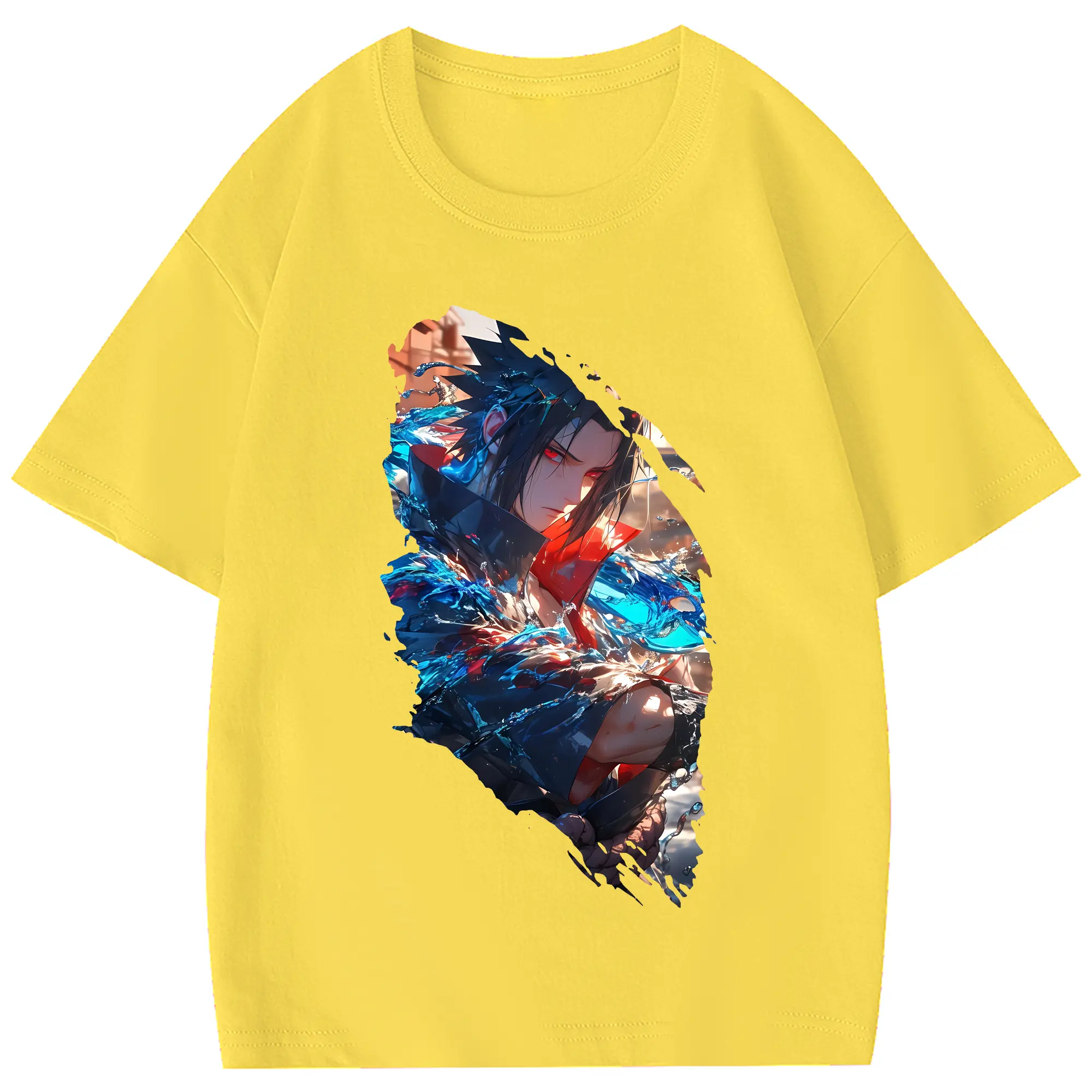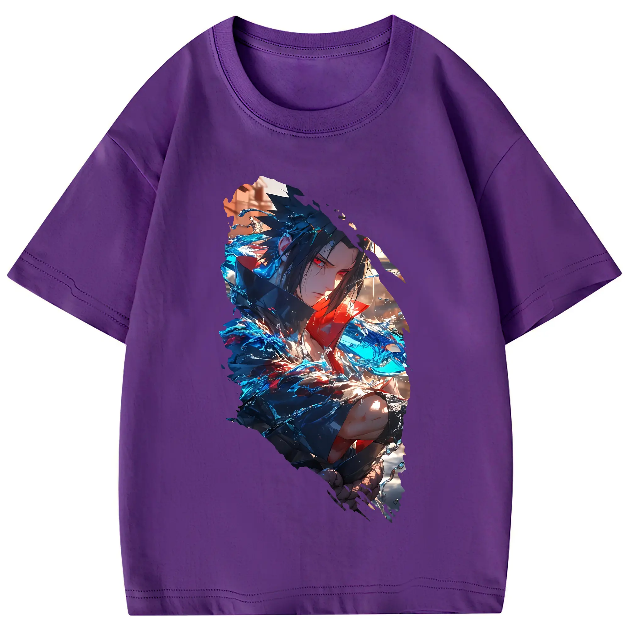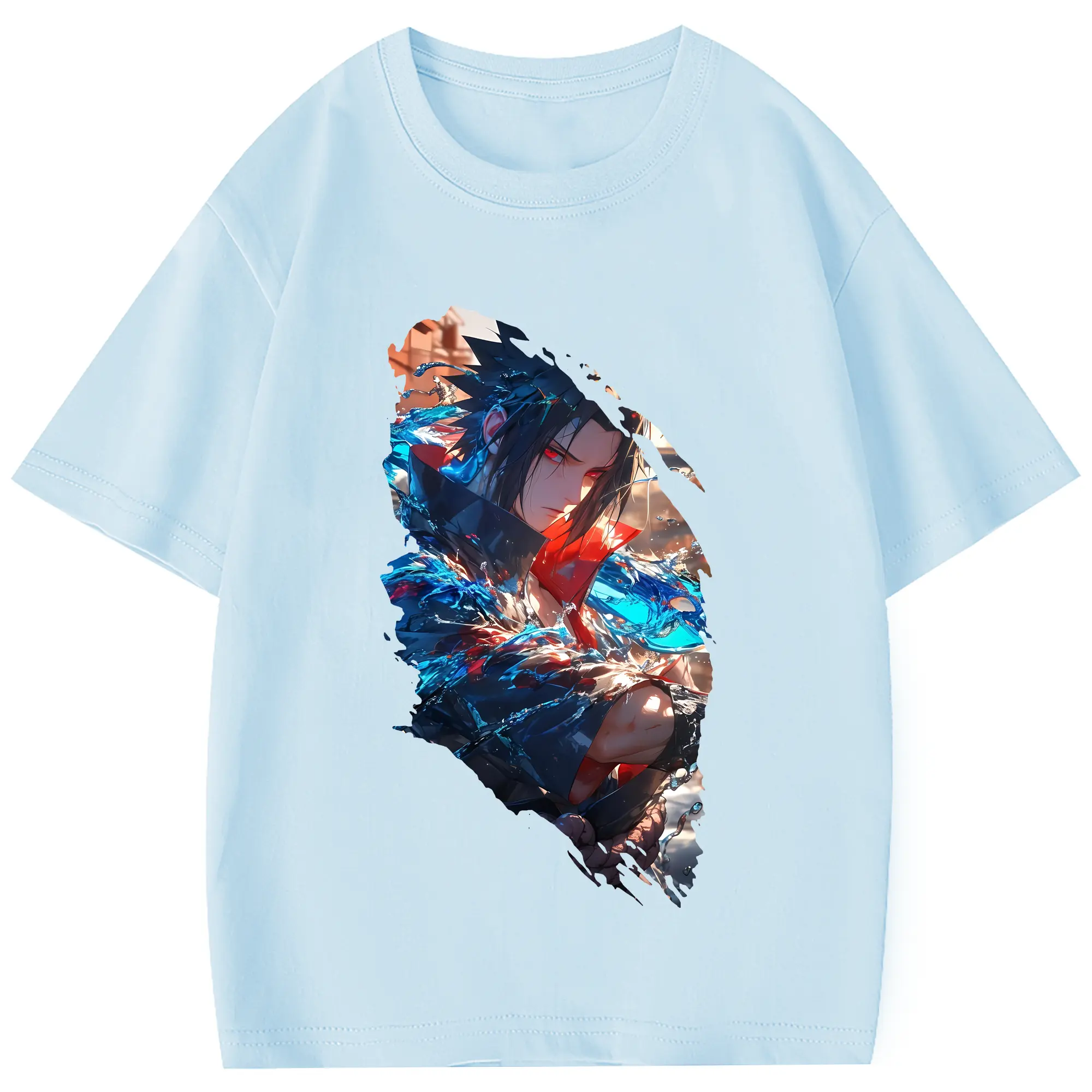 ナルト グッズ うちは サスケ - 綿100% 半袖Tシャツ ・ フロントプリント ・ 快適 通気性 ・ 日常使い 散歩 スポーツ用