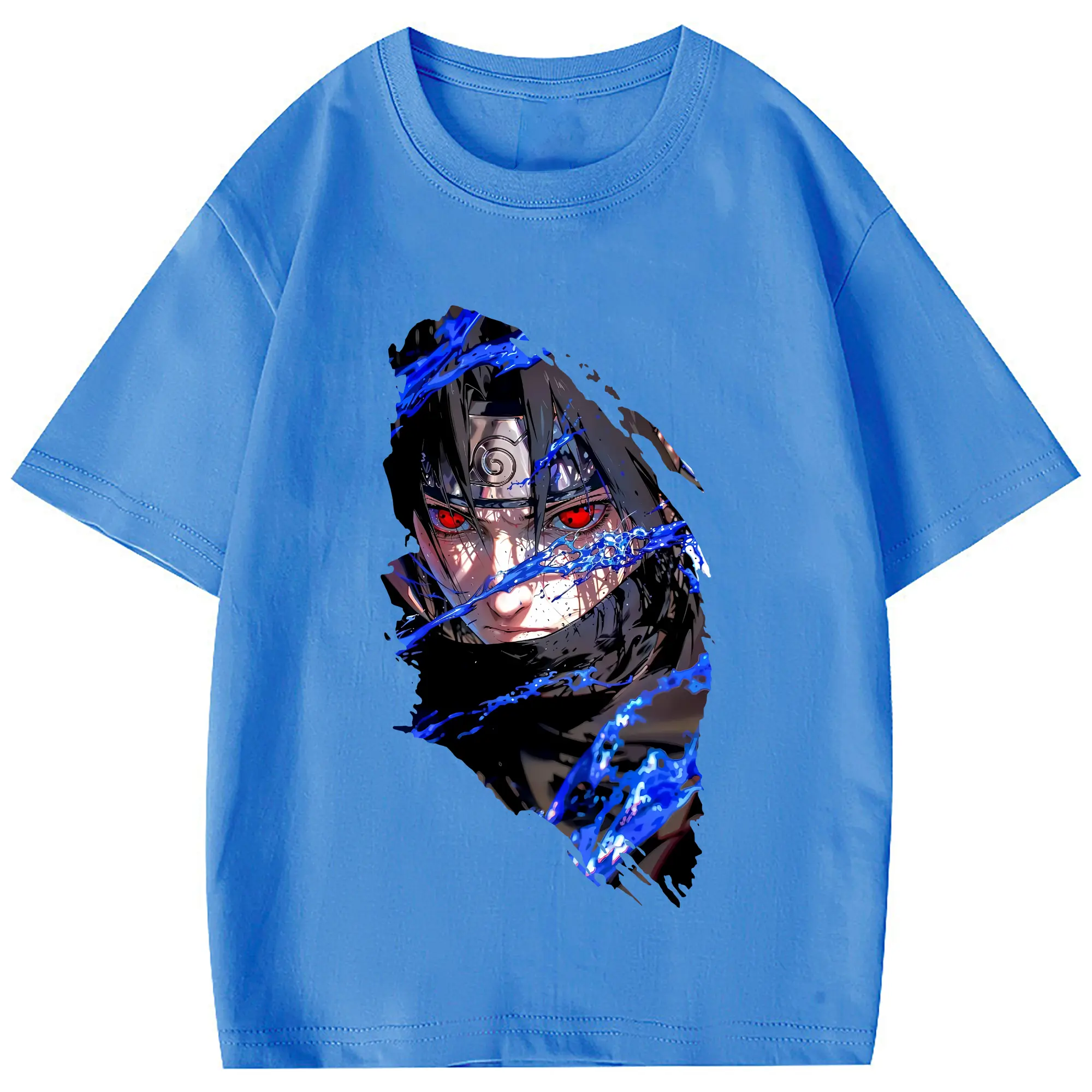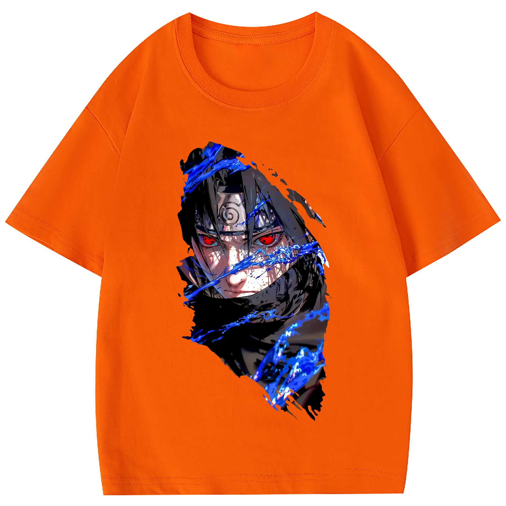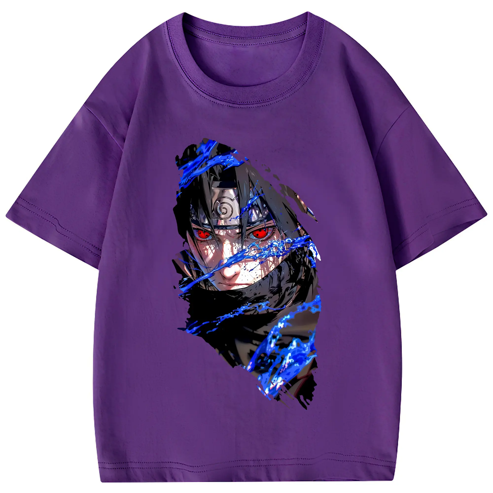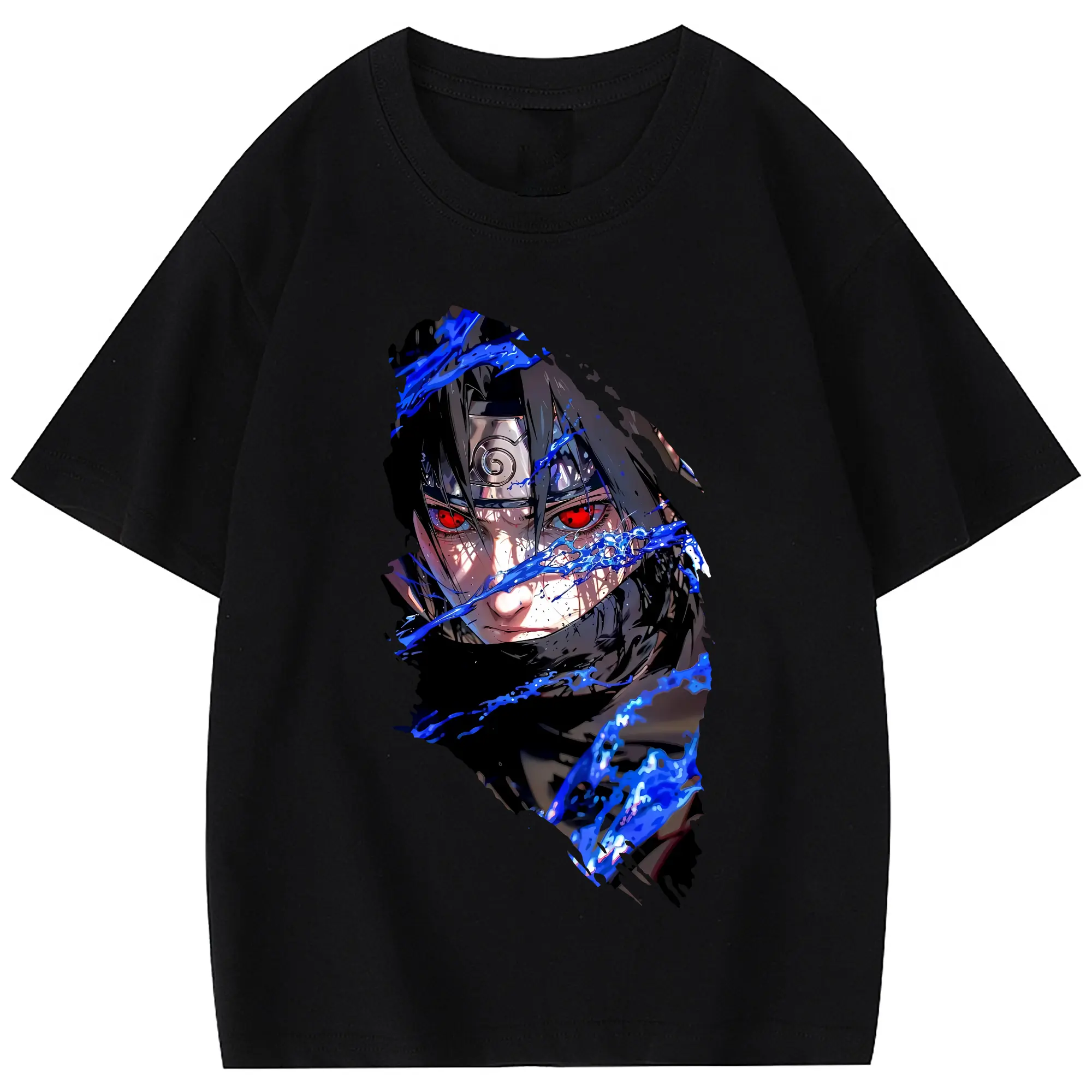 ナルト グッズ うちは サスケ - 綿100% 半袖Tシャツ ・ フロントプリント ・ 快適 通気性 ・ 日常使い 散歩 スポーツ用