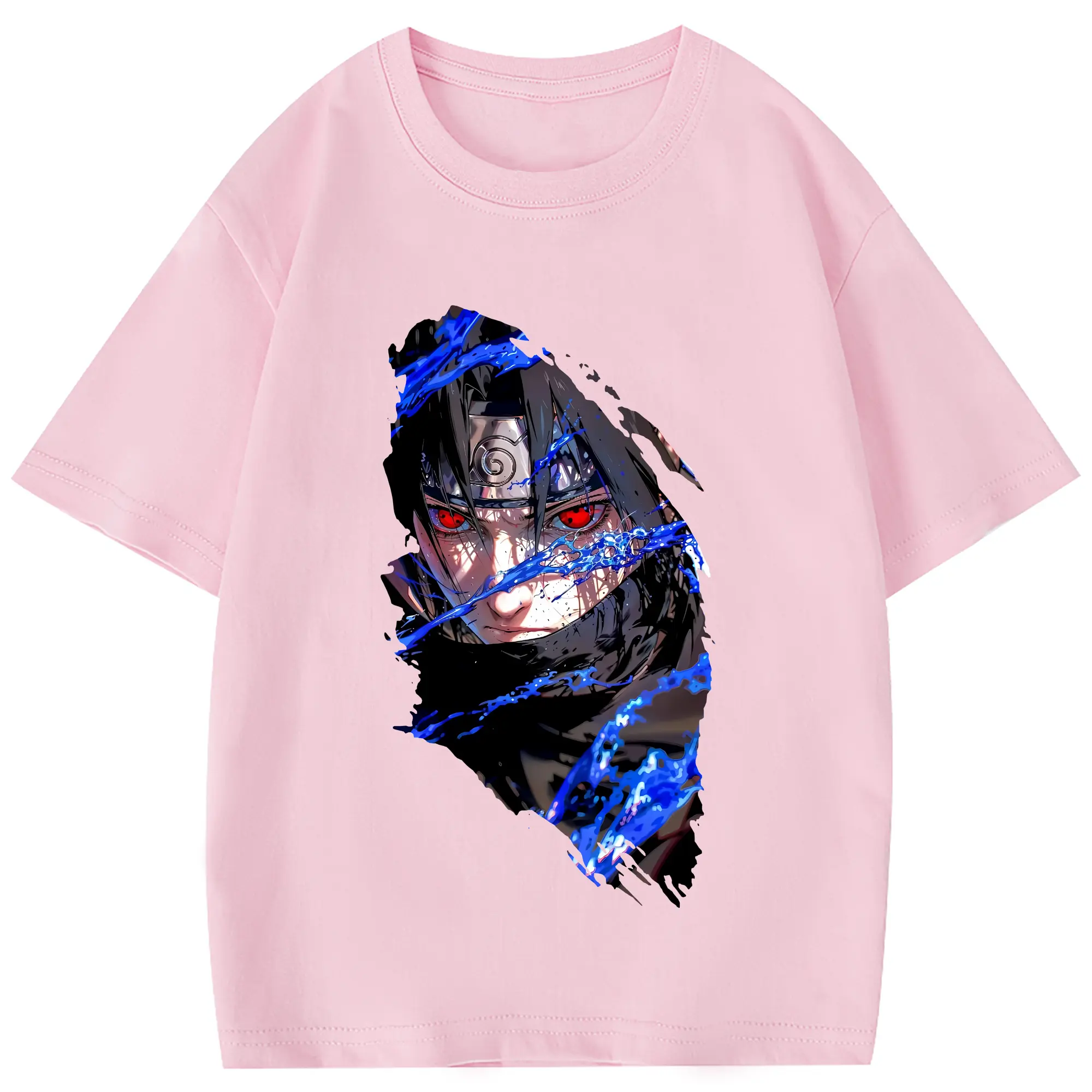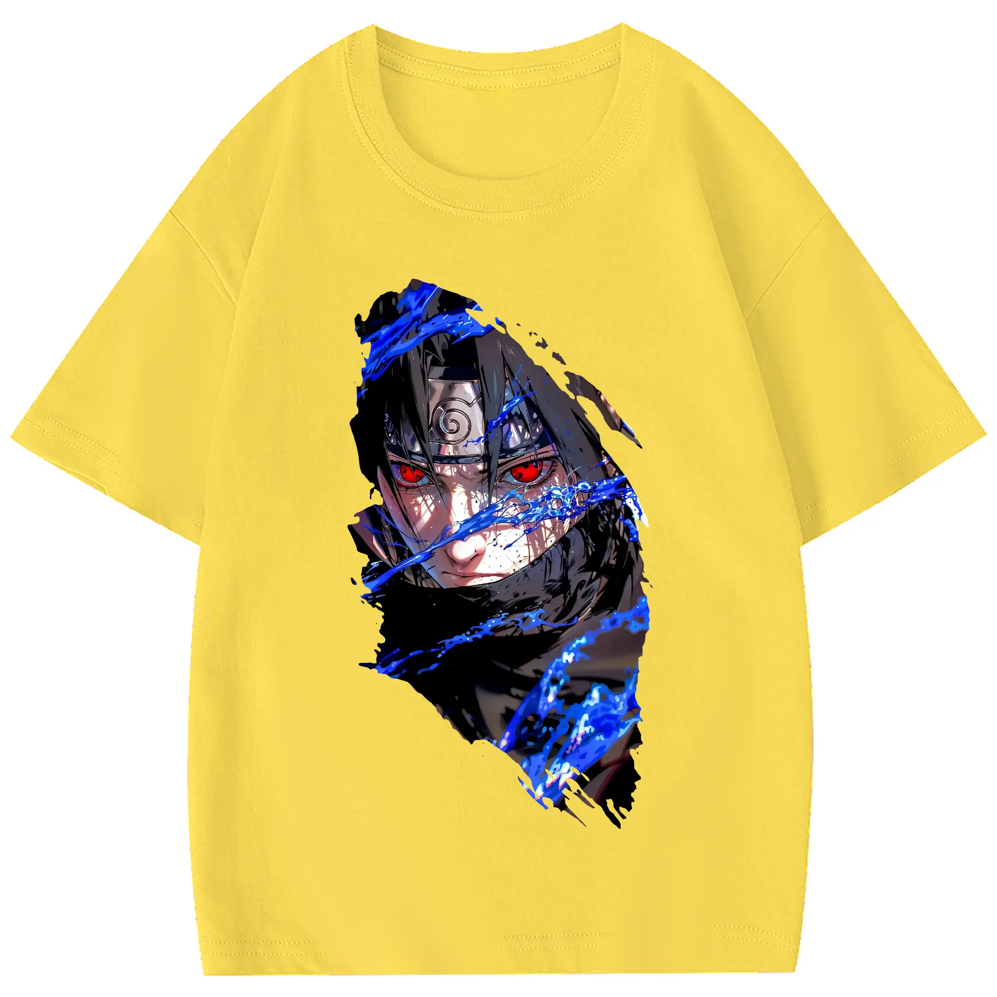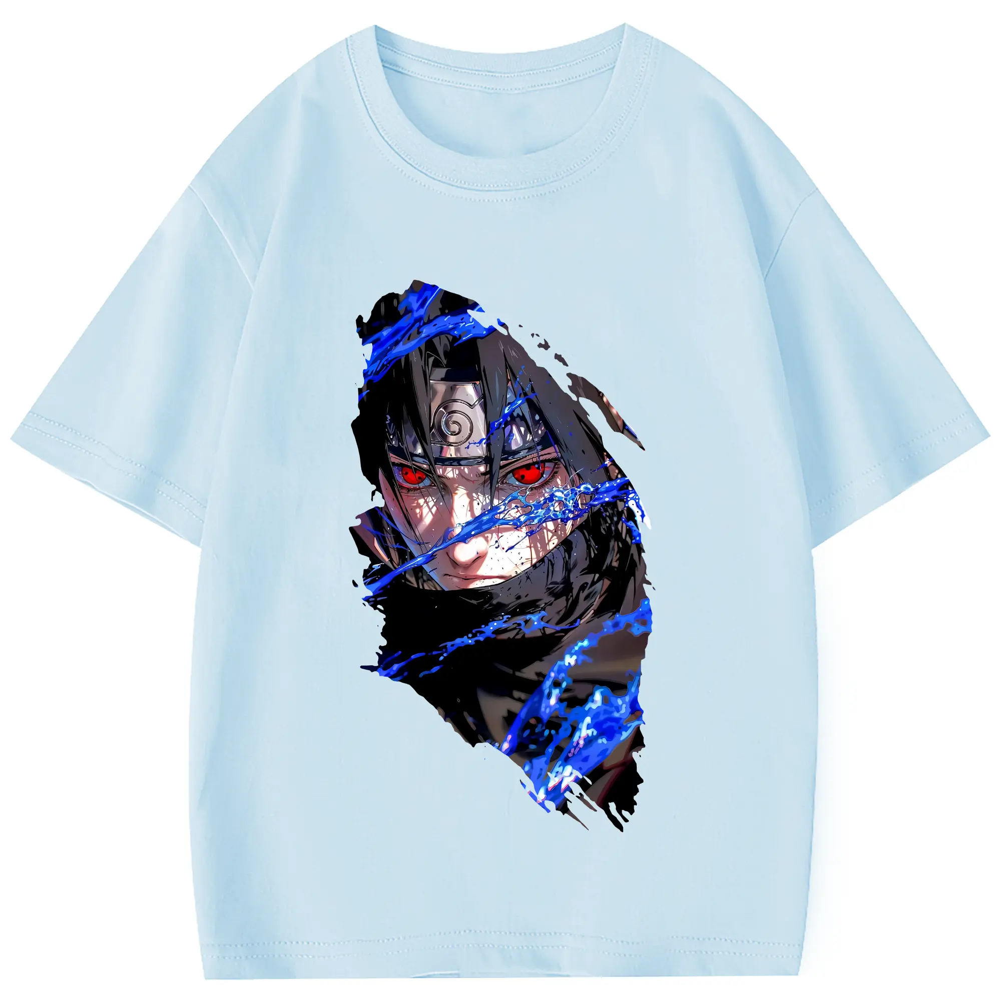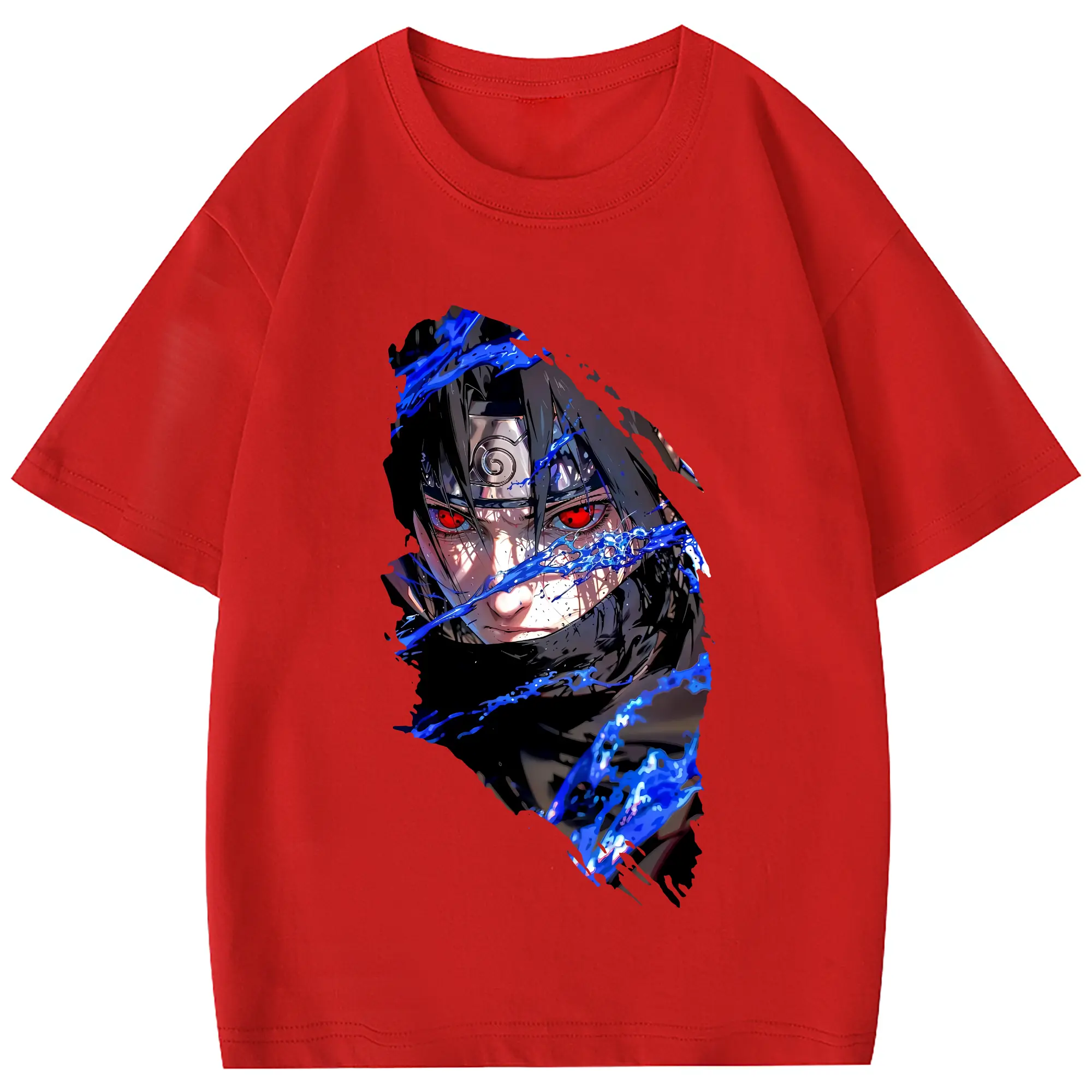 ナルト グッズ うちは サスケ - 綿100% 半袖Tシャツ ・ フロントプリント ・ 快適 通気性 ・ 日常使い 散歩 スポーツ用