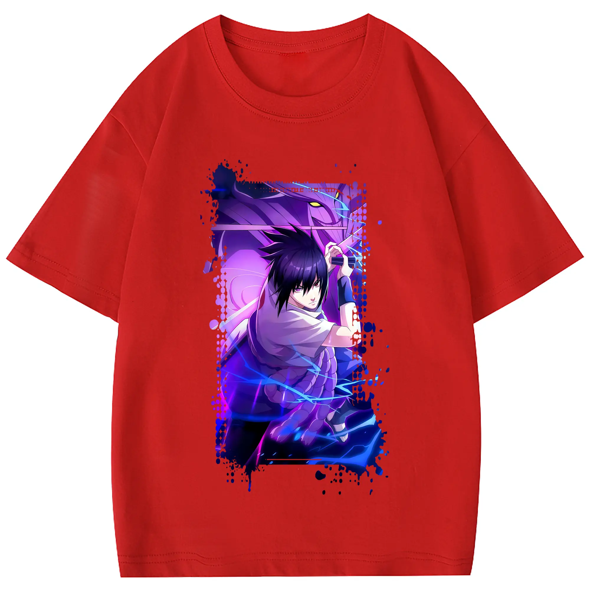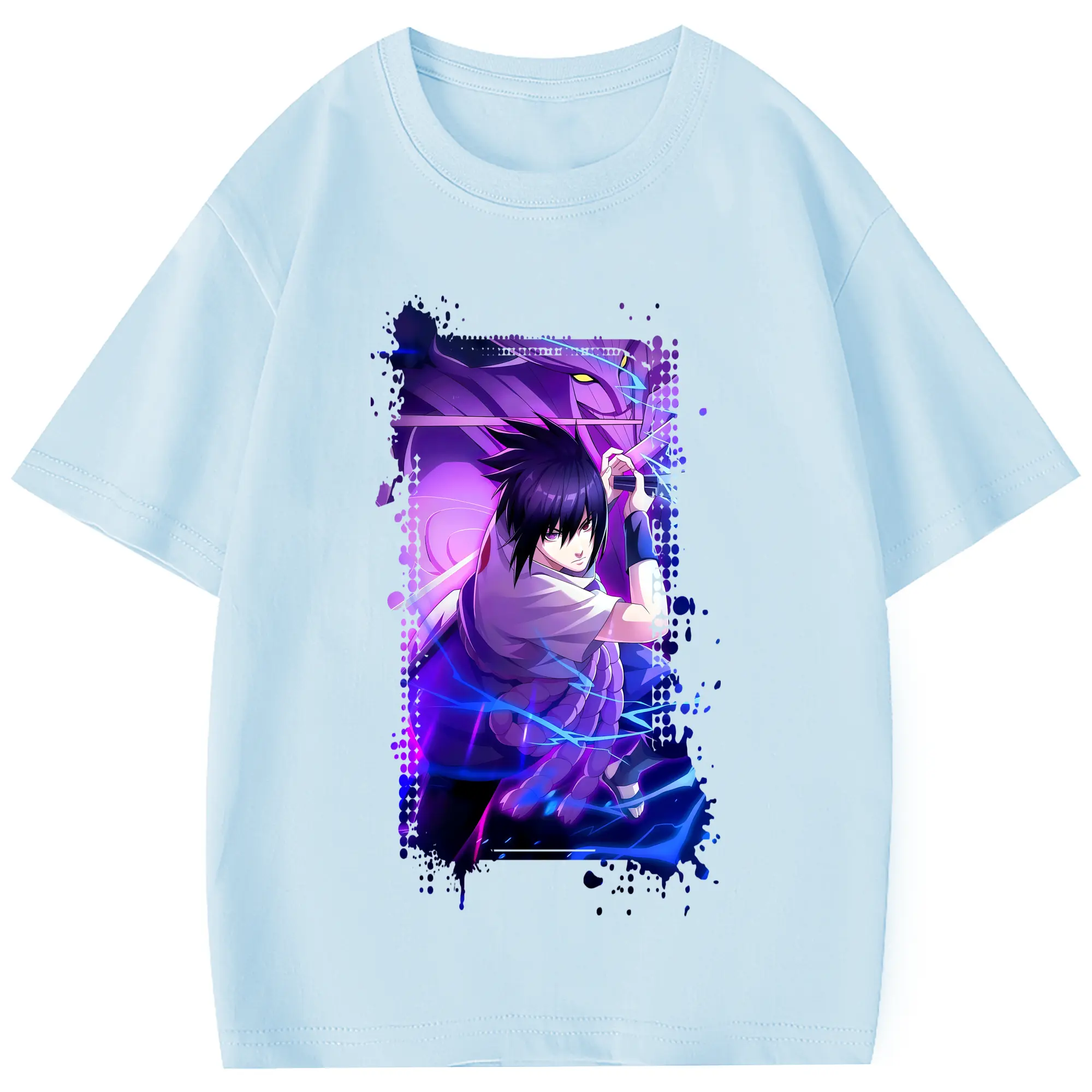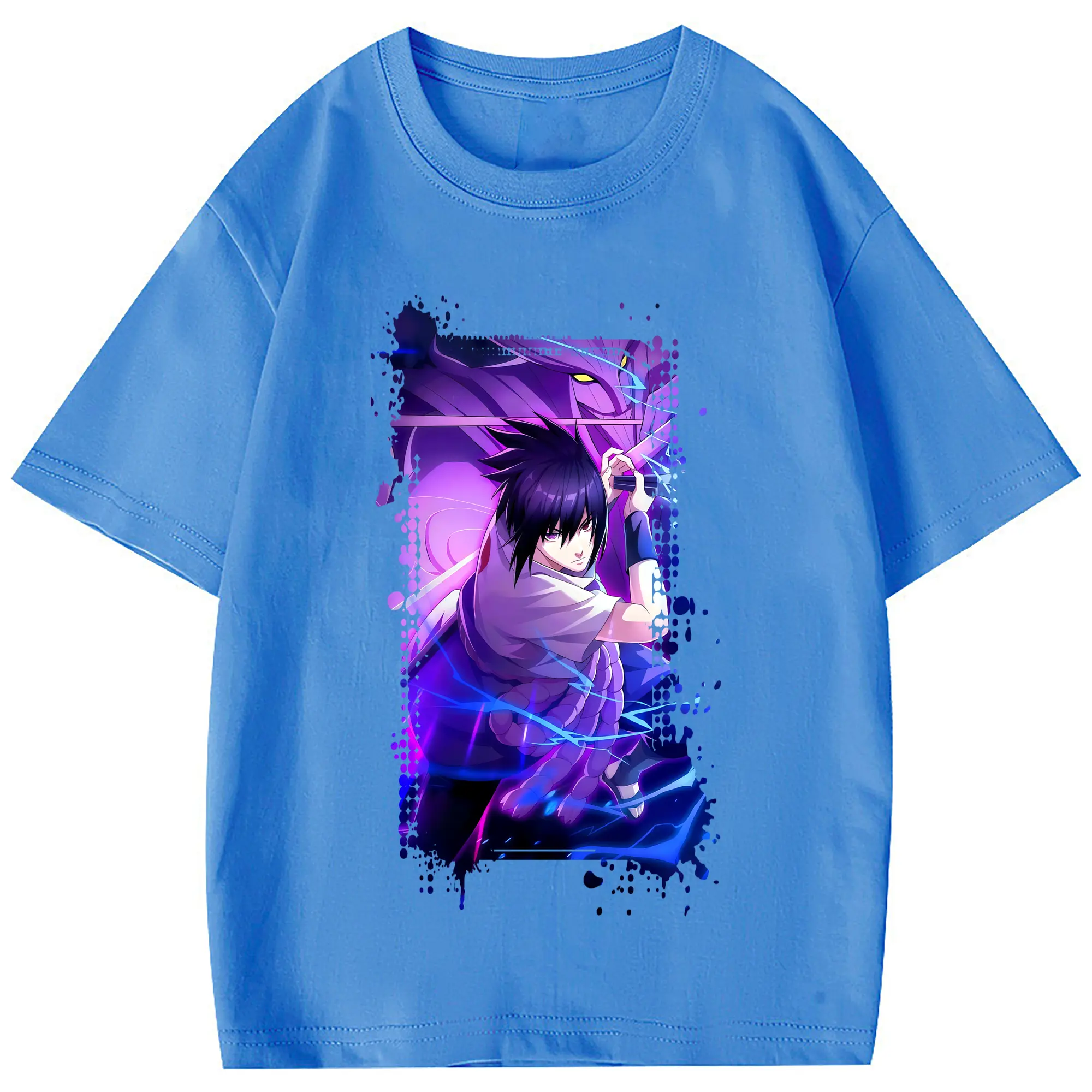 ナルト グッズ うちは サスケ - 綿100% 半袖Tシャツ ・ フロントプリント ・ 快適 通気性 ・ 日常使い 散歩 スポーツ用