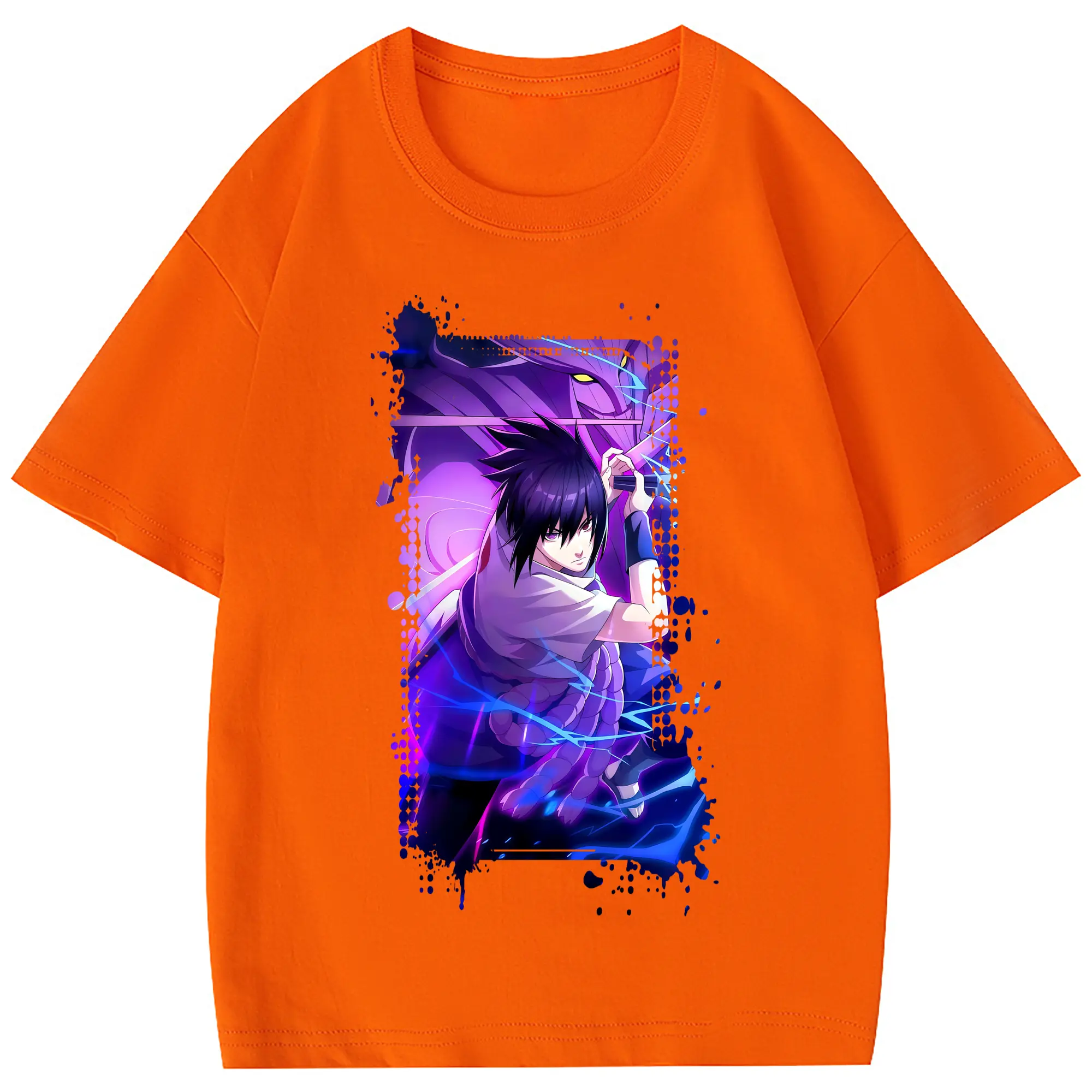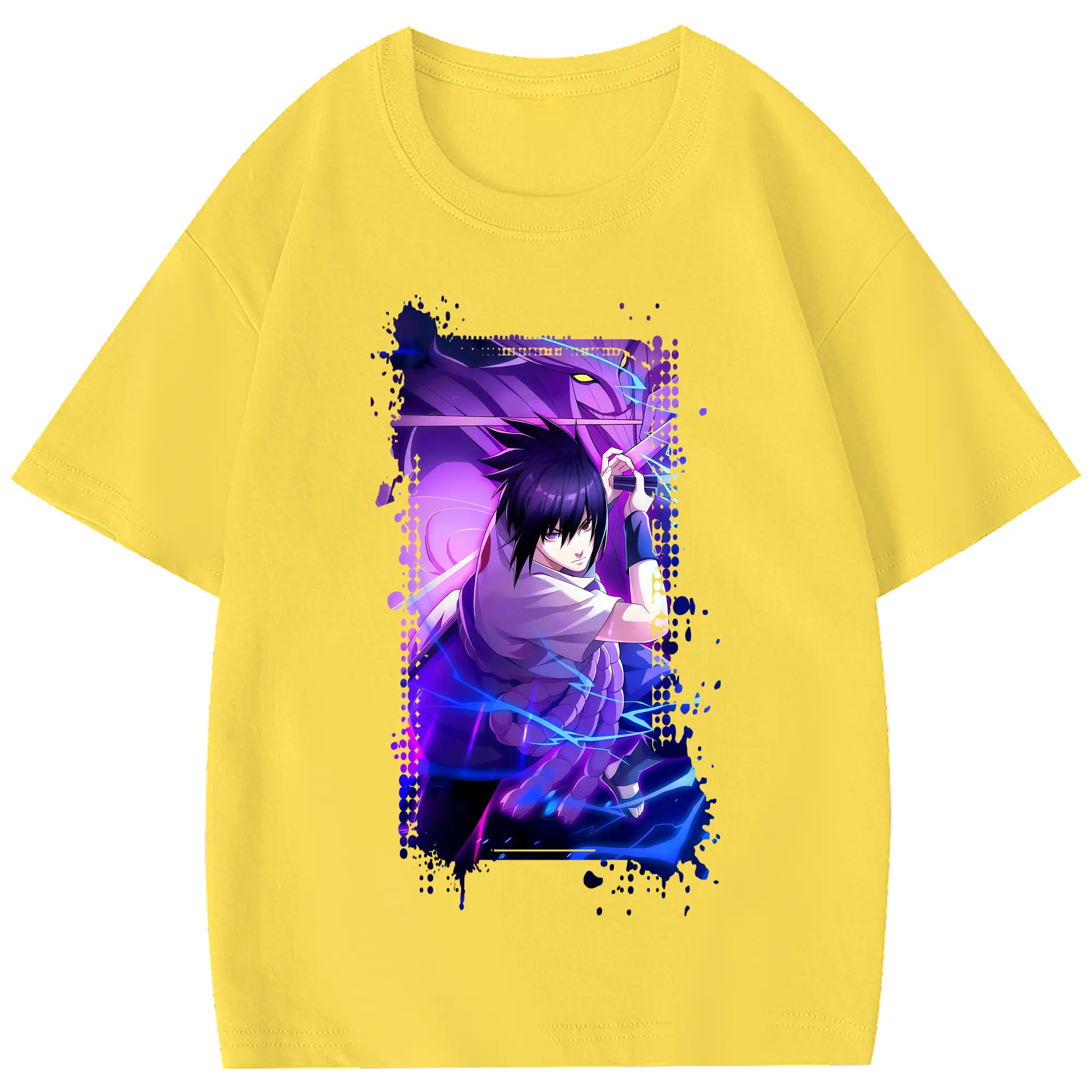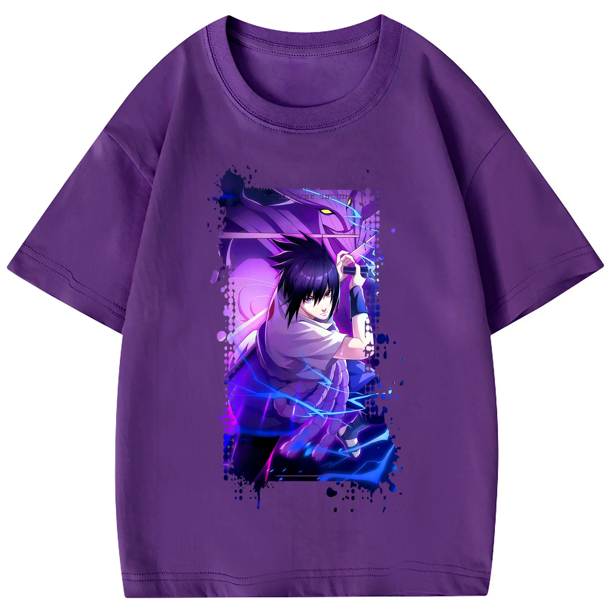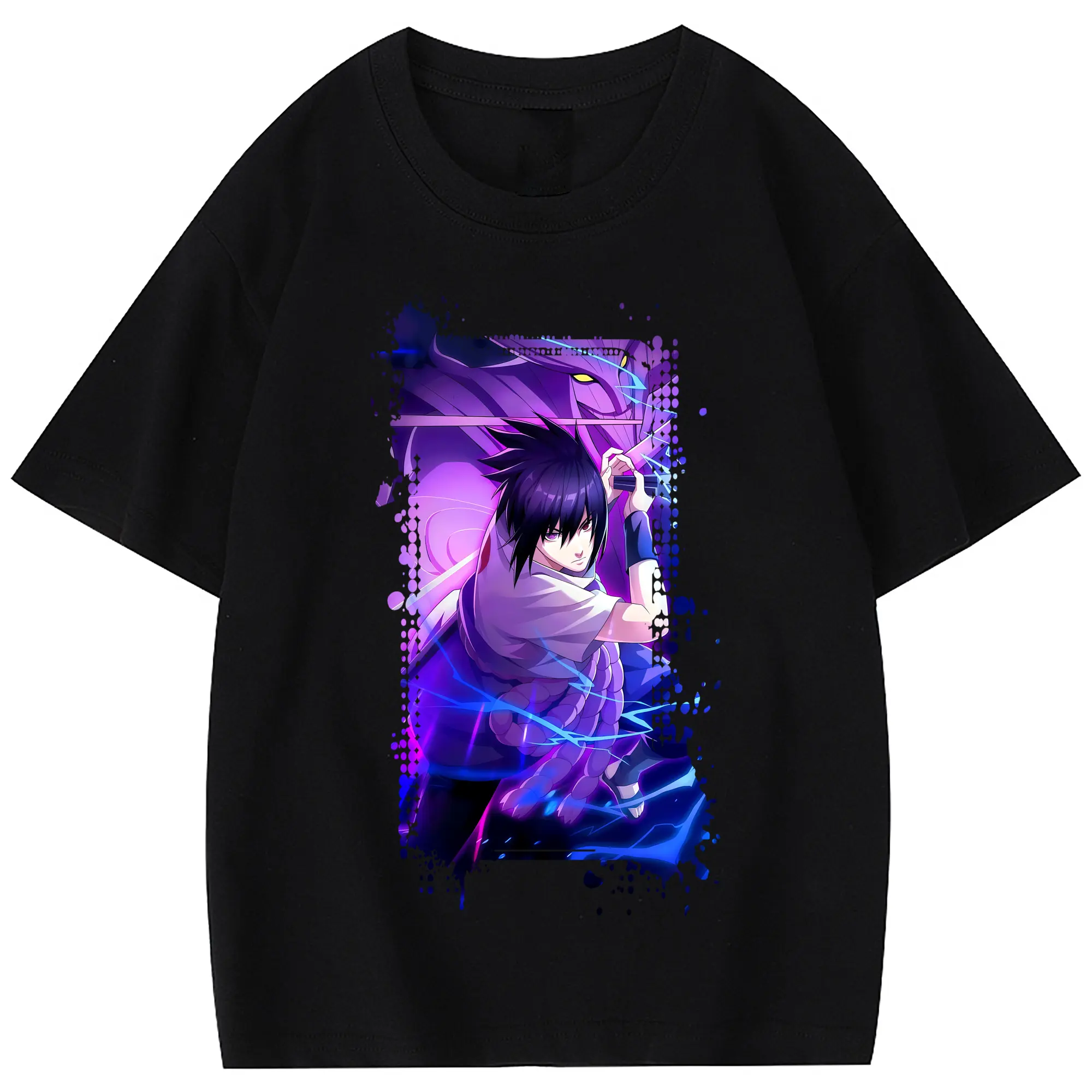 ナルト グッズ うちは サスケ - 綿100% 半袖Tシャツ ・ フロントプリント ・ 快適 通気性 ・ 日常使い 散歩 スポーツ用