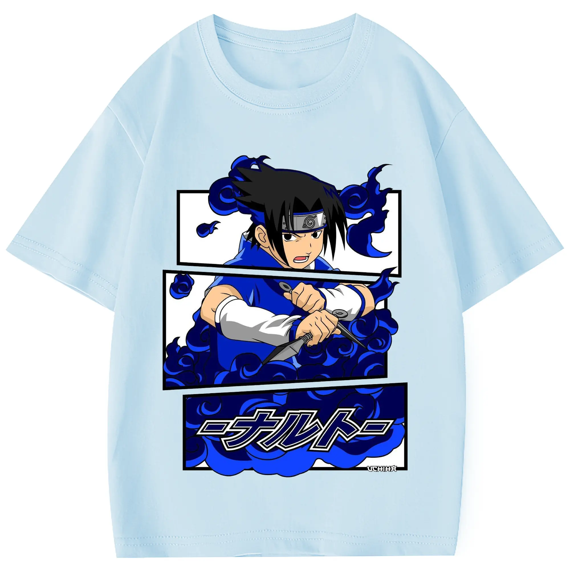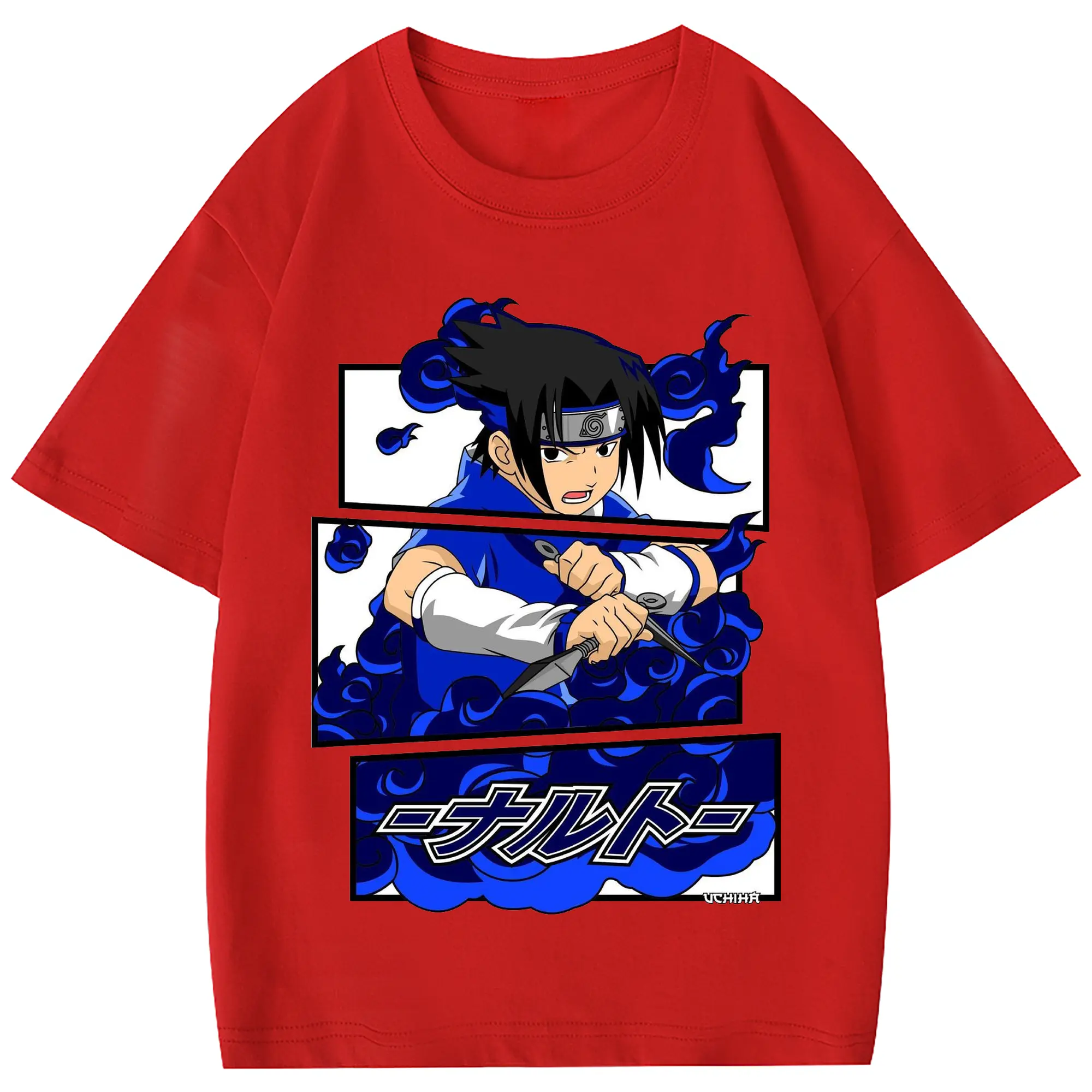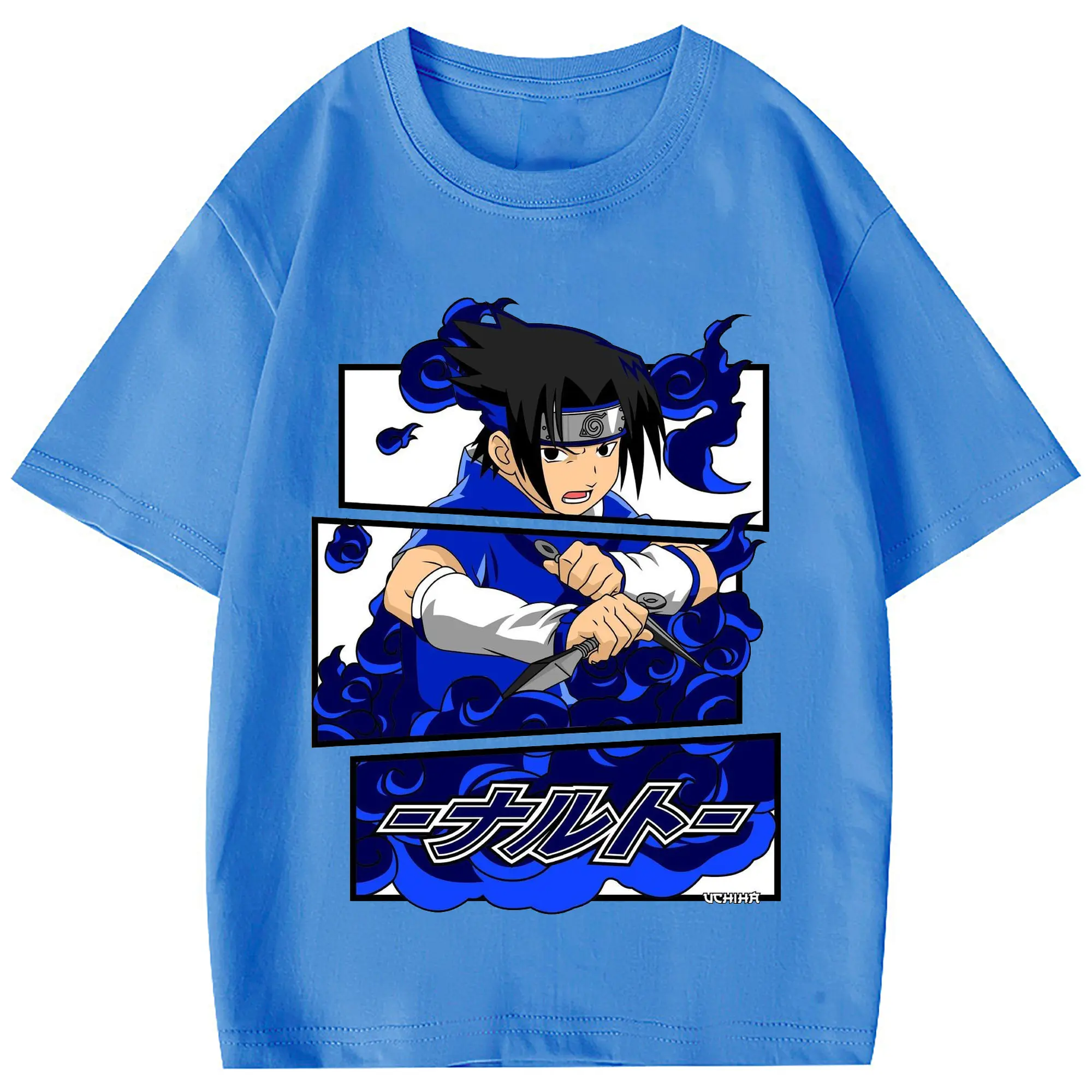 ナルト グッズ うちは サスケ - 綿100% 半袖Tシャツ ・ フロントプリント ・ 快適 通気性 ・ 日常使い 散歩 スポーツ用