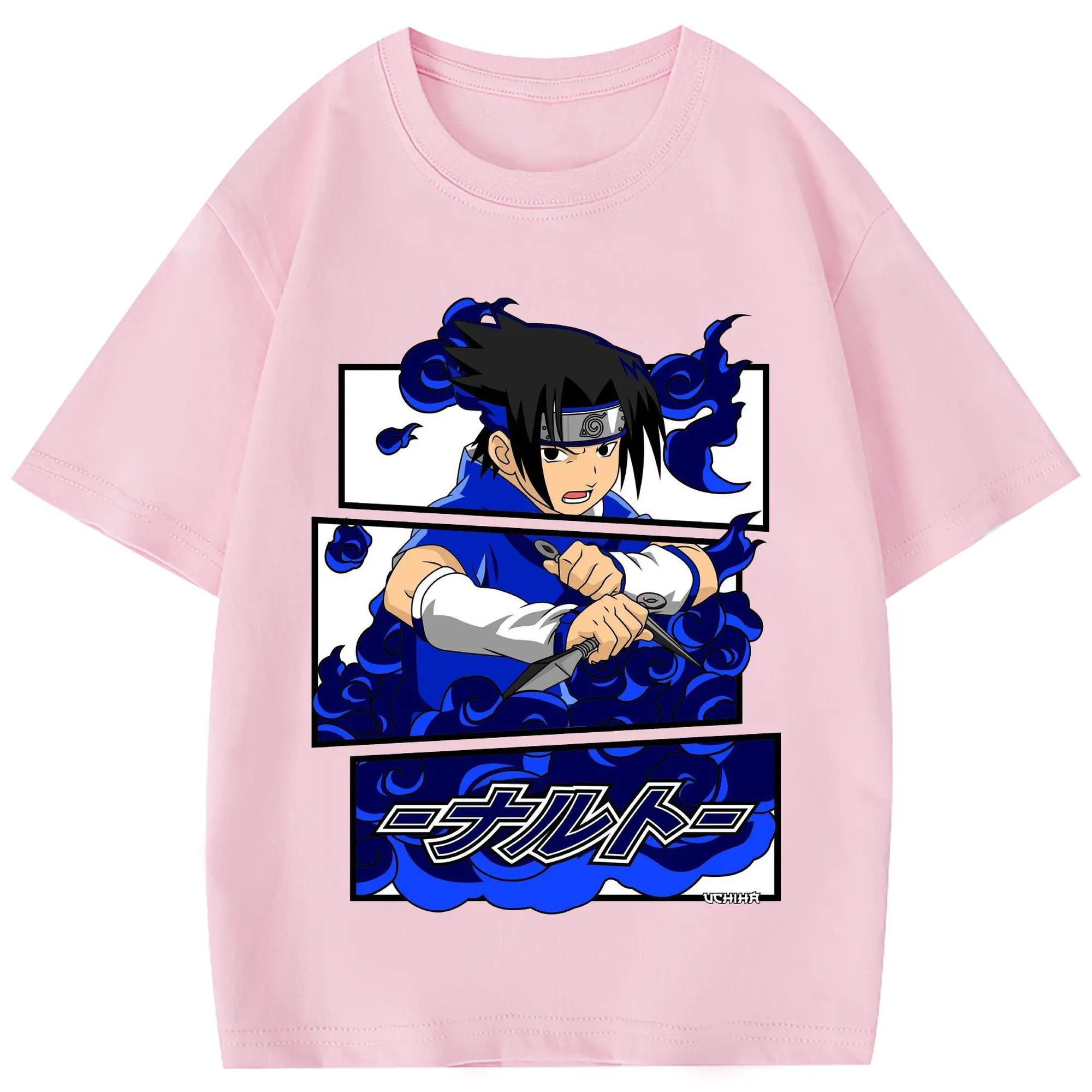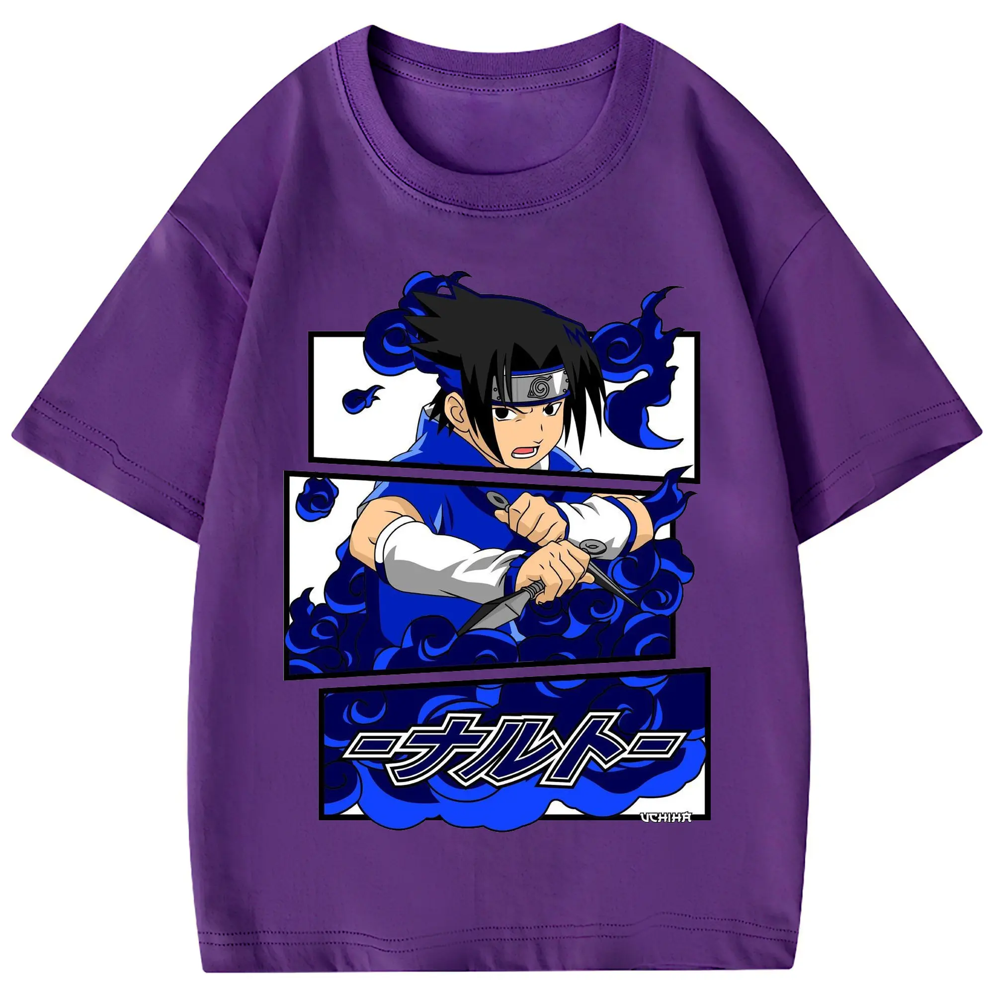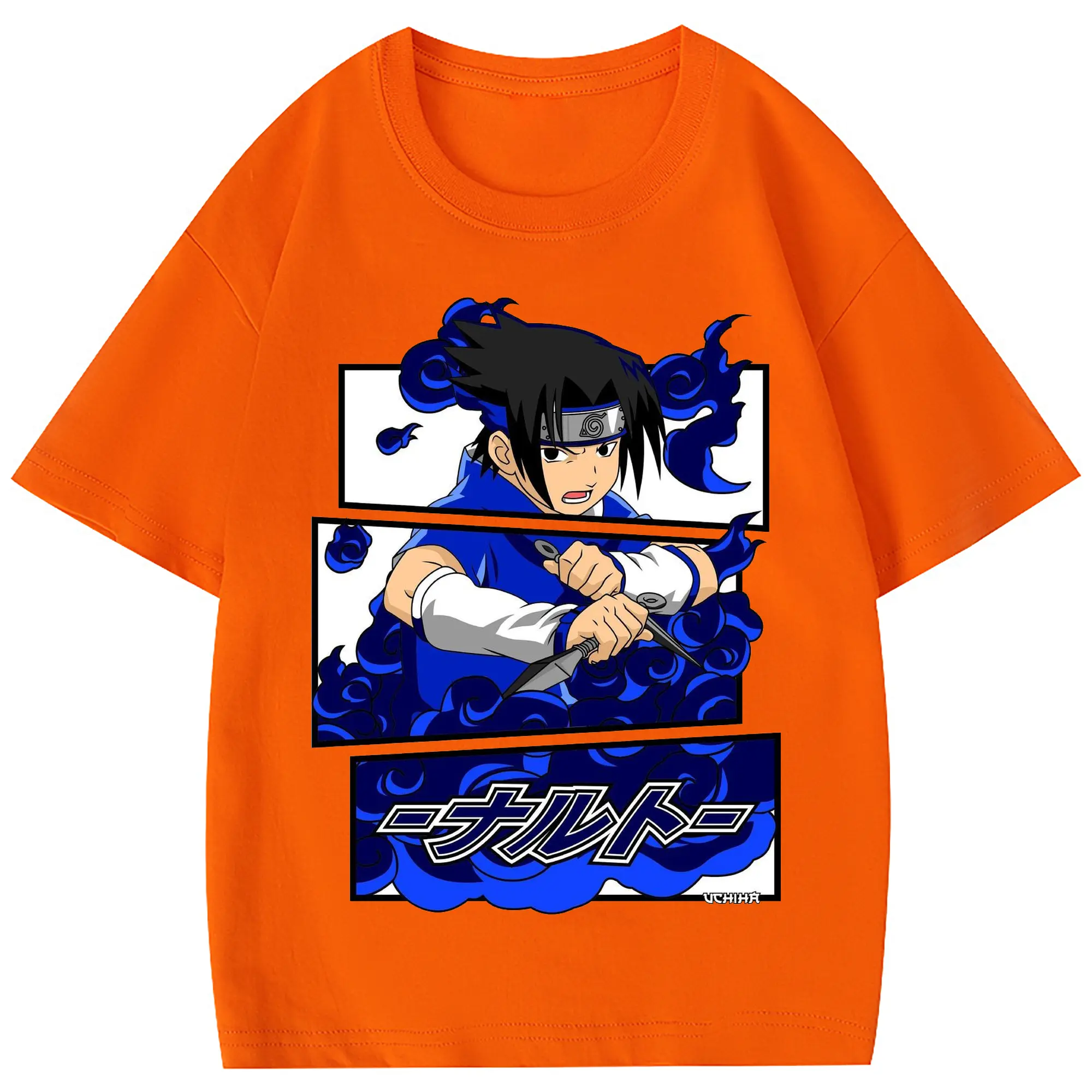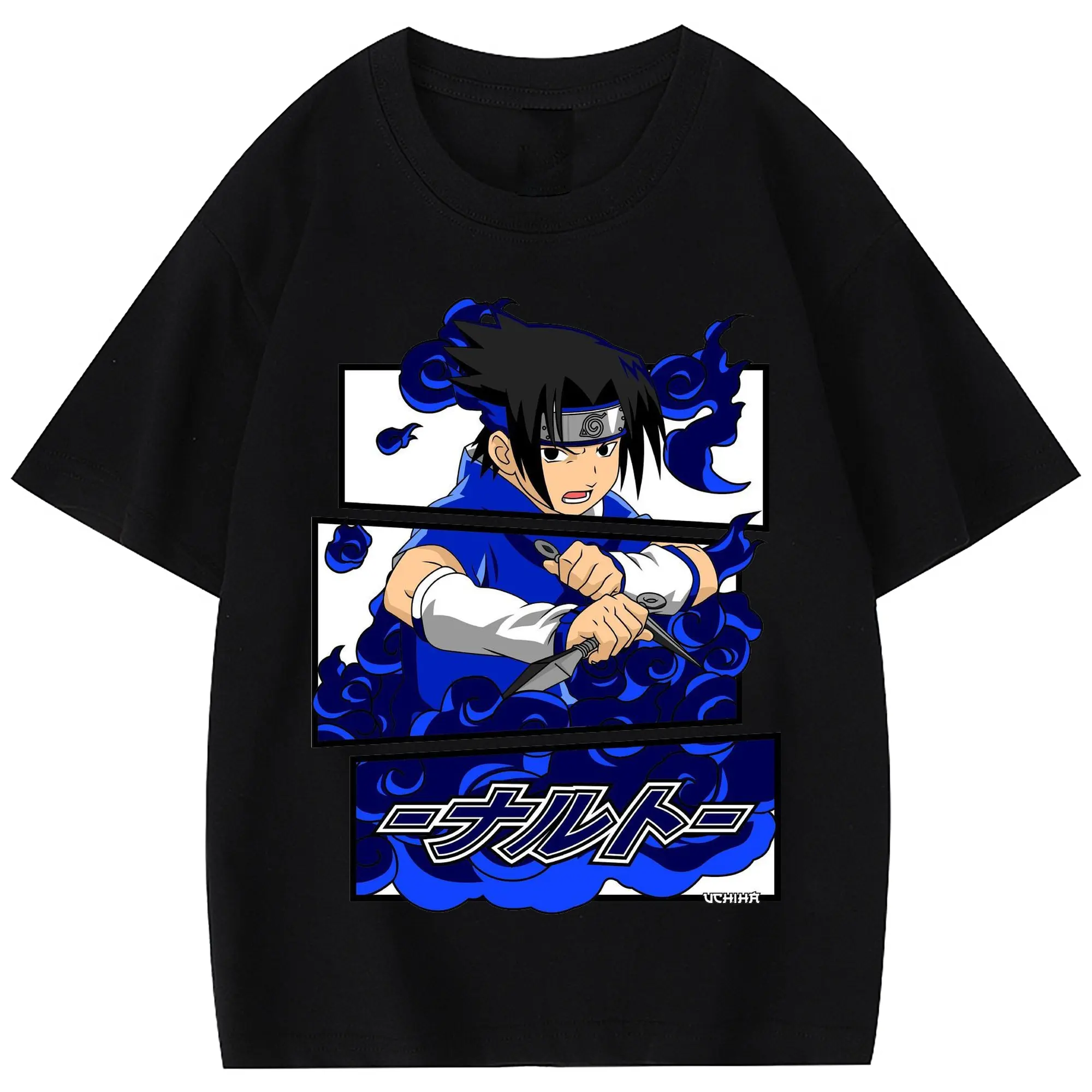 ナルト グッズ うちは サスケ - 綿100% 半袖Tシャツ ・ フロントプリント ・ 快適 通気性 ・ 日常使い 散歩 スポーツ用