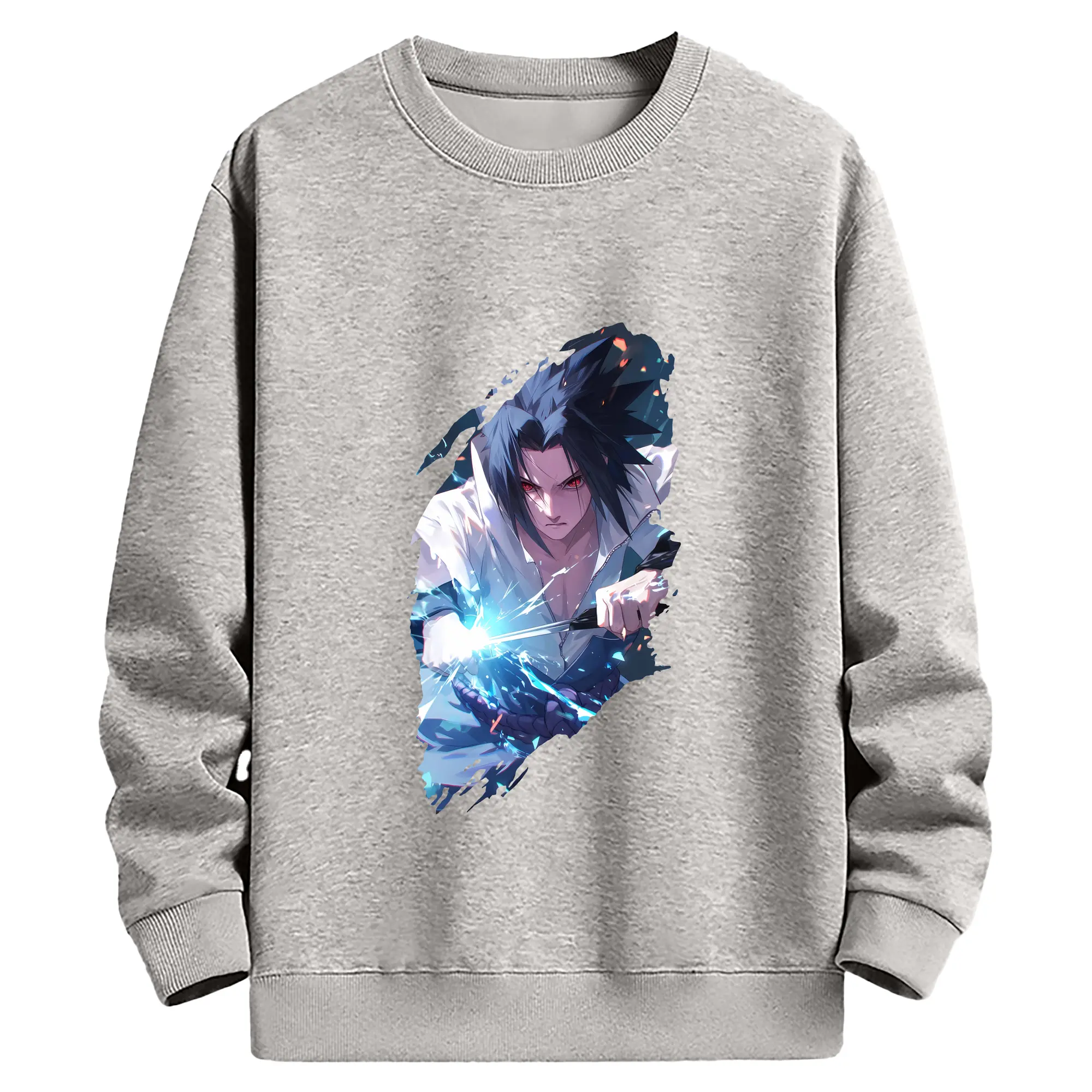 ナルト グッズ うちは サスケ - 薄手 クルーネック スウェット 裏毛260g · ポリエステル 春秋向け カジュアル 男女兼用 · トレーナー デイリー スポーツ 散歩に最適