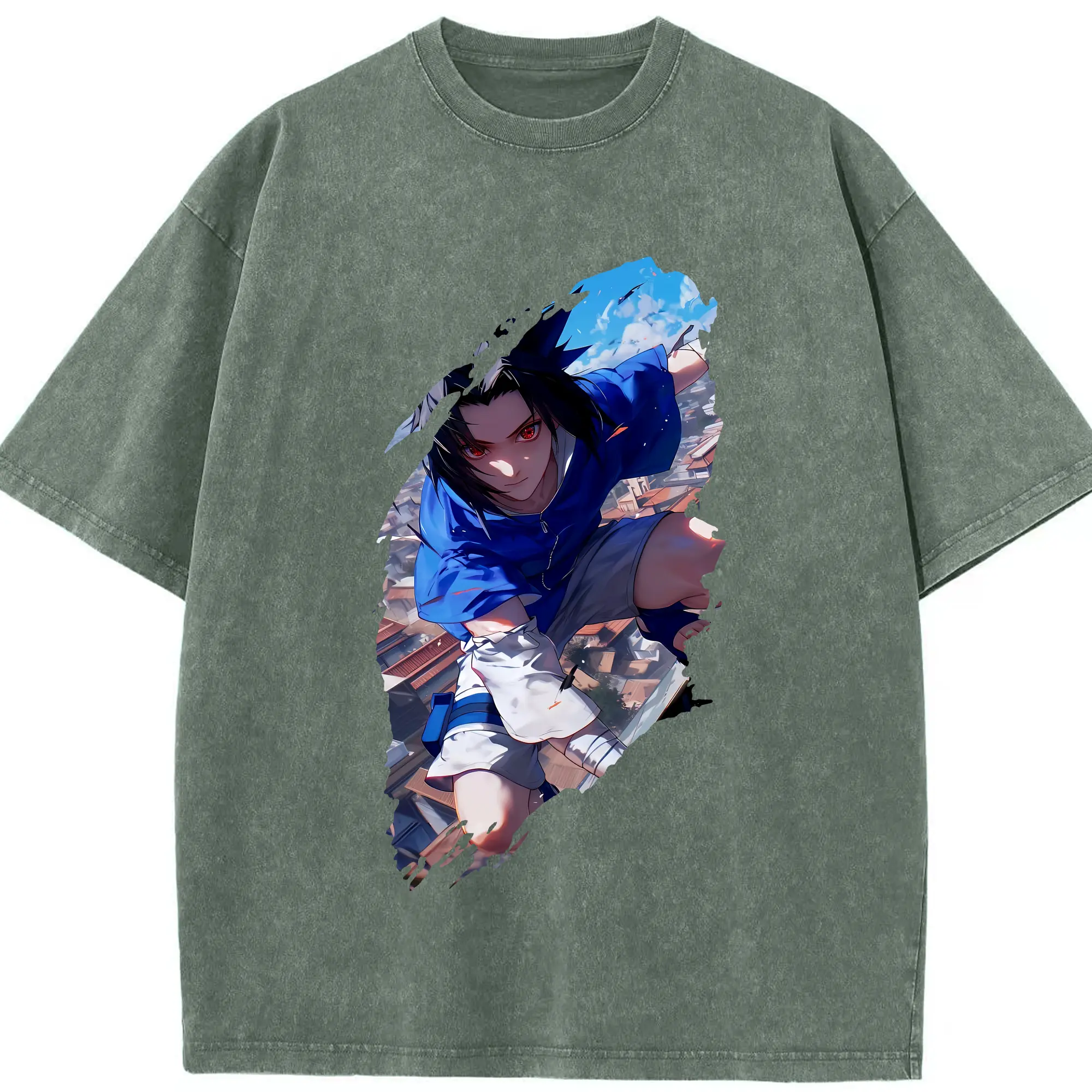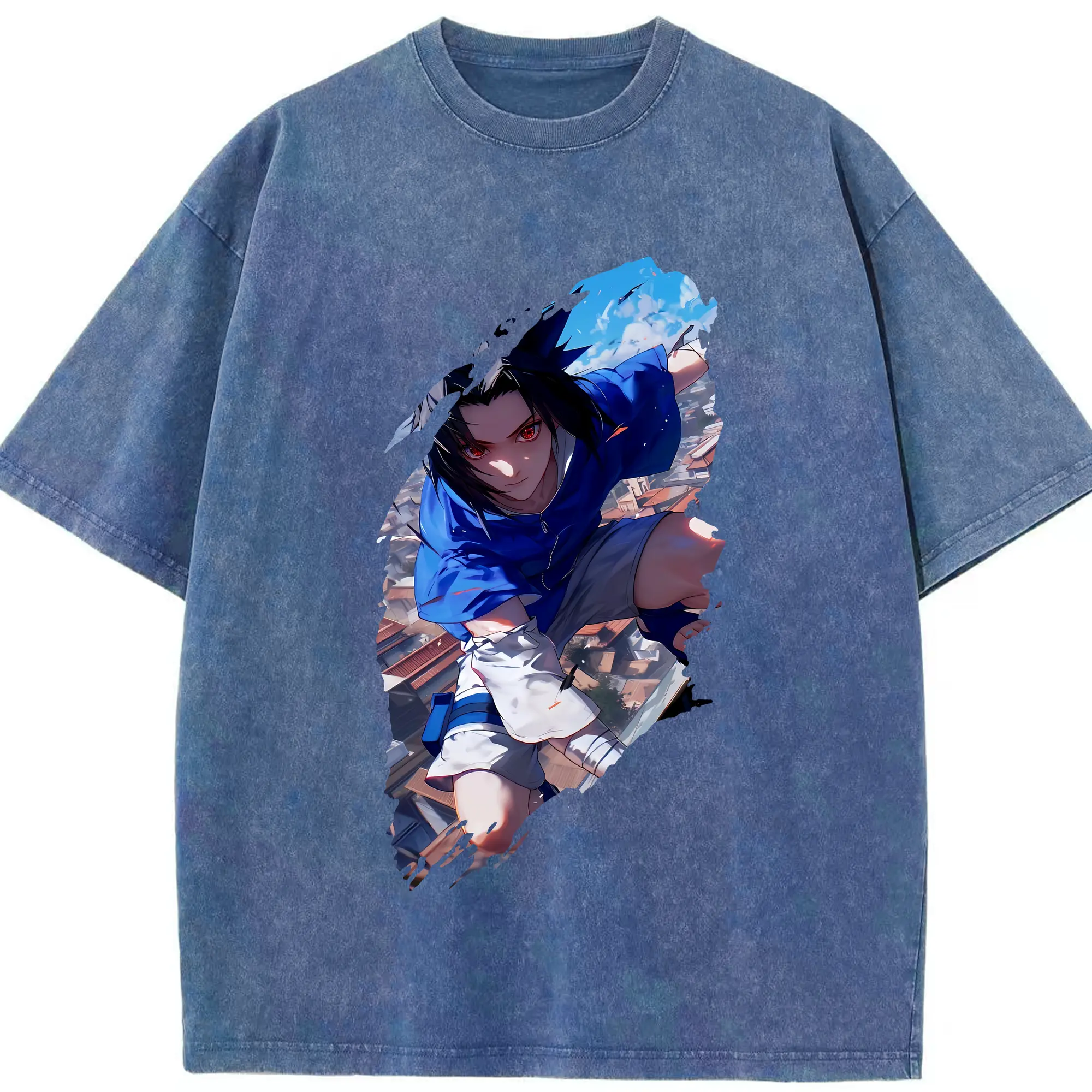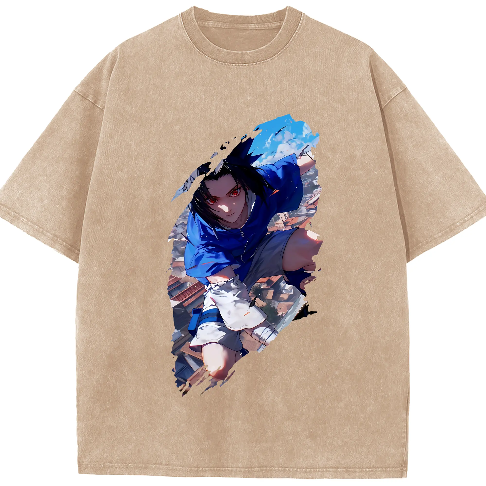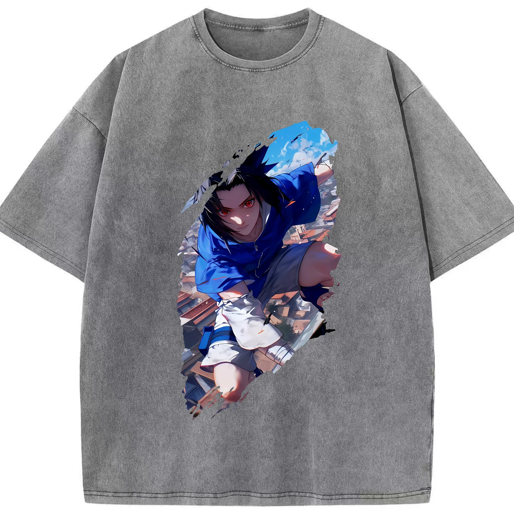 ナルト グッズ うちは サスケ - 綿100% ヴィンテージ風 半袖Tシャツ ・ 背面プリント ・ 柔らか肌触り ・ 通気性 快適 ・ スポーツ カジュアル 外出用