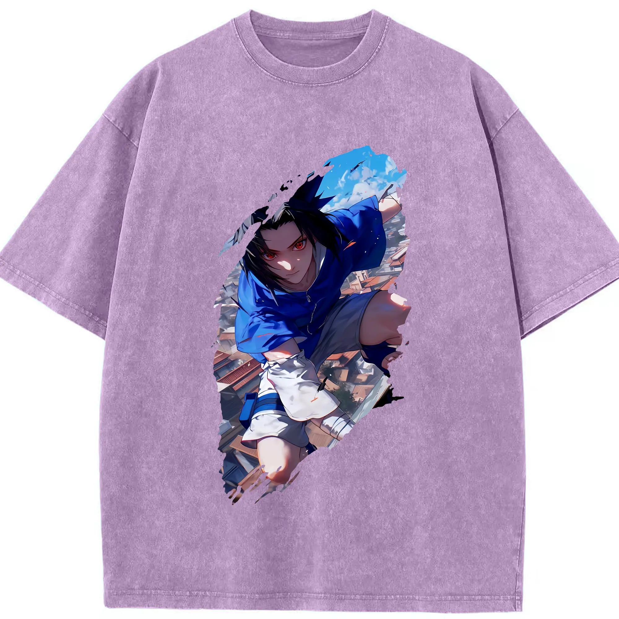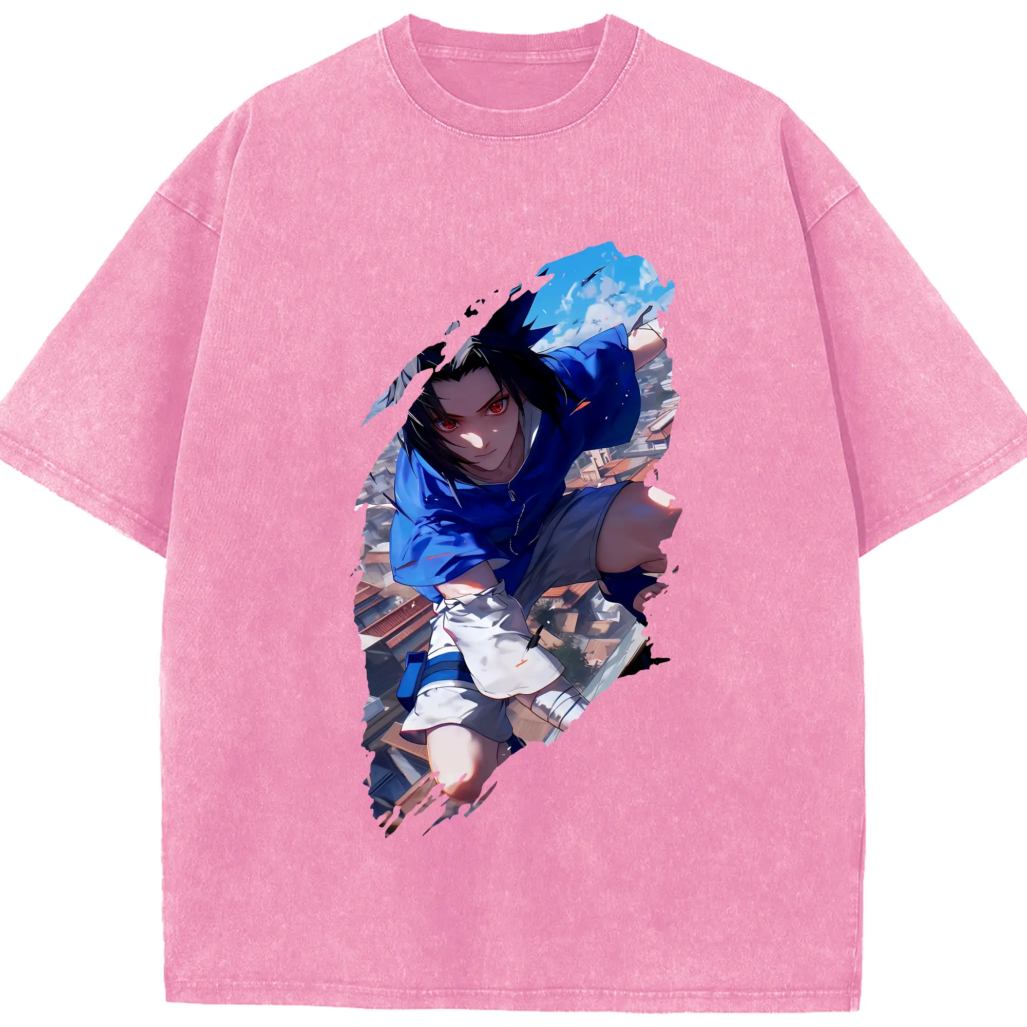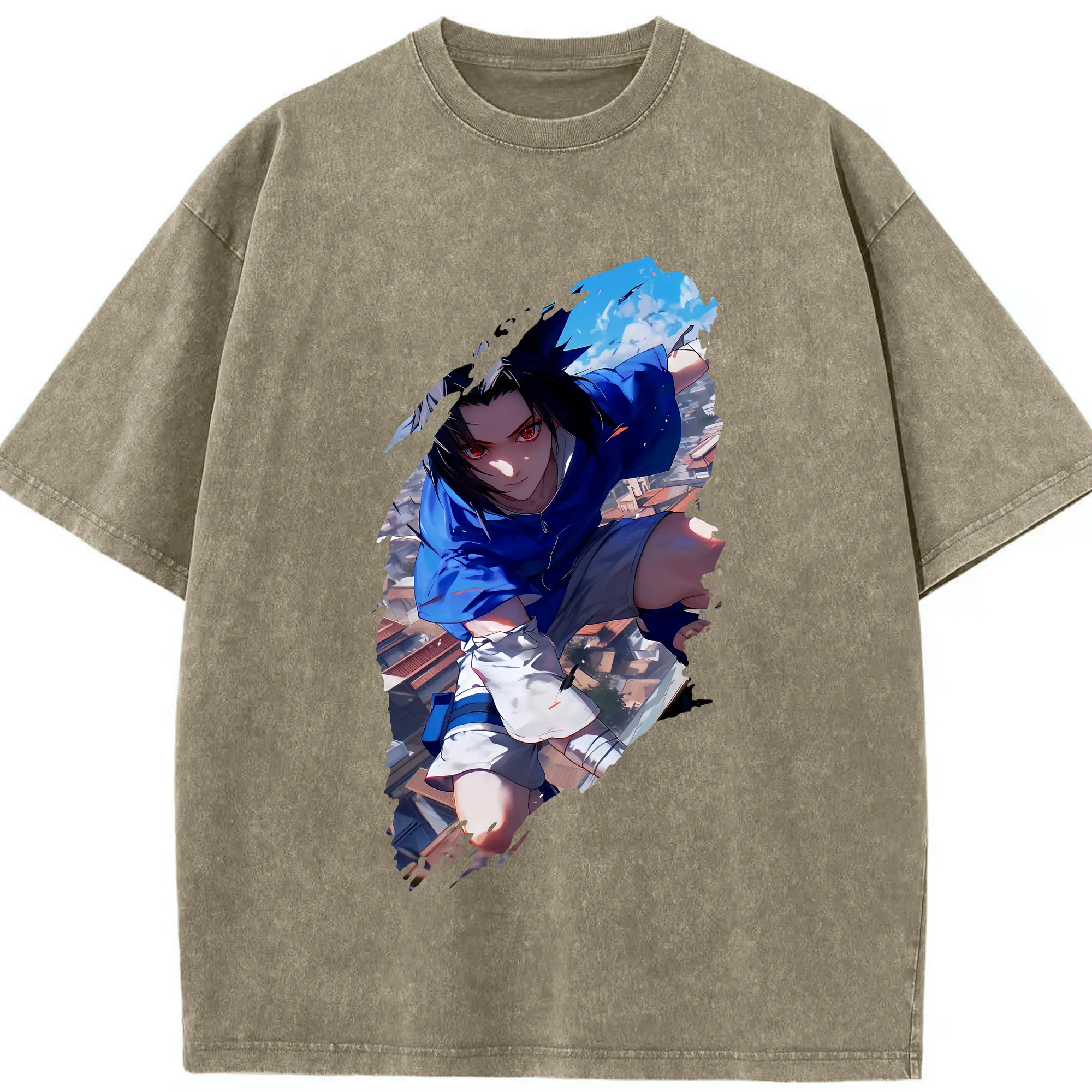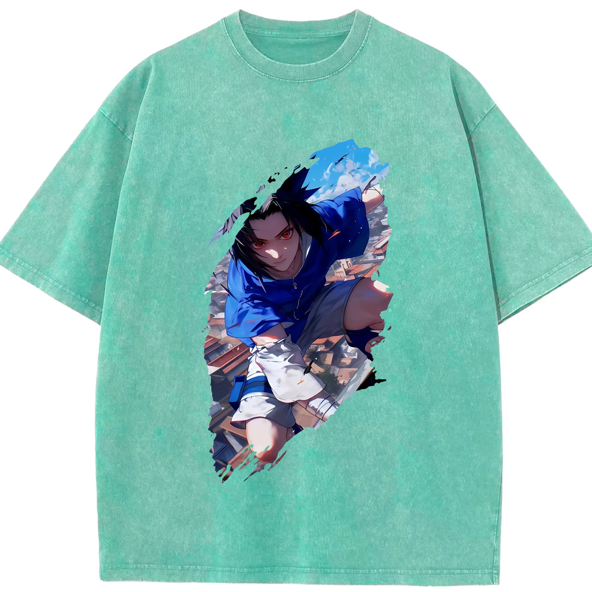 ナルト グッズ うちは サスケ - 綿100% ヴィンテージ風 半袖Tシャツ ・ 背面プリント ・ 柔らか肌触り ・ 通気性 快適 ・ スポーツ カジュアル 外出用