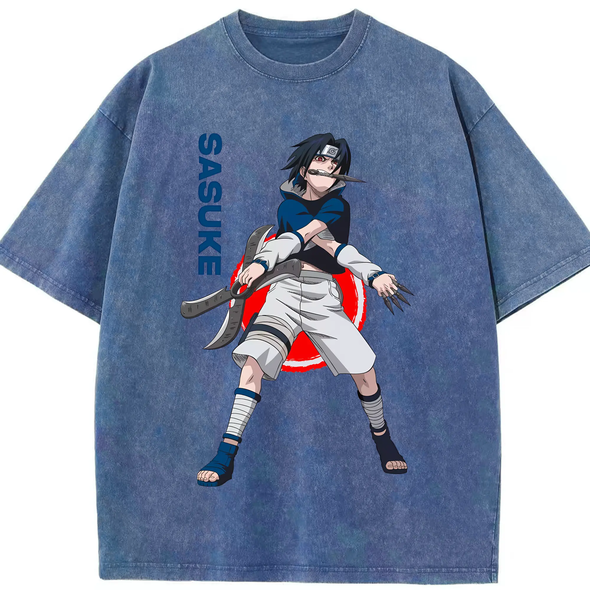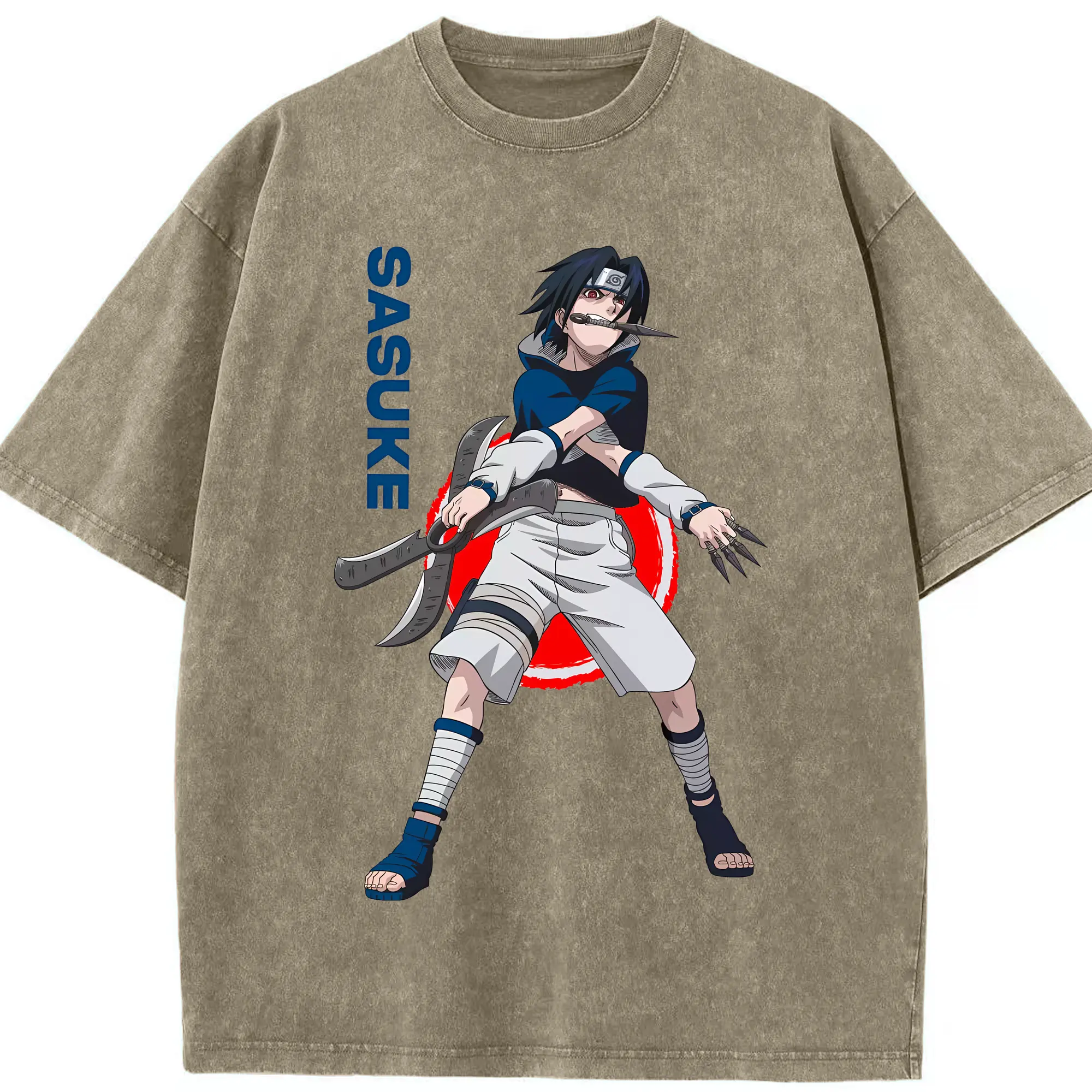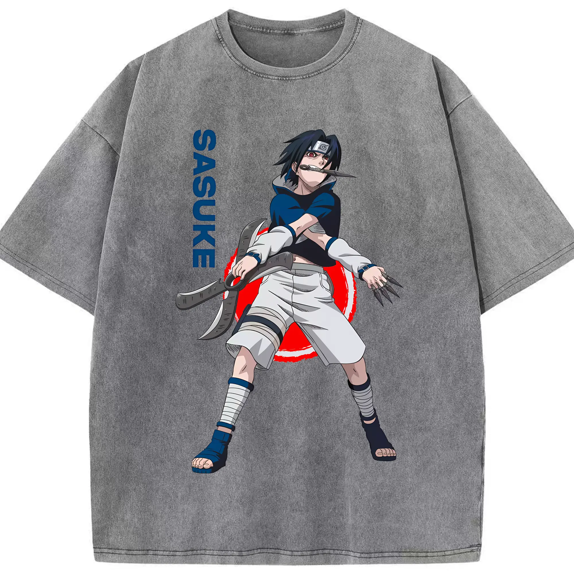 ナルト グッズ うちは サスケ - 綿100% ヴィンテージ風 半袖Tシャツ ・ 背面プリント ・ 柔らか肌触り ・ 通気性 快適 ・ スポーツ カジュアル 外出用
