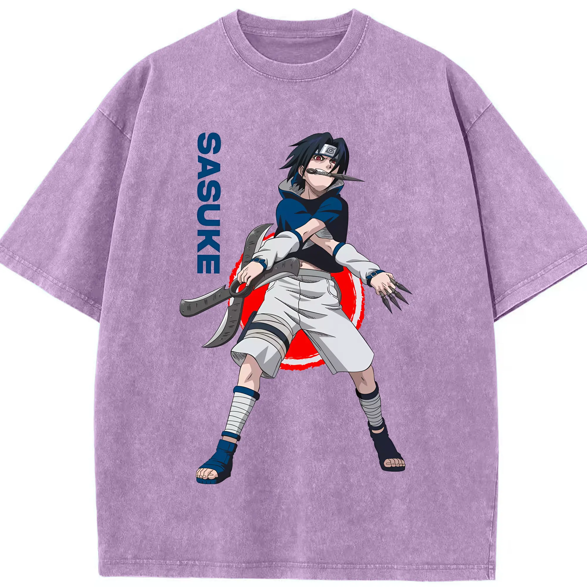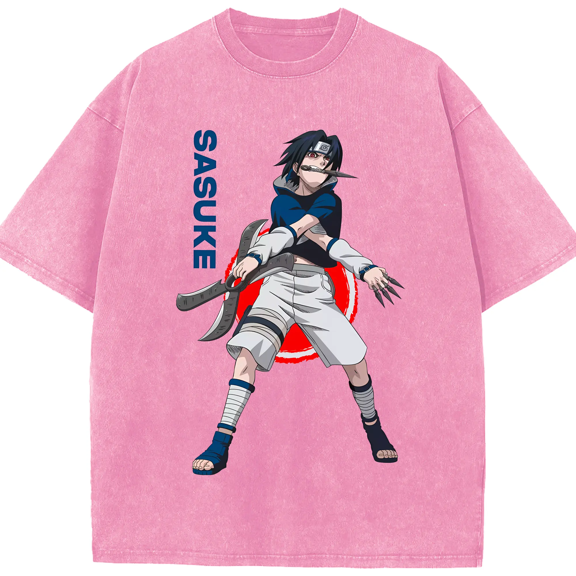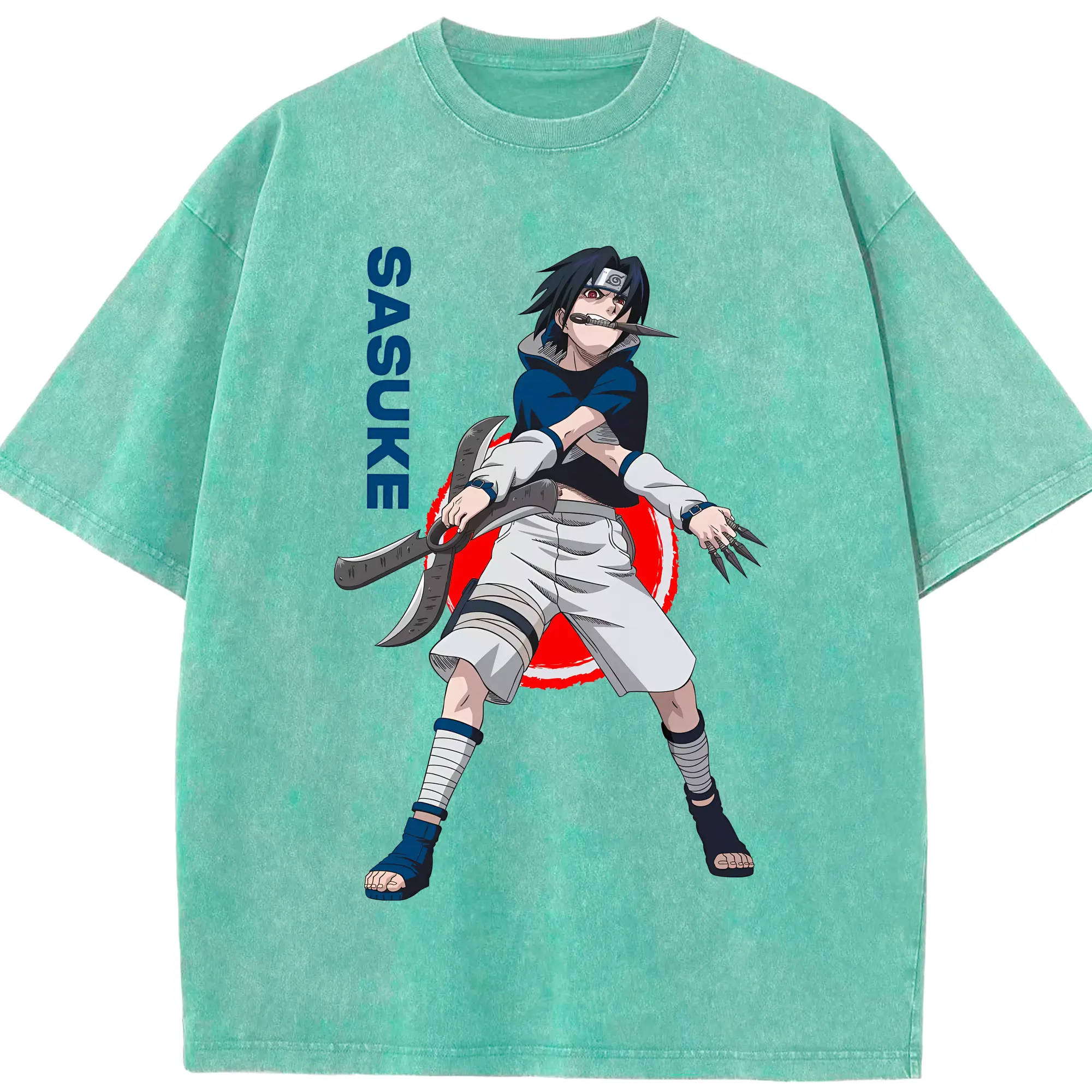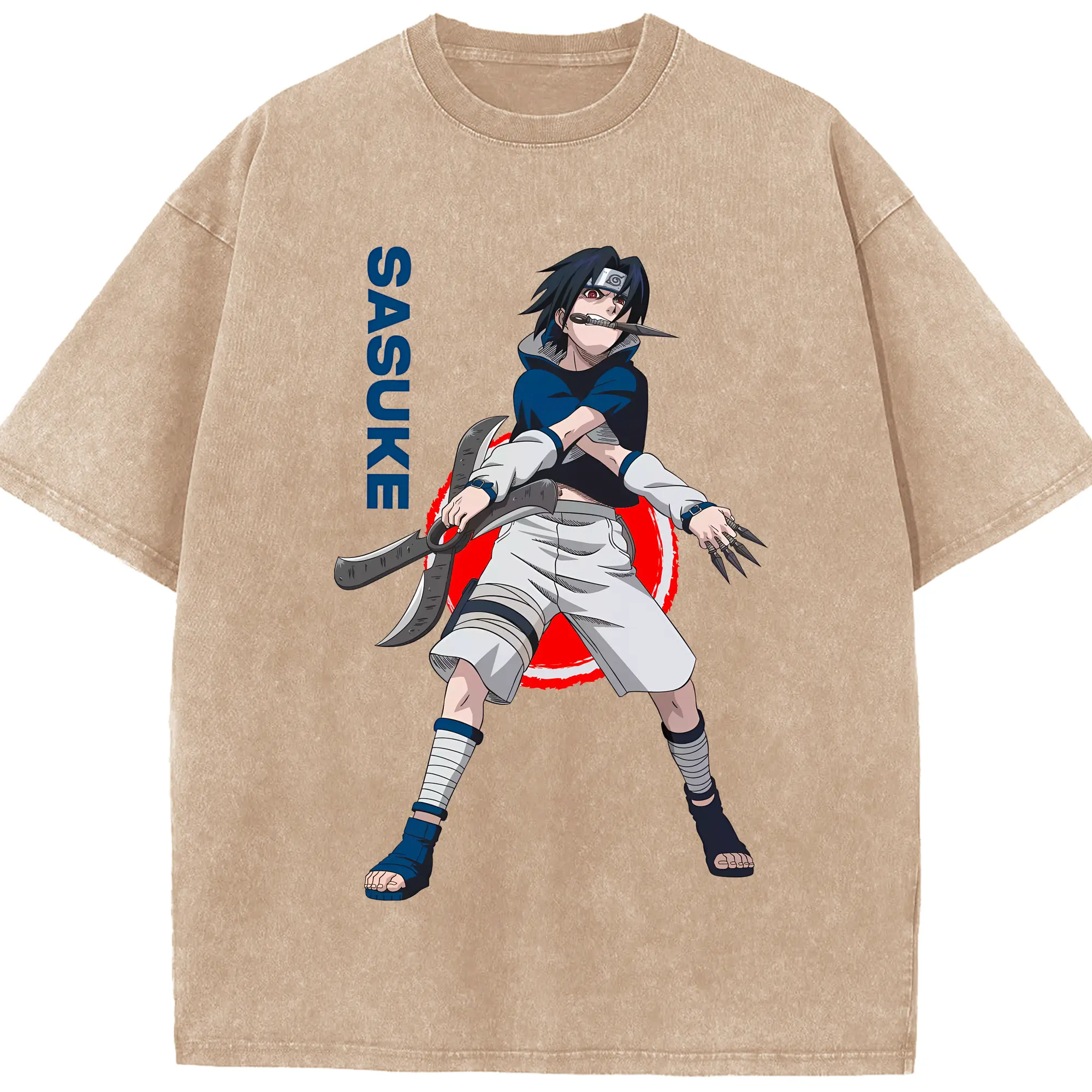 ナルト グッズ うちは サスケ - 綿100% ヴィンテージ風 半袖Tシャツ ・ 背面プリント ・ 柔らか肌触り ・ 通気性 快適 ・ スポーツ カジュアル 外出用