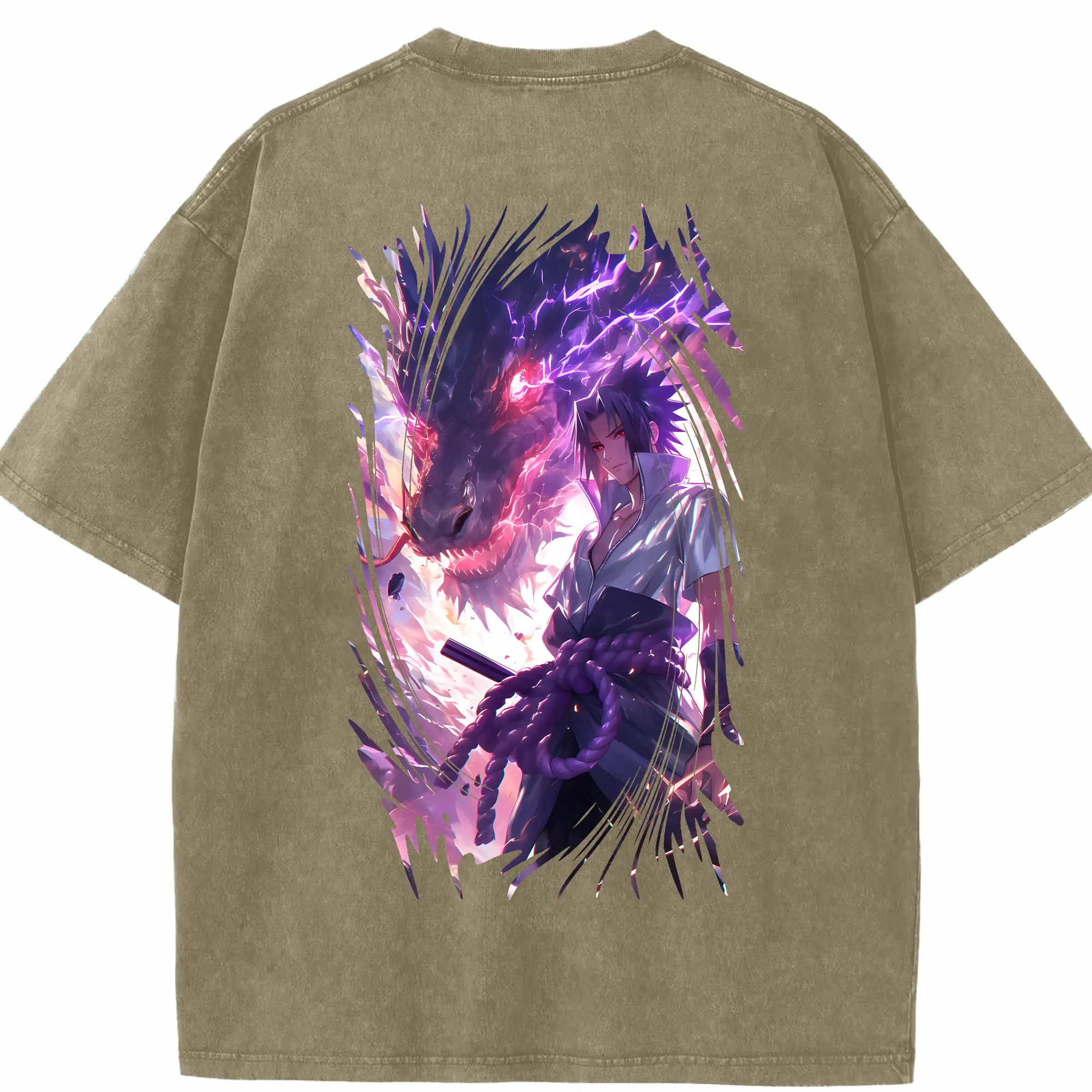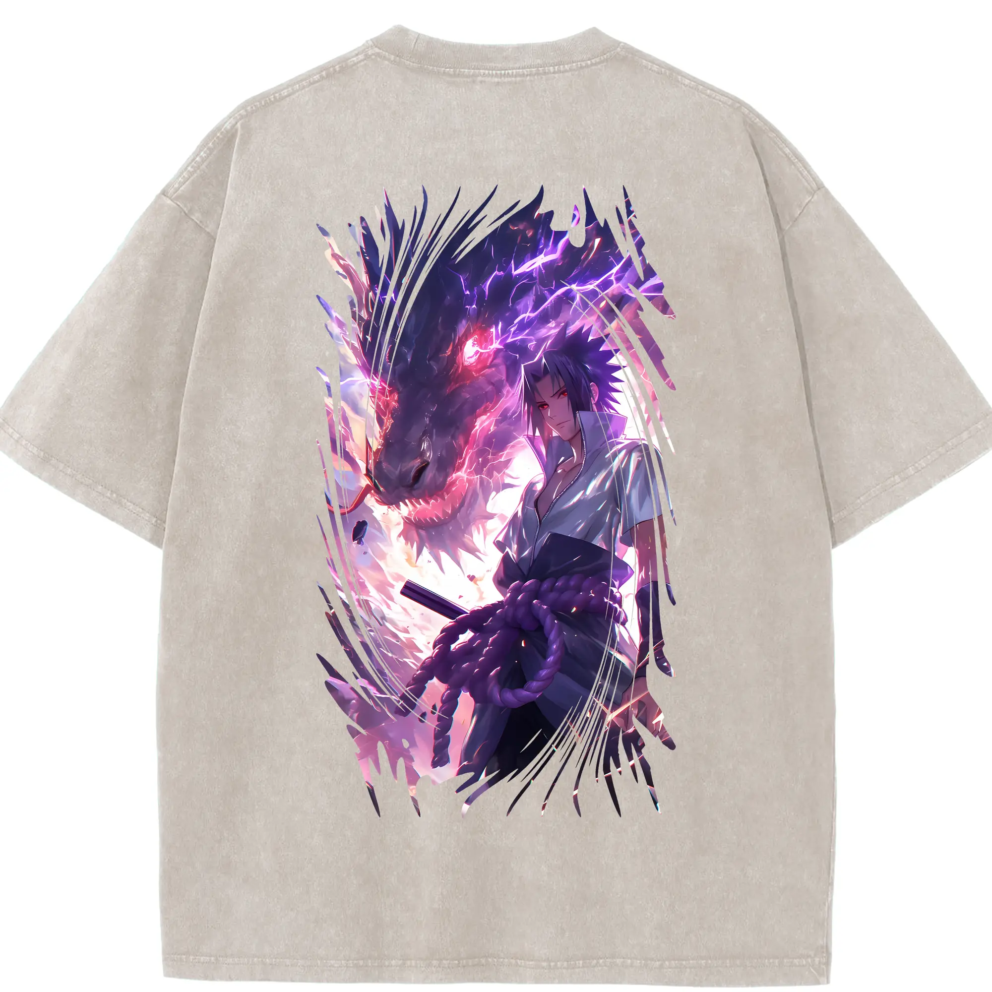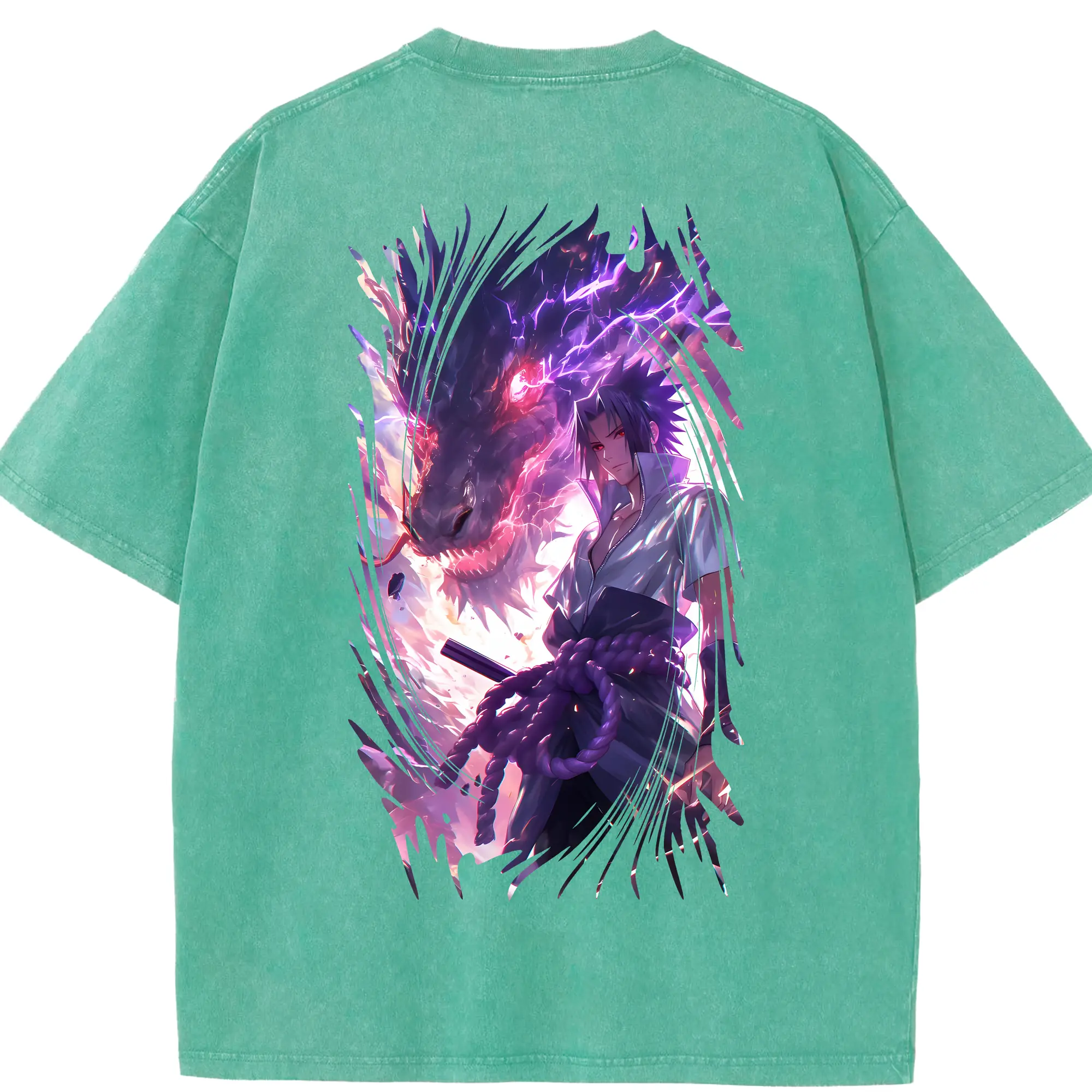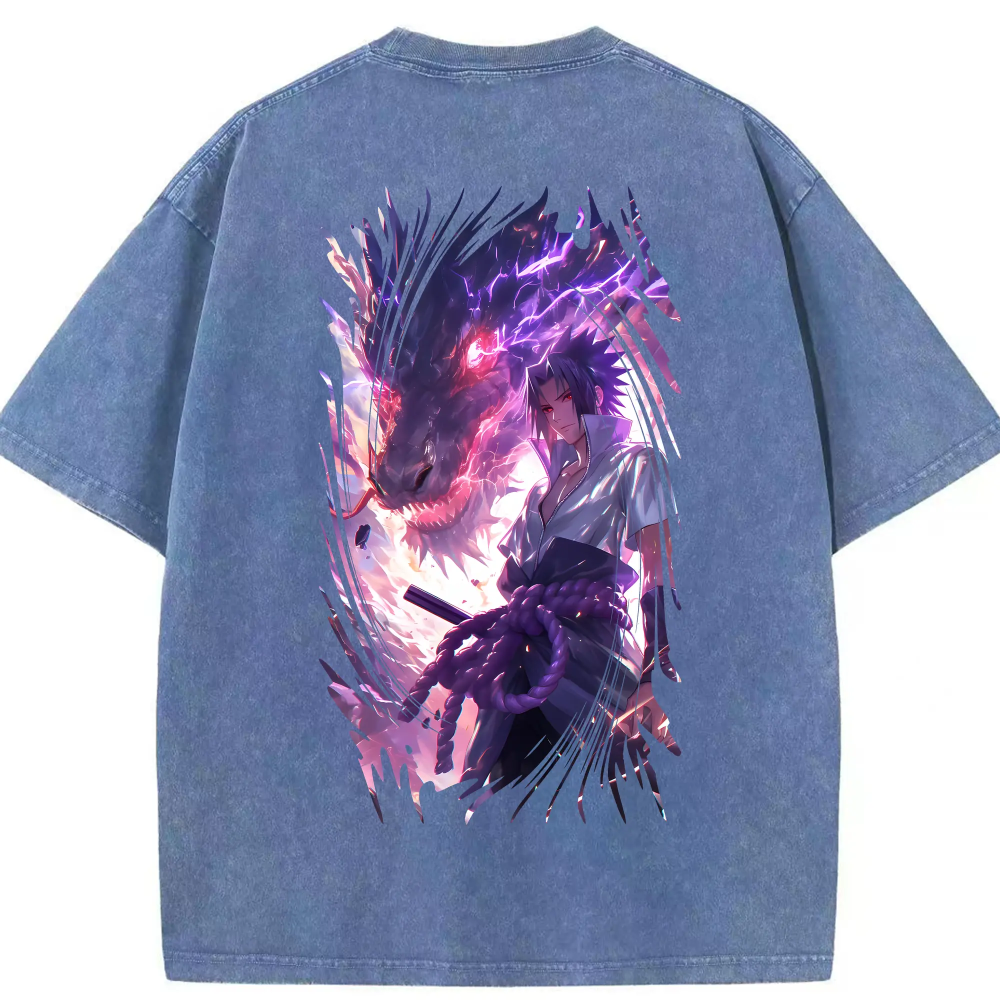 ナルト グッズ うちは サスケ - 綿100% ヴィンテージ風 半袖Tシャツ ・ フロントプリント ・ 柔らか肌触り ・ 通気性 快適 ・ スポーツ カジュアル 外出用