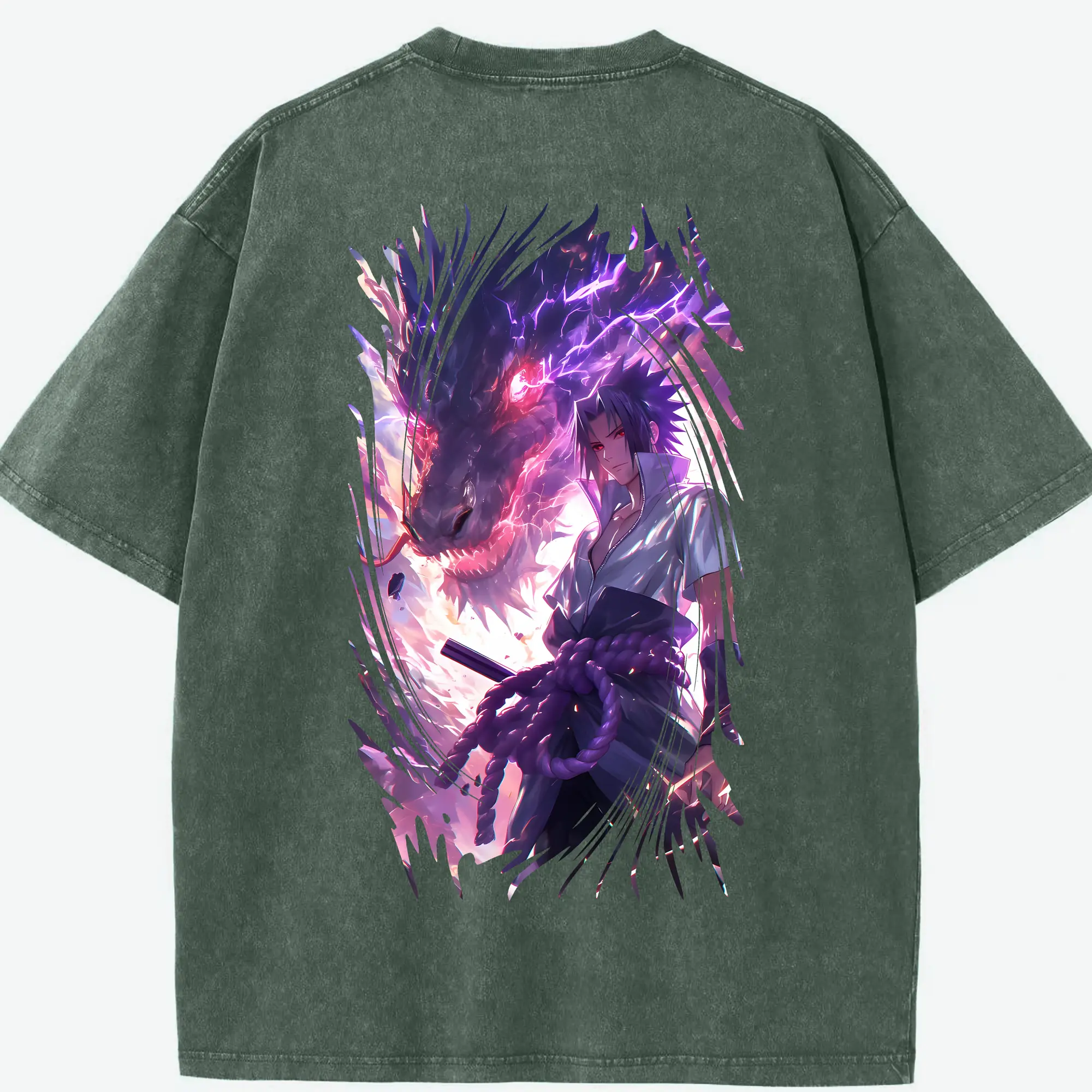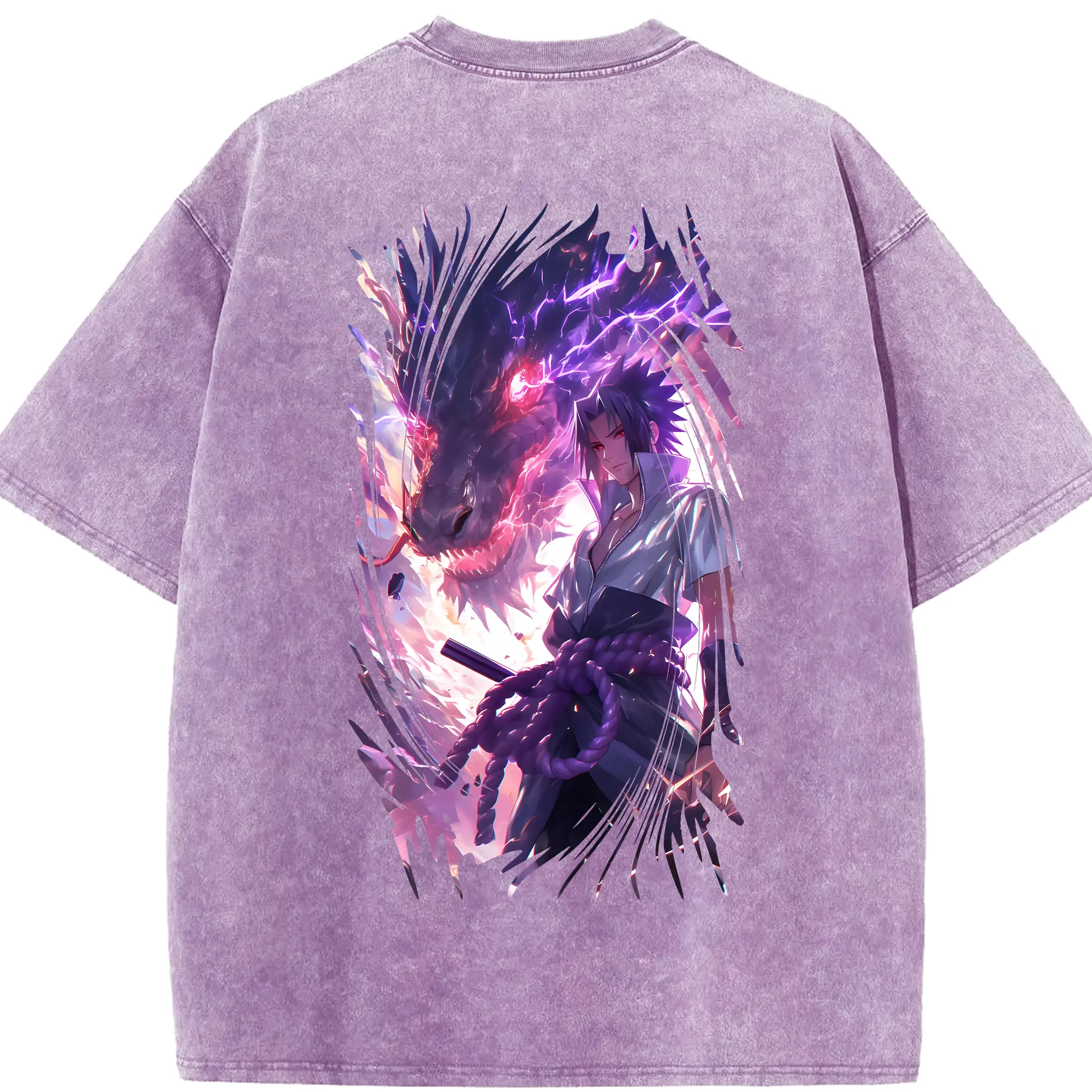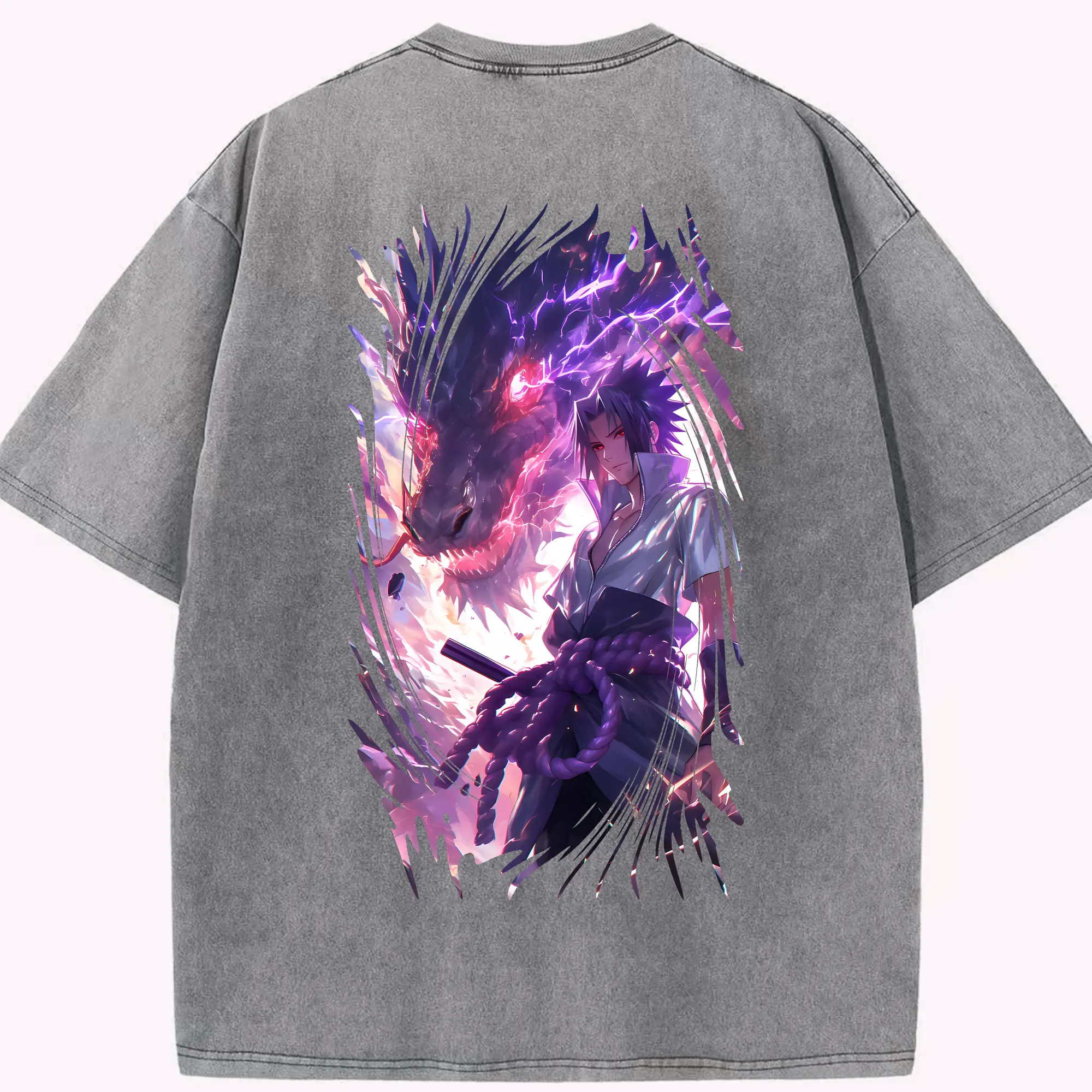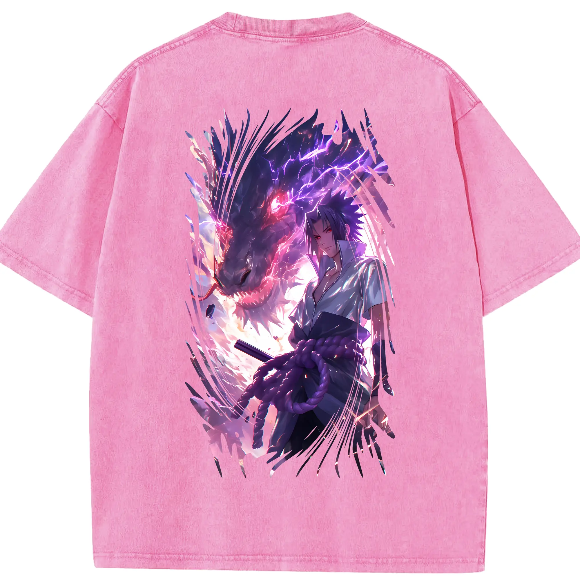 ナルト グッズ うちは サスケ - 綿100% ヴィンテージ風 半袖Tシャツ ・ フロントプリント ・ 柔らか肌触り ・ 通気性 快適 ・ スポーツ カジュアル 外出用