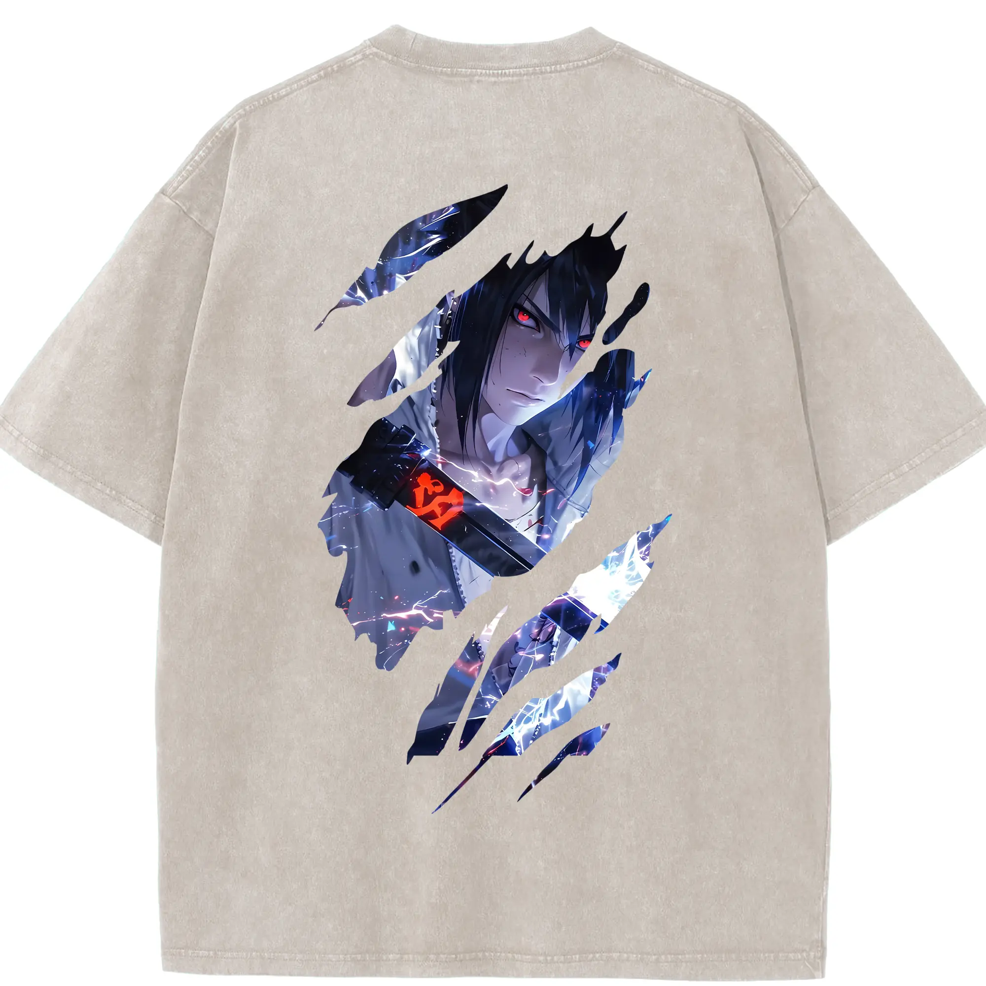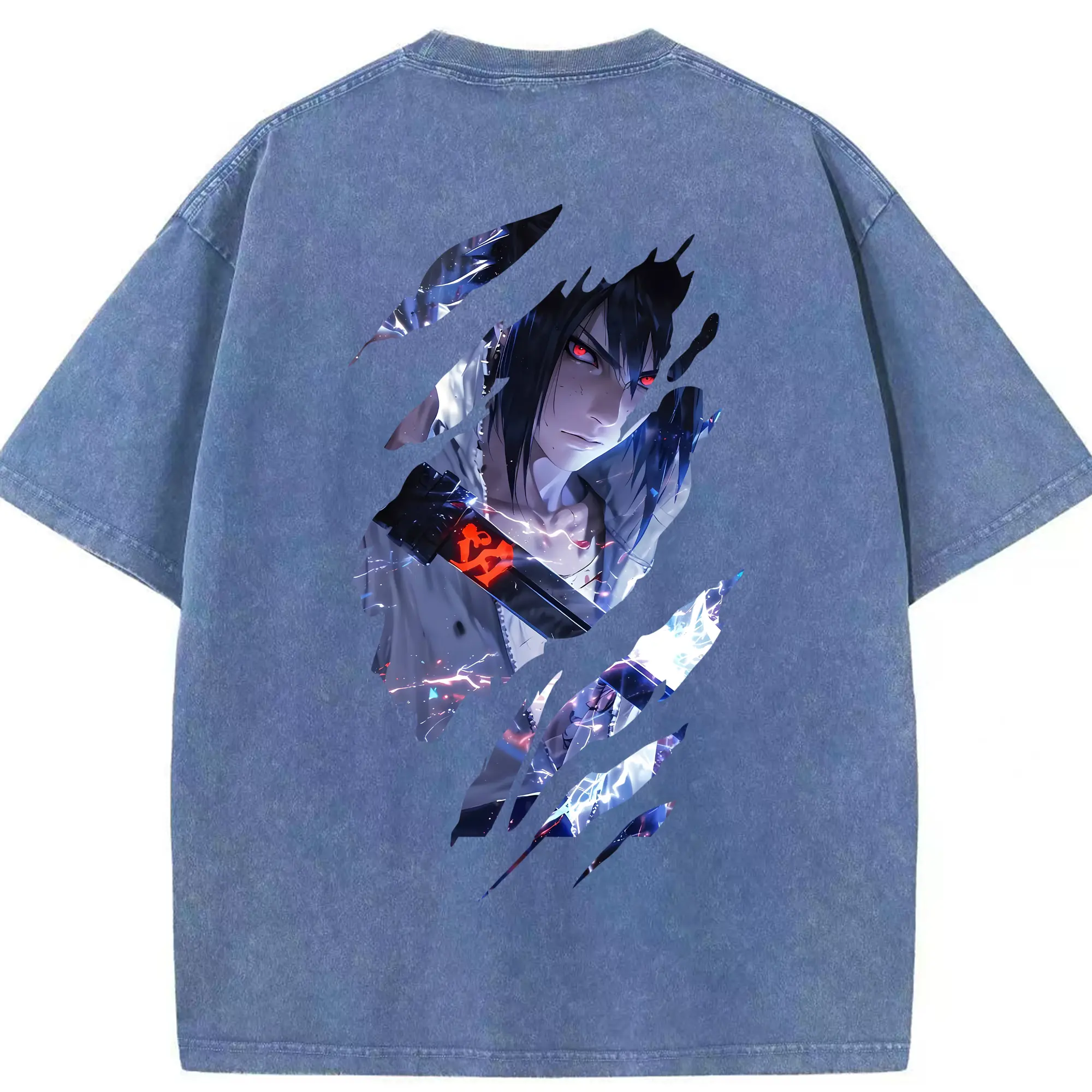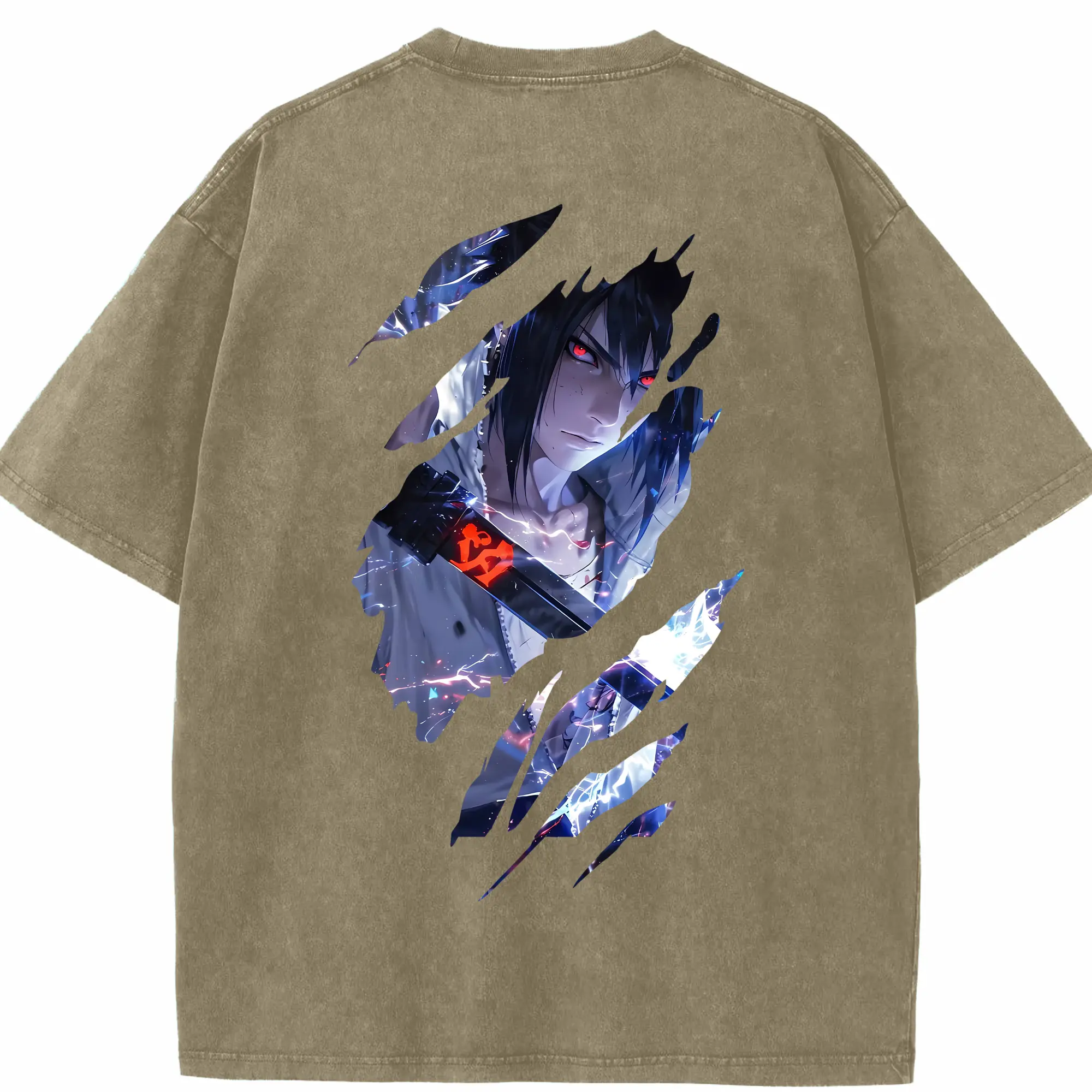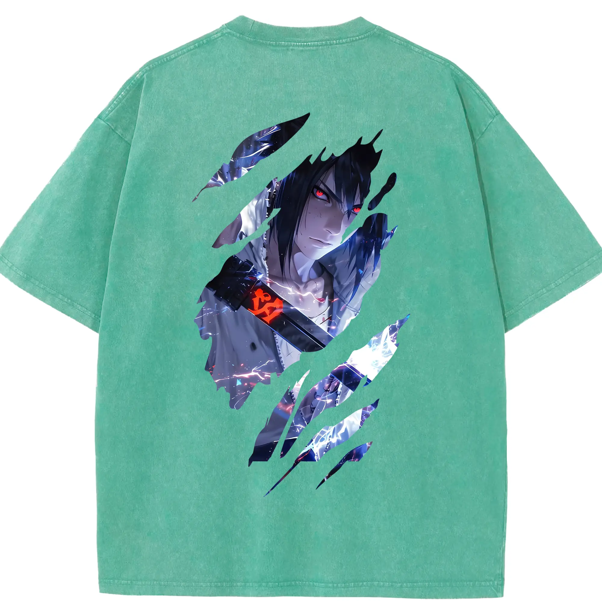 ナルト グッズ うちは サスケ - 綿100% ヴィンテージ風 半袖Tシャツ ・ フロントプリント ・ 柔らか肌触り ・ 通気性 快適 ・ スポーツ カジュアル 外出用