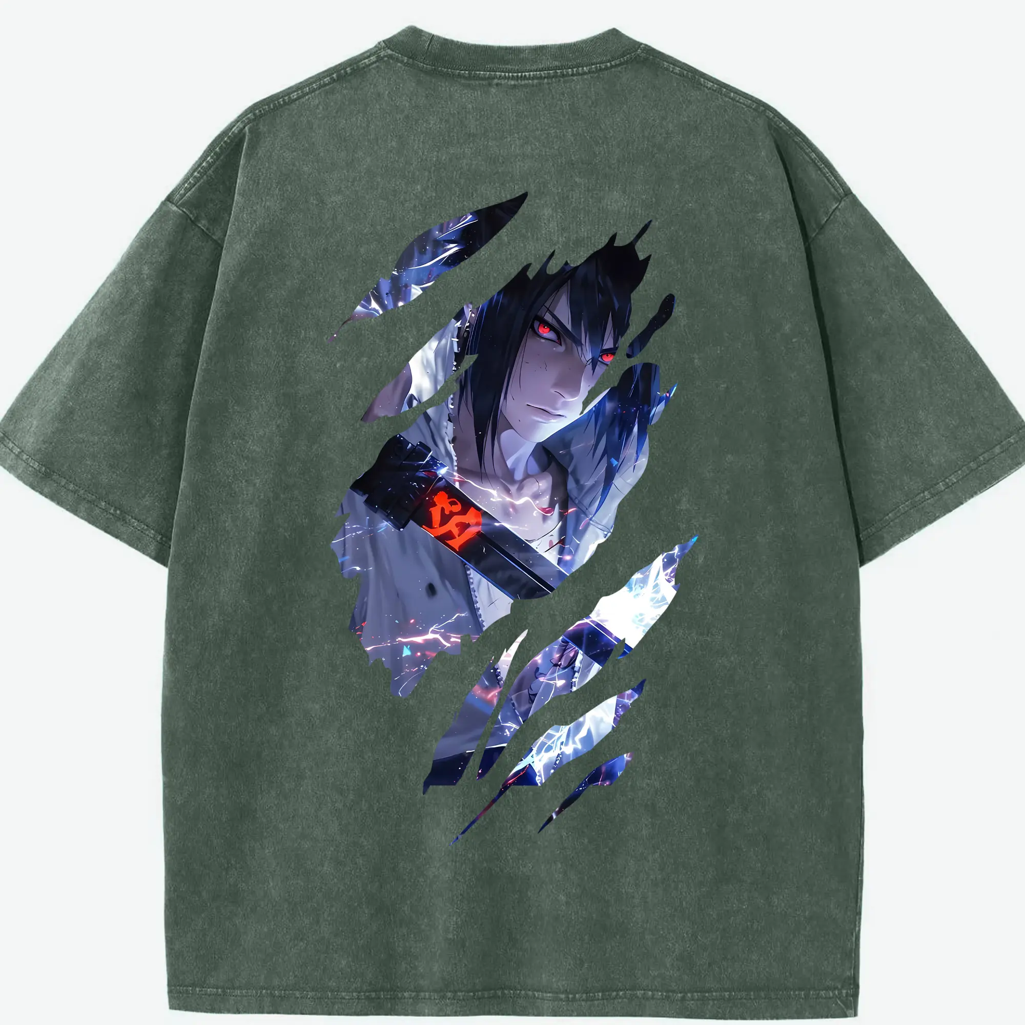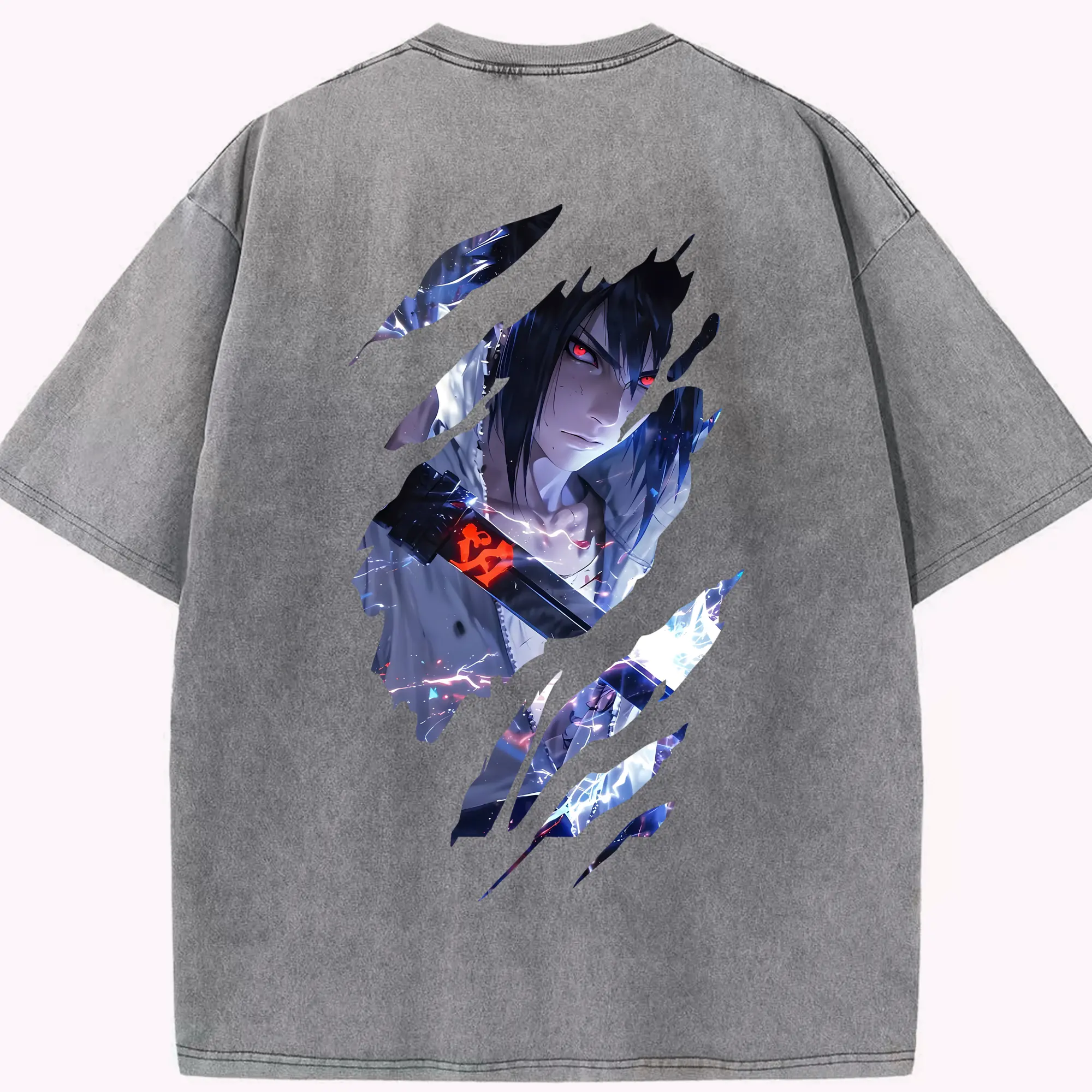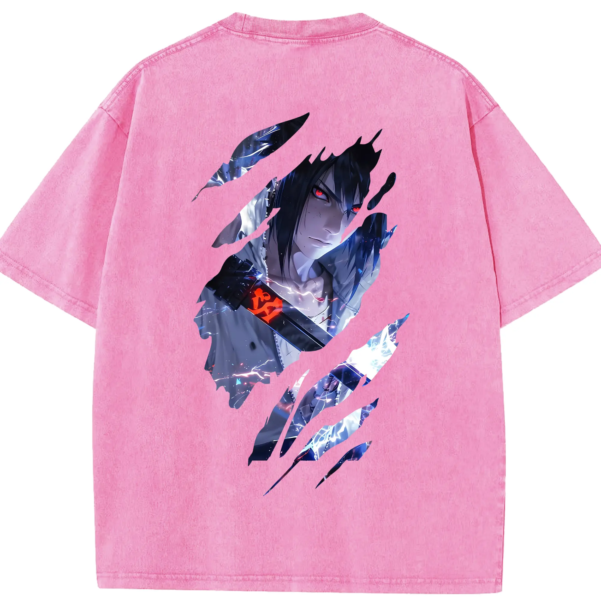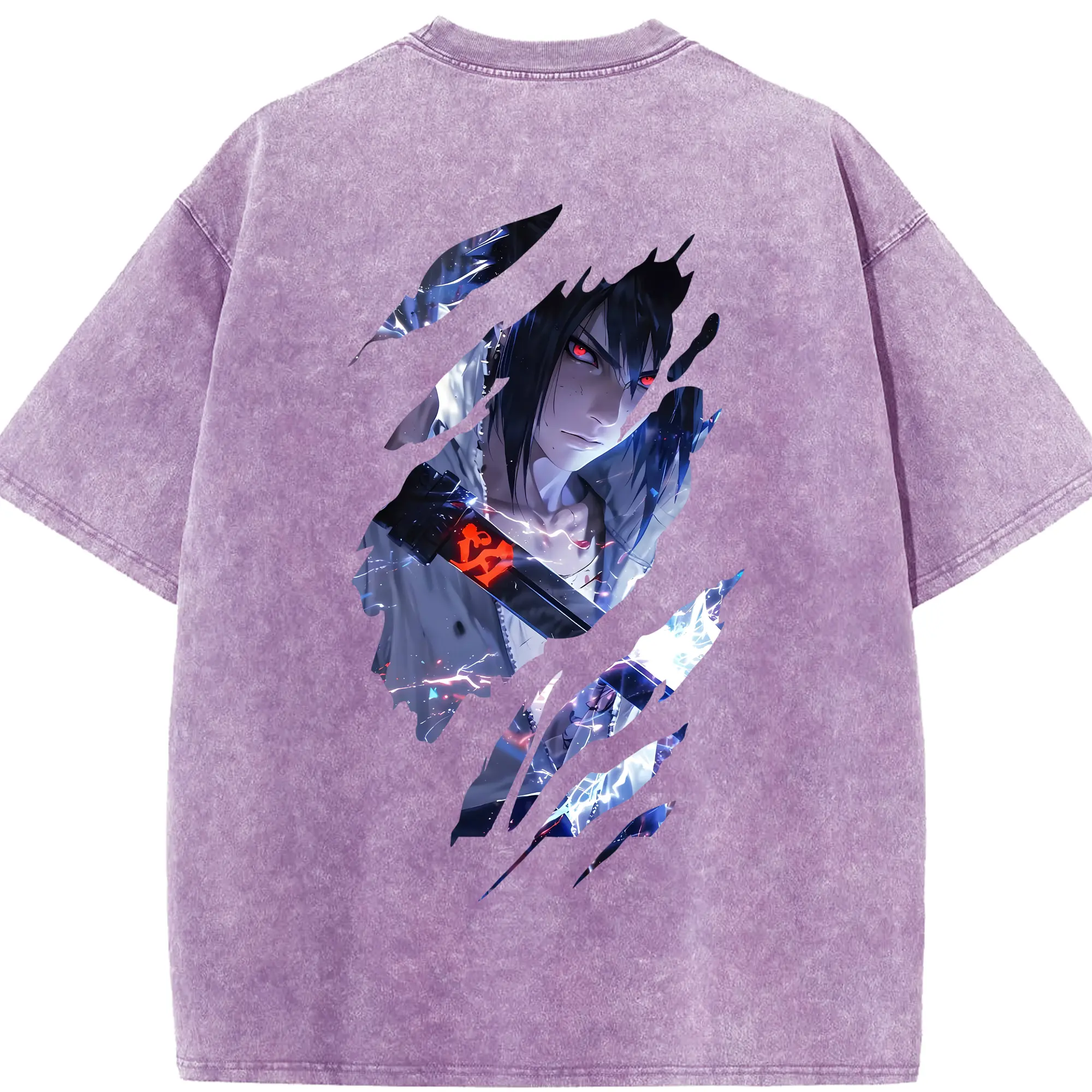 ナルト グッズ うちは サスケ - 綿100% ヴィンテージ風 半袖Tシャツ ・ フロントプリント ・ 柔らか肌触り ・ 通気性 快適 ・ スポーツ カジュアル 外出用