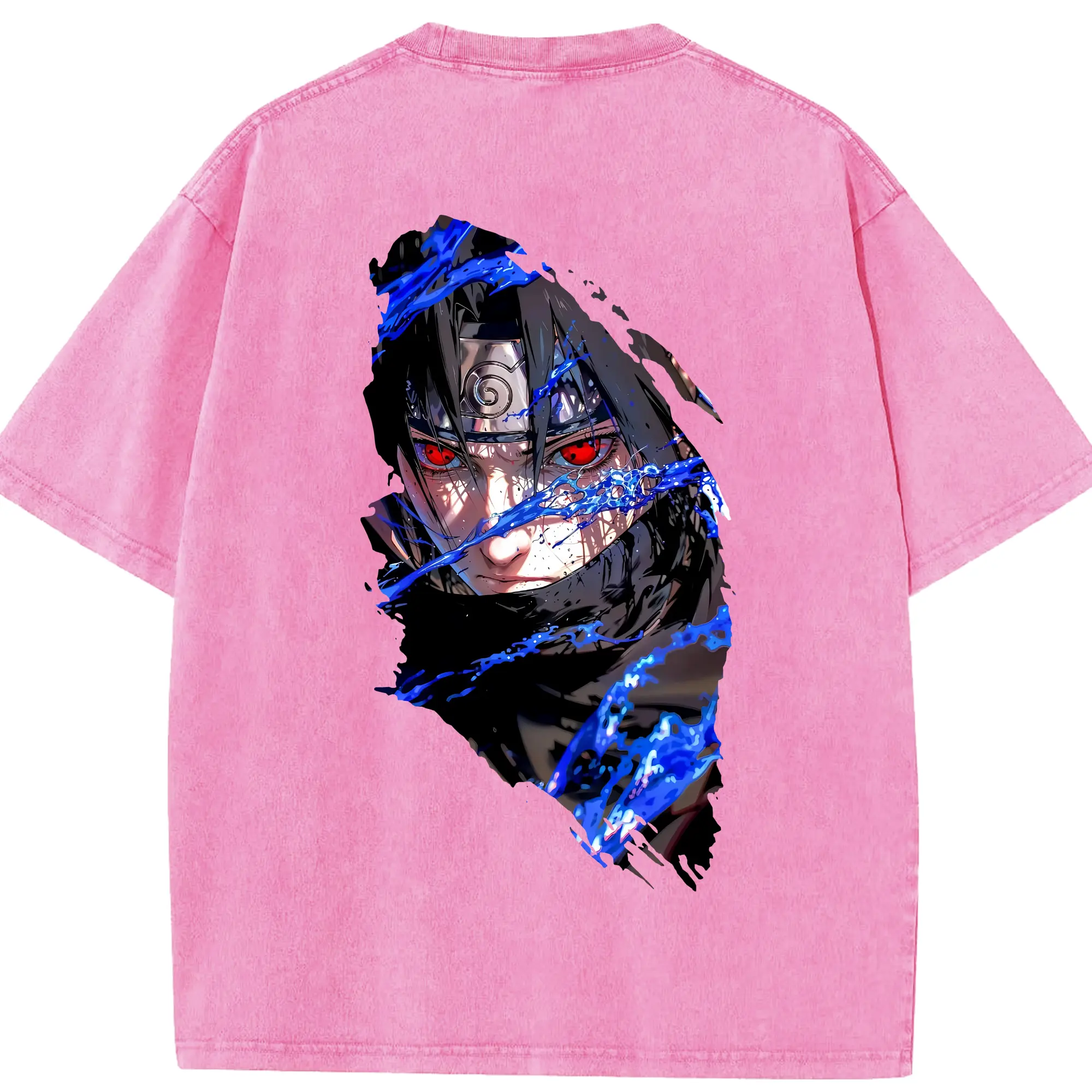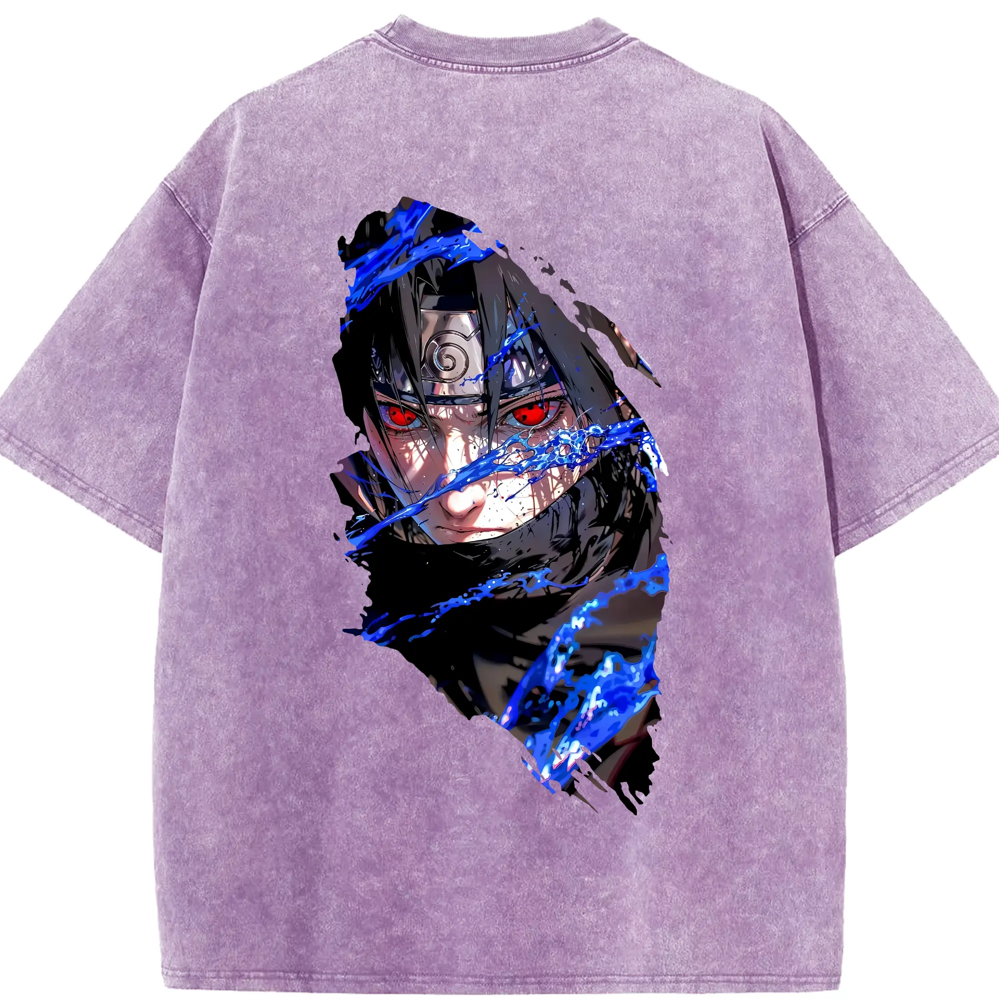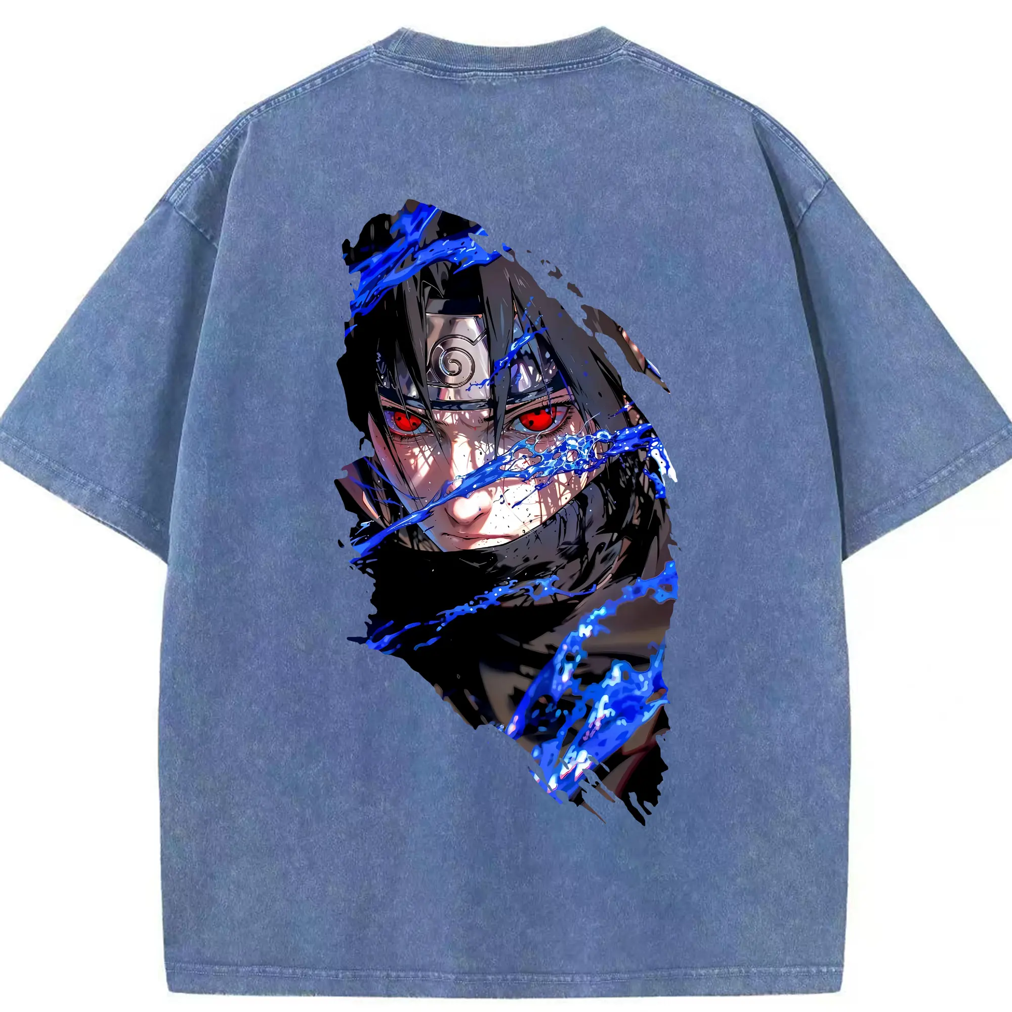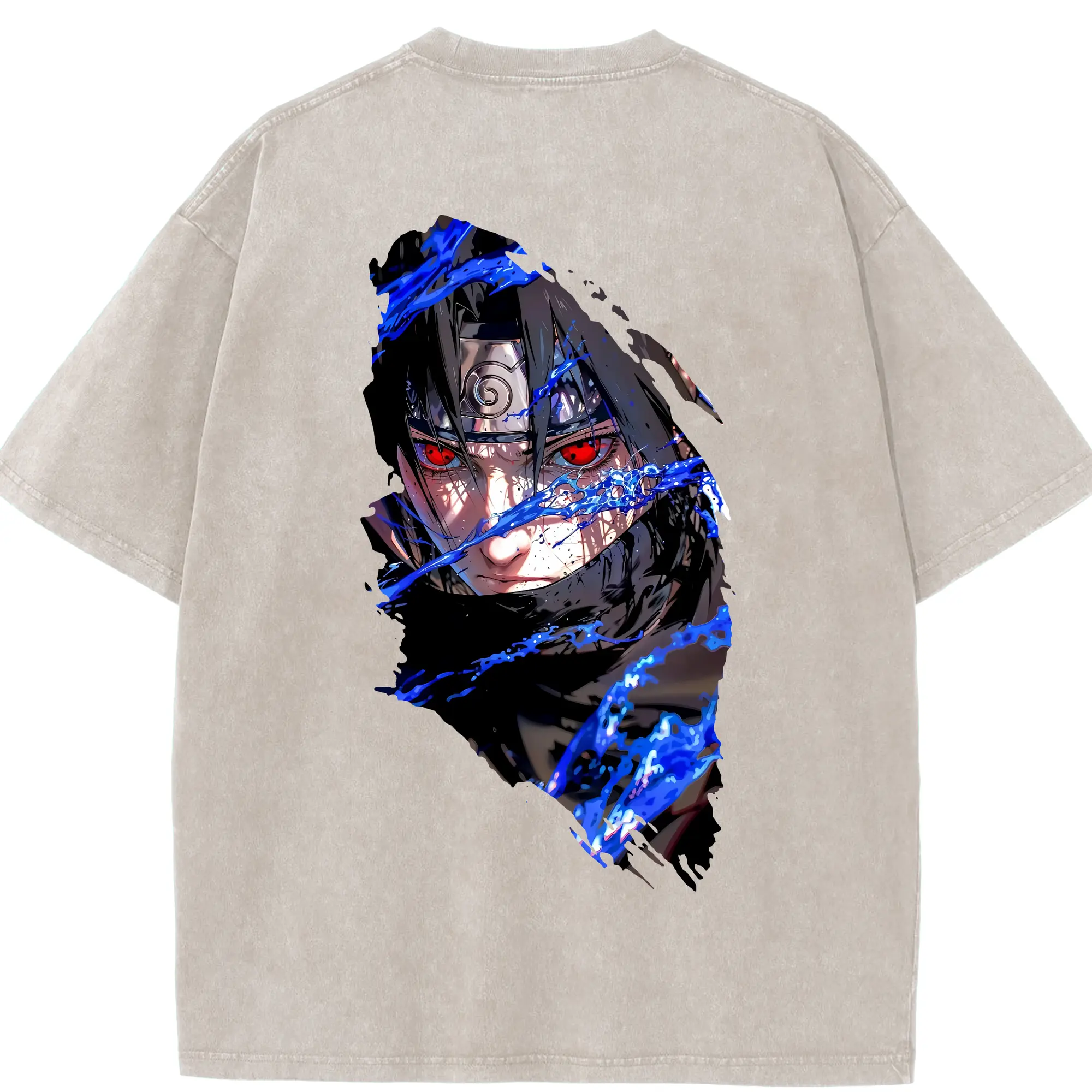 ナルト グッズ うちは サスケ - 綿100% ヴィンテージ風 半袖Tシャツ ・ フロントプリント ・ 柔らか肌触り ・ 通気性 快適 ・ スポーツ カジュアル 外出用
