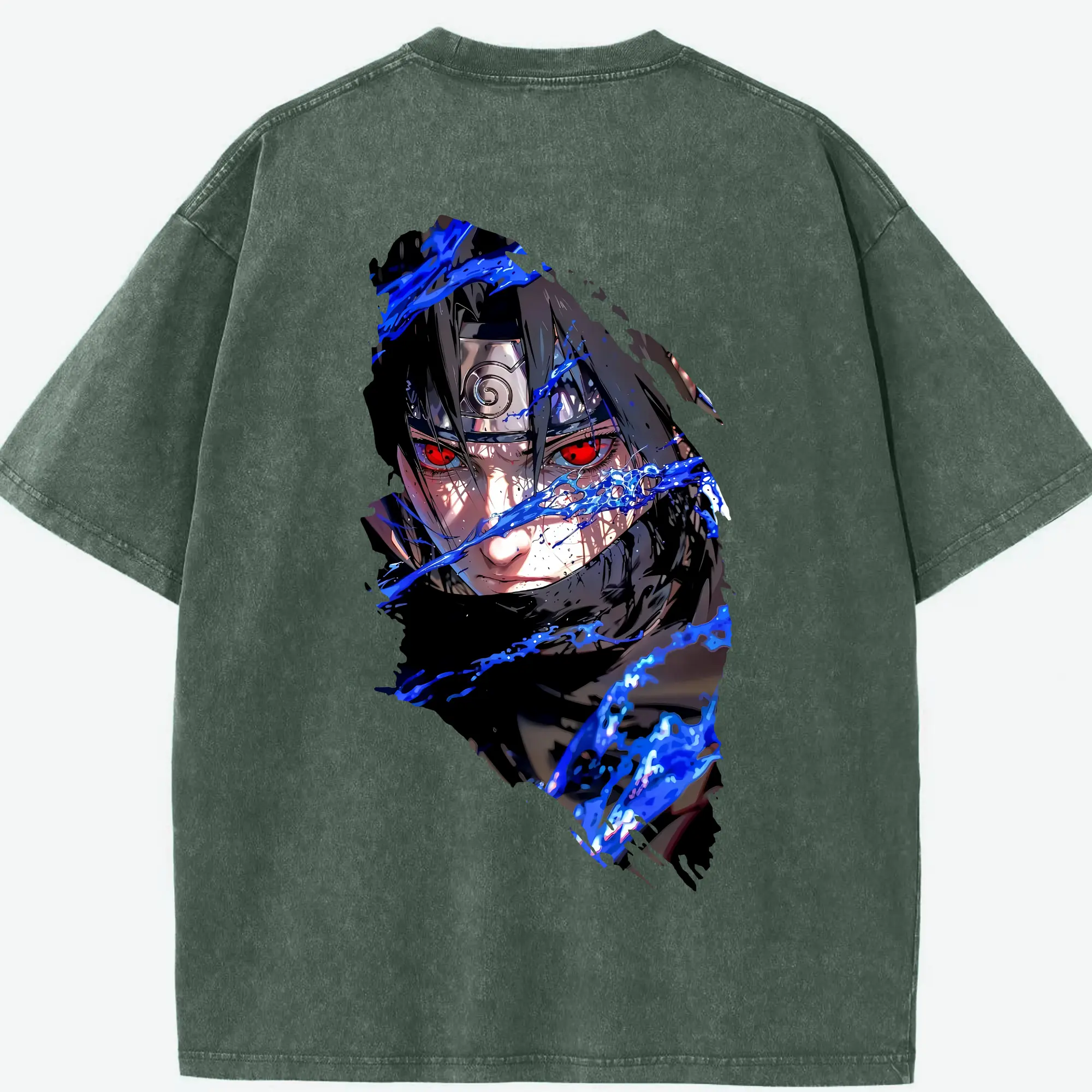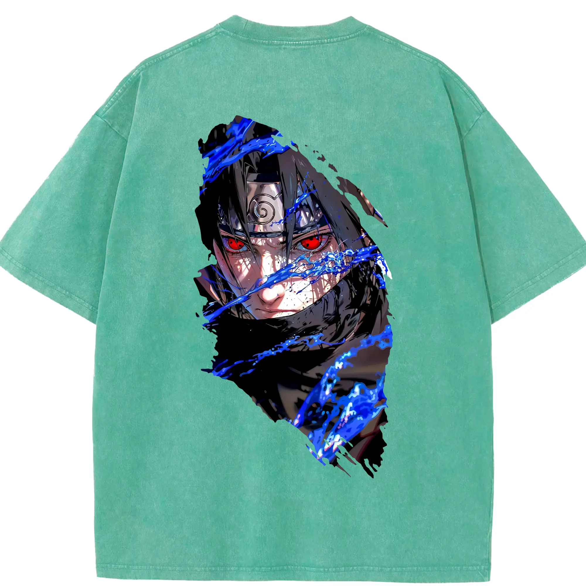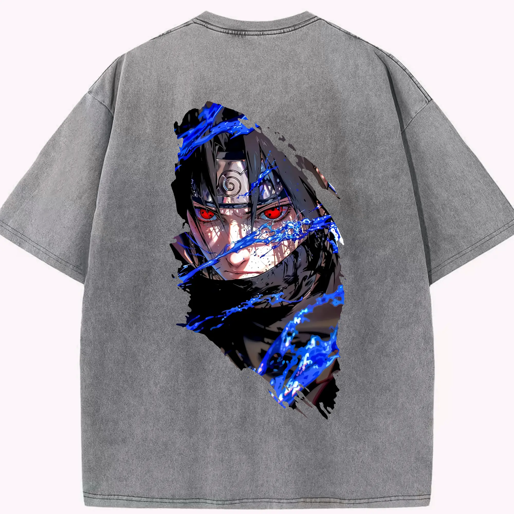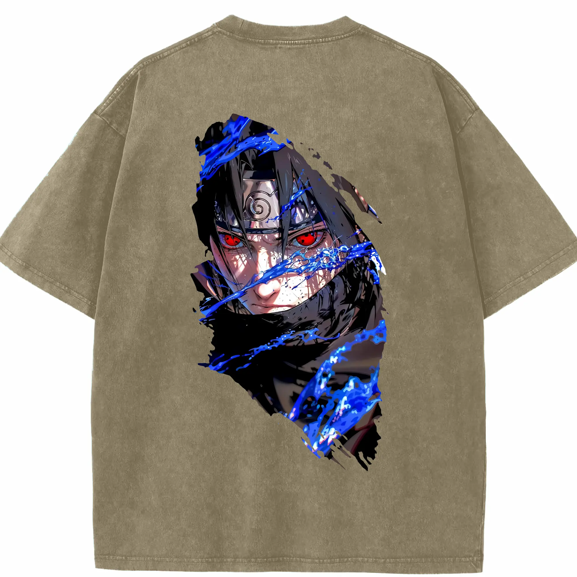 ナルト グッズ うちは サスケ - 綿100% ヴィンテージ風 半袖Tシャツ ・ フロントプリント ・ 柔らか肌触り ・ 通気性 快適 ・ スポーツ カジュアル 外出用