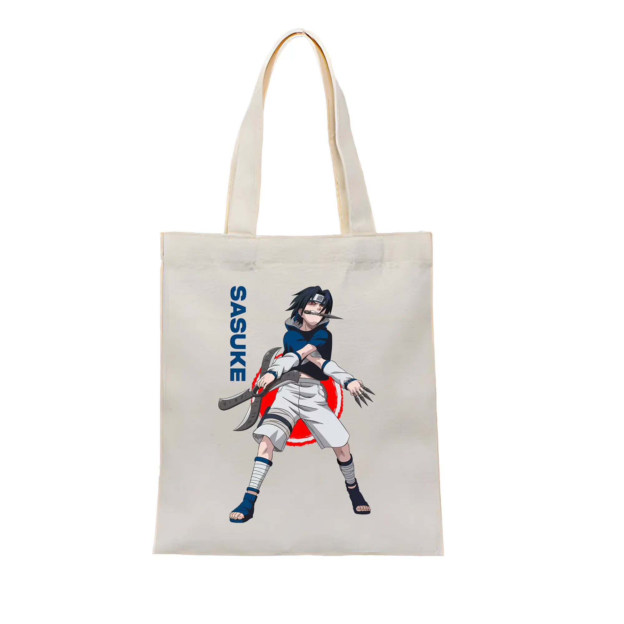 ナルト グッズ うちは サスケ - 縦型キャンバス手提げバッグ(トートバッグ) ・ キャンバス素材 ・ ショッピング用 ・ 軽量 丈夫 お手入れ簡単