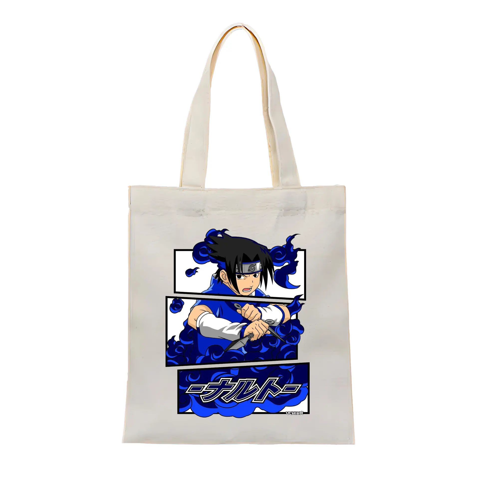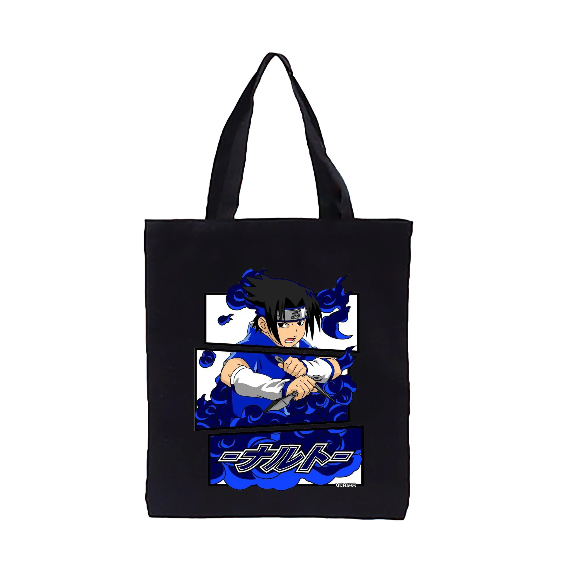 ナルト グッズ うちは サスケ - 縦型キャンバス手提げバッグ(トートバッグ) ・ キャンバス素材 ・ ショッピング用 ・ 軽量 丈夫 お手入れ簡単