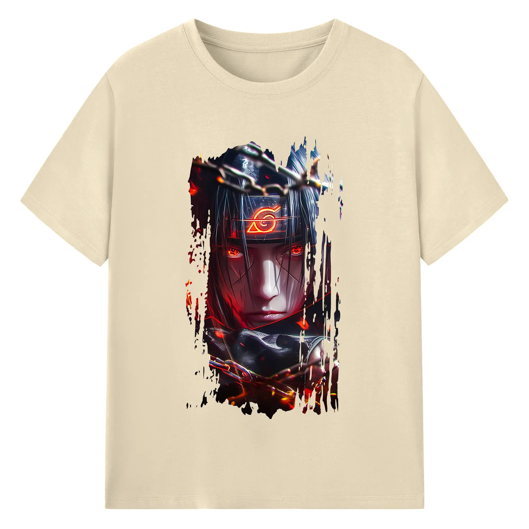 ナルト グッズ うちは イタチ - 綿100% ヴィンテージ風 半袖Tシャツ ・ フロントプリント ・ 柔らか肌触り ・ 通気性 快適 ・ スポーツ カジュアル 外出用
