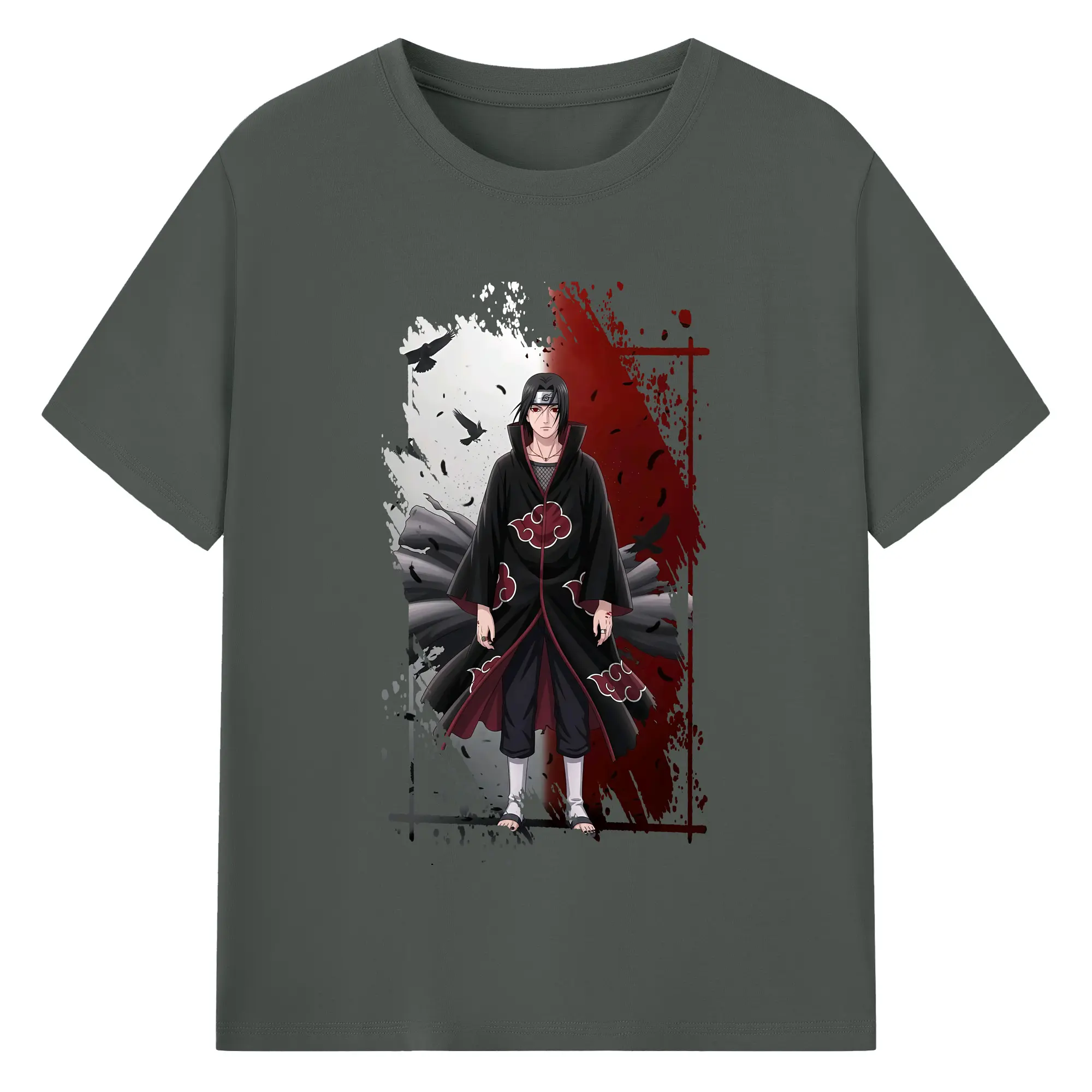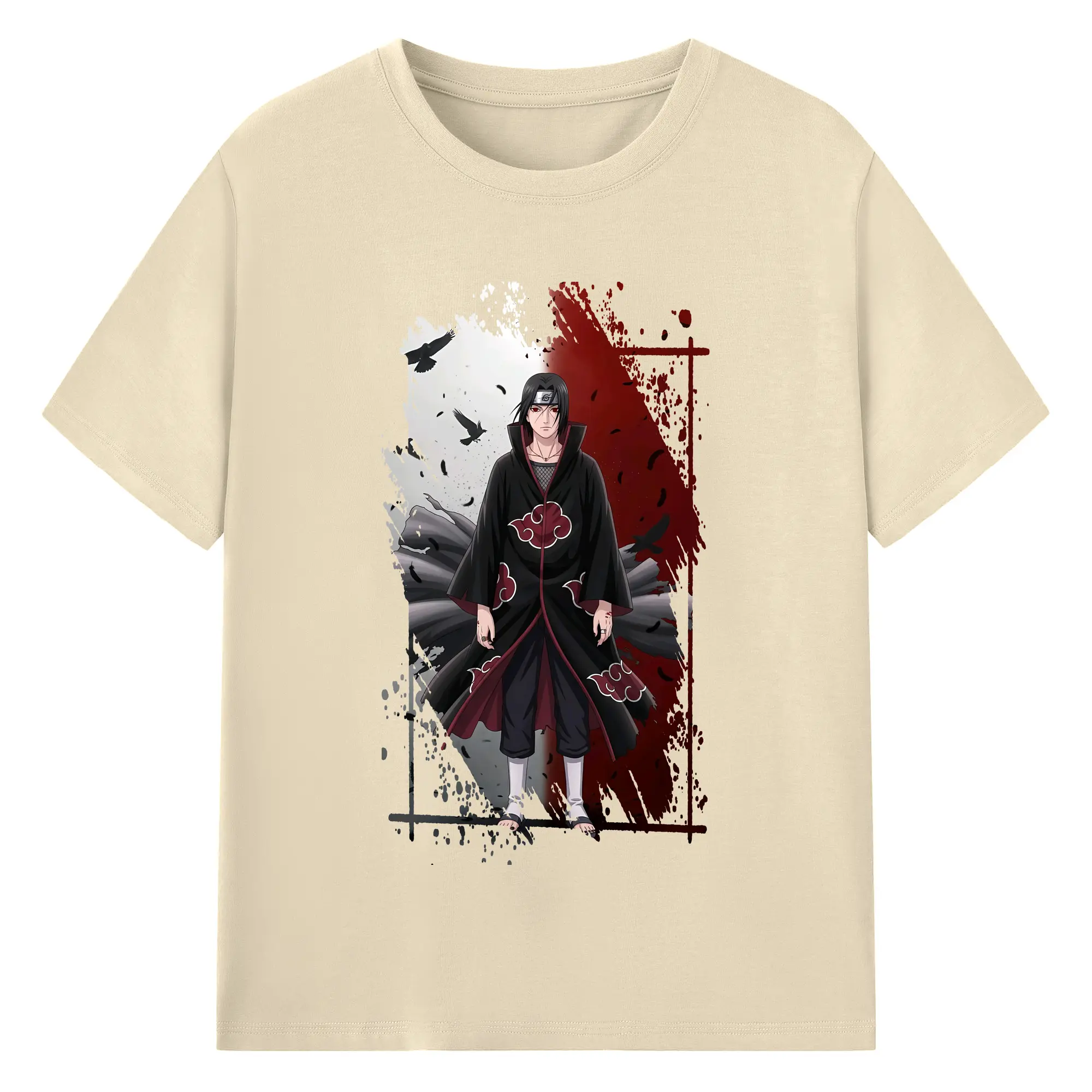 ナルト グッズ うちは イタチ - 綿100% ヴィンテージ風 半袖Tシャツ ・ フロントプリント ・ 柔らか肌触り ・ 通気性 快適 ・ スポーツ カジュアル 外出用