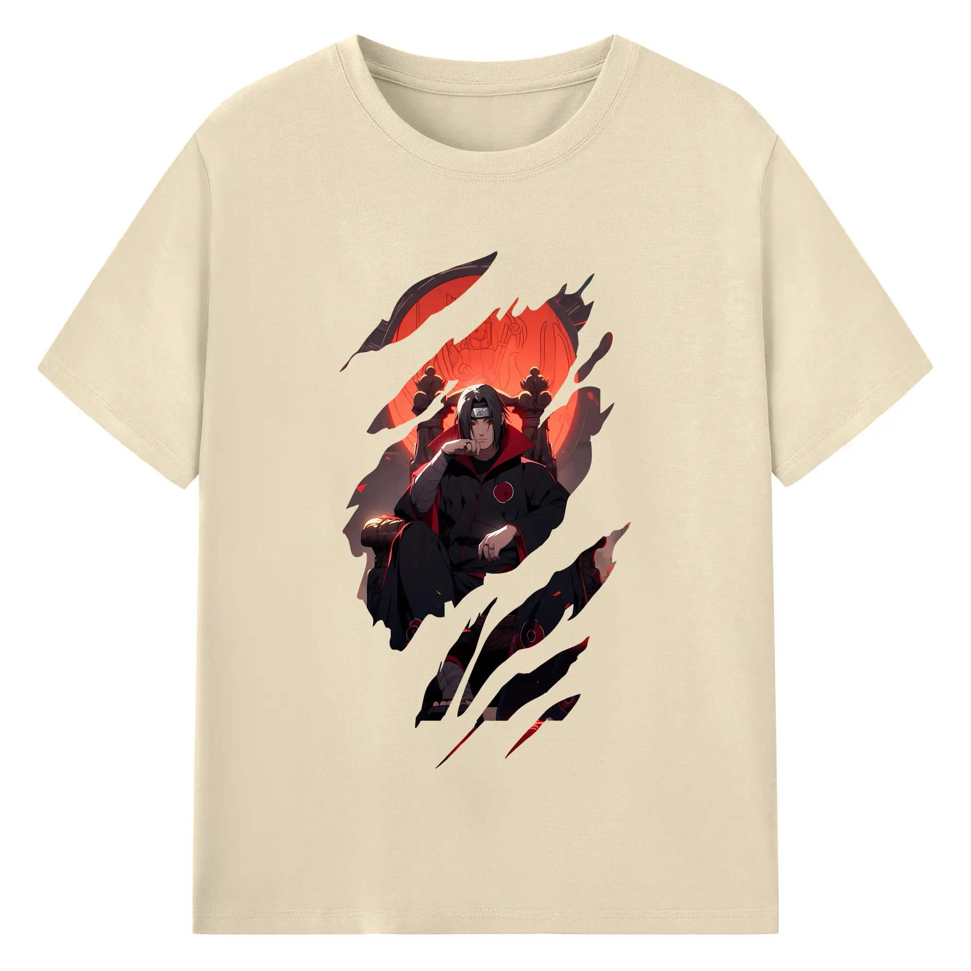 ナルト グッズ うちは イタチ - 綿100% ヴィンテージ風 半袖Tシャツ ・ フロントプリント ・ 柔らか肌触り ・ 通気性 快適 ・ スポーツ カジュアル 外出用