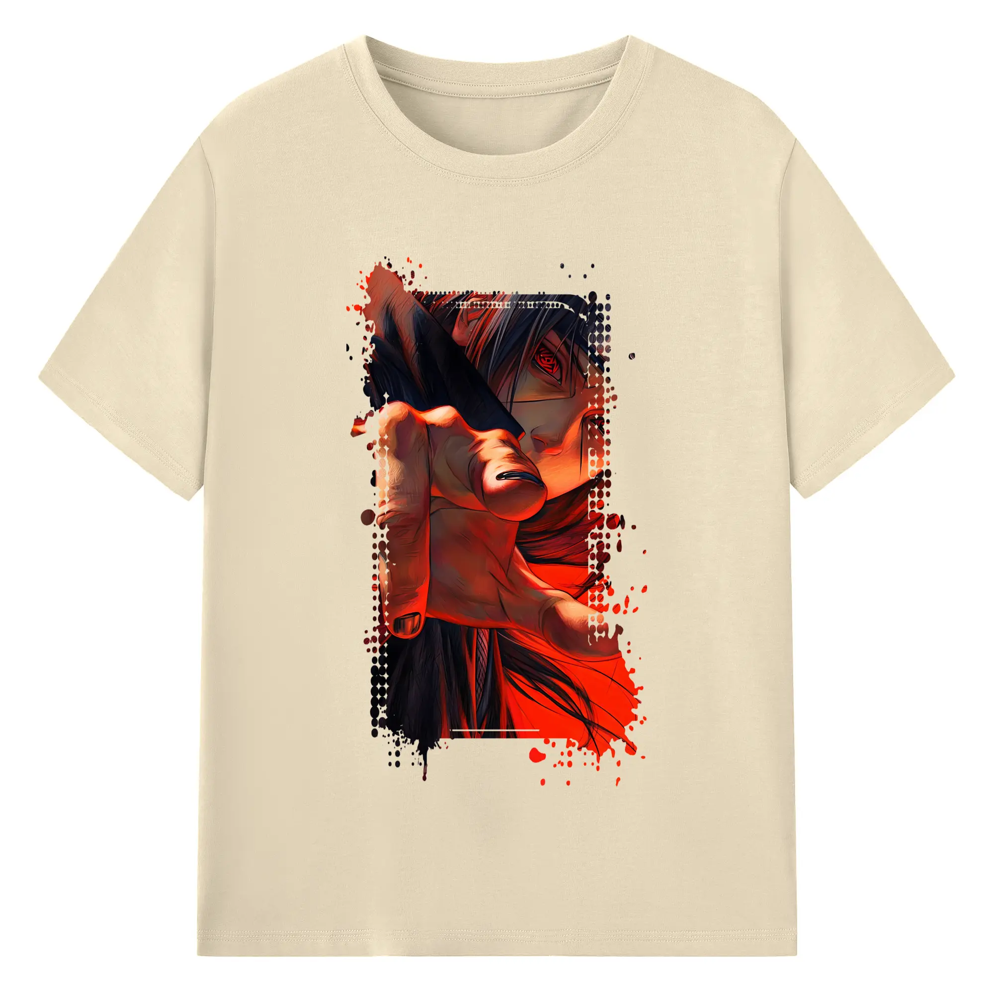 ナルト グッズ うちは イタチ - 綿100% ヴィンテージ風 半袖Tシャツ ・ フロントプリント ・ 柔らか肌触り ・ 通気性 快適 ・ スポーツ カジュアル 外出用