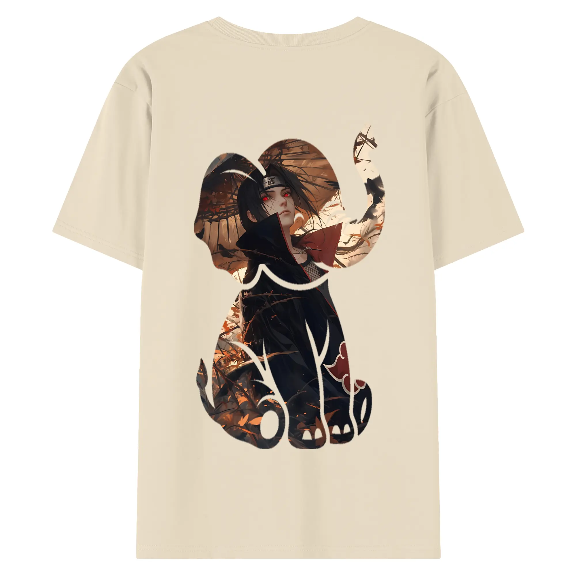ナルト グッズ うちは イタチ - 綿100% ヴィンテージ風 半袖Tシャツ ・ 背面プリント ・ 柔らか肌触り ・ 通気性 快適 ・ スポーツ カジュアル 外出用
