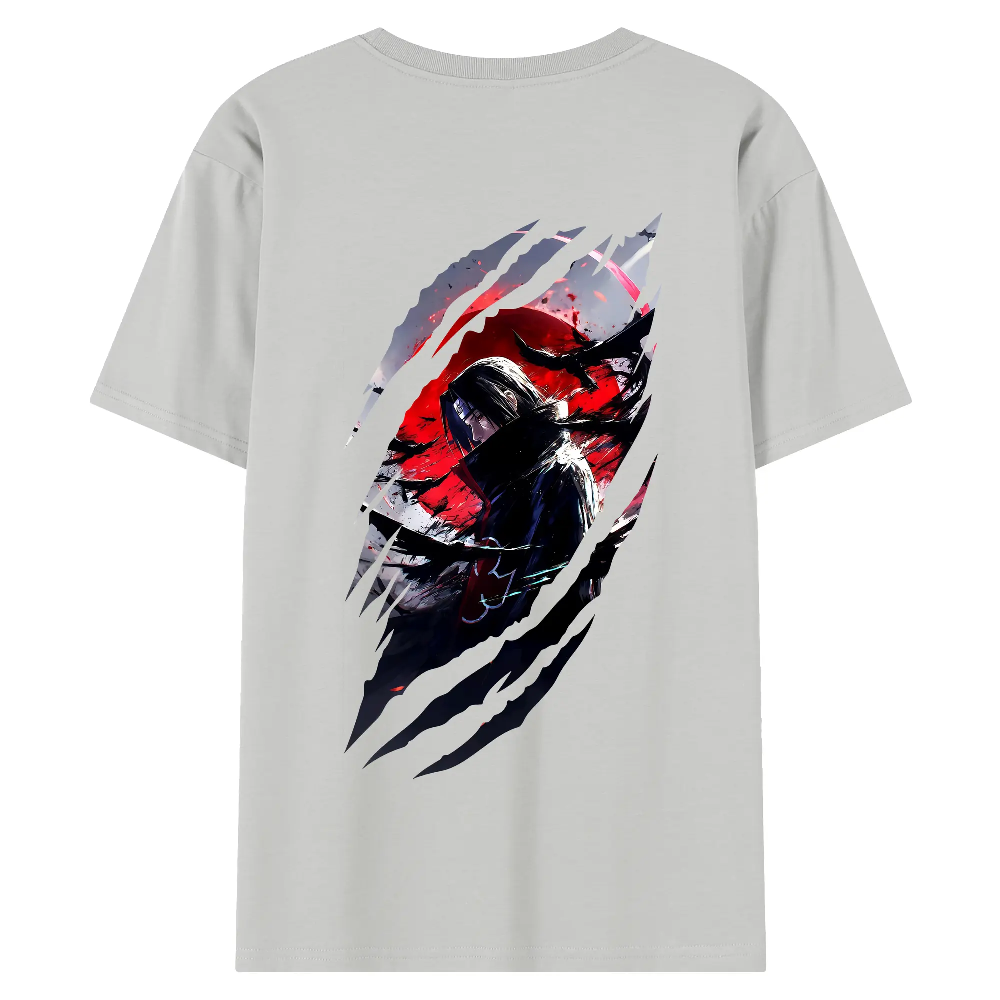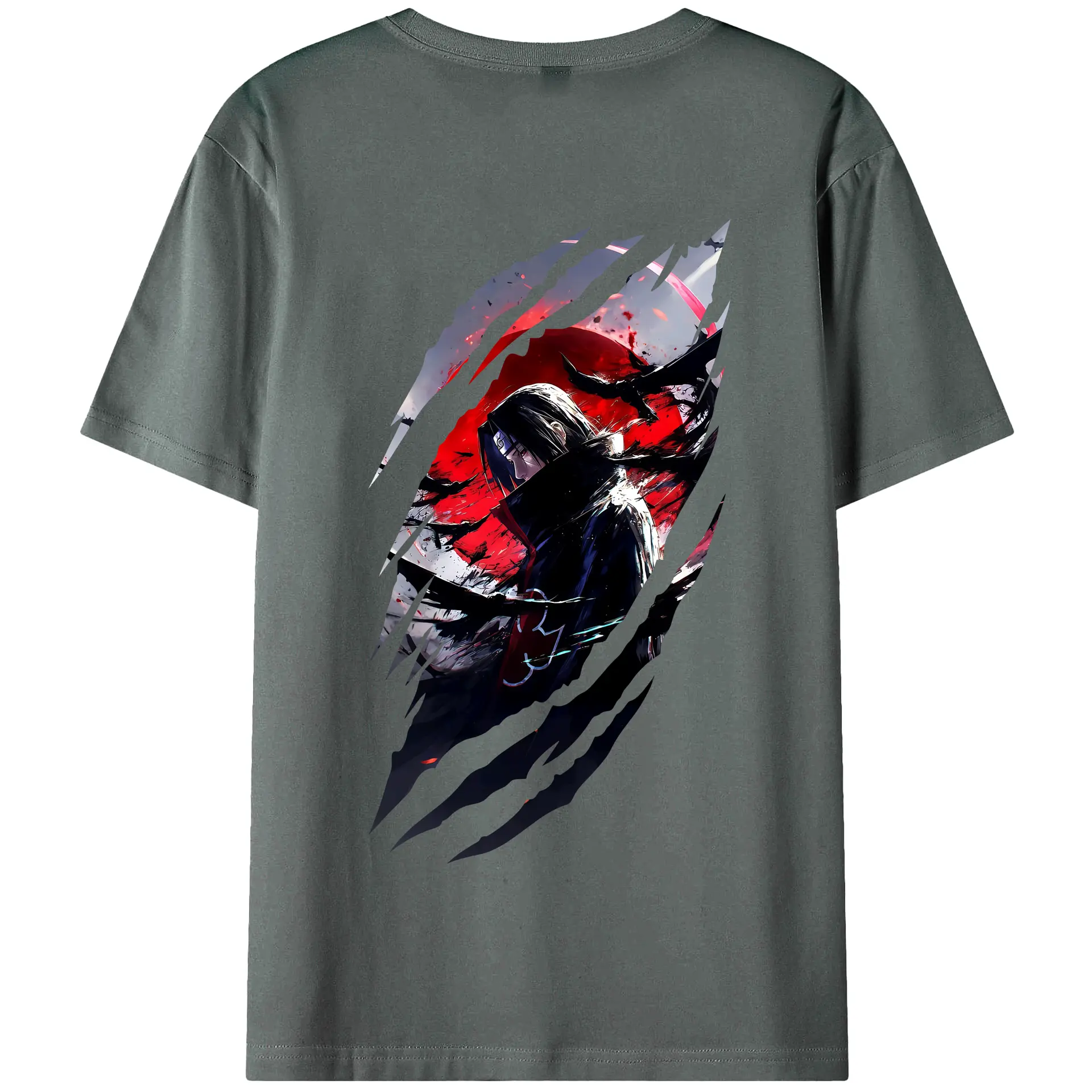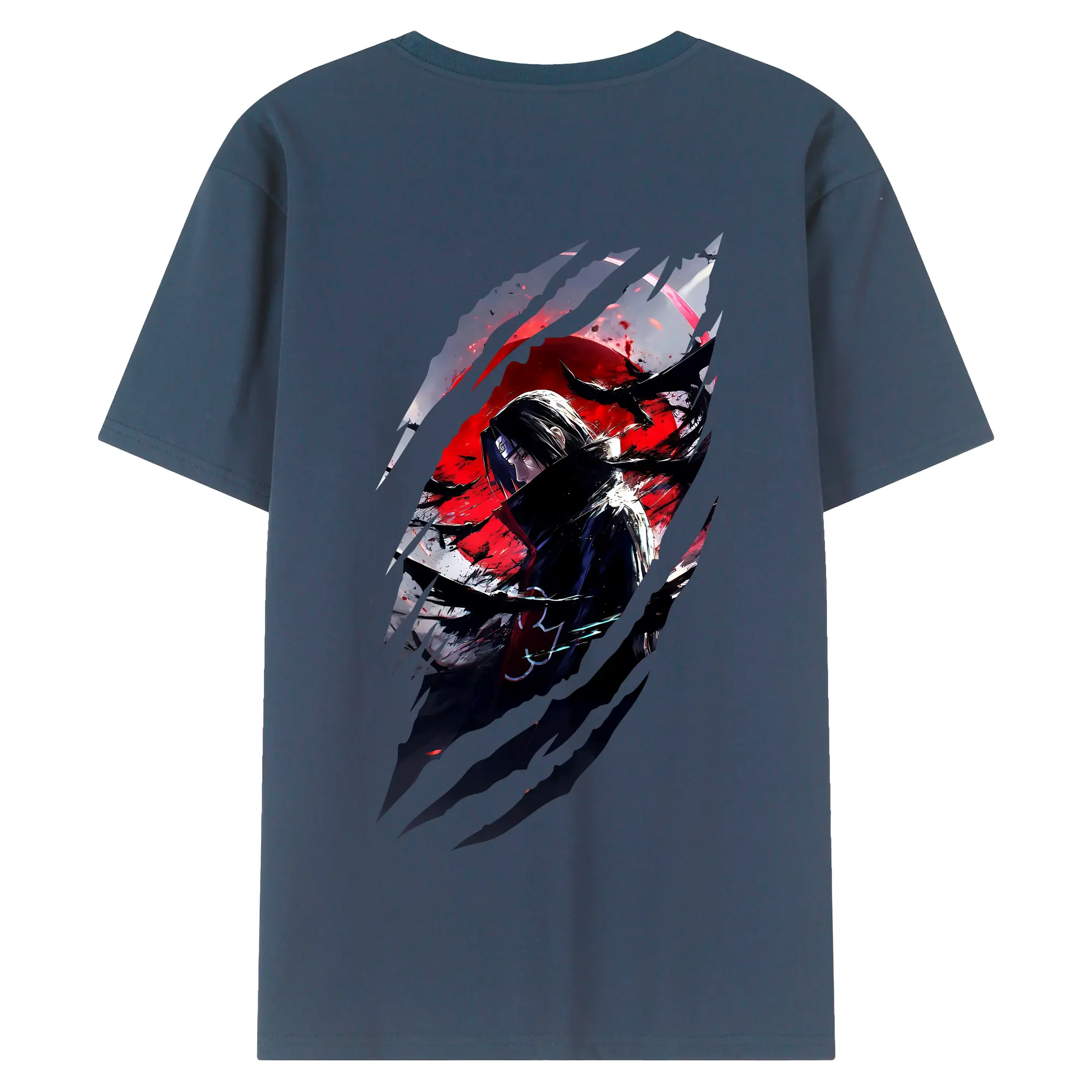 ナルト グッズ うちは イタチ - 綿100% ヴィンテージ風 半袖Tシャツ ・ 背面プリント ・ 柔らか肌触り ・ 通気性 快適 ・ スポーツ カジュアル 外出用