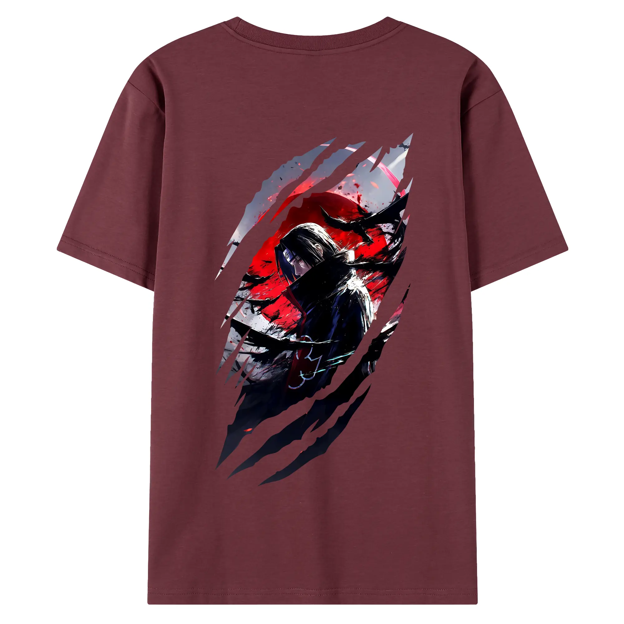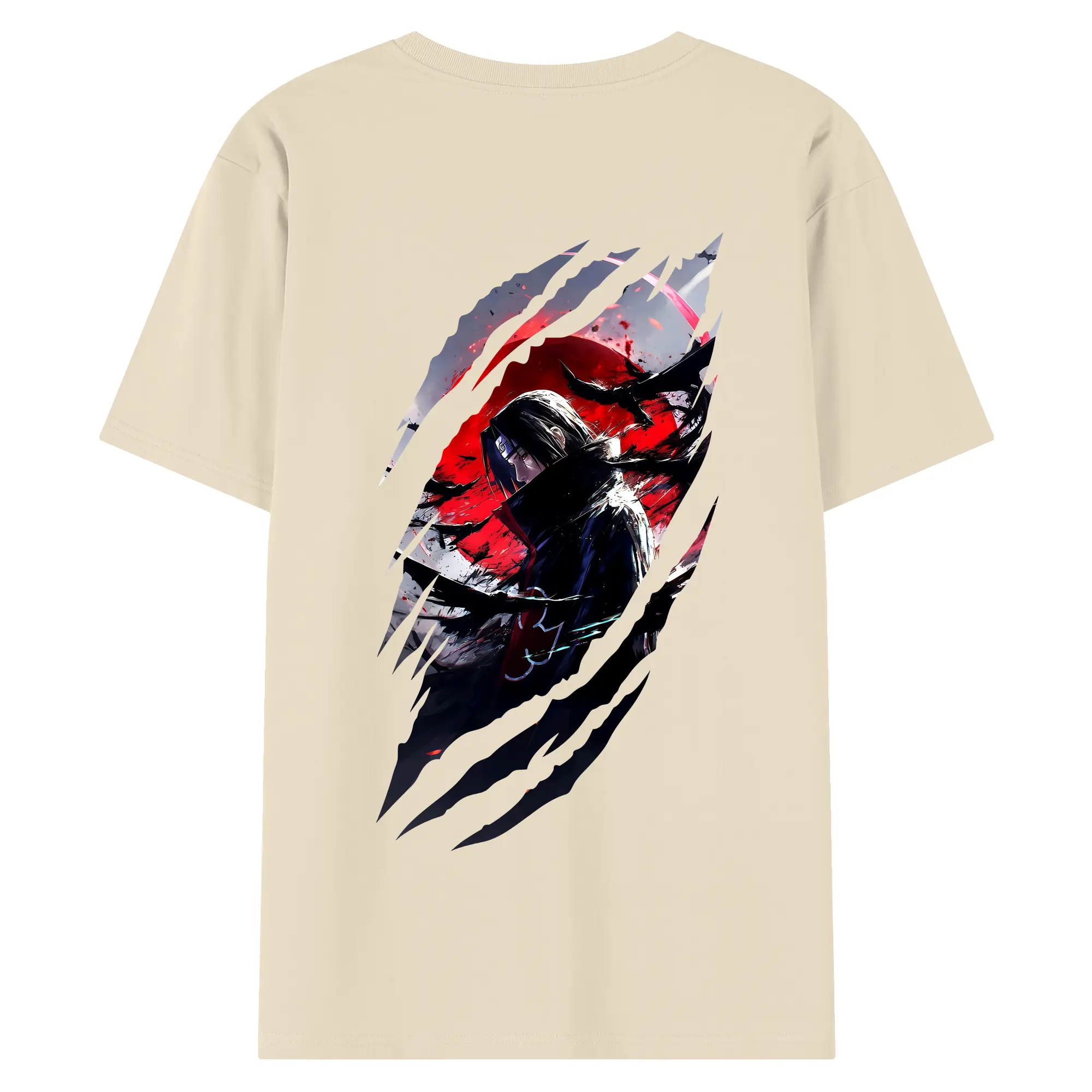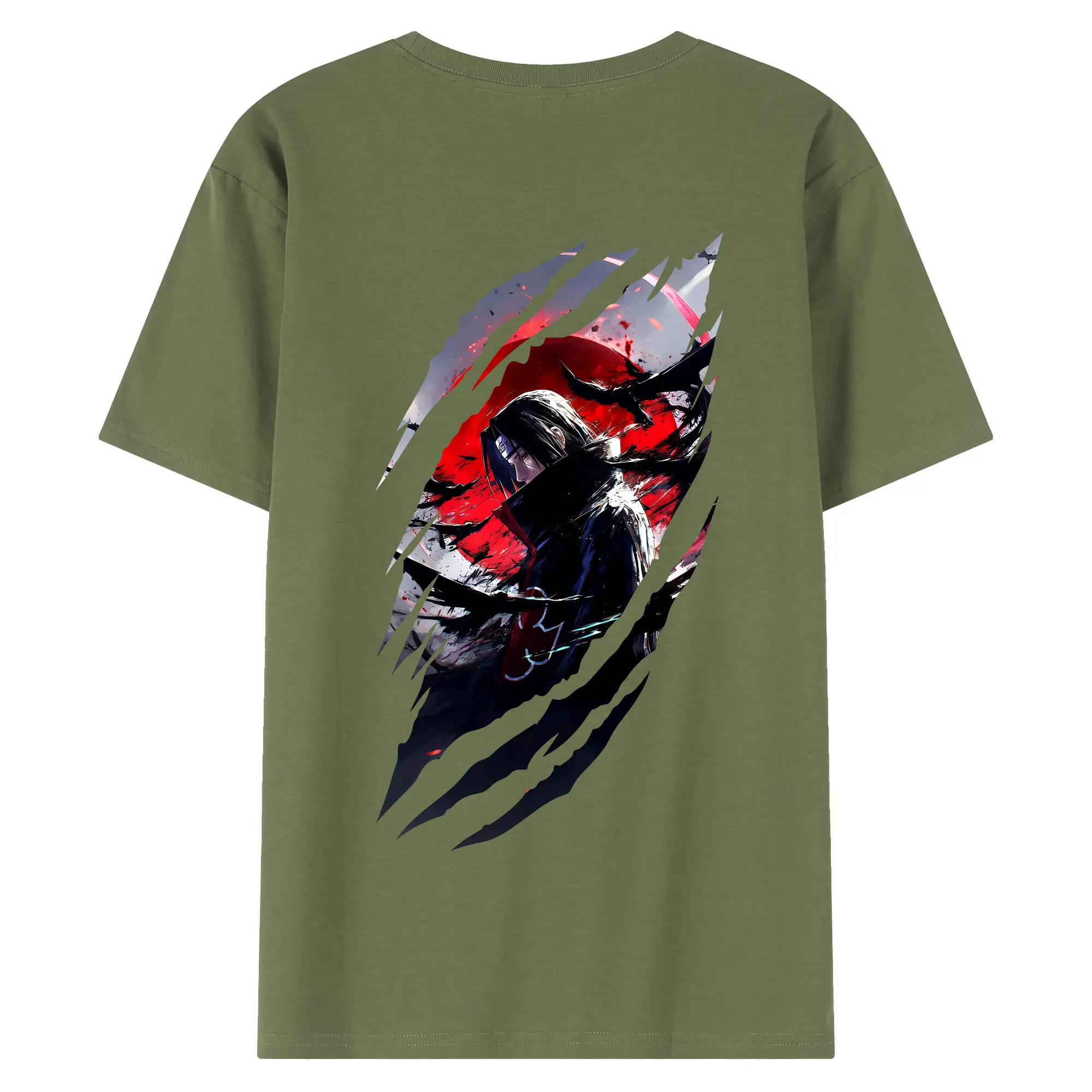 ナルト グッズ うちは イタチ - 綿100% ヴィンテージ風 半袖Tシャツ ・ 背面プリント ・ 柔らか肌触り ・ 通気性 快適 ・ スポーツ カジュアル 外出用