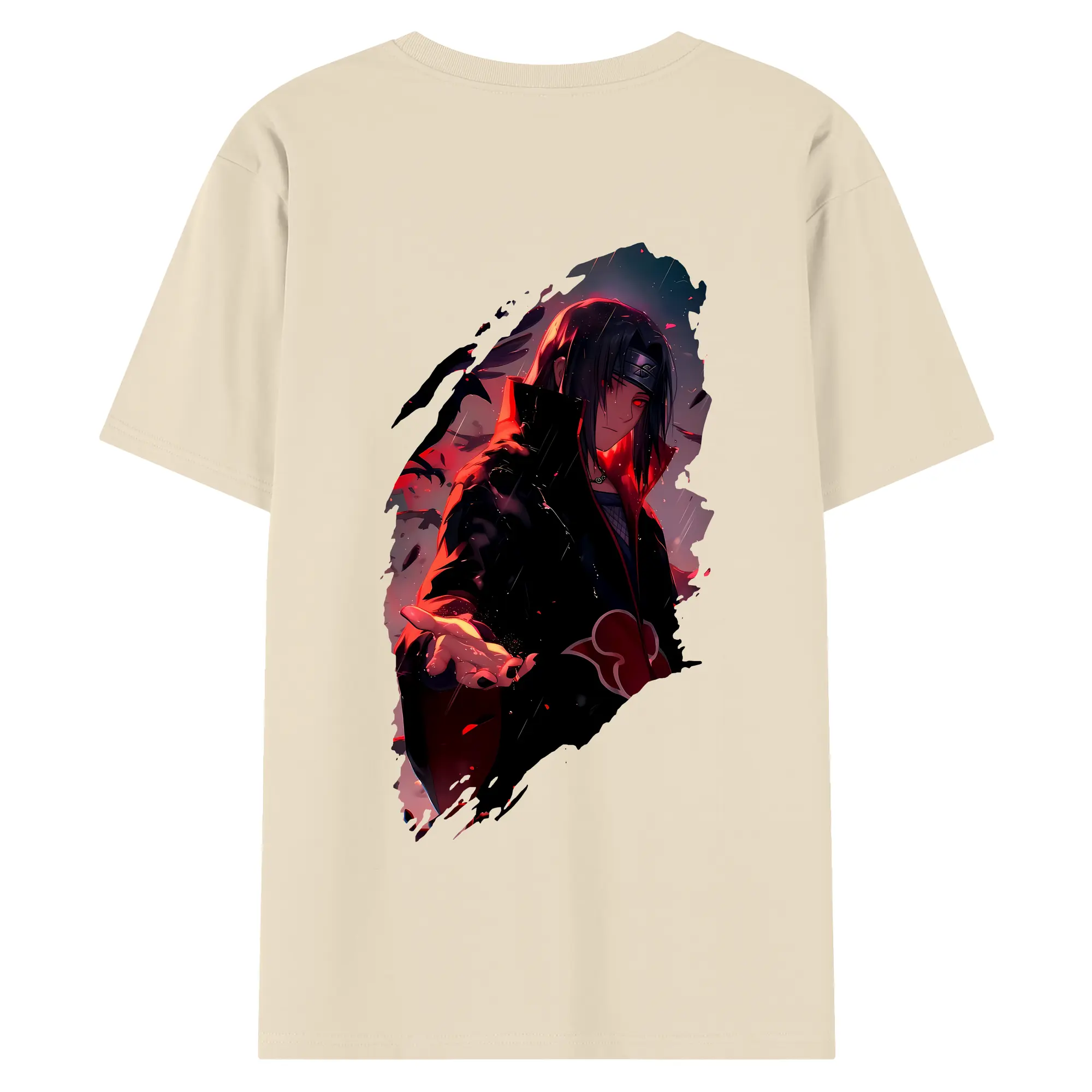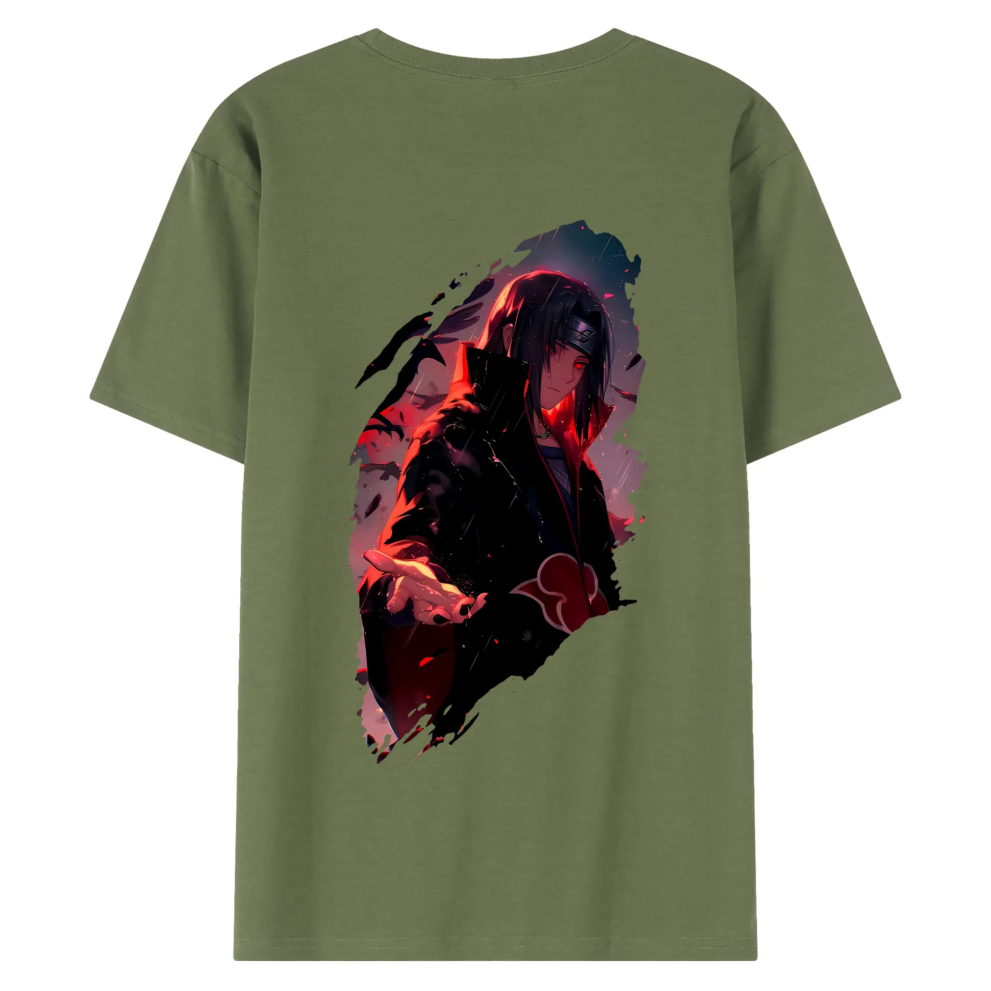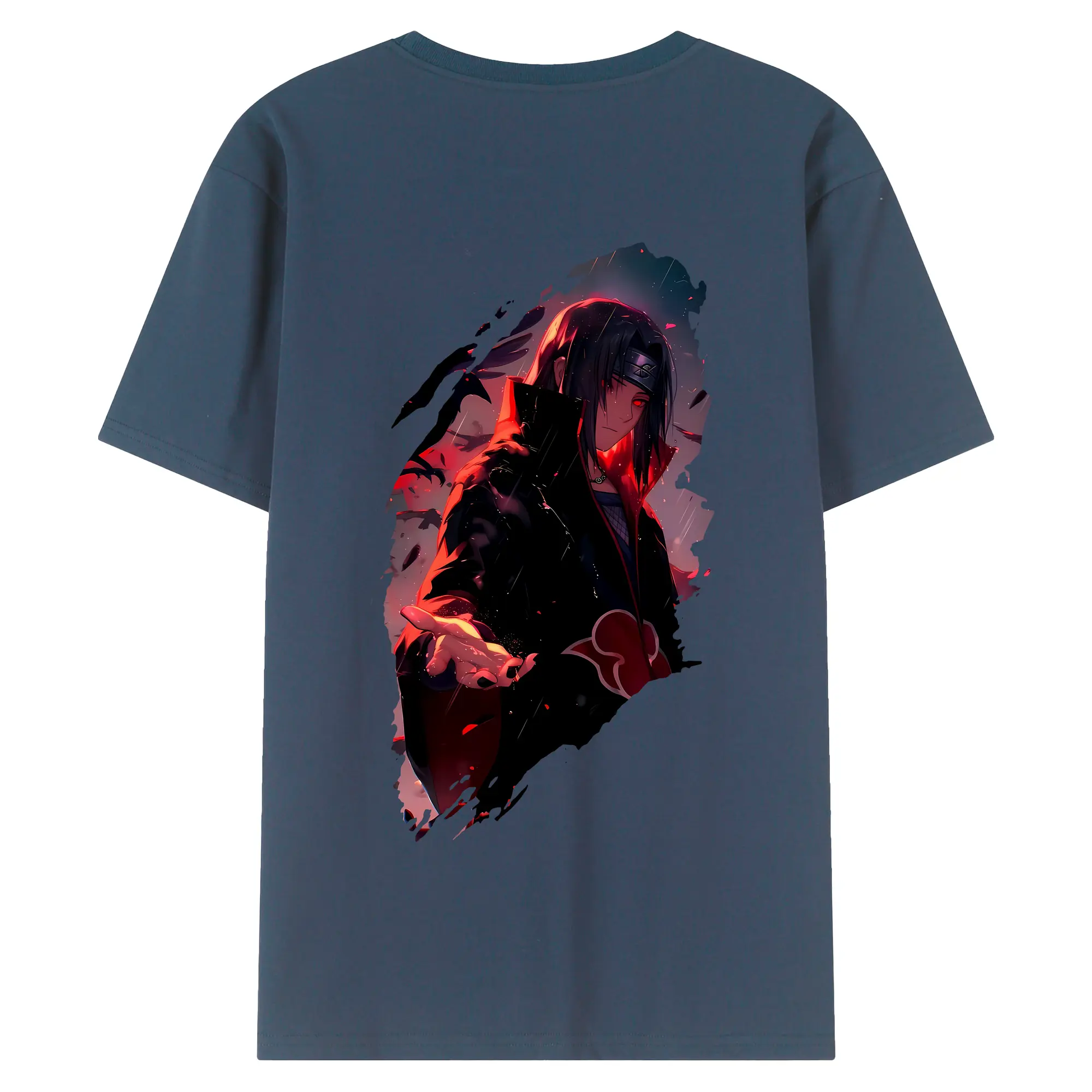 ナルト グッズ うちは イタチ - 綿100% ヴィンテージ風 半袖Tシャツ ・ 背面プリント ・ 柔らか肌触り ・ 通気性 快適 ・ スポーツ カジュアル 外出用
