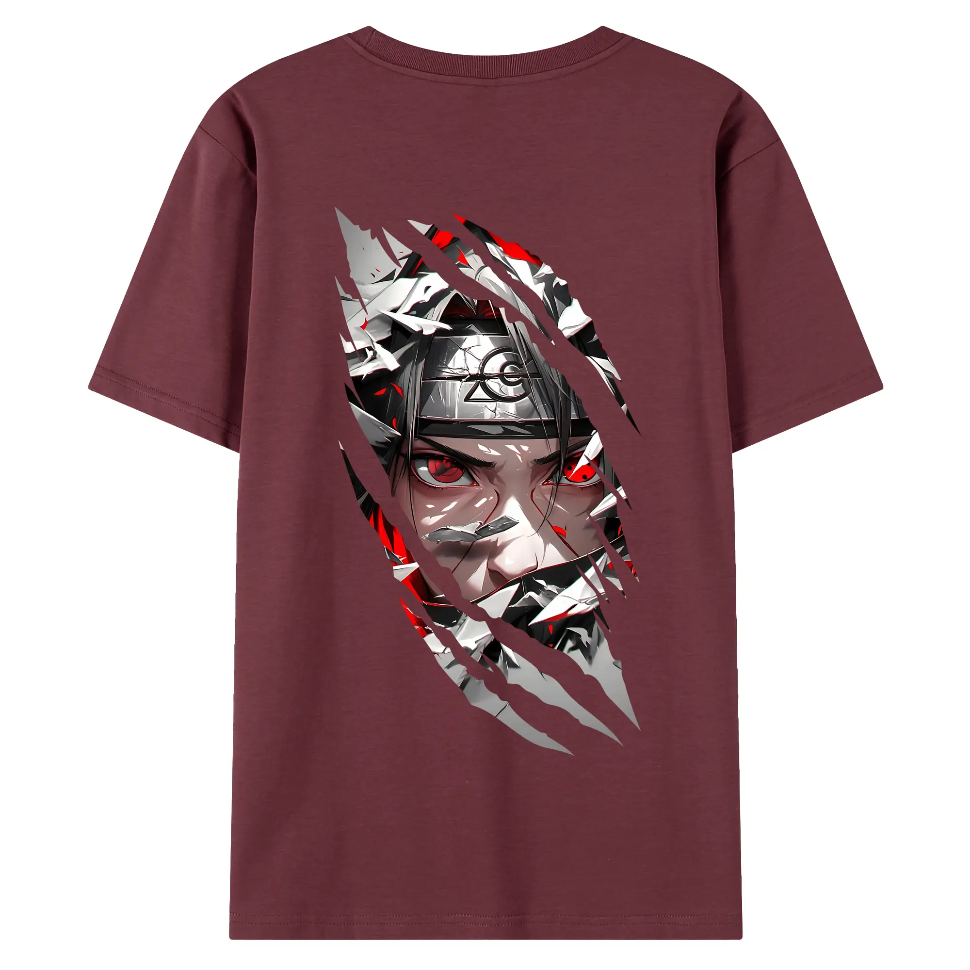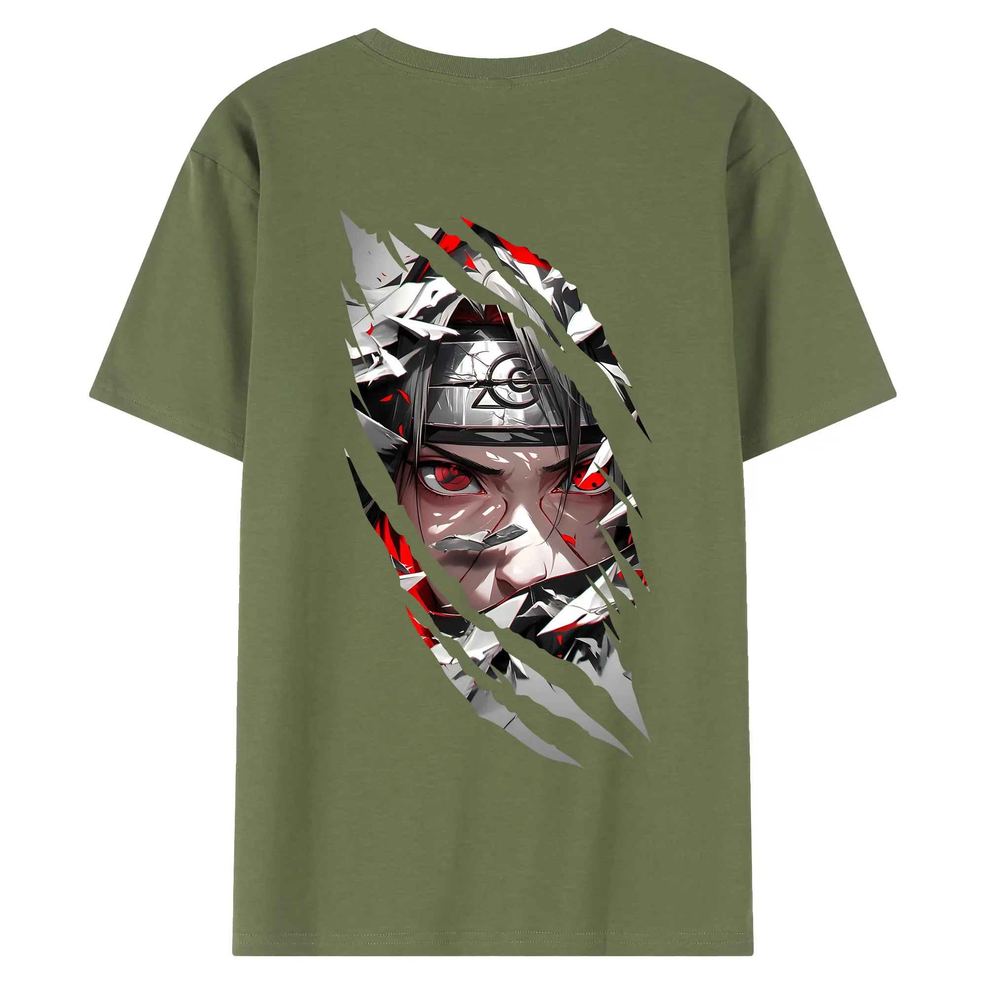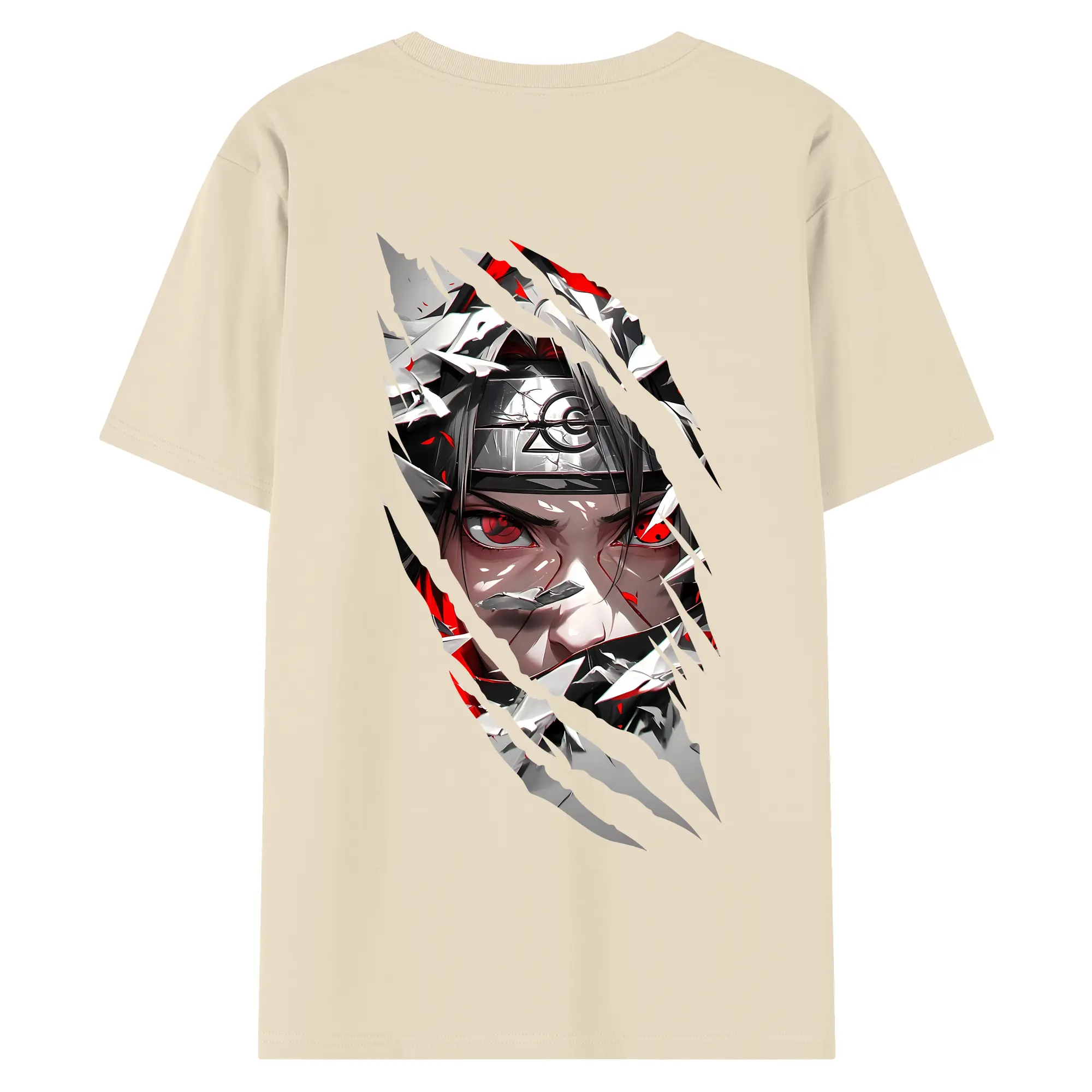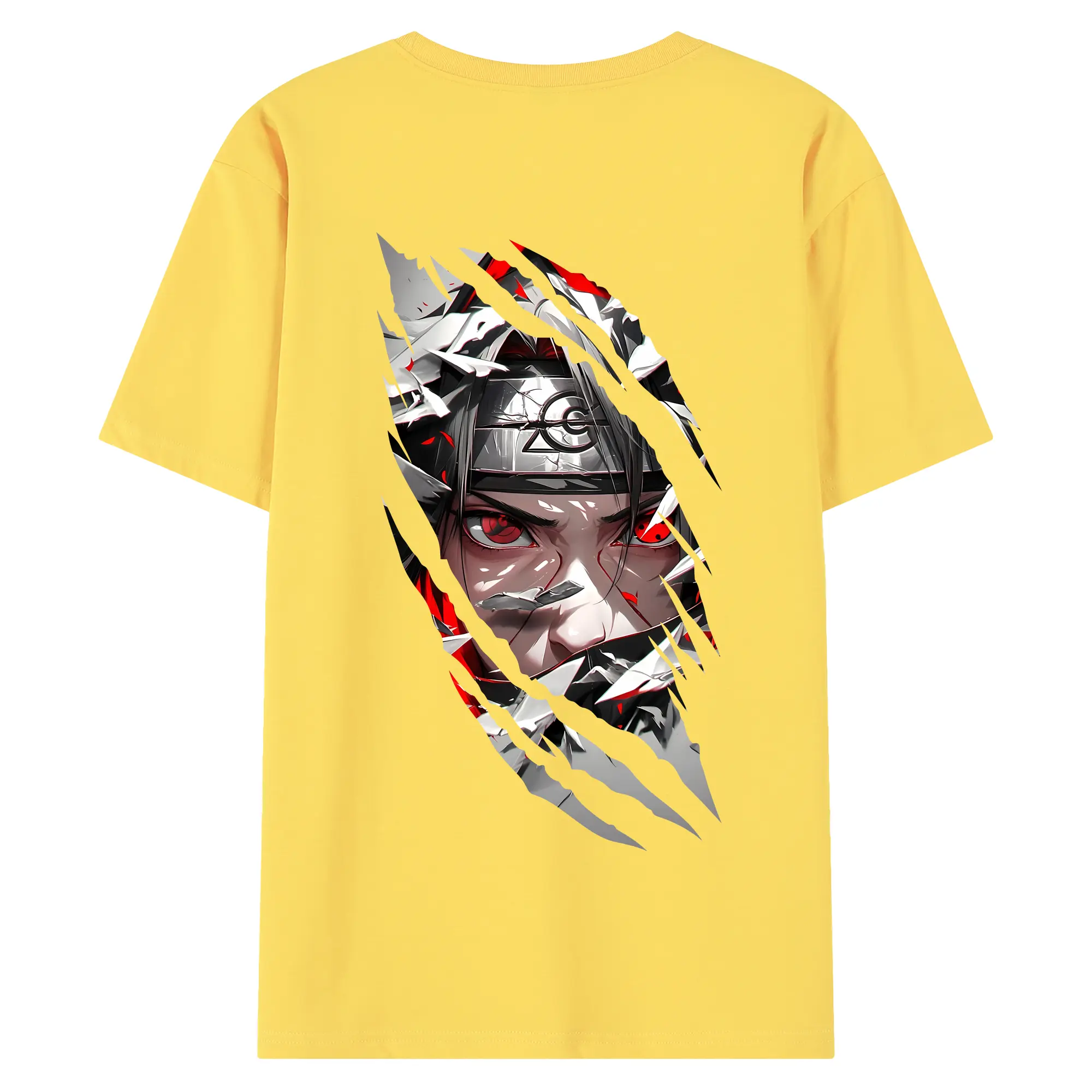 ナルト グッズ うちは イタチ - 綿100% ヴィンテージ風 半袖Tシャツ ・ 背面プリント ・ 柔らか肌触り ・ 通気性 快適 ・ スポーツ カジュアル 外出用