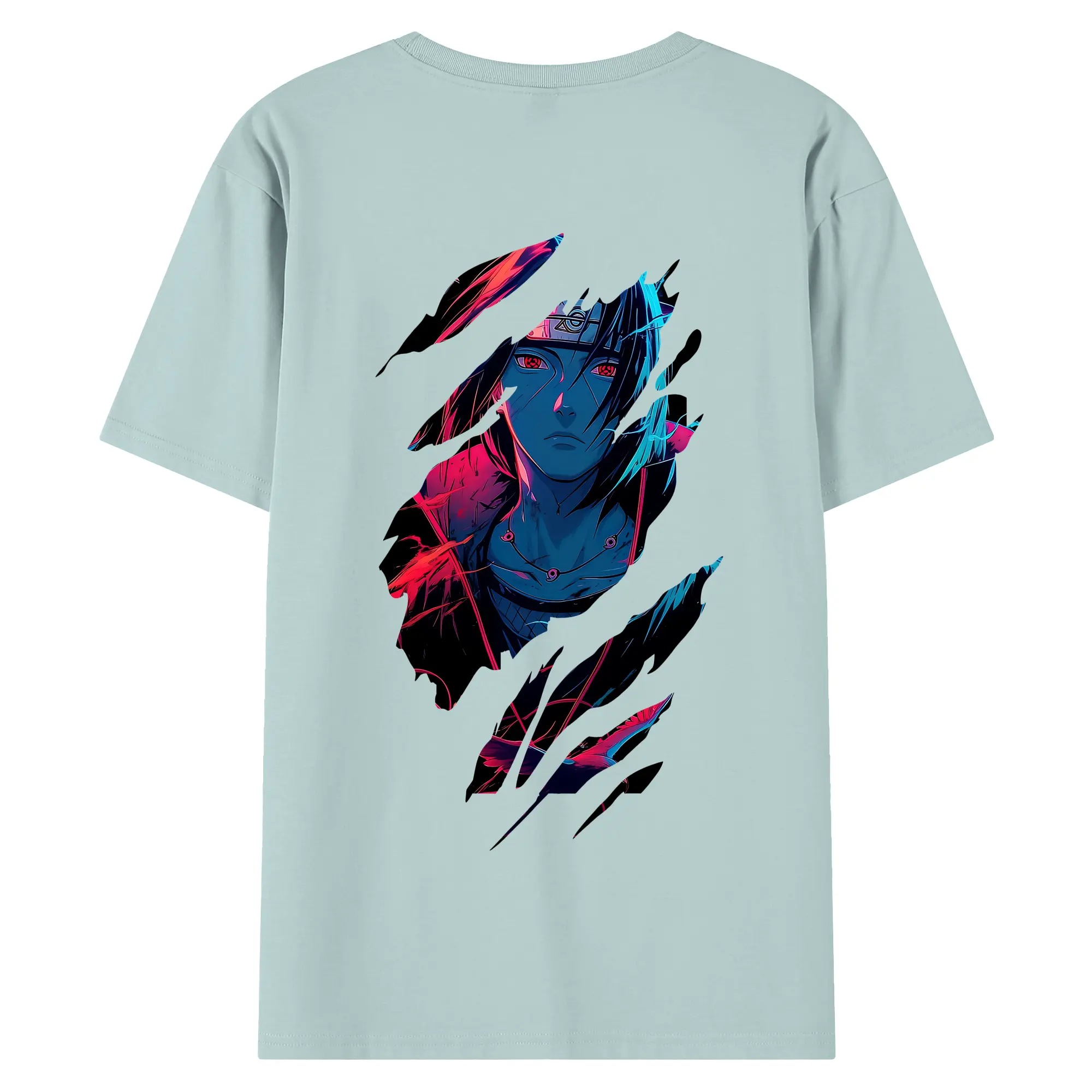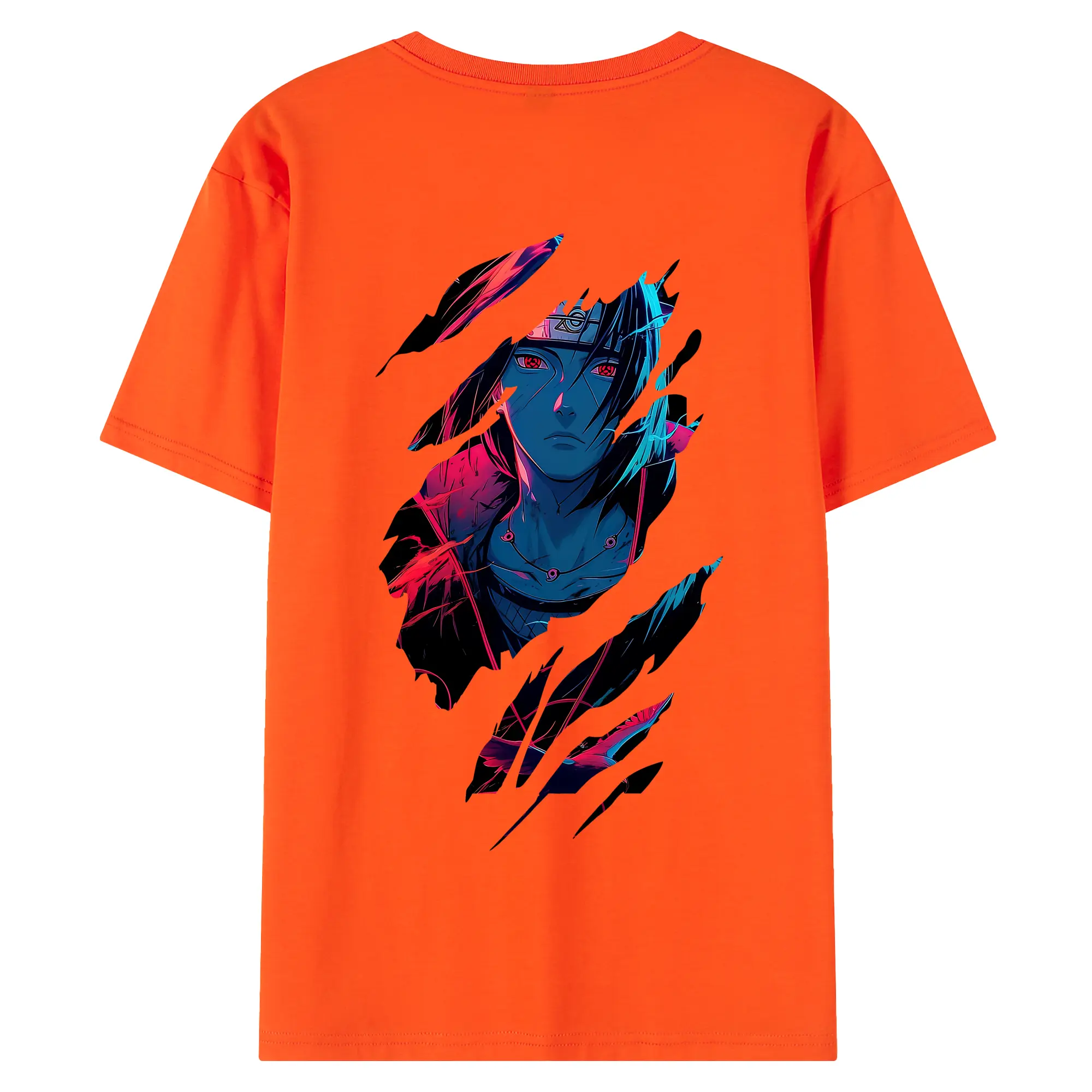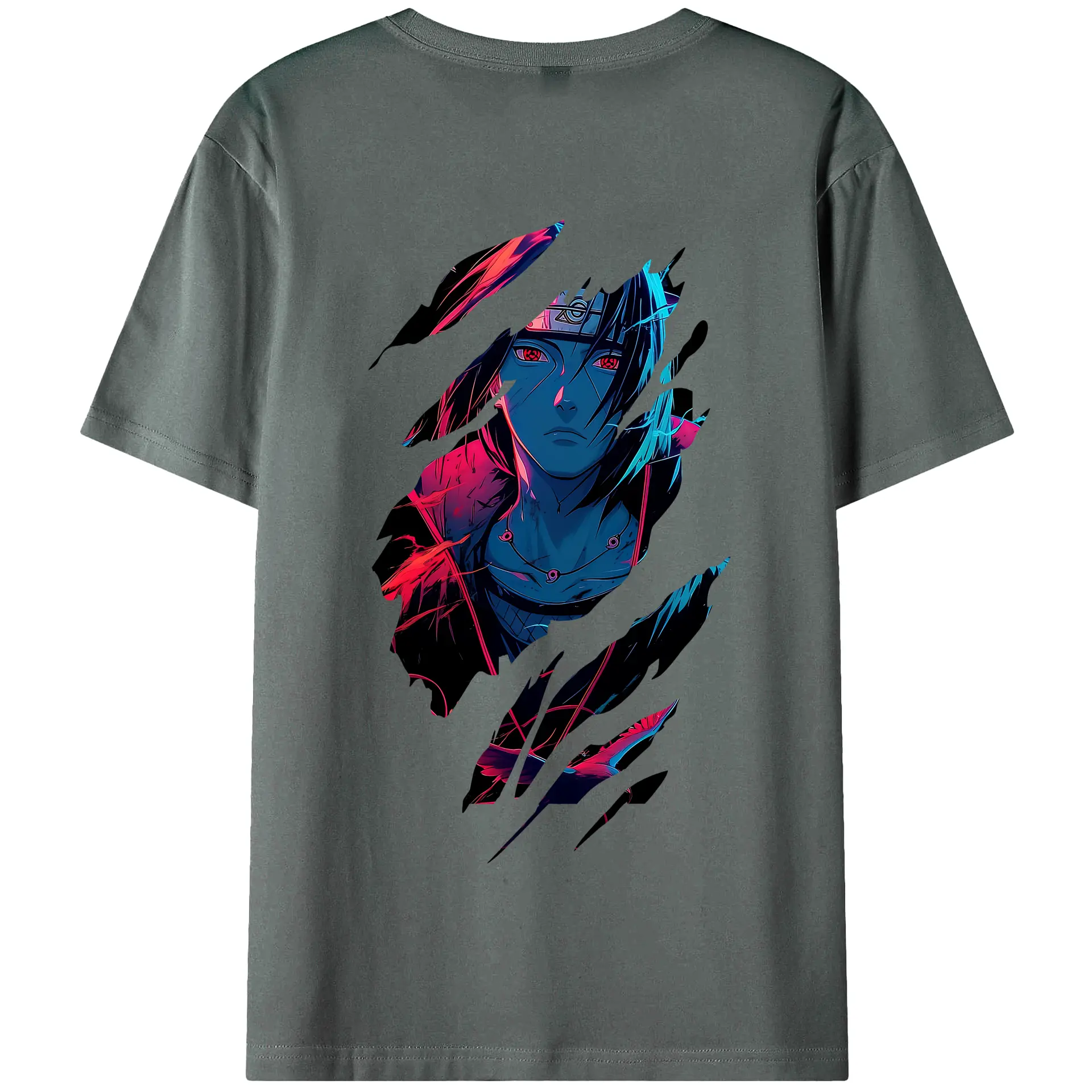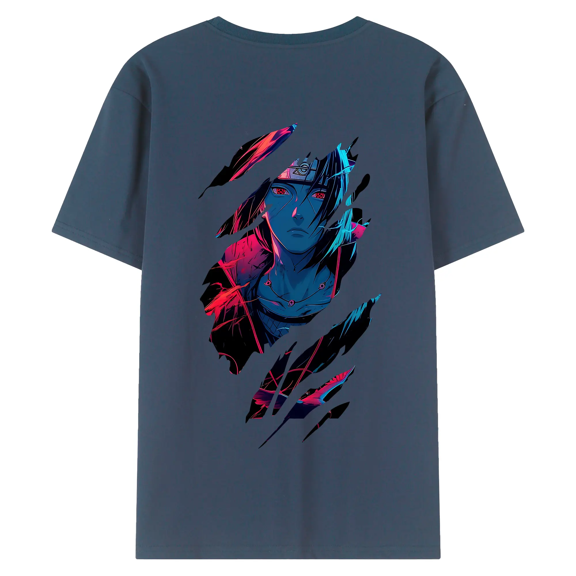 ナルト グッズ うちは イタチ - 綿100% ヴィンテージ風 半袖Tシャツ ・ 背面プリント ・ 柔らか肌触り ・ 通気性 快適 ・ スポーツ カジュアル 外出用