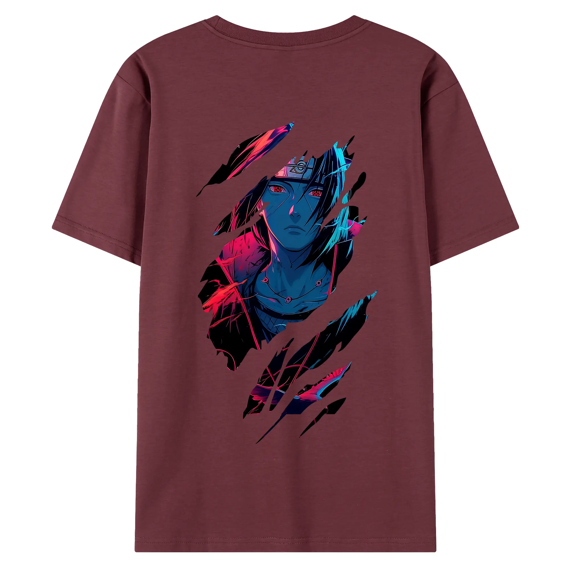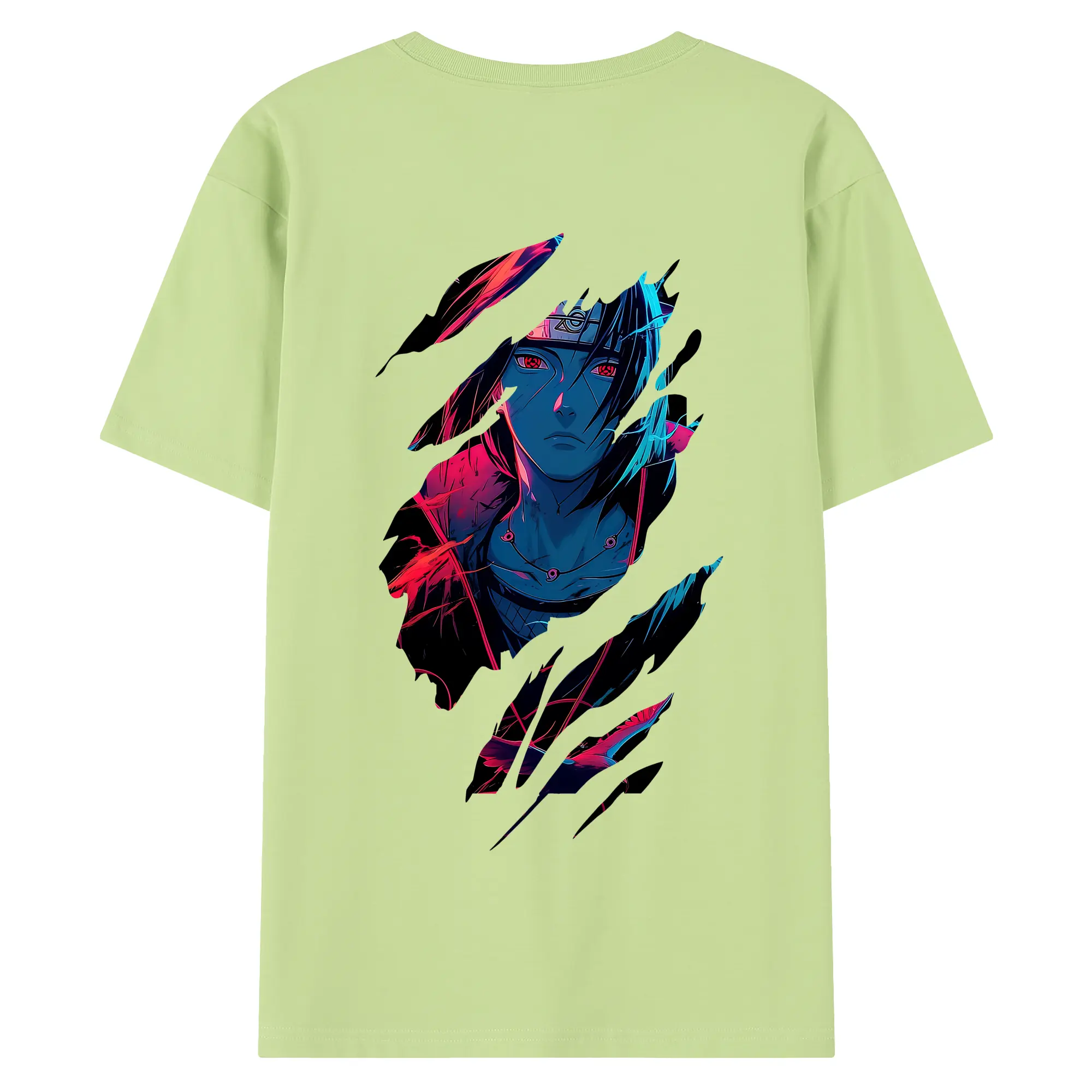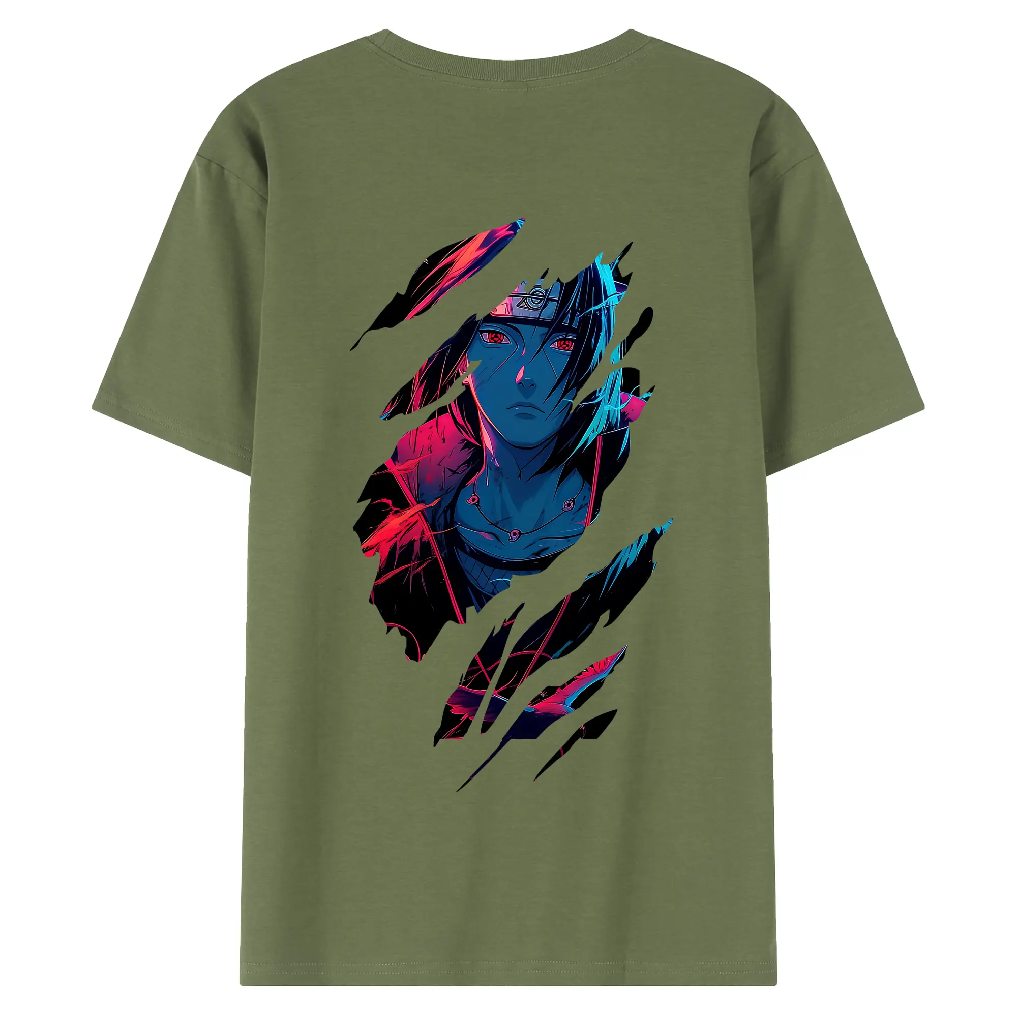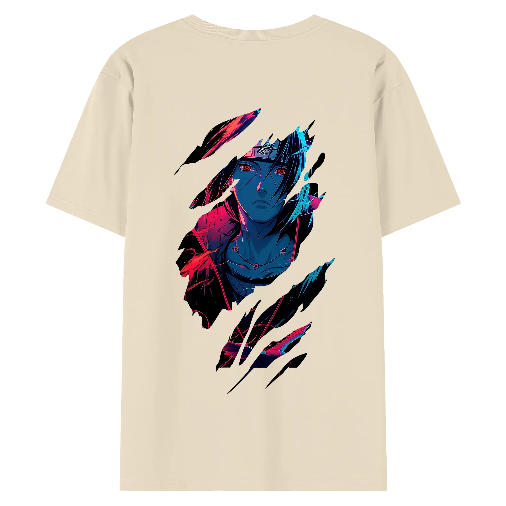 ナルト グッズ うちは イタチ - 綿100% ヴィンテージ風 半袖Tシャツ ・ 背面プリント ・ 柔らか肌触り ・ 通気性 快適 ・ スポーツ カジュアル 外出用