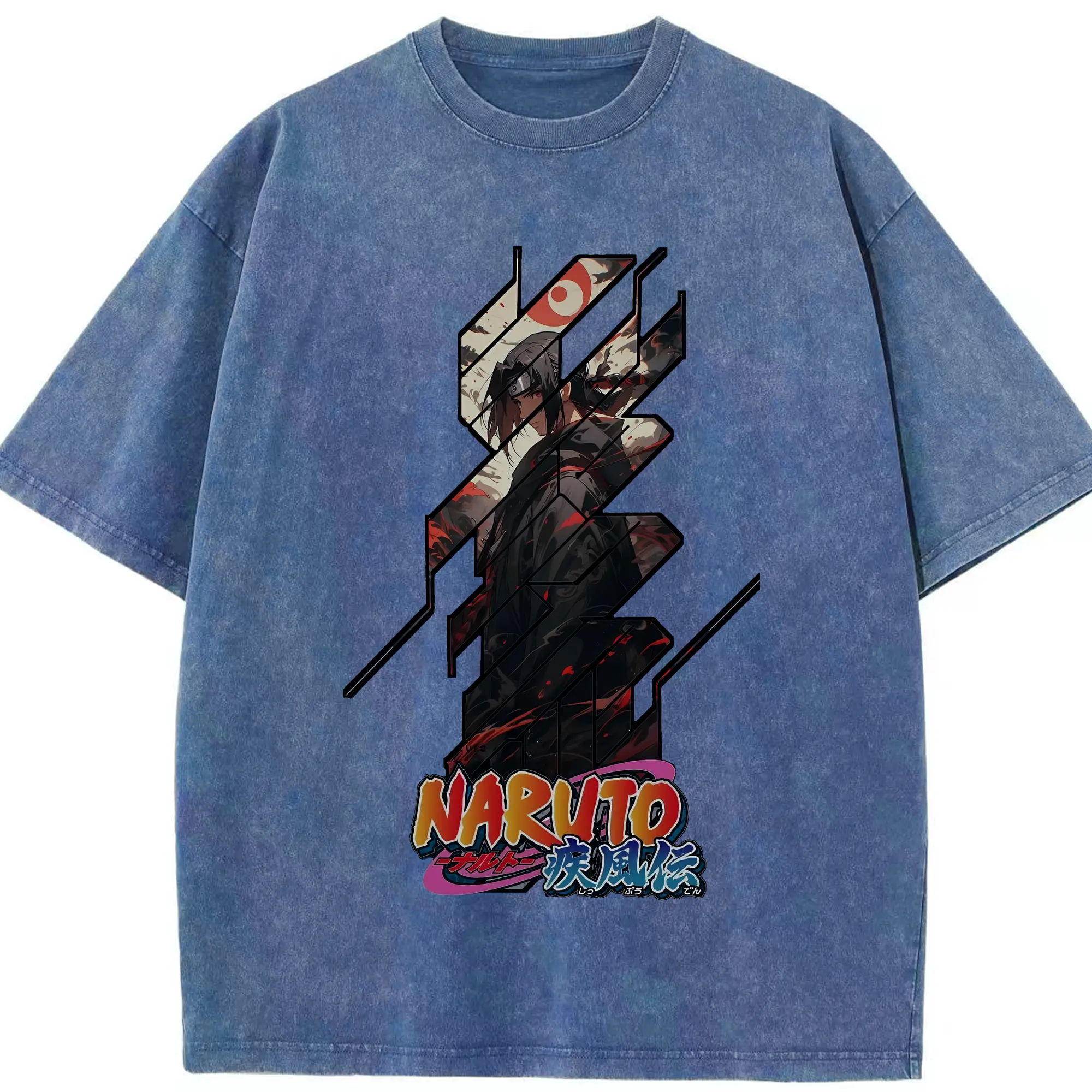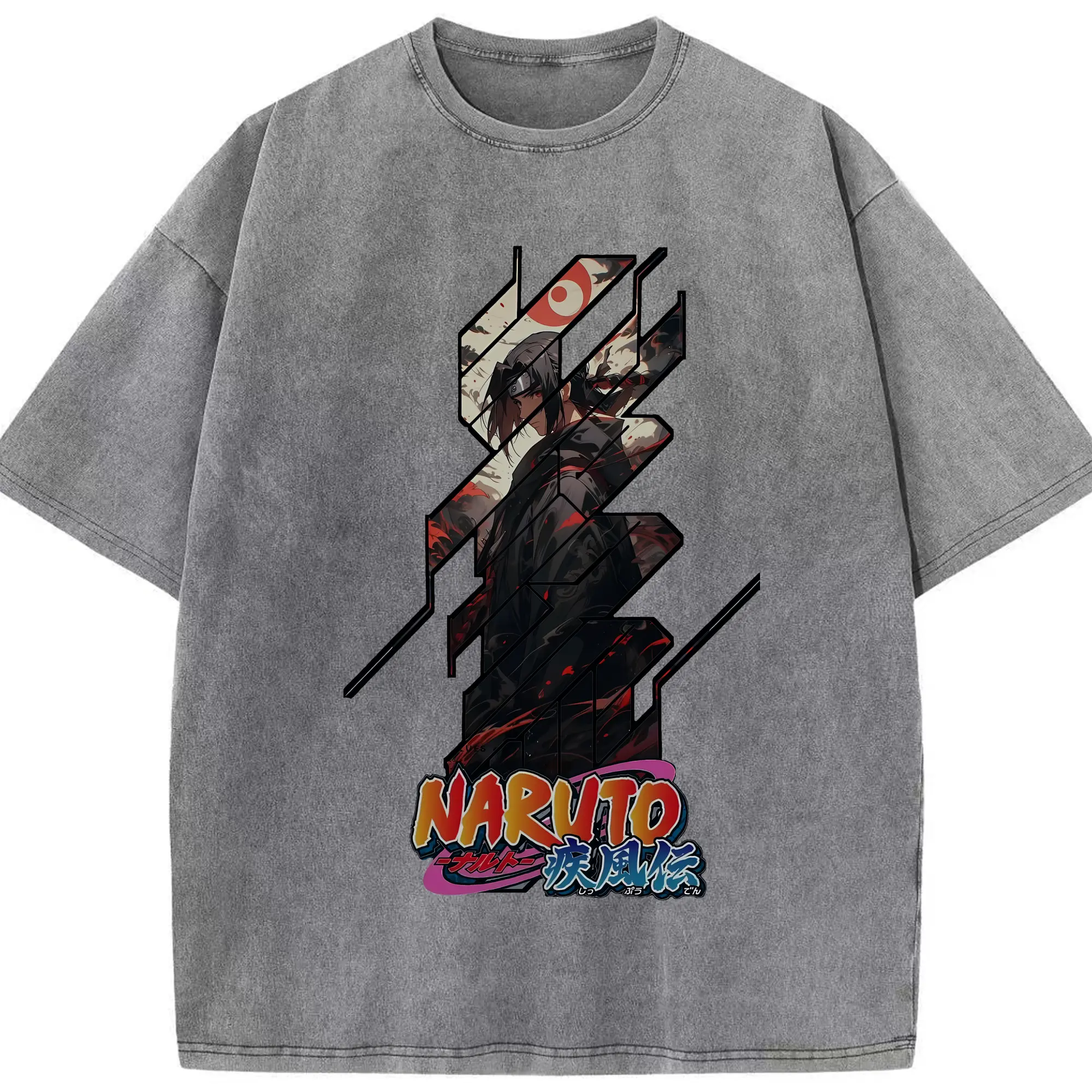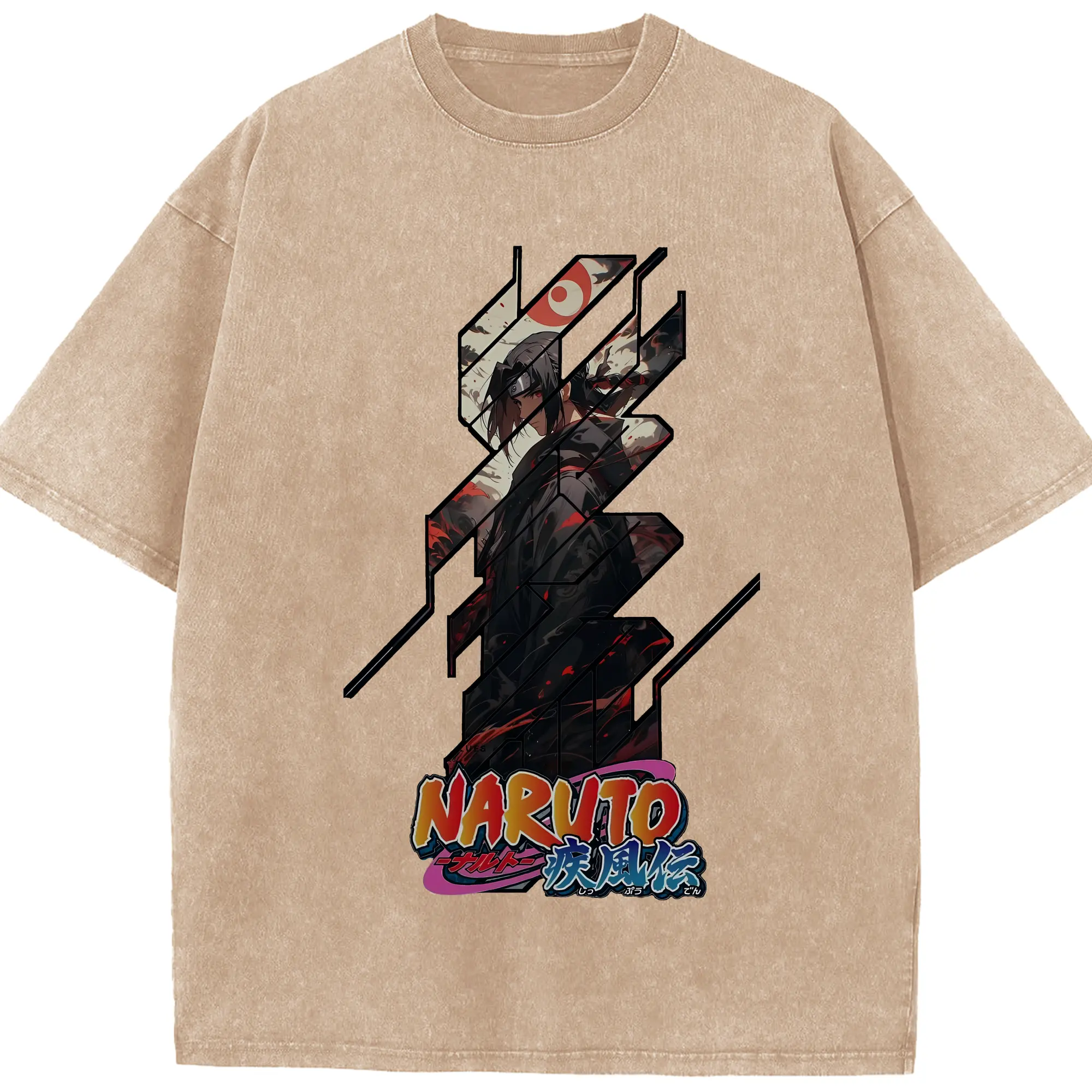 ナルト グッズ うちは イタチ - 綿100% ヴィンテージ風 半袖Tシャツ ・ 背面プリント ・ 柔らか肌触り ・ 通気性 快適 ・ スポーツ カジュアル 外出用
