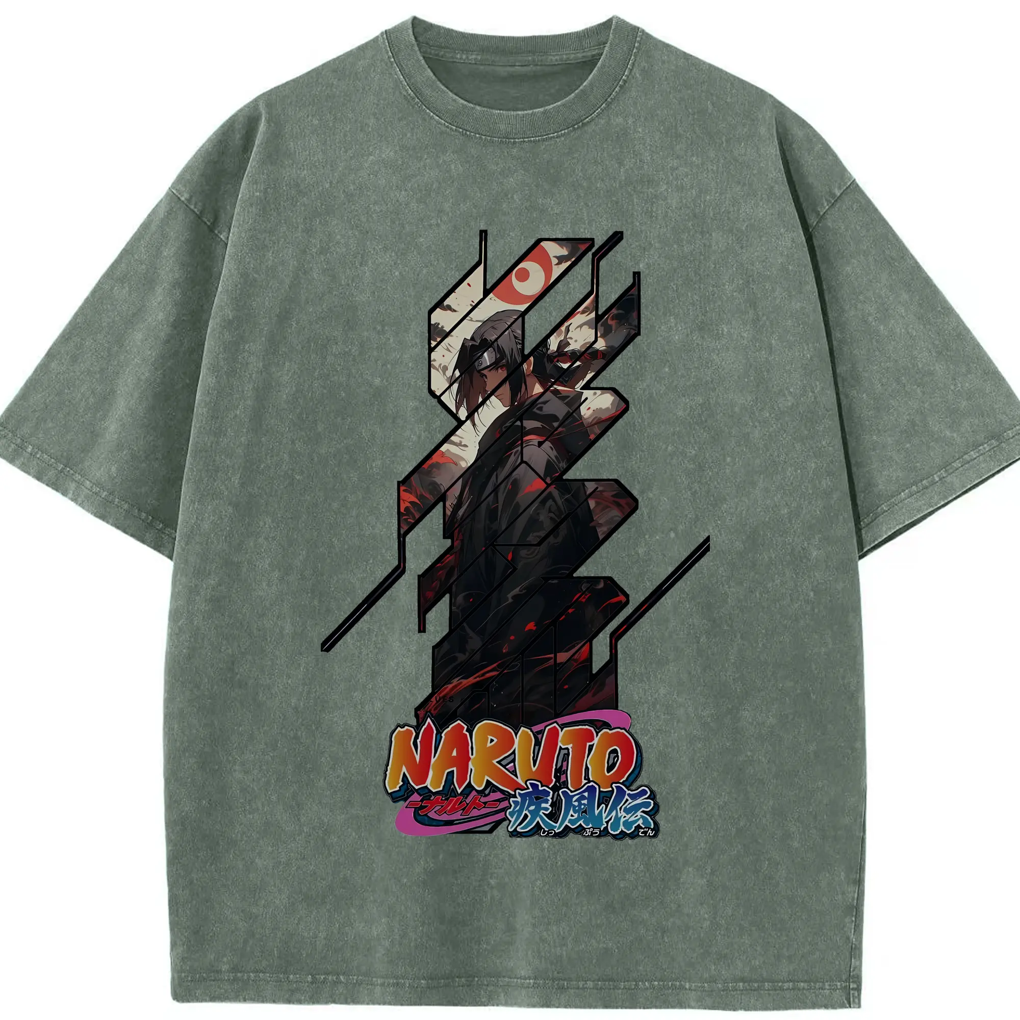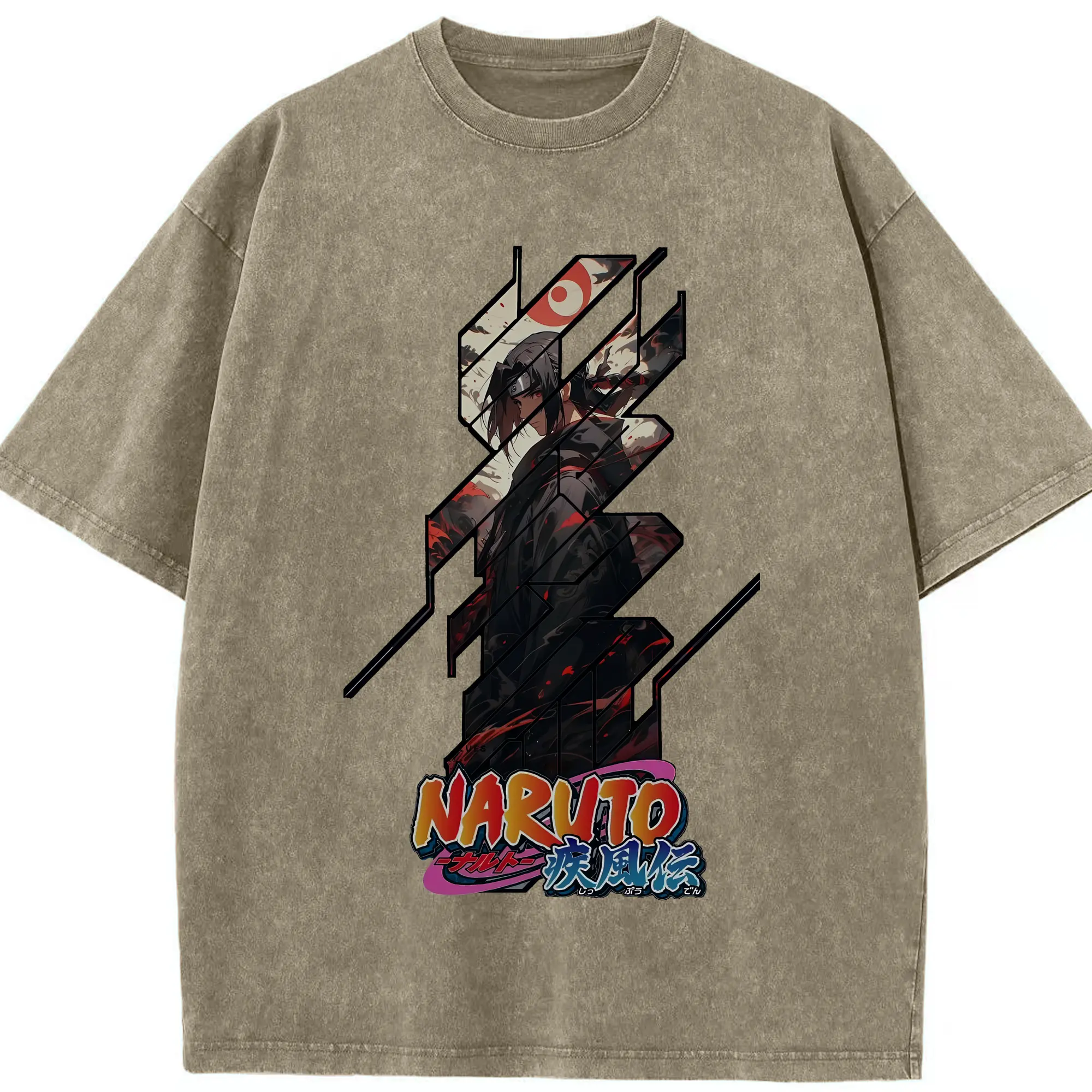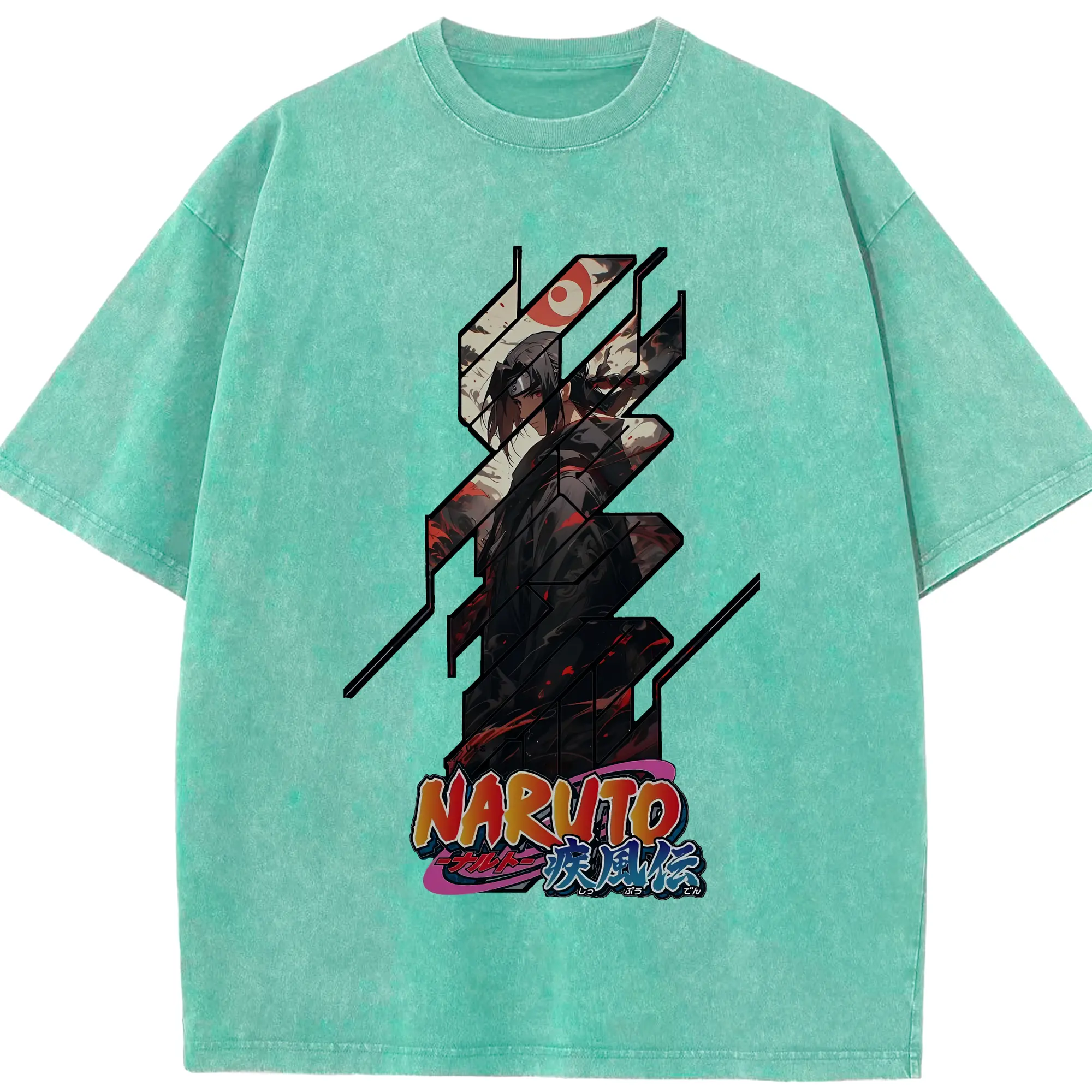 ナルト グッズ うちは イタチ - 綿100% ヴィンテージ風 半袖Tシャツ ・ 背面プリント ・ 柔らか肌触り ・ 通気性 快適 ・ スポーツ カジュアル 外出用