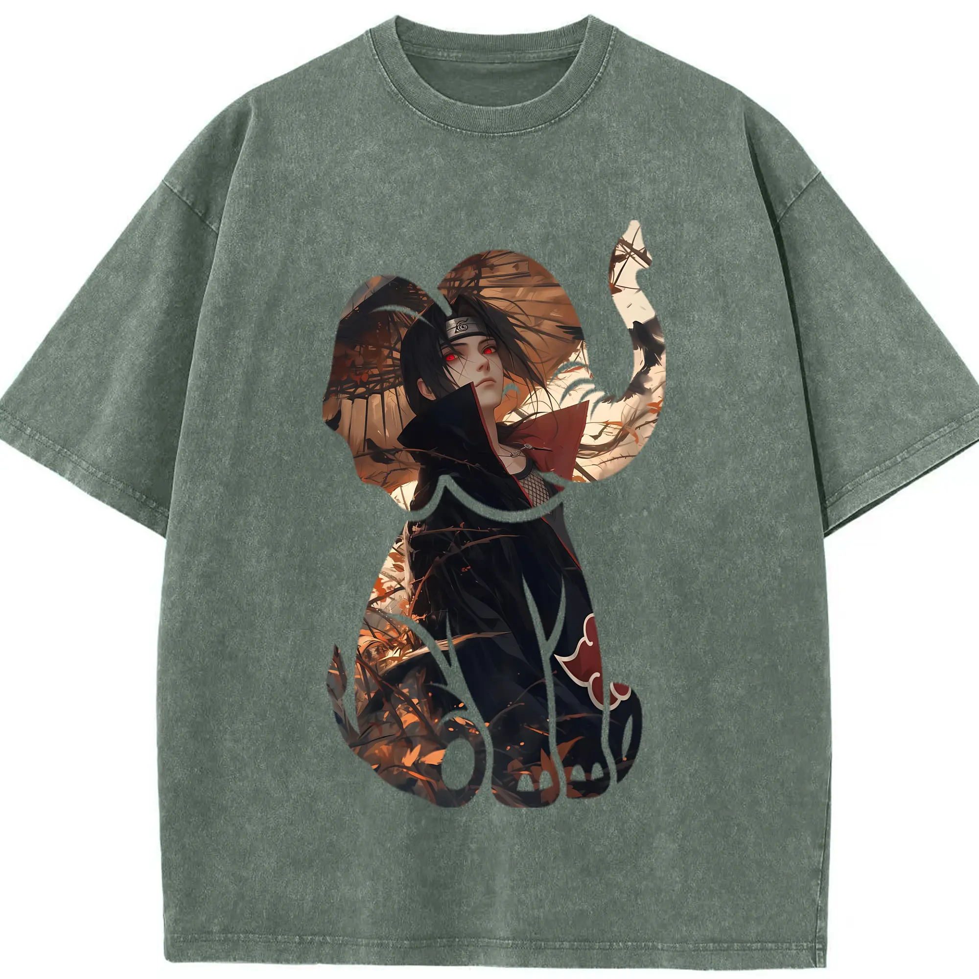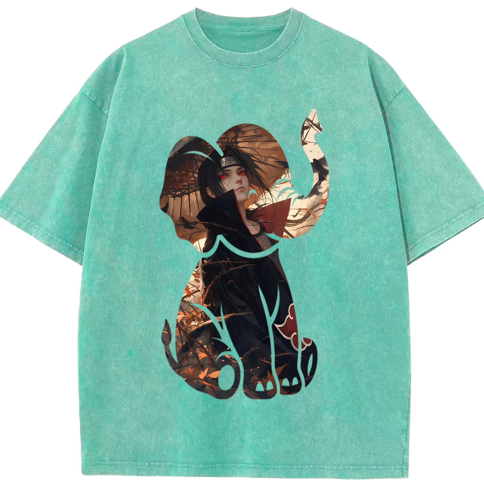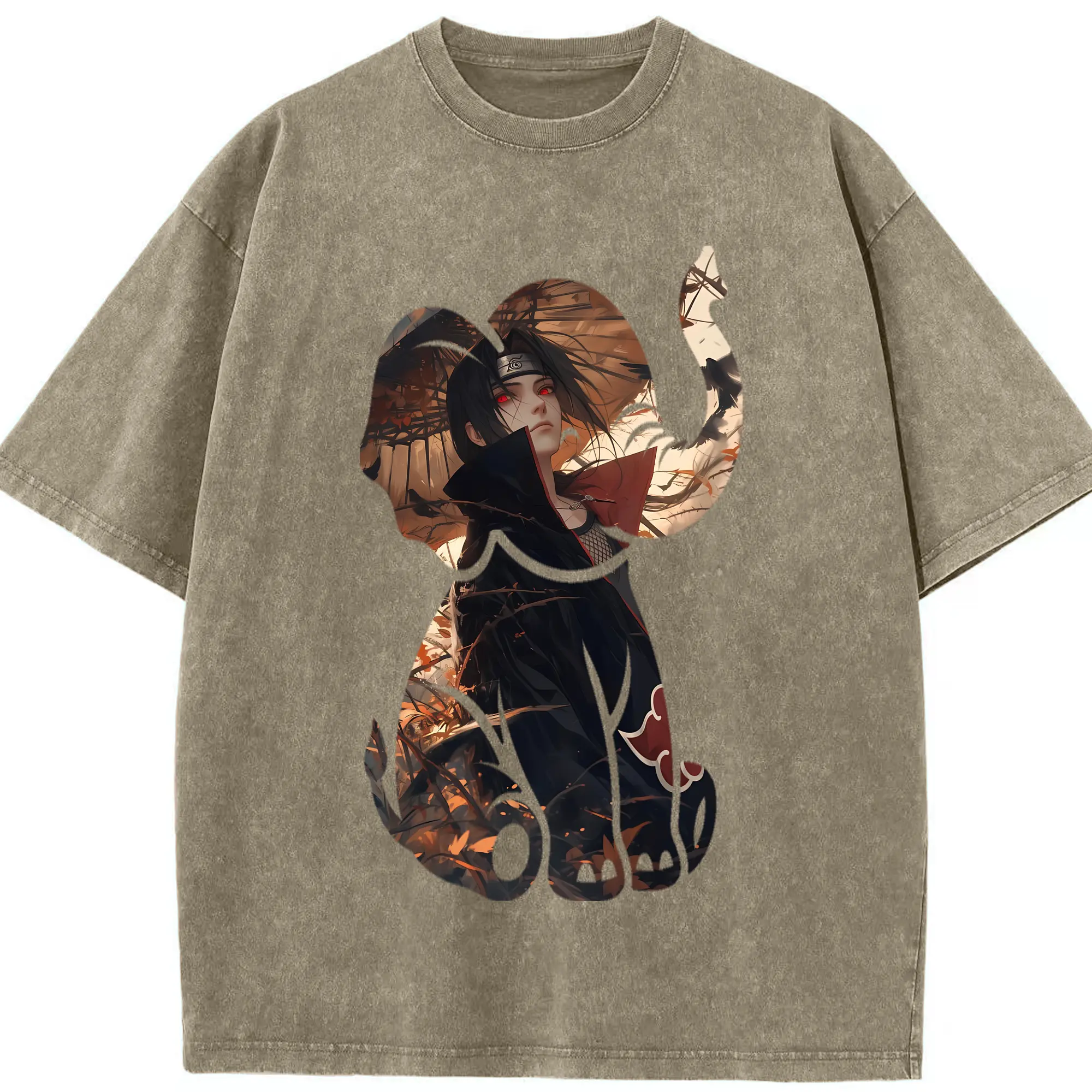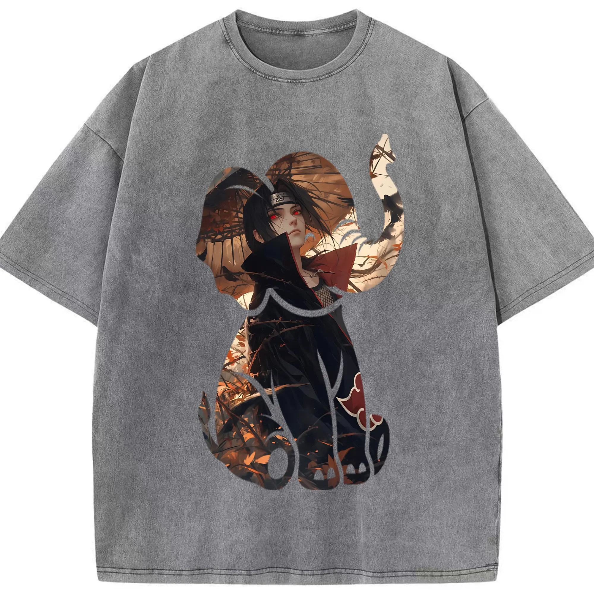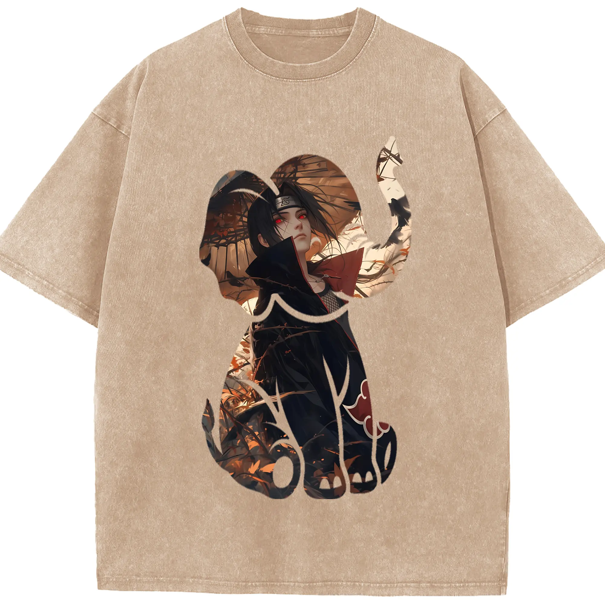 ナルト グッズ うちは イタチ - 綿100% ヴィンテージ風 半袖Tシャツ ・ 背面プリント ・ 柔らか肌触り ・ 通気性 快適 ・ スポーツ カジュアル 外出用