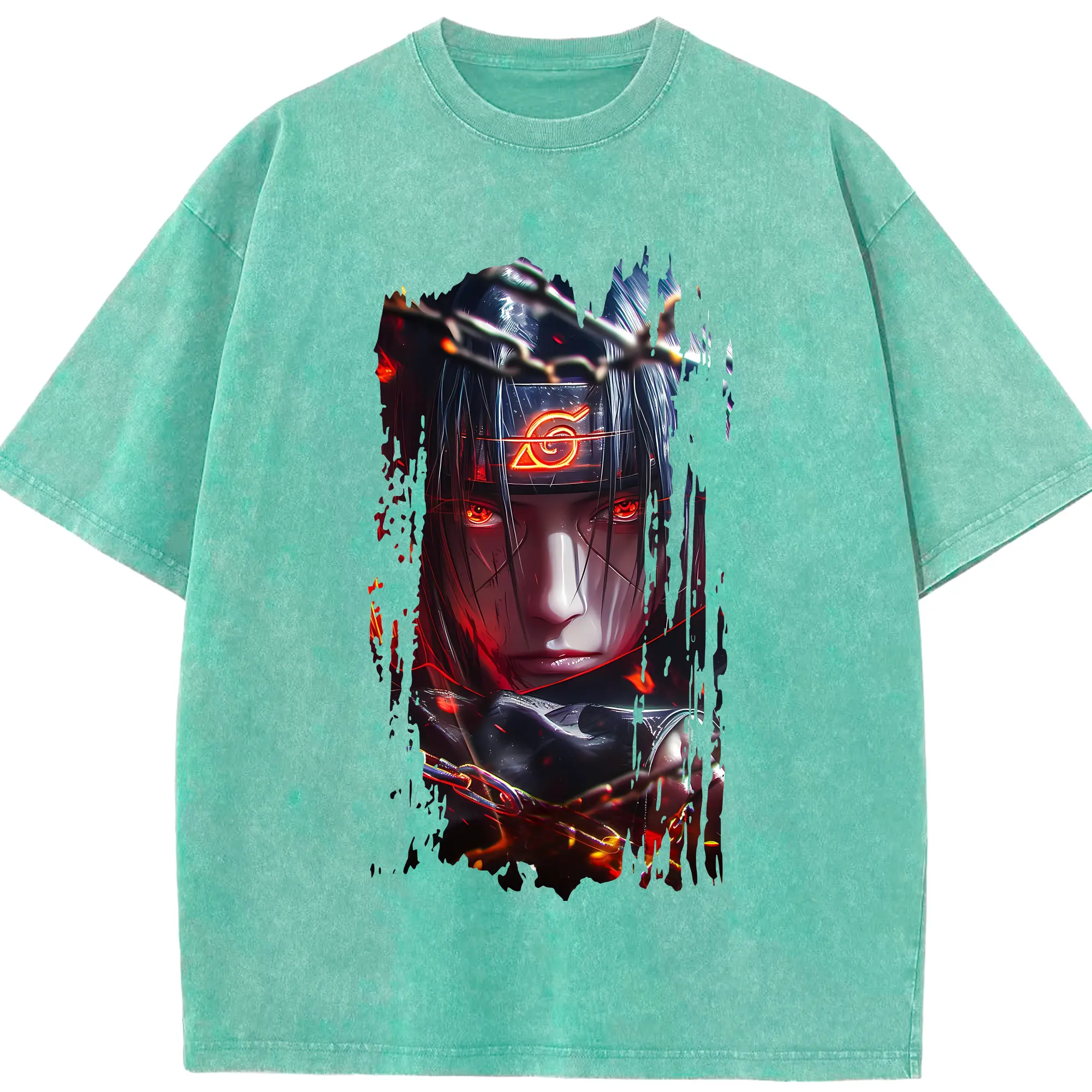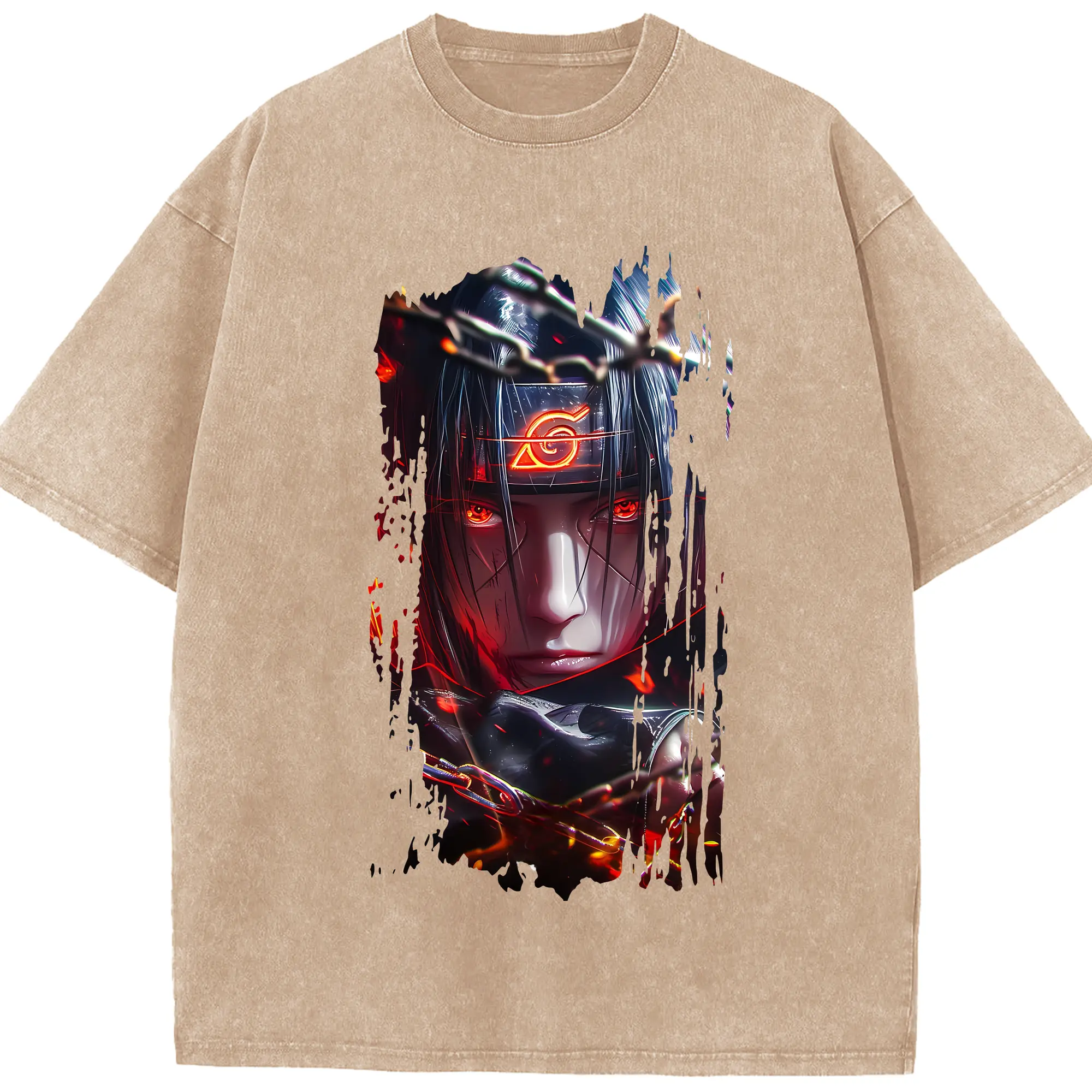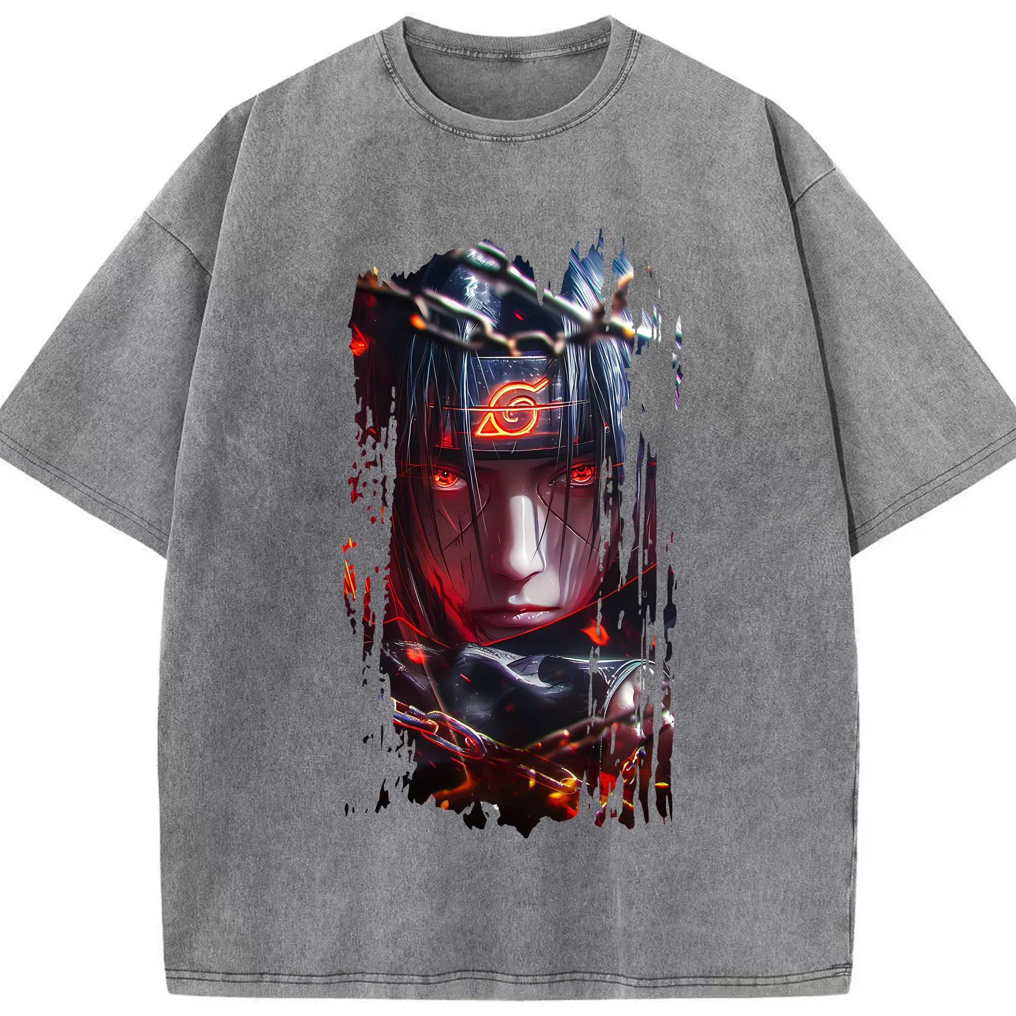 ナルト グッズ うちは イタチ - 綿100% ヴィンテージ風 半袖Tシャツ ・ 背面プリント ・ 柔らか肌触り ・ 通気性 快適 ・ スポーツ カジュアル 外出用