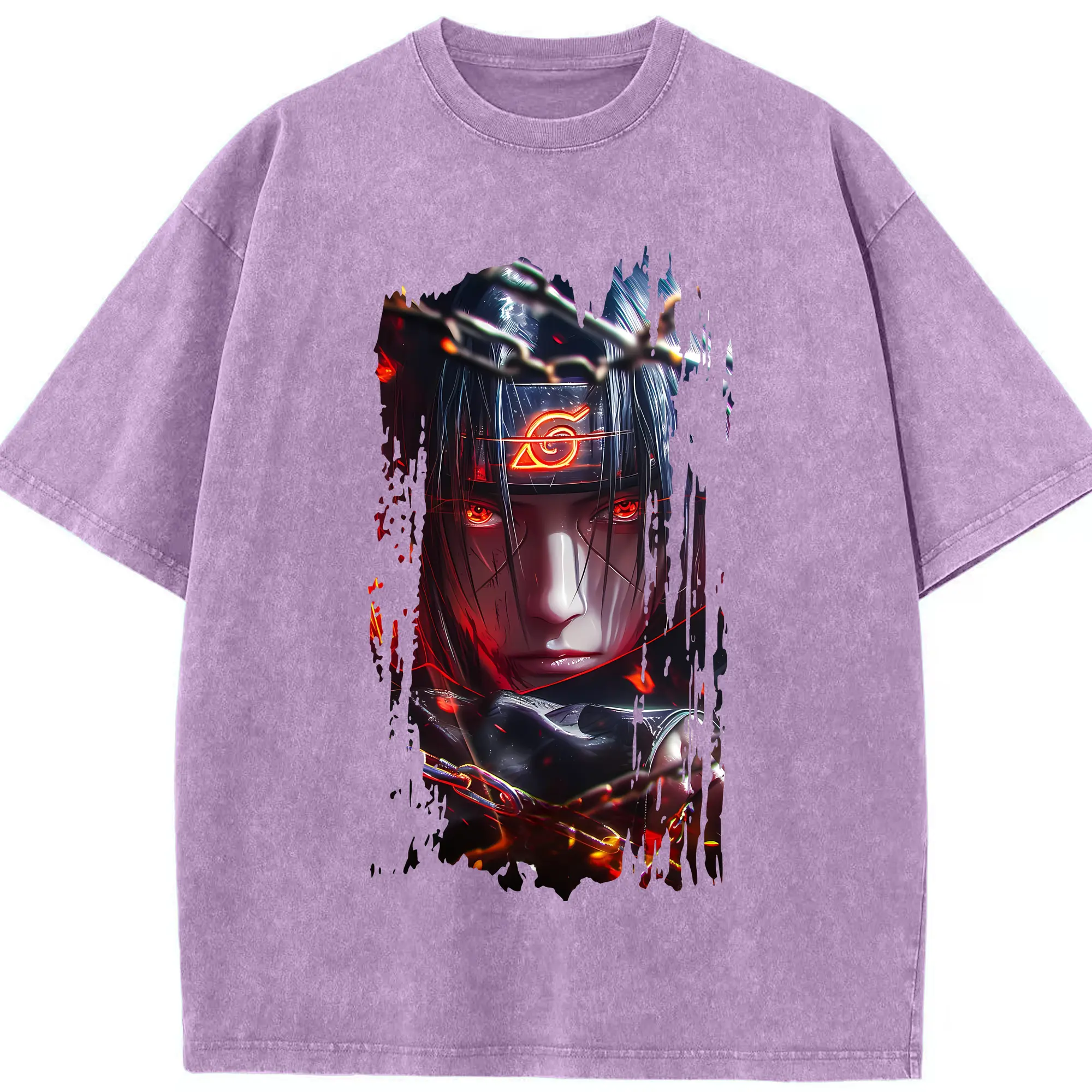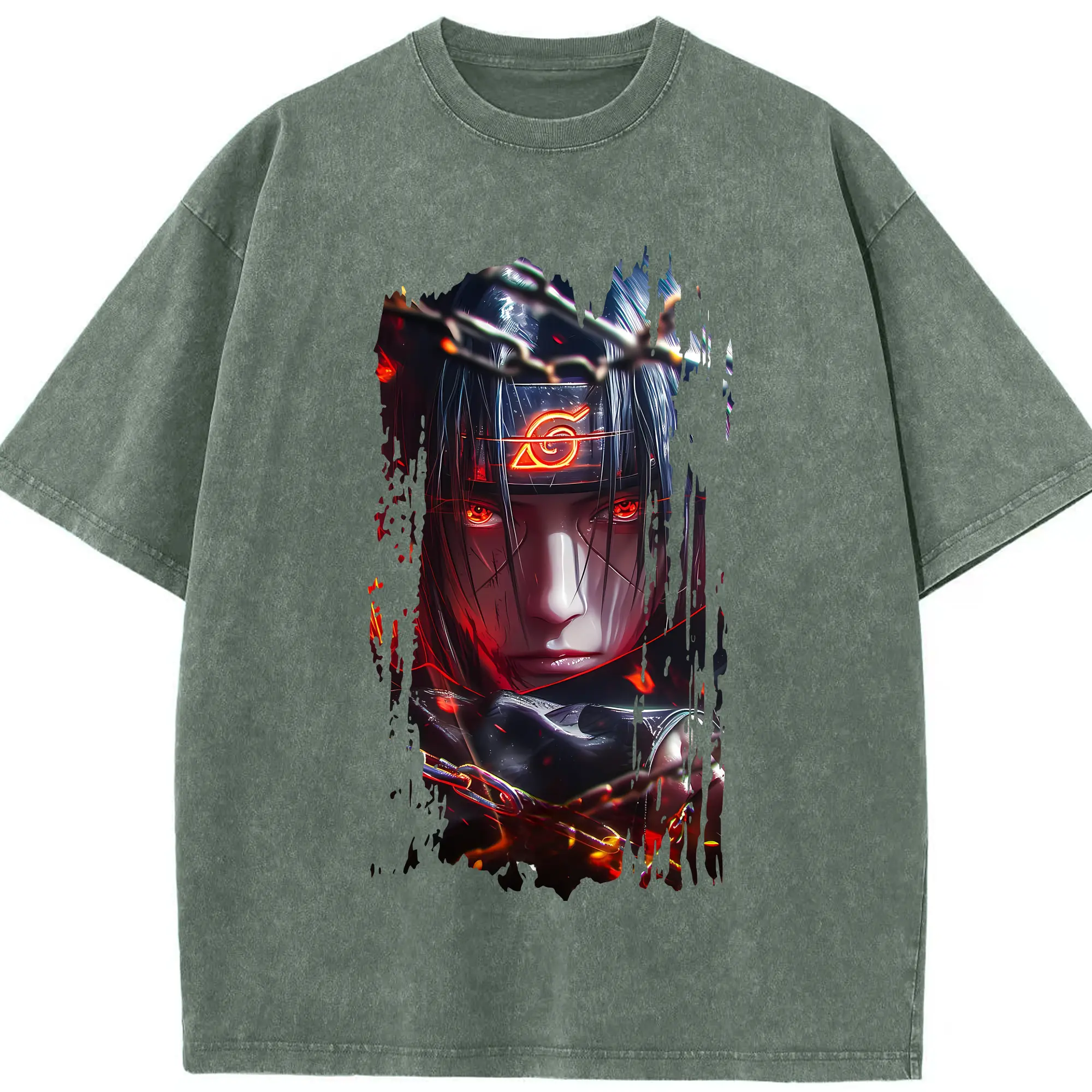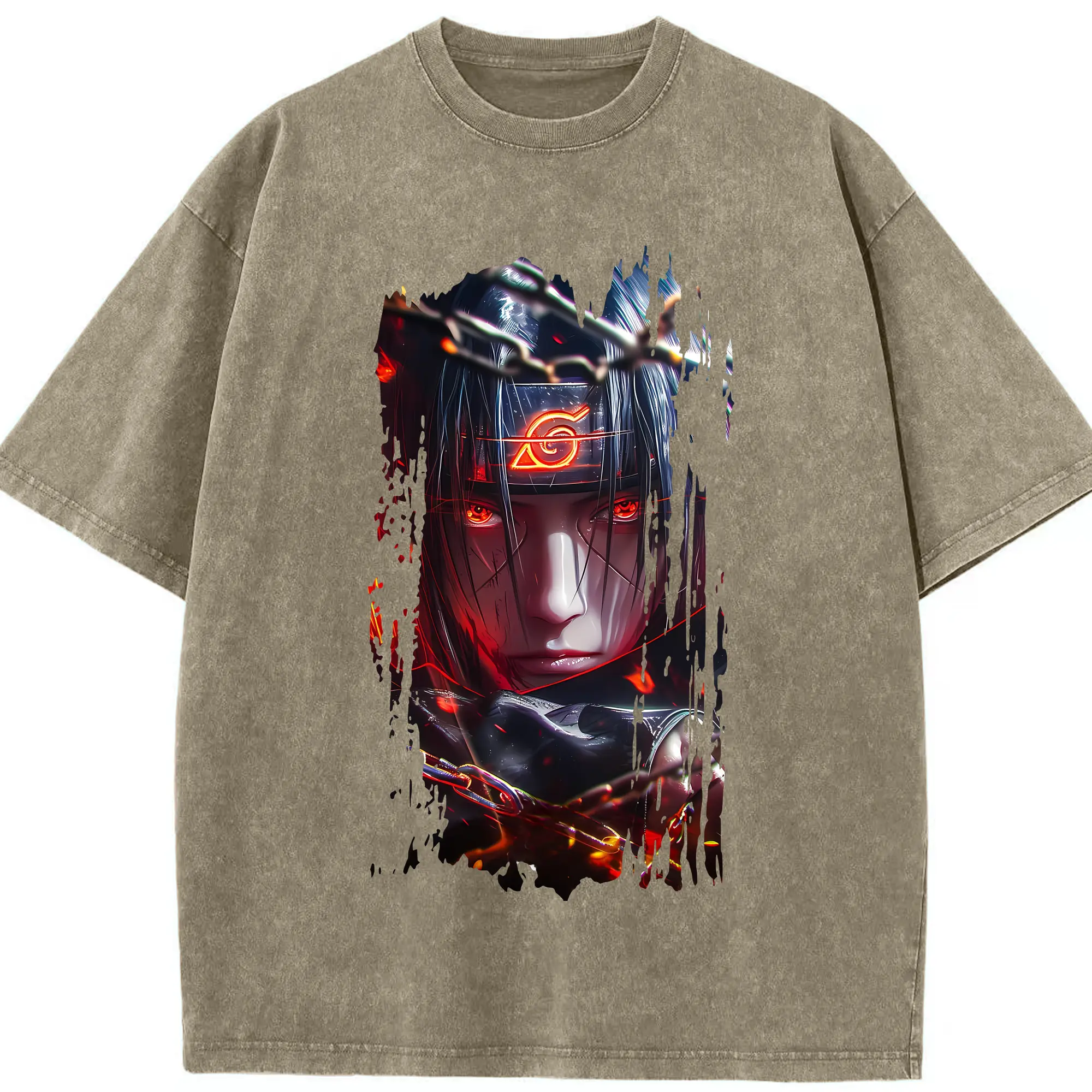 ナルト グッズ うちは イタチ - 綿100% ヴィンテージ風 半袖Tシャツ ・ 背面プリント ・ 柔らか肌触り ・ 通気性 快適 ・ スポーツ カジュアル 外出用