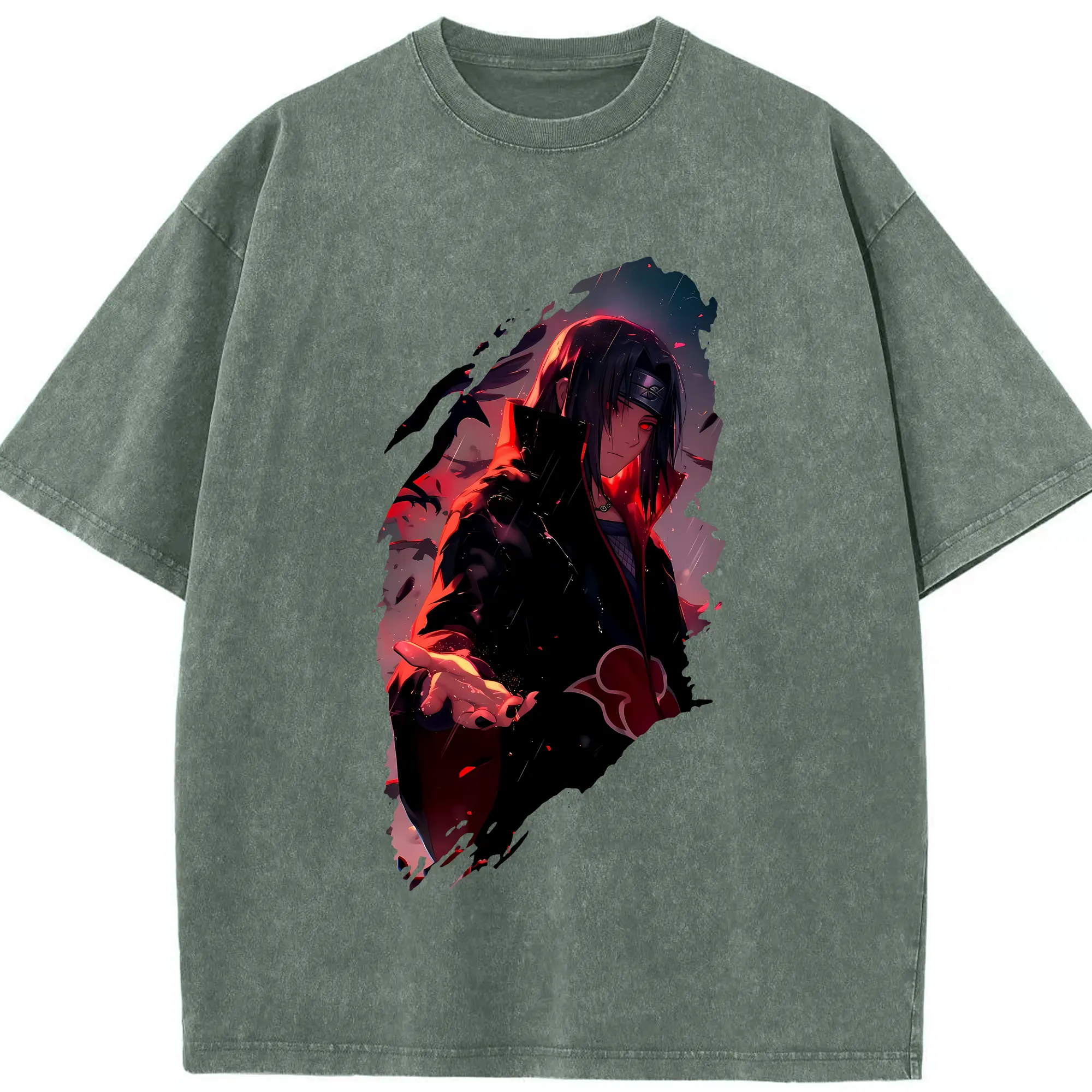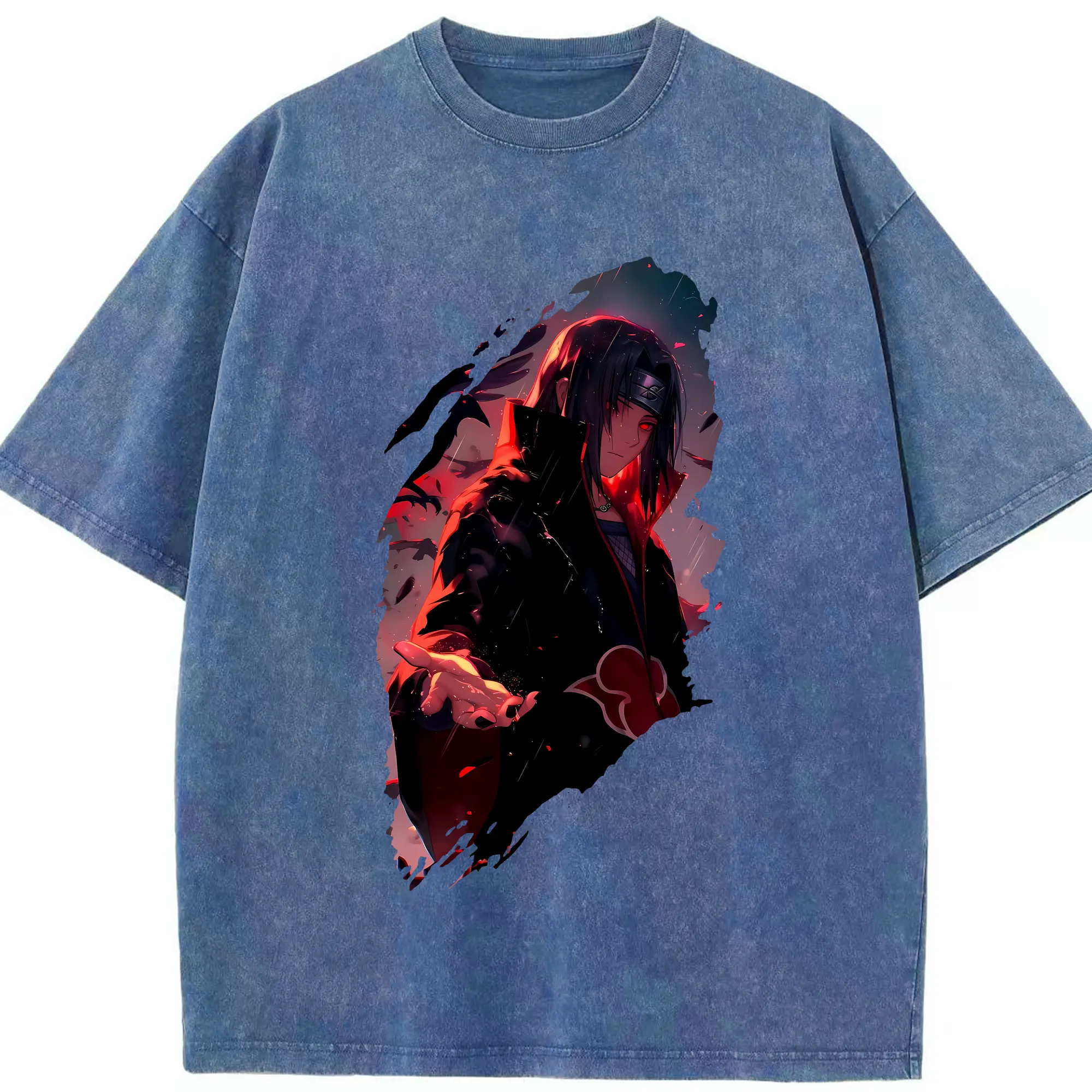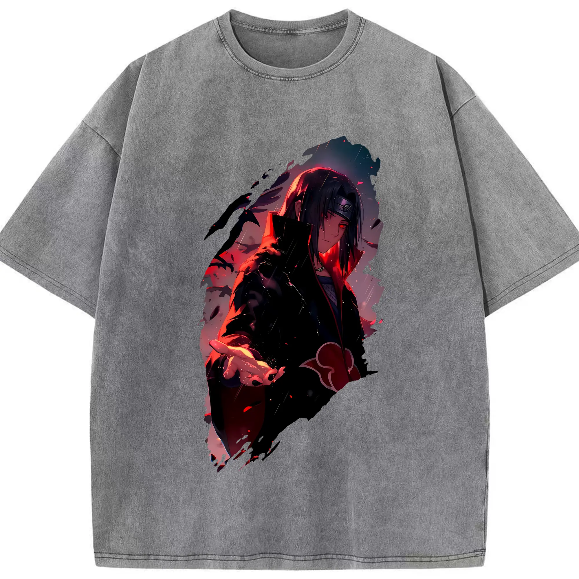 ナルト グッズ うちは イタチ - 綿100% ヴィンテージ風 半袖Tシャツ ・ 背面プリント ・ 柔らか肌触り ・ 通気性 快適 ・ スポーツ カジュアル 外出用