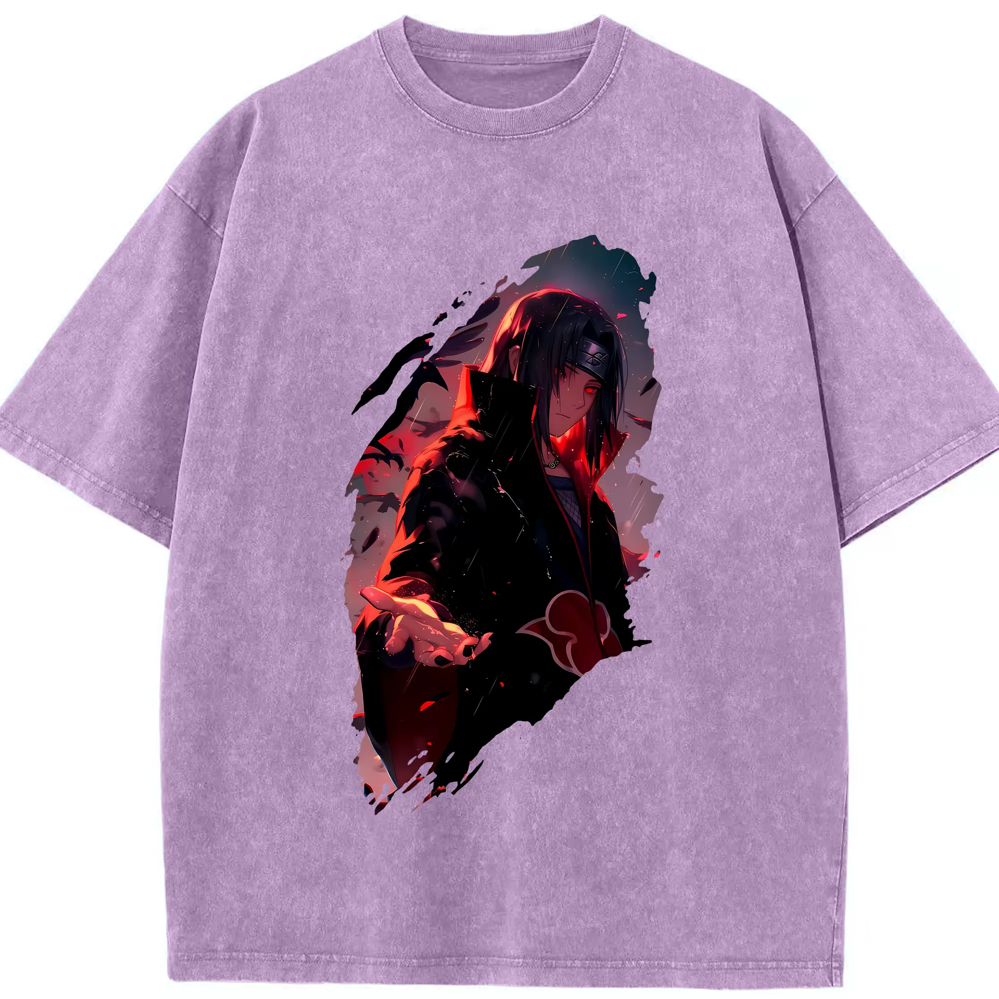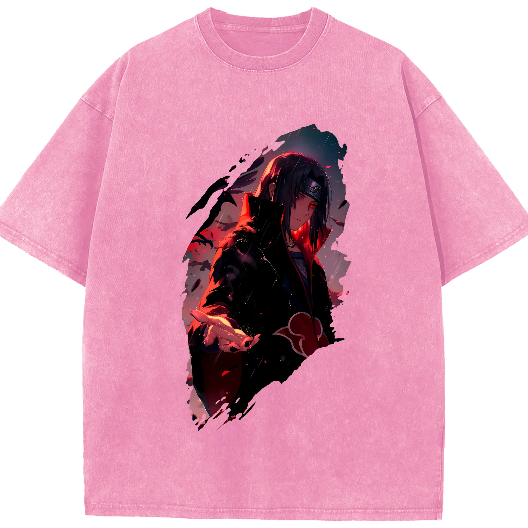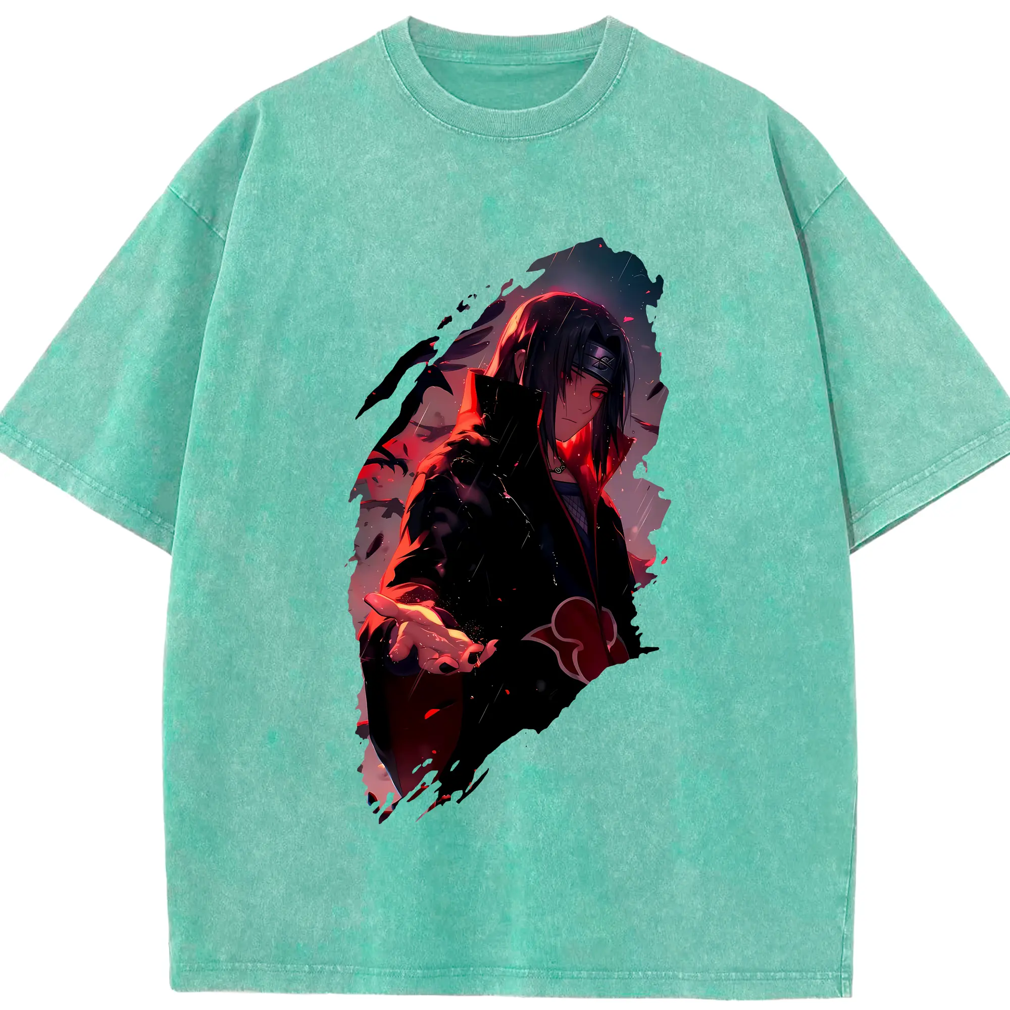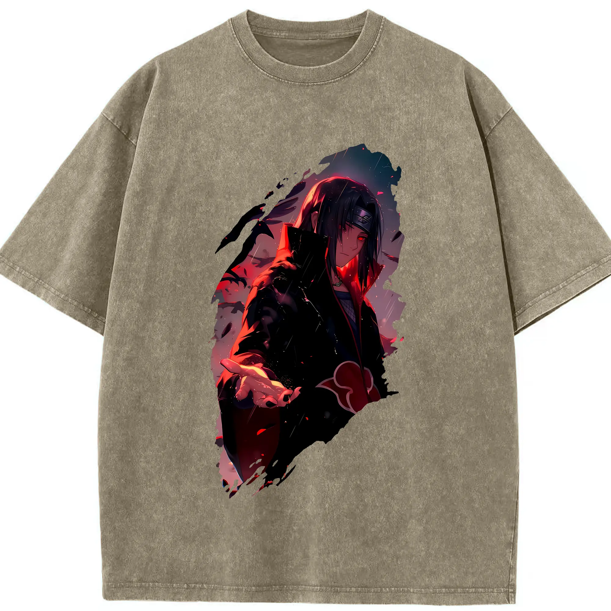 ナルト グッズ うちは イタチ - 綿100% ヴィンテージ風 半袖Tシャツ ・ 背面プリント ・ 柔らか肌触り ・ 通気性 快適 ・ スポーツ カジュアル 外出用