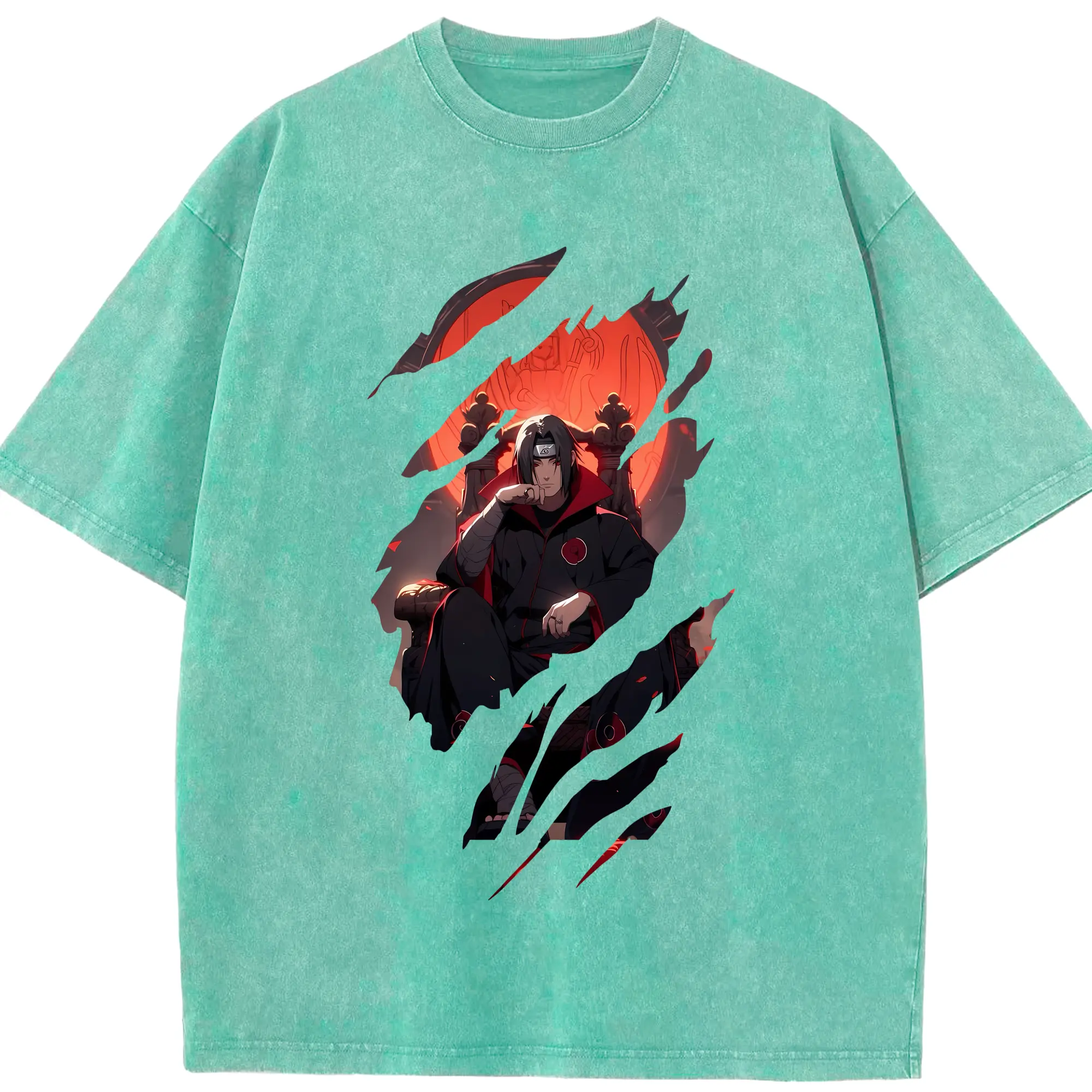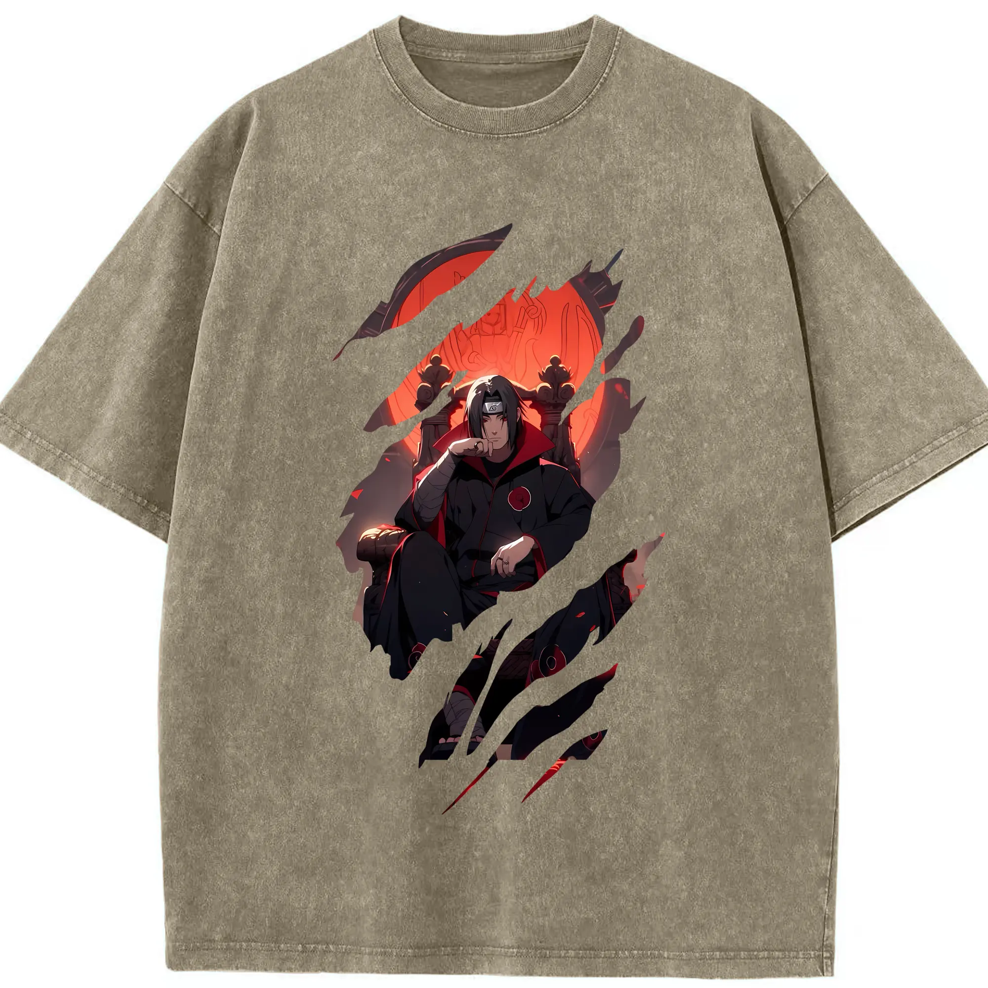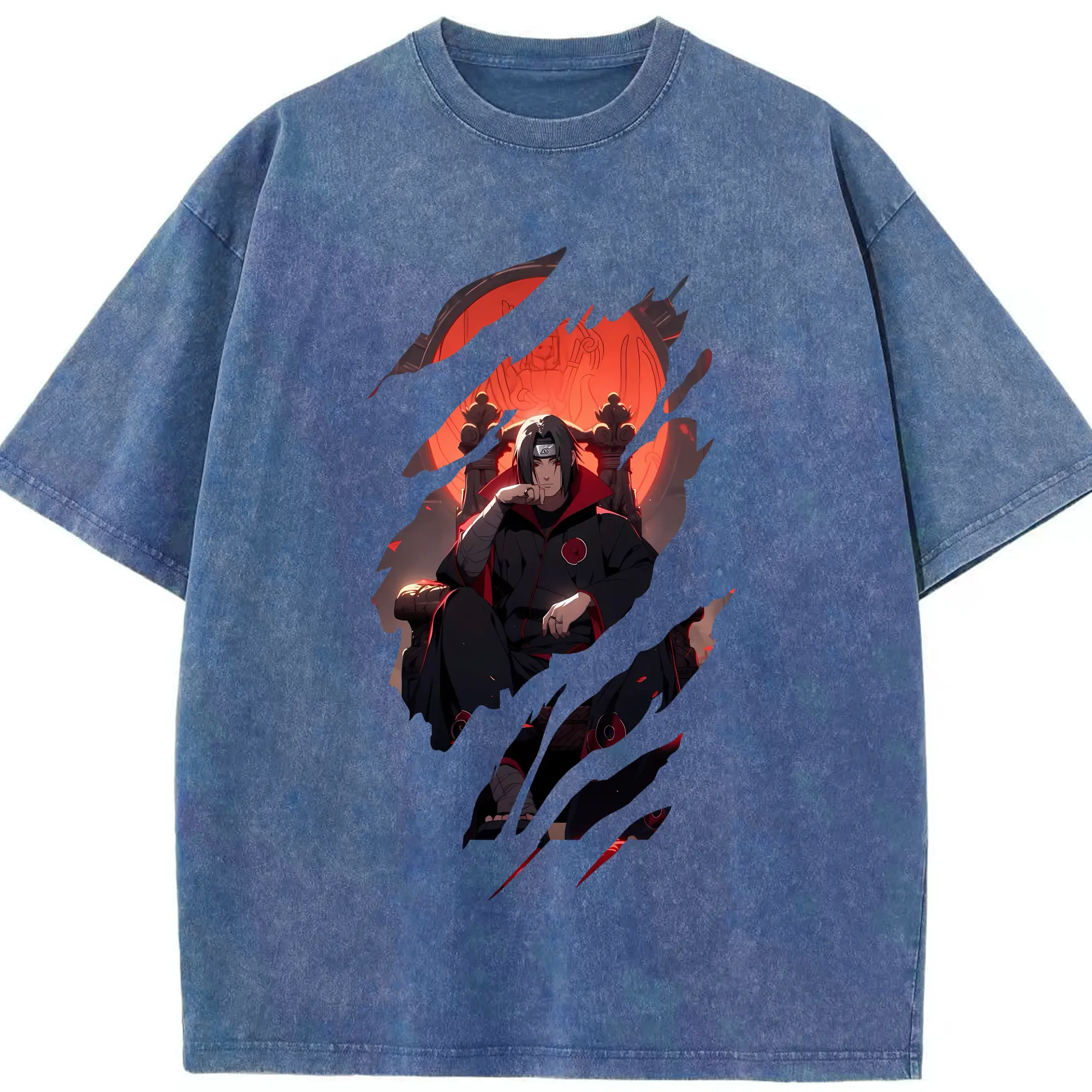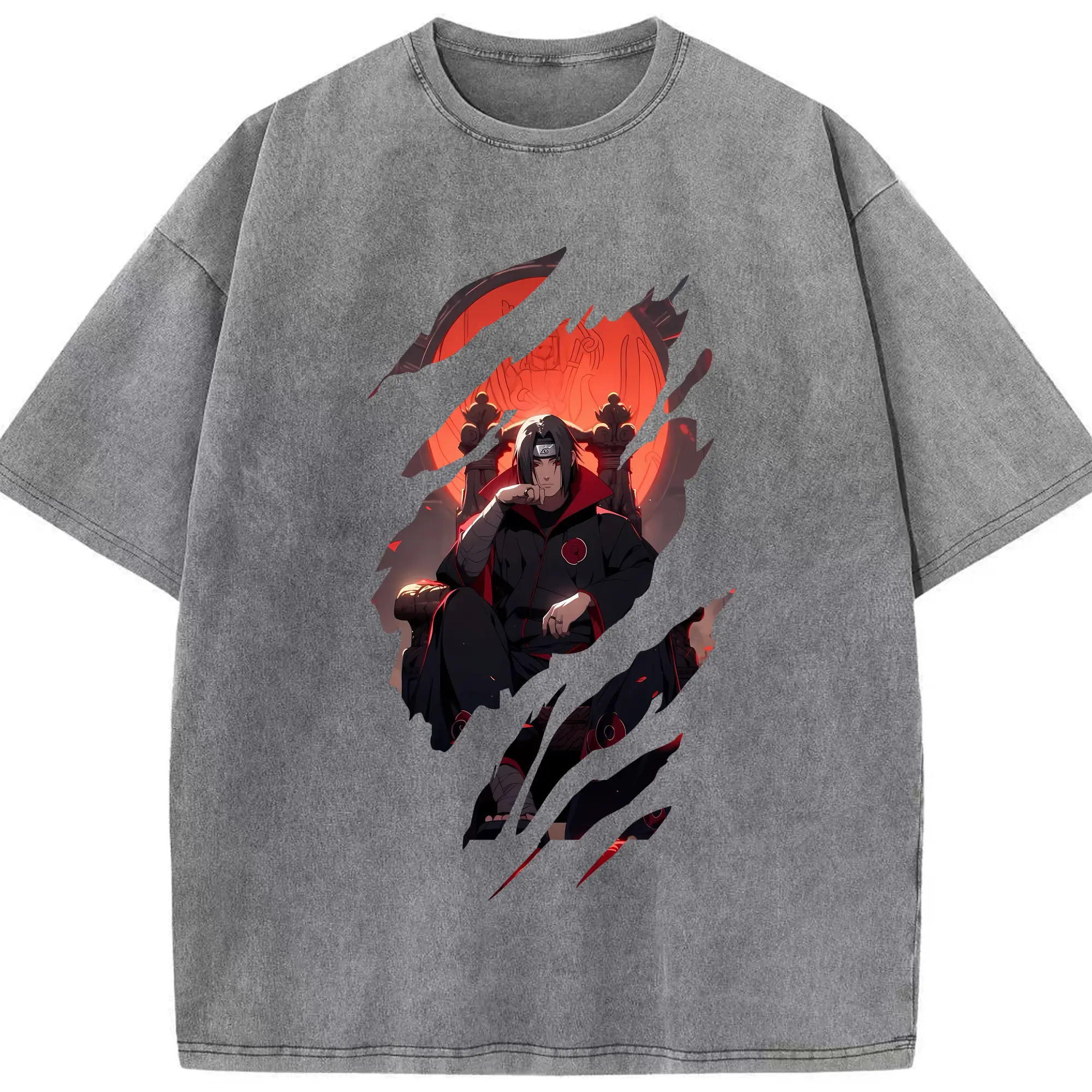 ナルト グッズ うちは イタチ - 綿100% ヴィンテージ風 半袖Tシャツ ・ 背面プリント ・ 柔らか肌触り ・ 通気性 快適 ・ スポーツ カジュアル 外出用